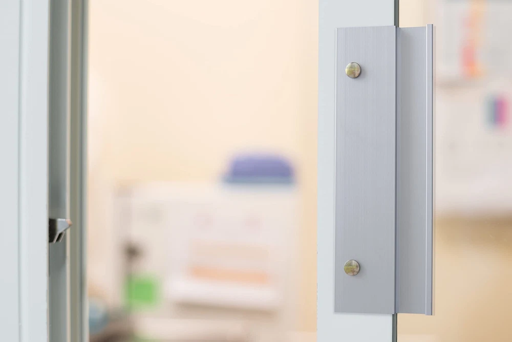 IDEAL APPLICATION: This sliding glass door handle is ideal for both right- and left-handed patio doors 1-1 1/2” thick SETUP: Includes a latch hook for security DURABILITY: Quality and durable construction ensures reliable everyday use on your sliding patio door READY TO INSTALL: All installation hardware is included; Easily installs in 4 15/16" center to center hole spacing CLEAN SUBTLE LOOK: High-quality finish allows it to blend in perfectly with your door and frame