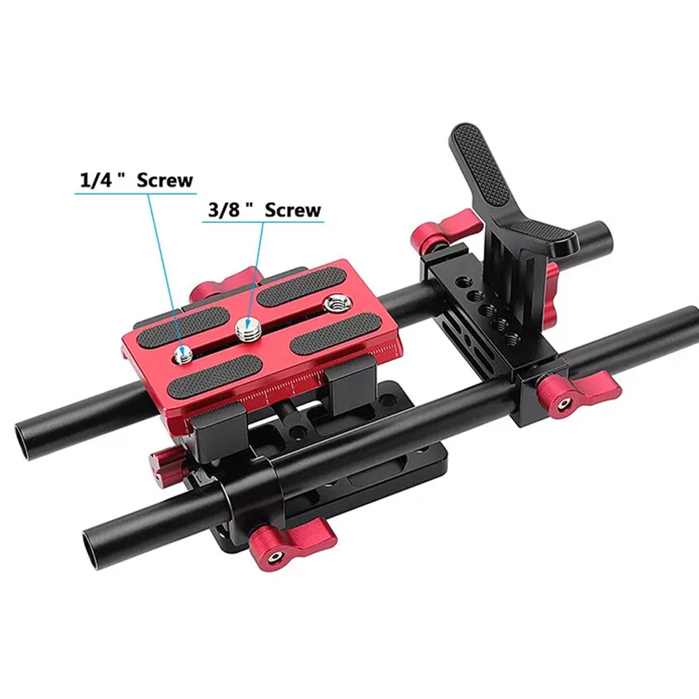 Product Detail: Note:If you have any questions, please contact us before open any case, we promise will solve the problem for you. Thanks! Product Highlights Fits DSLR camera & camcorder (1/4" & 3/8" screw hole) Manfrotto quick release plate with 1/4" standard screw for camera Comes with Y shape lens support bracket Dual 15mm rod support system includedEasy to assemble, super steady and durable Material: aluminum alloy Product Description The Manfrotto Quick Release Baseplate kit is used for mounting cameras on the tripod, shoulder rig and cage kit. It comes with a 15mm dual rods system and adjustable lens support. With the Tripod Mount Plate, it can be mount on the tripod safely. Tripod Mount Plate: comes with 1/4" & 3/8" threaded holes for standard tripods. It also comes with two 15mm rail blocks for better stability. Lens Support Bracket: Y shape with rubber pads on the top for eliminating lens vibration. The standard 15mm diameter 60mm spacing holes are compatible with any 15mm rail rigs. 25cm Long Rod (2 pieces): Made of HQ aluminum alloy, allows you to easy mount capability for follow focus, matte box and more. Net Weight: 650 g Package Included: 2 x 15mm Aluminum Alloy Rod (25cm long) 1 x Lens Support Bracket with 15mm Rod Clamp 1 x Tripod Mounting Plate 1 x Mounting Plate with 1/4" Mounting Studs 1 x 15mm Rod Clamp 1 x Screwdriver Key 1 x Allen Key Note: 1. Please allow minor deviation due to manual measurement. 2. Due to the difference between different monitors, the picture may not reflect the actual color of the item. 3. Communication is the best way to solve the problem. If you have any problems after purchasing, please contact us in time, before opening return or case. Payment: We accept PayPal ONLY currently. Payment must be made within 3 business days. Shipping: 1. Item will be shipped within 1-5 business days from CN Stock or US Stock according to the item location. 2. Sometimes the ship date will be delayed due to a shortage. We will inform you via message. 3. Please leave available address and phone # in delivery information. Seller are not responsible for wrong address. 4. Please indicate your personal requirement such as colors, packages, value of declaration etc. at PayPal's message when make payment. 5. We will NOT responsible for any delay during delivery including but not limited to customs postage checking, strike, force measure etc. Customs Declaration: Import duties, taxes and charges are not included in the item price or shipping charges. These charges are the buyer’s responsibility. Please check with your country’s customs office to determine what these additional costs will be prior to biddingying. Return & Refund: Returns are accepted within 30 days. Please read the item description and check the pictures carefully before bidding. Return or refund is available only if item DOA or there's error in item description causing the item not fitting your need. In such cases, seller pays for all related shipping cost if any. Returns are also acceptable if buyer purchased this by mistake and item still in good condition for reselling. Buyer is responsible for all related shipping cost. Feedback: As long as you are happy with your purchase, please kindly leave us for it is very important for our store performance. If there is any problem with your order, please contact us and give us a chance to resolve your problem Before leaving us a negative feedback.
