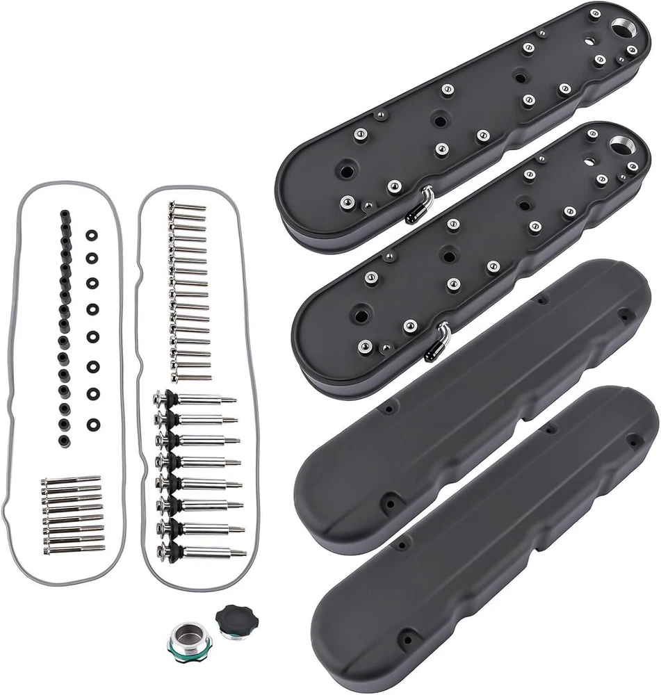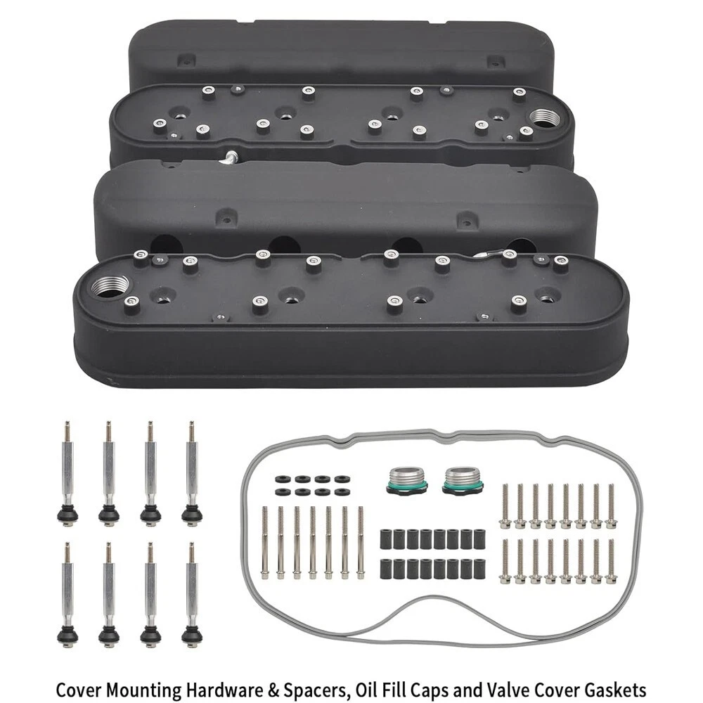 Aluminum Valve Covers with Coil Mounts w/Covers for Chevy LS LS1 LS2 LS3 LS6 LS7 Item Description OEM Numbers: 8082-3BK, 8082-3, JM8082-3, JM8082-3BK; 8082-3BK, 8082-3, JM80823, JM80823BK. Material: Valve covers made of durable smooth cast aluminum. High sealing performance gasket and silicone sealant to stop the oil leak. Precisely engineered make your car run powerfully and stably. Application: Compatible with Che-vy Small Block SB V8 293 325 376 427. Compatible with Gen 1 (Delco D580) and Gen 5 (Delco D510C/ 81015) LS style ignition coils. Compatible with LS1, LS2, LS3, LS6, LS7 Engines. Installation: Package includes Cover Mounting Hardware & Spacers, Oil Fill Caps and Valve Cover Gaskets, Cast aluminum valve covers are a great way to improve the look of your LS engine without any radical changes to its configuration. Specification: Mounting Style: Center Bolt, Internal Height: Tall, Overall Height: 4.25", Baffled: Yes, Cover Material: Cast Aluminum, Gasket Style: Included One-piece O-ring, Coil Cover Hardware: Included. Advantage: The base has a tall internal height to allow for added valvetrain clearance and no brackets required. It also features a baffled stock-style ventilation set-up. The coil cover features cut-outs for routing the wiring harness and spark plug wires and comes with a classic, finned top. Features Hassle-free installation, guaranteed. Designed as a direct replacement for your original mirror. Helps restore your vehicle to like-new condition. Made from Corrosion-Resistant Materials Durable construction ensures years of dependable service in all types of weather. Manufactured to the Highest Standards This mirrors undergo rigorous weather, swing, and vibration testing. Streamlined manufacturing process keeps costs down and quality high. Specifications Condition:100% Brand New Warranty: 90 Day Free Return:30 Day Color: Black Cover Material: Cast Aluminum Valve Cover Material: GM LS Engines Engine Family: LS-based engines Valve Cover Hardware: Not Included Coil Cover Hardware: Included Fitment For Chevrolet Small Block V8 Gen. III/IV (LS Based): LS1, LS2, LS3, LS6, and LS7 Engines 4.8 L / 293 Ci 5.3 L / 325 Ci 5.7 L / 346 Ci Commonly Referred to as 350 6.0 L / 364 Ci 6.2 L / 376 Ci 7.0 L / 427 Ci Please Double-Check that this is compatible with your vehicle. [OEM]: 8082-3BK, 8082-3, JM8082-3, JM8082-3BK; 8082-3BK, 8082-3, JM80823, JM80823BK. Package Included As pictures show FAQ: I purchased by mistake, how do I cancel the order? Please contact us ASAP. If the item has not been shipped out we can cancel the order for you. If the item was shipped out you can refuse the package and wait for the item to return to us. I received your item but it does not fit or is defective Please contact us so we can assist you on the matter. Buy with confidence Our quality is based on meeting the requirements of the manufacturer and improvement them in design problems manufacture. NOTE: (1)It would be highly appreciated if you might contact us first once you have any problems concerning the items. And you can expect all the issues would be resolved ASAP! (2)Please let us know before you send us the neutral/negative feedback that wont help to finish the issues. And I will definitely try my best to provide the best solutions which would meet our satisfactory! (3)According to the distance of the receipt address items would be sent from CA or NJ