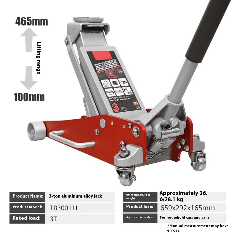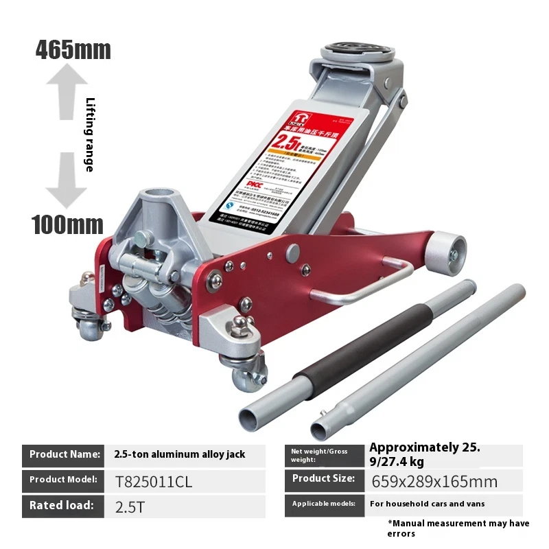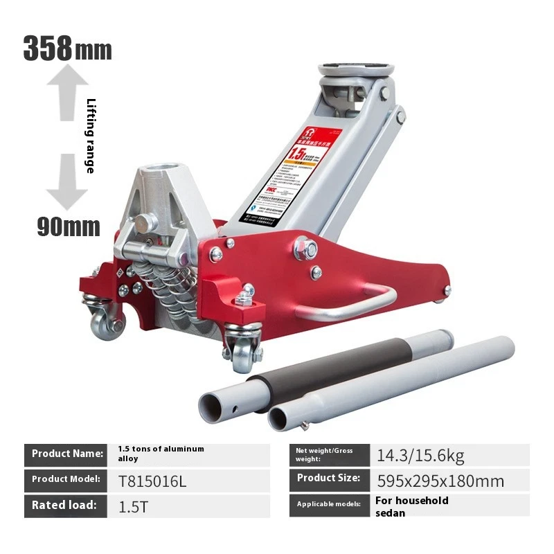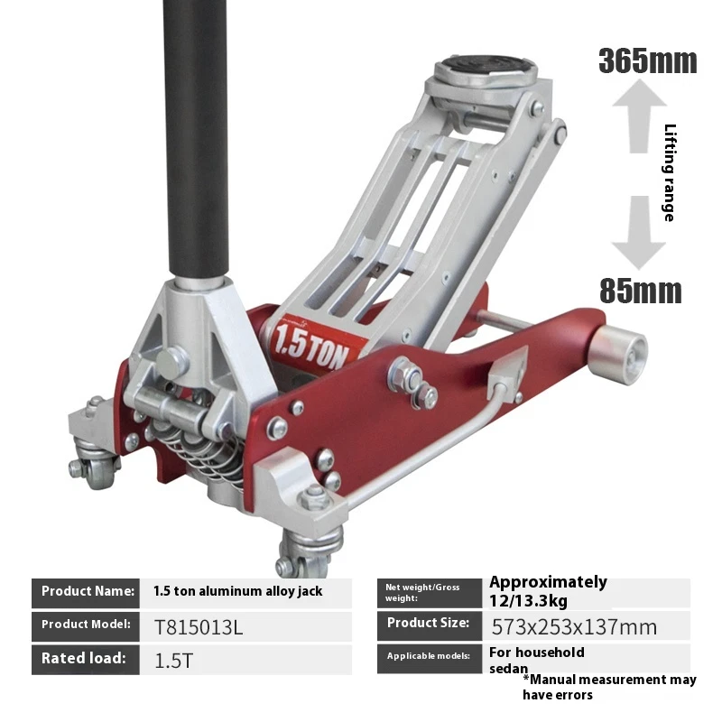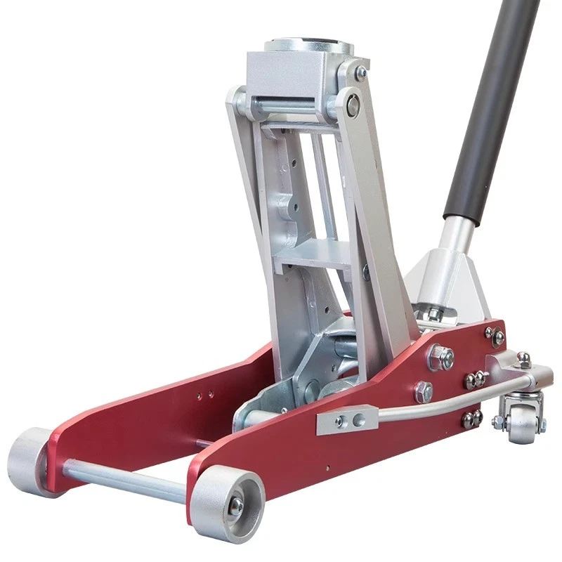 Aluminum and Steel Racing Floor Jack with Dual Pistons Quick Lift Pump Precautions 1. Do not overload. 2. Use only on hard surfaces. 3. Use only for lifting; do not use as a support tool. 4. Do not work under objects that are being lifted by a jack alone. 5. Failure to follow these precautions may result in personal injury or property damage.