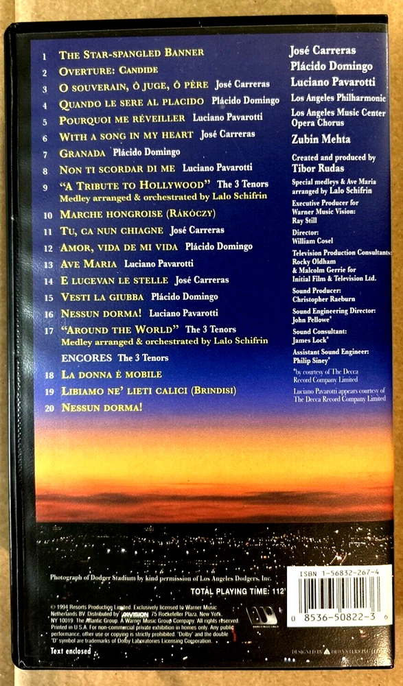 Amazing- The Three Tenors: Carreras/Domingo/Pavarotti VHS 1994 Live Concert!