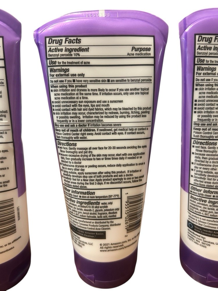 Amazon Basics Acne Cleanser Daily Face Wash, 5 oz Each, 3 Pack Exp 9/26.