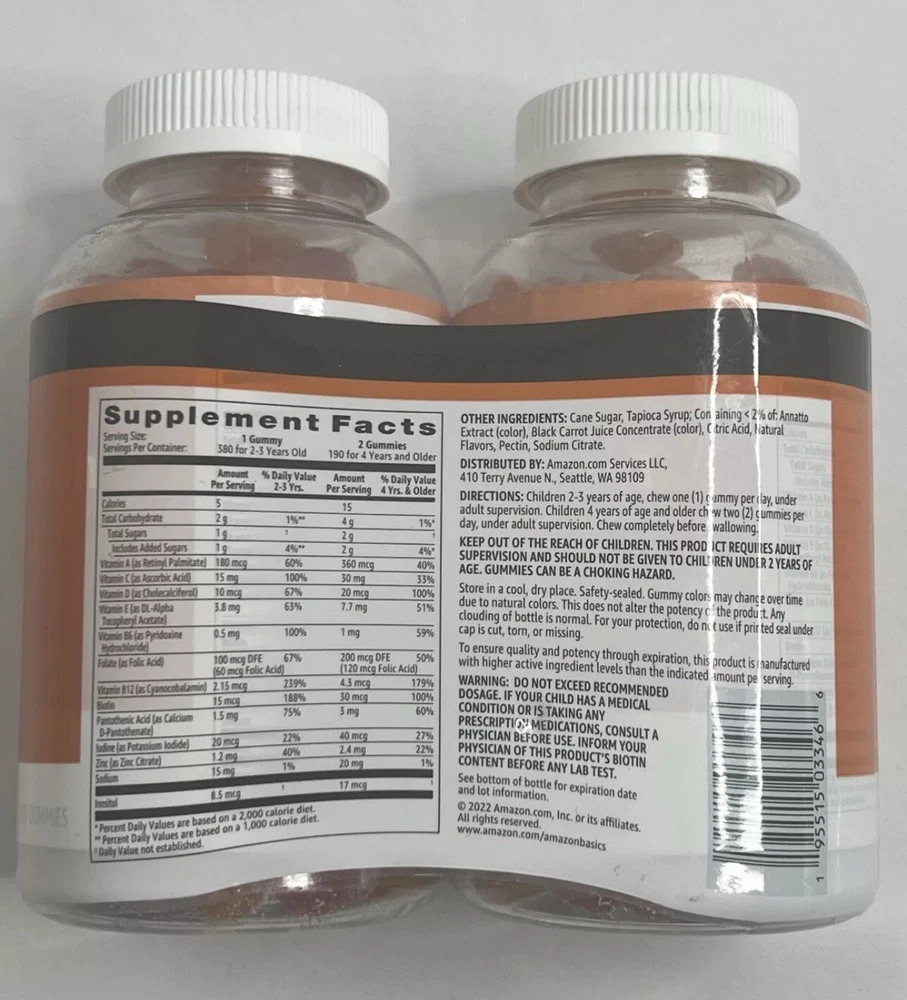 Amazon Basics Value Pack - Kids' Multivitamin - 380 Gummies (2x 190) - Ex: 7/25.