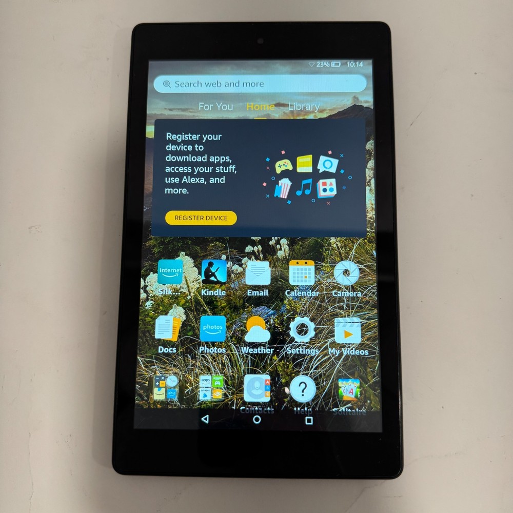 Amazon Fire HD 8 6th Gen 8 GB Tablet – Black – Good Condition This Amazon Fire HD 8 (6th Generation) tablet in sleek black provides reliable everyday use. With an 8-inch HD display, responsive touchscreen, and full Wi‑Fi capability, it's a compact device ideal for reading, streaming, or casual browsing. Product Features: Model: Fire HD 8 (6th Gen – PR53DC, 2016) Storage: 8 GB internal (expandable via microSD – card not included) RAM: 1 GB Processor: MediaTek MT8135 quad-core @ 1.5 GHz Display: 8″ HD (1280×800 IPS LCD) OS: Amazon Fire OS, factory reset and ready to register Cameras: Front VGA + rear 2 MP Connectivity: Wi‑Fi, USB 2.0 (Micro‑USB charging), Bluetooth Built-in speaker and headphone jack Condition: Used – Tested and fully functional Screen intact, no cracks; back case shows light wear Battery charges and holds power Factory reset — ready for setup Includes: Fire HD 8 tablet only (no charger or adapter) No charging cord included, but uses a standard Micro USB connection. Shipping: Ships via USPS Ground Advantage or Priority Mail Buyer pays shipping Most items ship by the next business day Returns: 30‑day returns accepted Item must be returned in same condition received