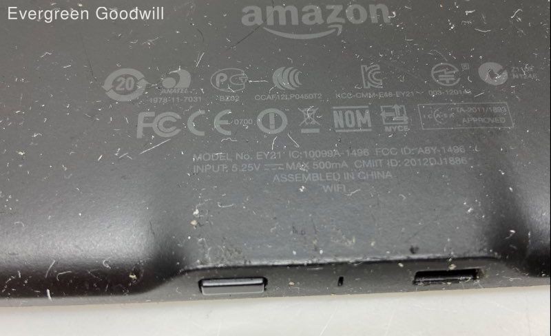 Amazon EY21 Brand: Amazon Model: EY21 Functionality: Item powers on - no further testing Condition: Donated item in used condition. Device is power on tested and factory reset. No power adapter. Not fully tested so selling as parts or repair. Evergreen Goodwill helps people get jobs across Northwest Washington by offering high-quality free job training, education and job placement. We empower individuals to overcome barriers to working by providing comprehensive support and connecting them with life-changing job opportunities, ensuring they are career-ready and can support themselves and their families. ***Disclaimer*** All items were donated to Evergreen Goodwill of Northwest Washington with no history or provenance. The auction is for all items pictured. Items may need servicing and/or benefit from a cleaning upon arrival. Please see photos for additional details and feel free to ask questions. PAYMENTS Please note that eBay will automatically cancel your entire order if the oldest item exceeds 4 days without payment. Once an order is canceled, we are unable to re-invoice, and the item will be relisted. To request a combined shipping invoice, please send one request within 2 days of winning your first item to avoid cancellation of your order. After a combined invoice has been sent, we are unable to add additional items to it. SHIPPING Local pickup is not available at this time. International shipping is not available at this time. We offer combined shipping as long as items will ship safely together. Auctions must end within 2 days of each other to be eligible for combined shipping. Please hold off on payment until all auctions have ended then proceed to checkout. Please do not pay for any items individually if you wish to have them combined - they must be paid at the same time. Items listed for flat-rate shipping are not eligible for combined shipping. PO Box addresses will require USPS shipments as FedEx Ground will not deliver. If FedEx is selected we may need to invoice for additional shipping costs.