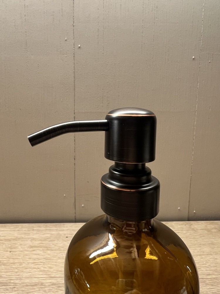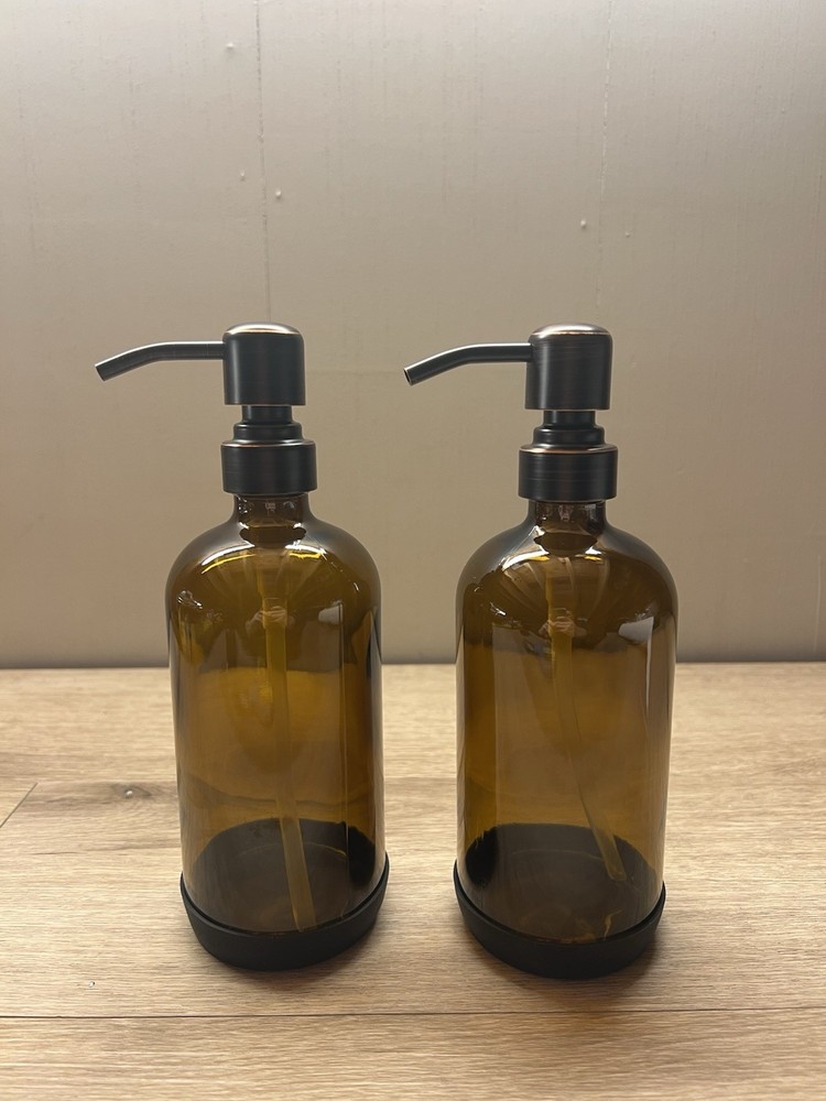Amber Glass Soap Dispenser Kitchen/Bath, 2 Pack Brushed Bronze Tops New Open Box