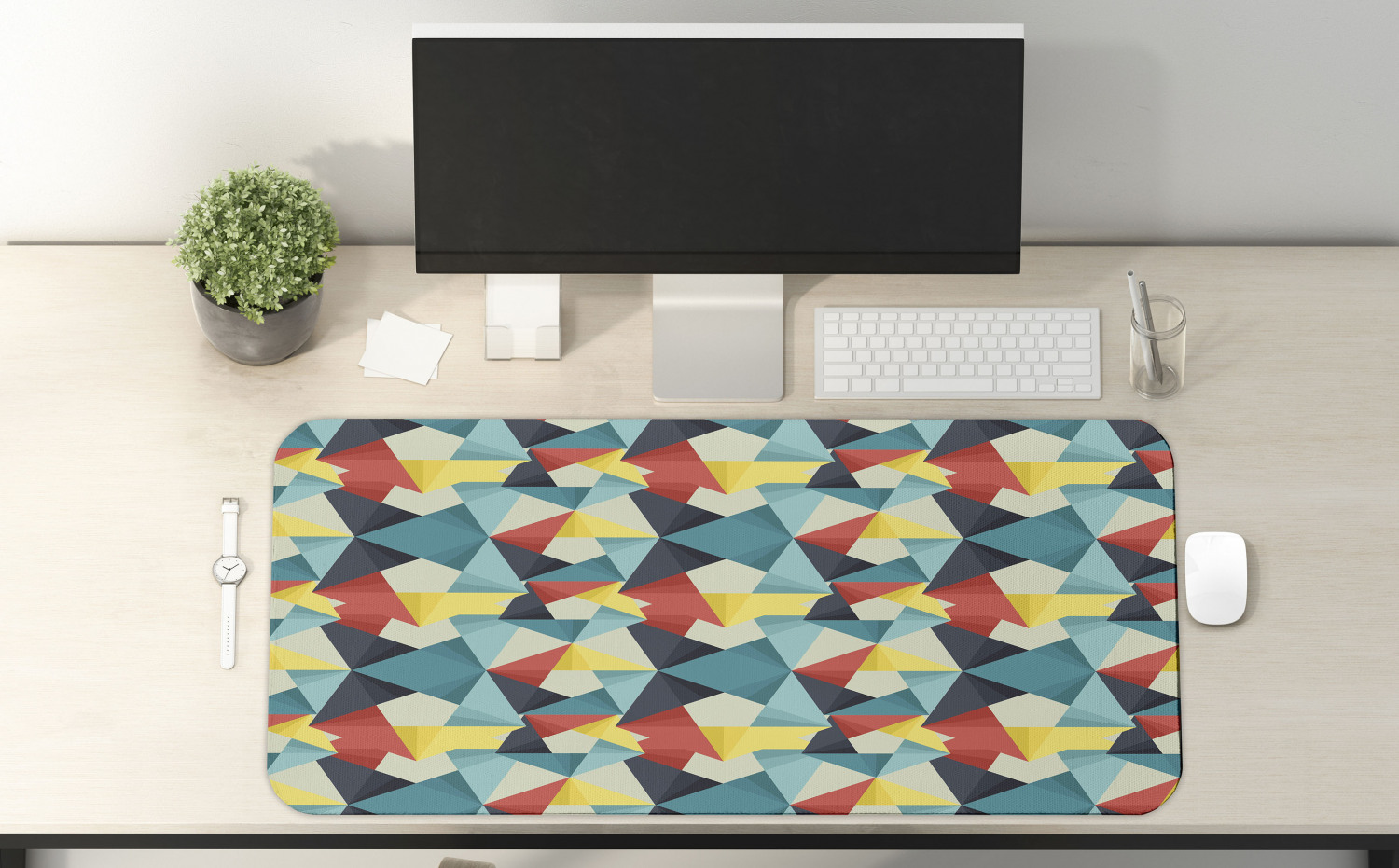 Ambesonne Abstract Polygon Rectangle Non-Slip Mousepad, 35" x 15" Gaming Size Time to dive into the gaming world! Practicality and comfort are now in AMBESONNE’S EXTENDED SIZE GAMER MOUSE PAD for all types of gaming including FPS, TPS, RPG, RTS. Its GAME-CENTRIC features will be a perfect part of your gaming PC setup. Large SIZE: 35’’ WIDE x 15’’ LONG to fit your desktop items such as the keyboard, mouse, and more. You will not need to worry about running off the edge while being fully focused on the game. MADE from NON-SLIP neoprene RUBBER and PREMIUM TEXTURED smooth SURFACE. Provides accurate and controllable tracking for both optical and laser mouse. The anti-slip back keeps the pad in its place and prevents it from slipping or gliding. So, allows excellent response times in-game with fast swipes. 5MM THICKNESS. Does not take too much space underneath your computer setup, thereby makes your wrist comfortable. The large and thick platform avoids the mat from fraying and wearing, also protects your desktop against scratches, coffee stains, and any other undesirable damage! Can even be used as a coaster for your coffee mug thanks to its large design. COLORS and HI-RES PRINTS. Either enhance the look of your desk with its cute designs or create your personalized style with animal/flower theme patterns. There is a design for every style and every interest in our office product collection. Colors won't fade thanks to new digital printing methods and will go perfectly with your desktop notebook, office PC, gaming computer, or daily task laptop. EASY-CARE and LIGHTWEIGHT. Just wipe it with a moist towel and enjoy the maximum comfort using experience ever. High-quality edges won’t deform or rip. Anti-pilling and fraying. The ECO-FRIENDLY design will be in perfect condition after years of use. No dye substance harming the health of your family. Think outside of the box and find the perfect gift for your gamer friend, tech geek boyfriend, or uncluttered desk lover girlfriend among our designs for Thanksgiving, Christmas, New Year, Valentine’s Day, and other holidays. PRINTED on the FRONT SIDE ONLY, the back is PLAIN. The images we display have the most accurate color possible but, due to differences in pc monitors, there can be slight color differences between the product and the image.