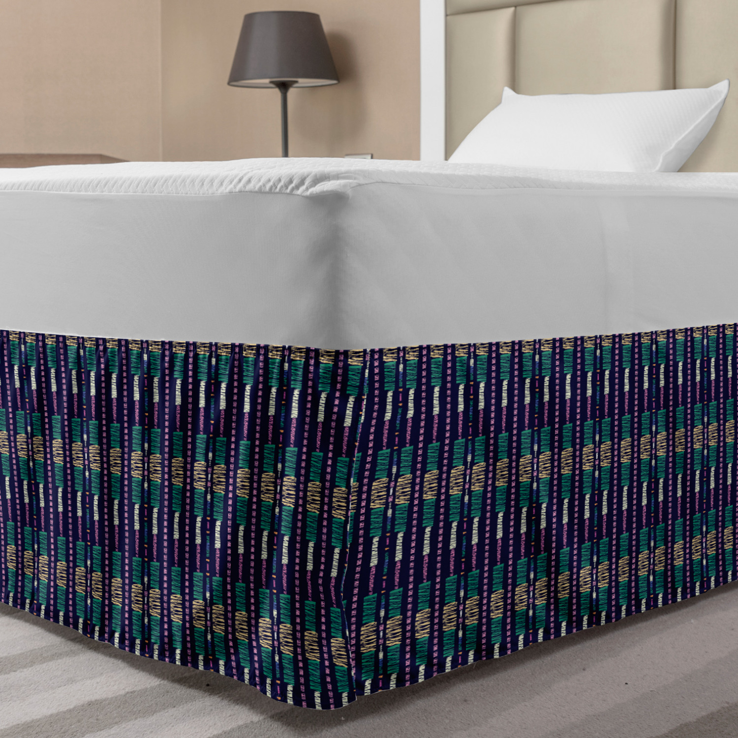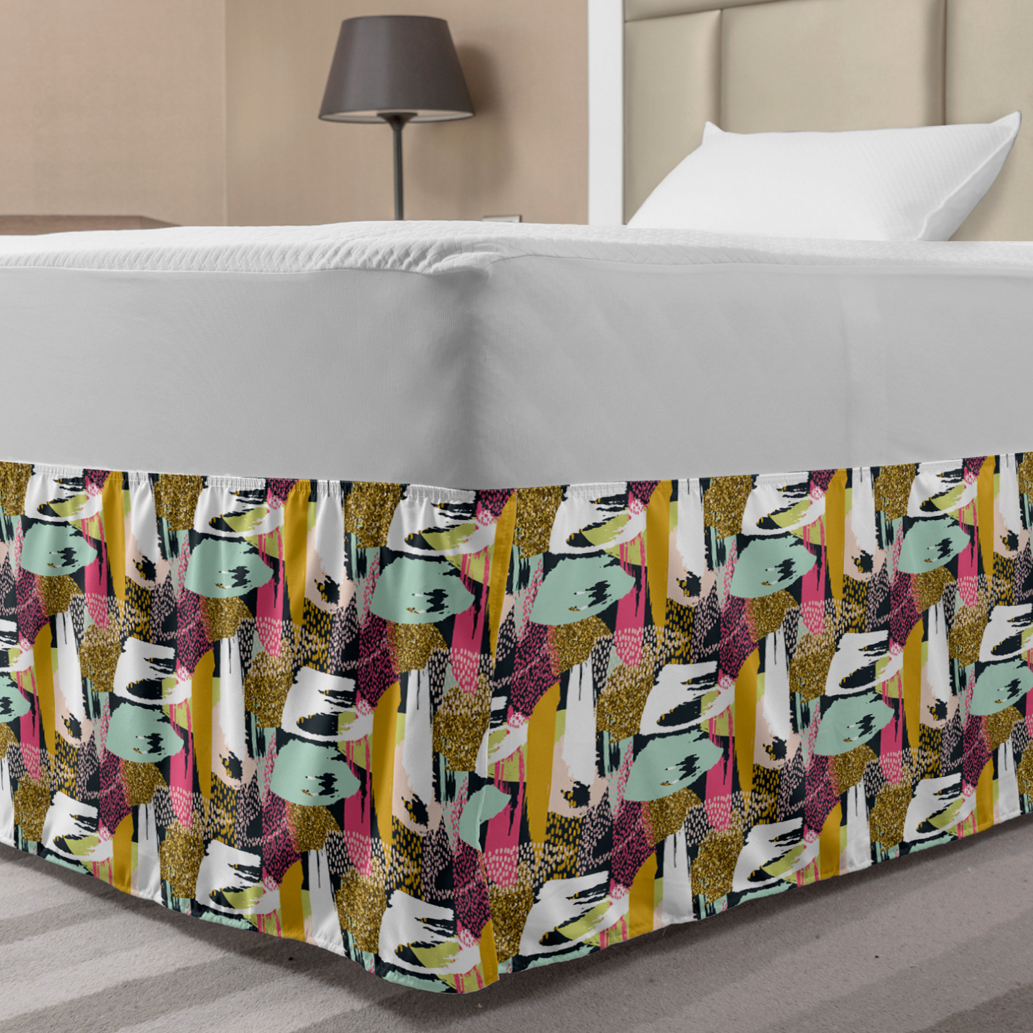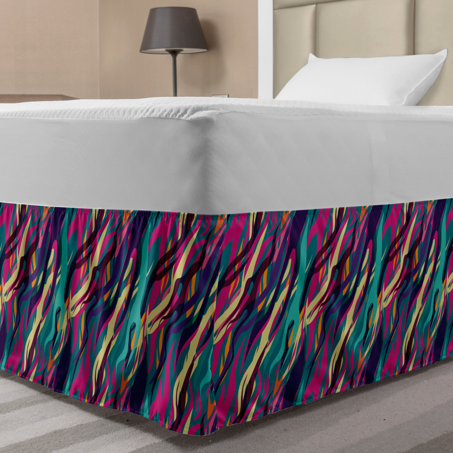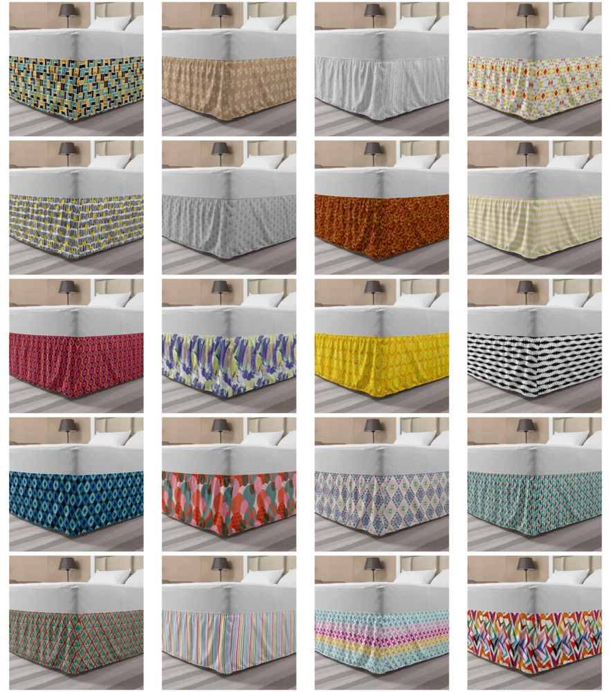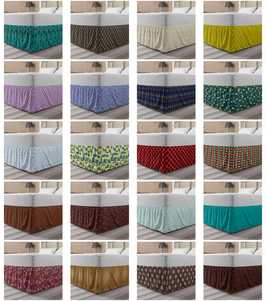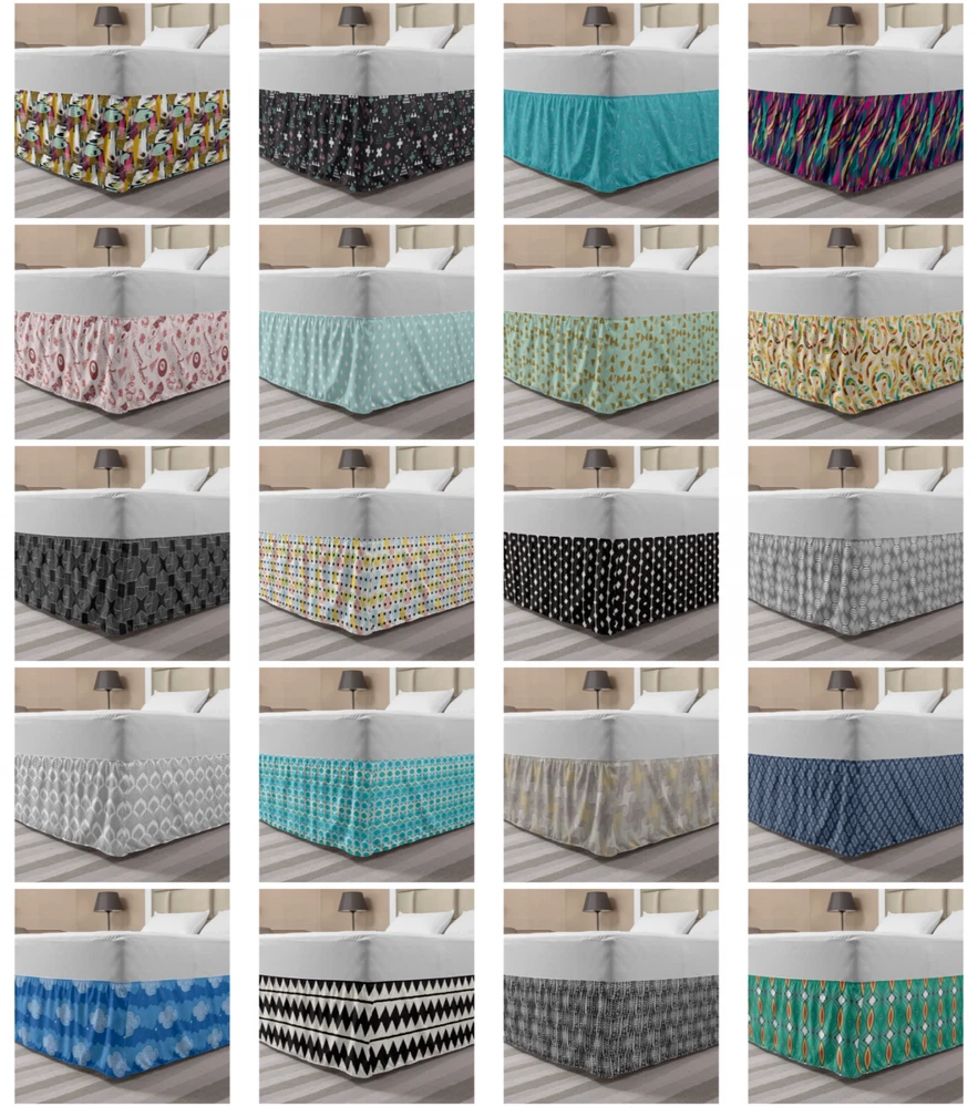 Ambesonne Absurd Pattern Bedskirt Elastic Wrap Around Skirt Gathered Design Ambesonne Bedskirt Bedroom Decor Wrap Around Elastic Bed Skirt Gathered Design In 4 sizes. 15 inches drop. All around wrap gathered. MADE IN TURKEY. MADE FROM - High quality 100% brushed soft microfiber fabric. Suitable for most types of beds. FEATURES - Install easily with elastic straps wrap under the mattress. Stays in place. Split corners. MACHINE WASHABLE - On cold cycle. Dryer safe and iron easy. No fading colors. For bedroom decor. PRINTED - With state of the art digital printing technology. Long-lasting bold colors & clear image. Change your bedroom's style with a simple touch of bedskirt! Our bedskirts are very easy to use; you can easily put around this elastic bed skirt and fasten up with straps under your mattress. Bring new energy to your master suite with colors and thousands of different patterns. You can easily match your bedding sets with our varied bed skirts. You can play safe and create vintage decor easily with these bed ruffles that belongs to retro-times. But you can ask for novelty and combine this piece with your modern choices. Our bed skirt is smartly designed with modern split corners. And you don't need to worry if it gets dusty or dirty. Just machine wash in the cold cycle and tumble dry on low. Thanks to new printing techniques the colors will not fade easily. Design a neat look for your bed with this gathered bed skirt. It is designed with a slim/low style ruffle to catch a more contemporary line. You can give these bed skirts as a Christmas, birthday, wedding gift, mother's day or house warming gift. It can be a great present for your mother, father, newly married friends, grandmother, aunt, uncle. The digital images we display have the most accurate color possible, however, due to differences in computer monitors, we cannot be responsible for variations in color between the actual product and your screen. Due to manual measurement, please kindly allow 1-2 cm discrepancy.