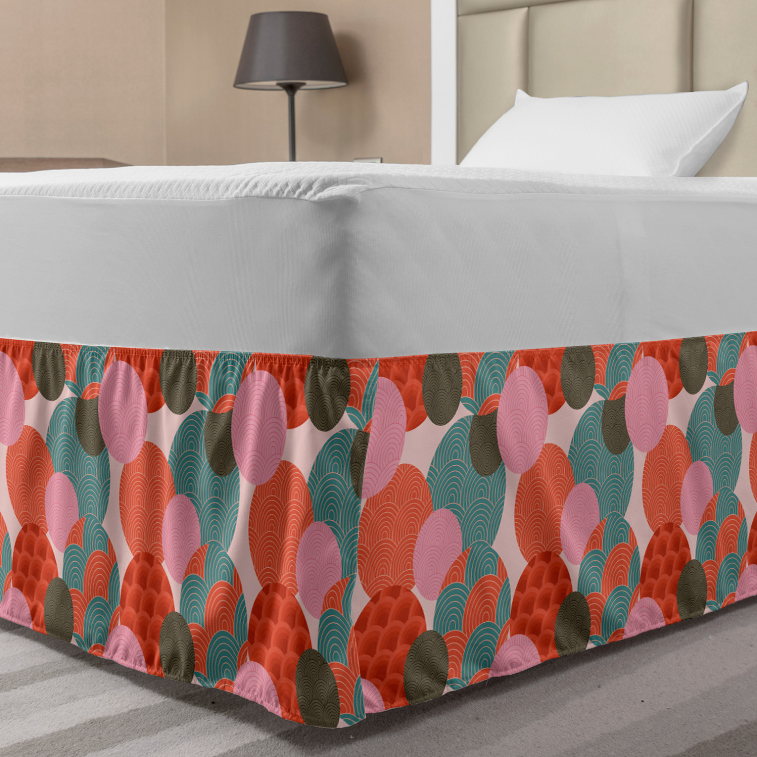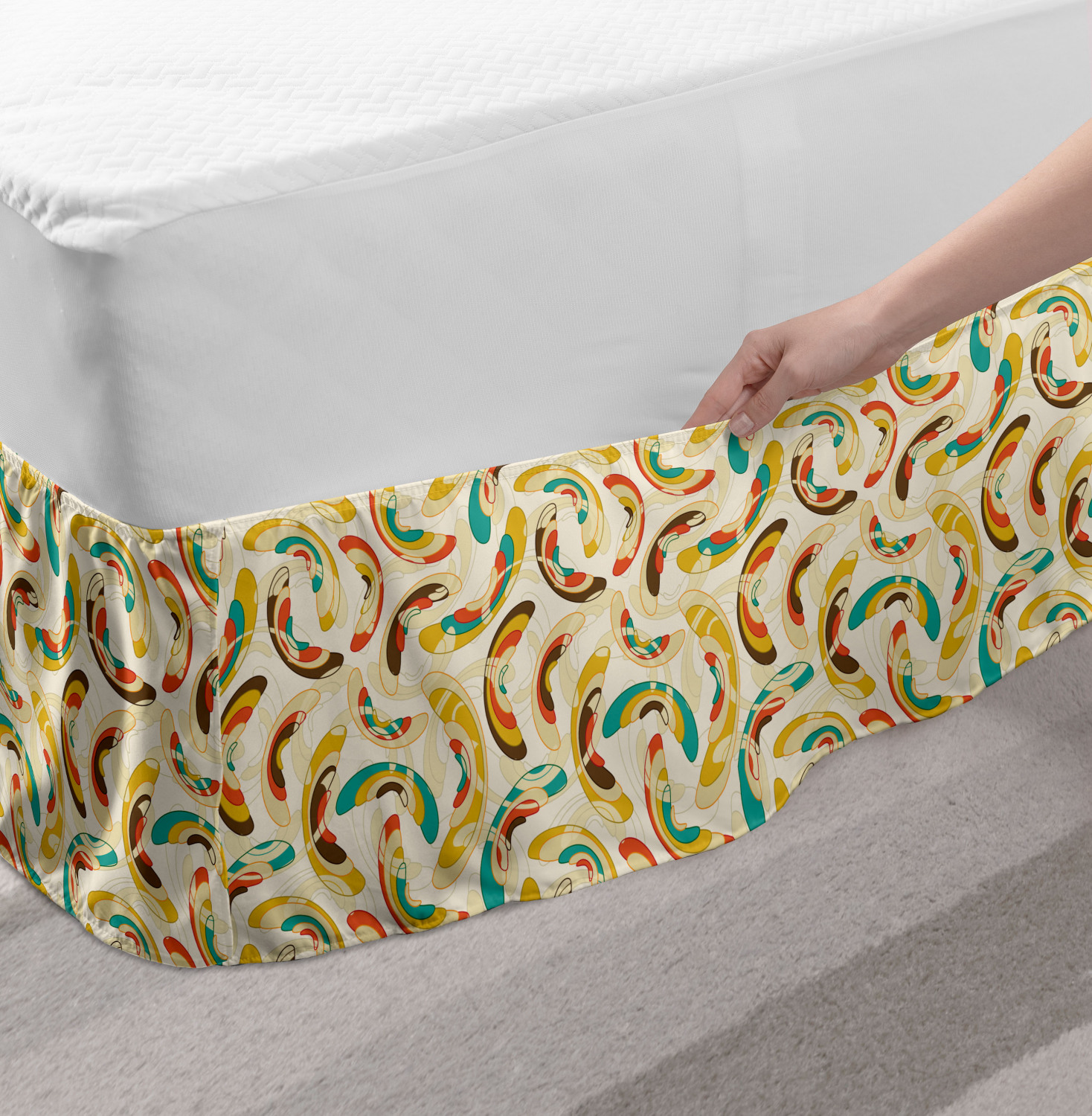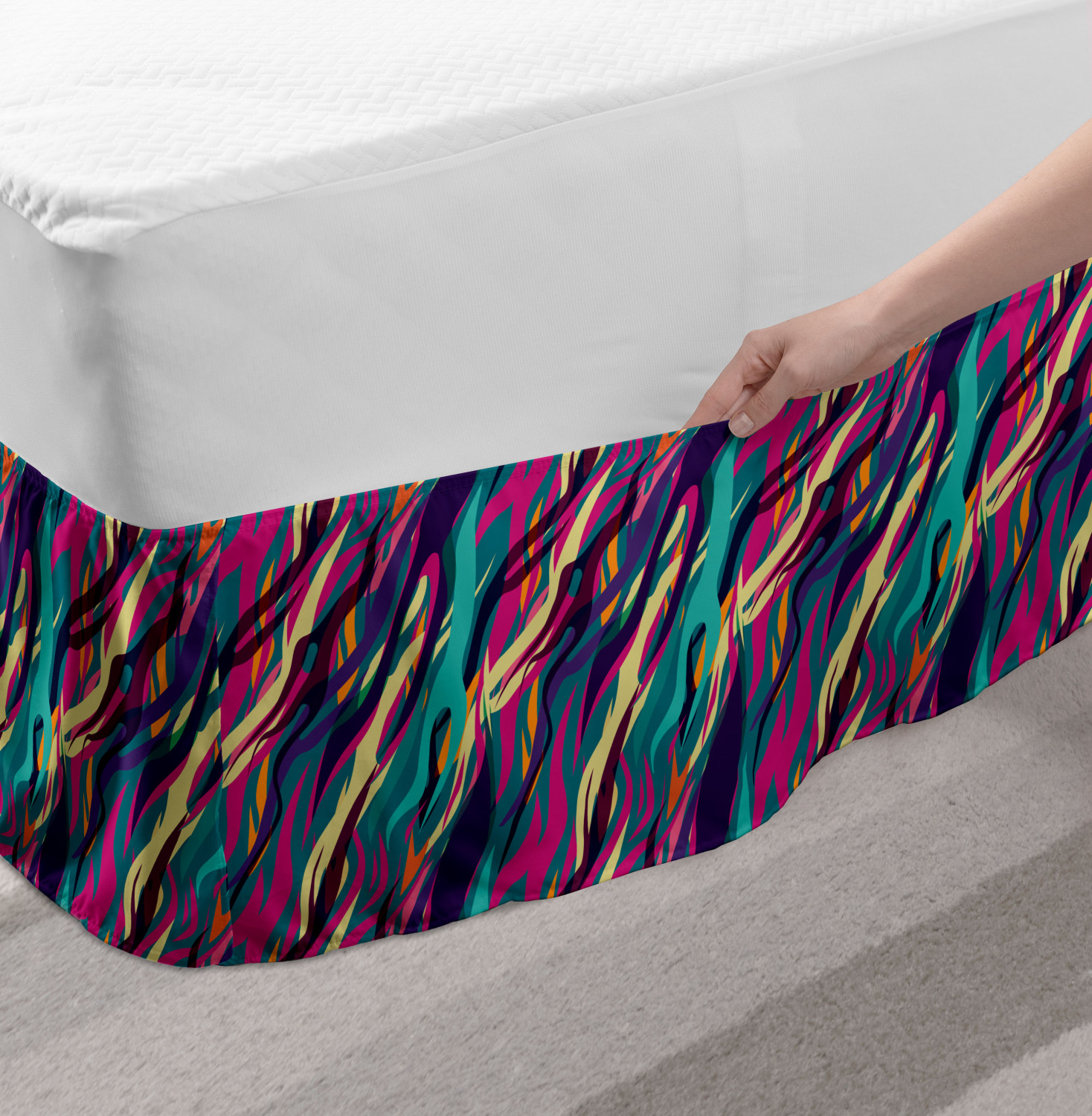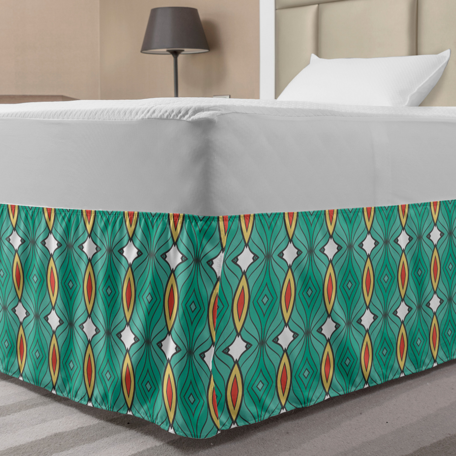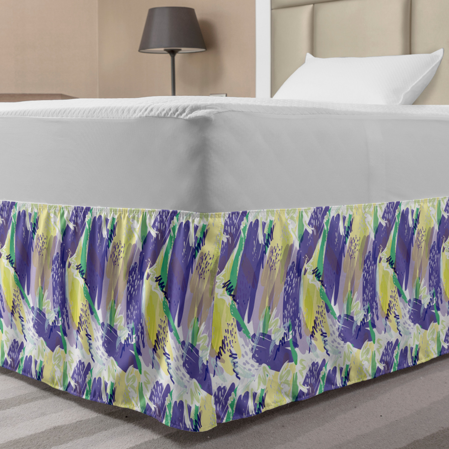 Ambesonne Absurd Pattern Bedskirt Elastic Wrap Around Skirt Gathered Design Ambesonne Bedskirt Bedroom Decor Wrap Around Elastic Bed Skirt Gathered Design In 4 sizes. 15 inches drop. All around wrap gathered. MADE IN TURKEY. MADE FROM - High quality 100% brushed soft microfiber fabric. Suitable for most types of beds. FEATURES - Install easily with elastic straps wrap under the mattress. Stays in place. Split corners. MACHINE WASHABLE - On cold cycle. Dryer safe and iron easy. No fading colors. For bedroom decor. PRINTED - With state of the art digital printing technology. Long-lasting bold colors & clear image. Change your bedroom's style with a simple touch of bedskirt! Our bedskirts are very easy to use; you can easily put around this elastic bed skirt and fasten up with straps under your mattress. Bring new energy to your master suite with colors and thousands of different patterns. You can easily match your bedding sets with our varied bed skirts. You can play safe and create vintage decor easily with these bed ruffles that belongs to retro-times. But you can ask for novelty and combine this piece with your modern choices. Our bed skirt is smartly designed with modern split corners. And you don't need to worry if it gets dusty or dirty. Just machine wash in the cold cycle and tumble dry on low. Thanks to new printing techniques the colors will not fade easily. Design a neat look for your bed with this gathered bed skirt. It is designed with a slim/low style ruffle to catch a more contemporary line. You can give these bed skirts as a Christmas, birthday, wedding gift, mother's day or house warming gift. It can be a great present for your mother, father, newly married friends, grandmother, aunt, uncle. The digital images we display have the most accurate color possible, however, due to differences in computer monitors, we cannot be responsible for variations in color between the actual product and your screen. Due to manual measurement, please kindly allow 1-2 cm discrepancy.