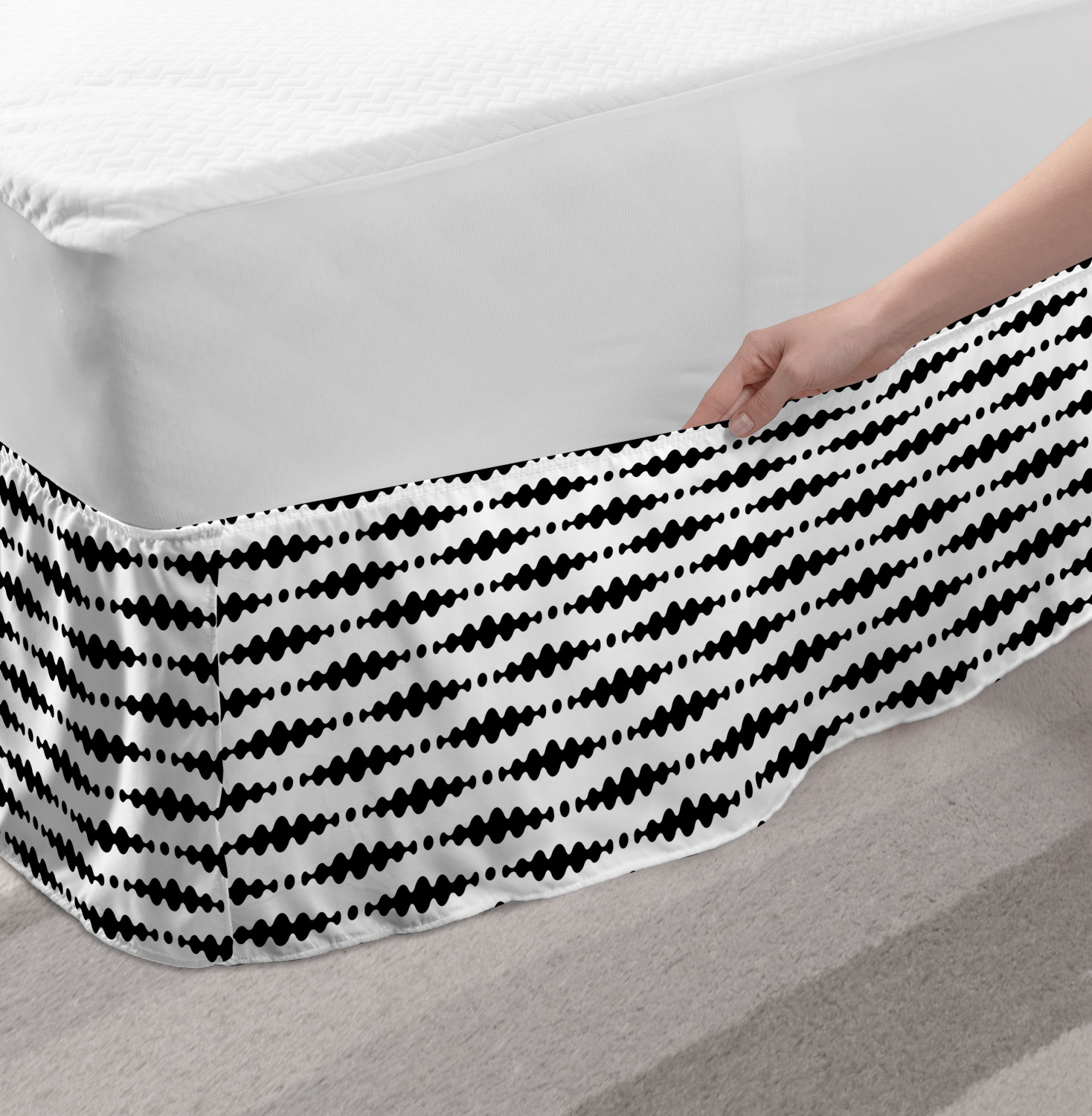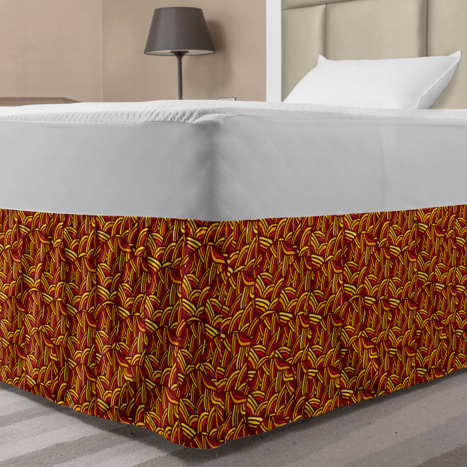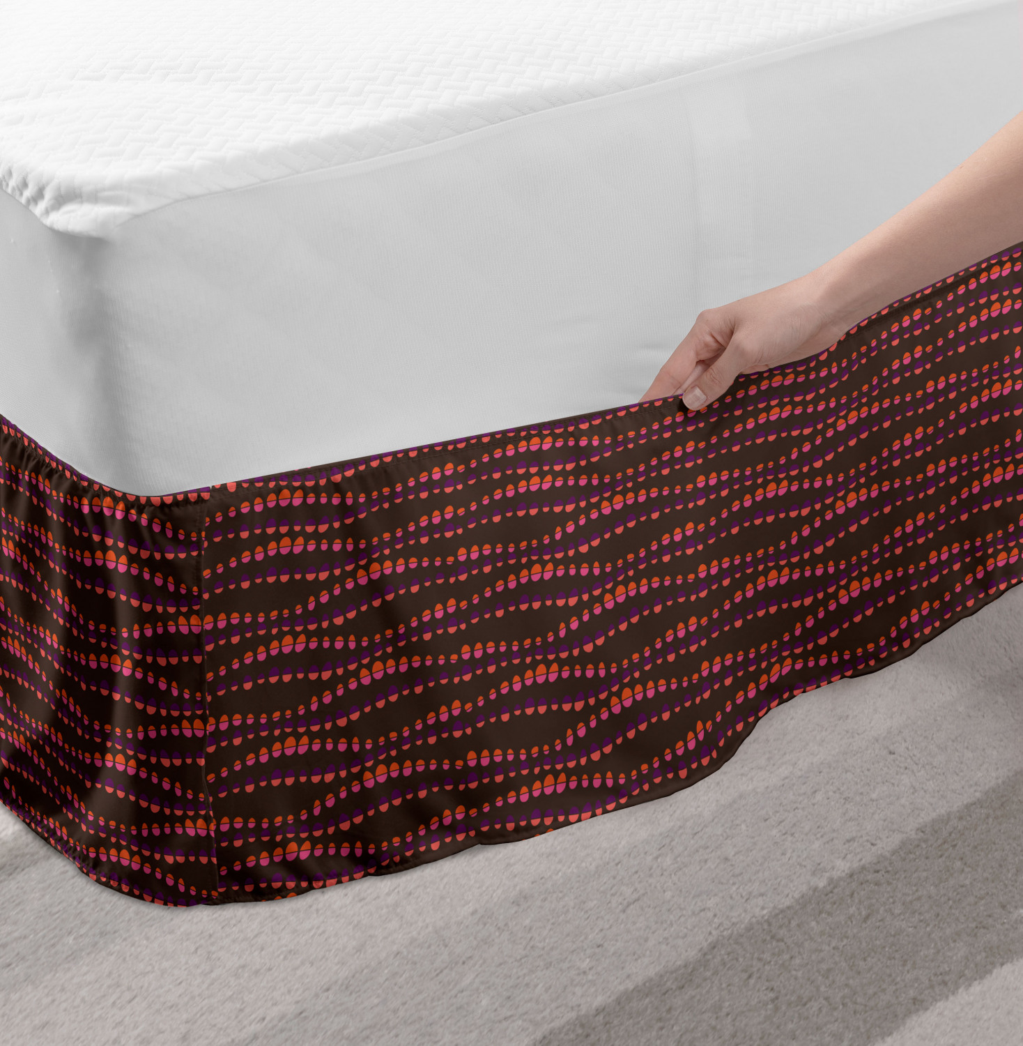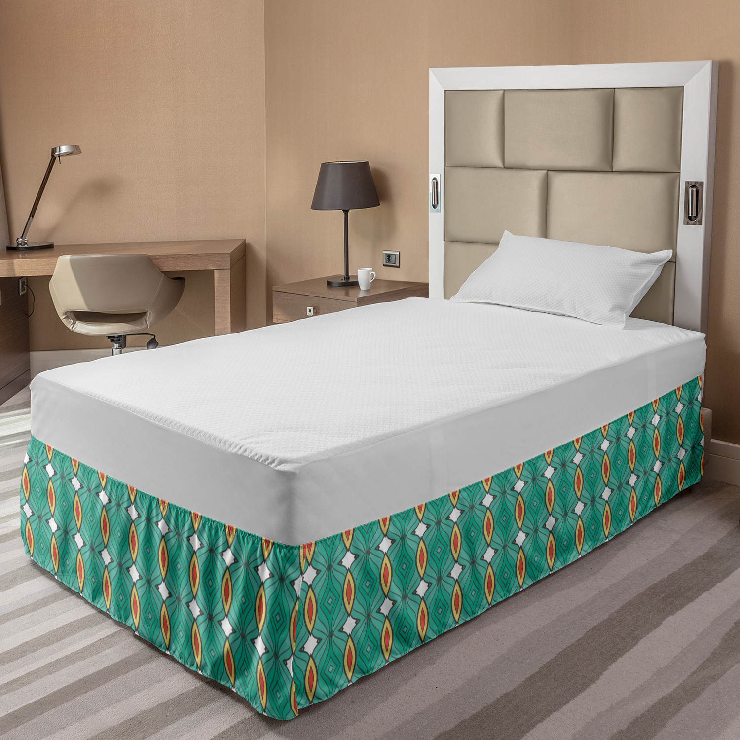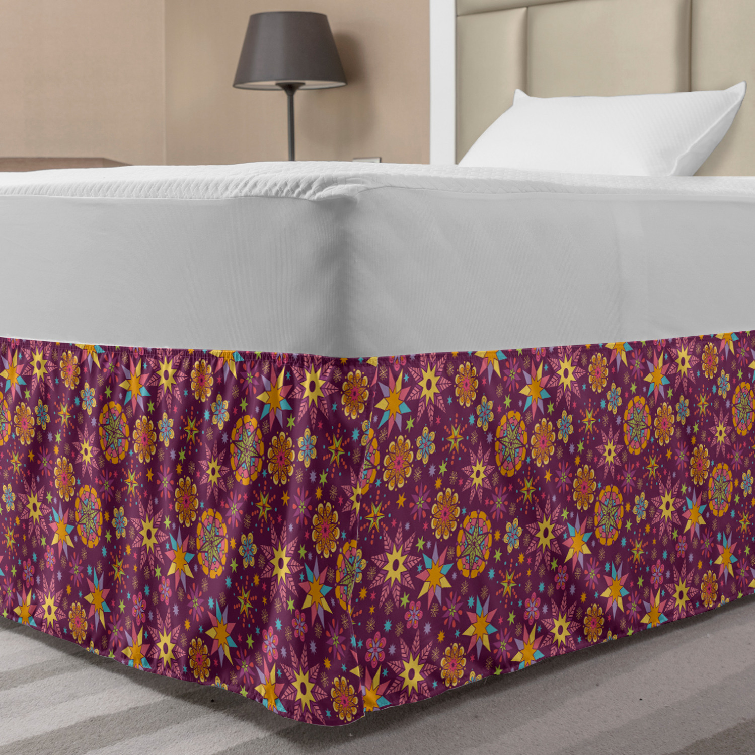 Ambesonne Absurd Pattern Bedskirt Elastic Wrap Around Skirt Gathered Design Ambesonne Bedskirt Bedroom Decor Wrap Around Elastic Bed Skirt Gathered Design In 4 sizes. 15 inches drop. All around wrap gathered. MADE IN TURKEY. MADE FROM - High quality 100% brushed soft microfiber fabric. Suitable for most types of beds. FEATURES - Install easily with elastic straps wrap under the mattress. Stays in place. Split corners. MACHINE WASHABLE - On cold cycle. Dryer safe and iron easy. No fading colors. For bedroom decor. PRINTED - With state of the art digital printing technology. Long-lasting bold colors & clear image. Change your bedroom's style with a simple touch of bedskirt! Our bedskirts are very easy to use; you can easily put around this elastic bed skirt and fasten up with straps under your mattress. Bring new energy to your master suite with colors and thousands of different patterns. You can easily match your bedding sets with our varied bed skirts. You can play safe and create vintage decor easily with these bed ruffles that belongs to retro-times. But you can ask for novelty and combine this piece with your modern choices. Our bed skirt is smartly designed with modern split corners. And you don't need to worry if it gets dusty or dirty. Just machine wash in the cold cycle and tumble dry on low. Thanks to new printing techniques the colors will not fade easily. Design a neat look for your bed with this gathered bed skirt. It is designed with a slim/low style ruffle to catch a more contemporary line. You can give these bed skirts as a Christmas, birthday, wedding gift, mother's day or house warming gift. It can be a great present for your mother, father, newly married friends, grandmother, aunt, uncle. The digital images we display have the most accurate color possible, however, due to differences in computer monitors, we cannot be responsible for variations in color between the actual product and your screen. Due to manual measurement, please kindly allow 1-2 cm discrepancy.