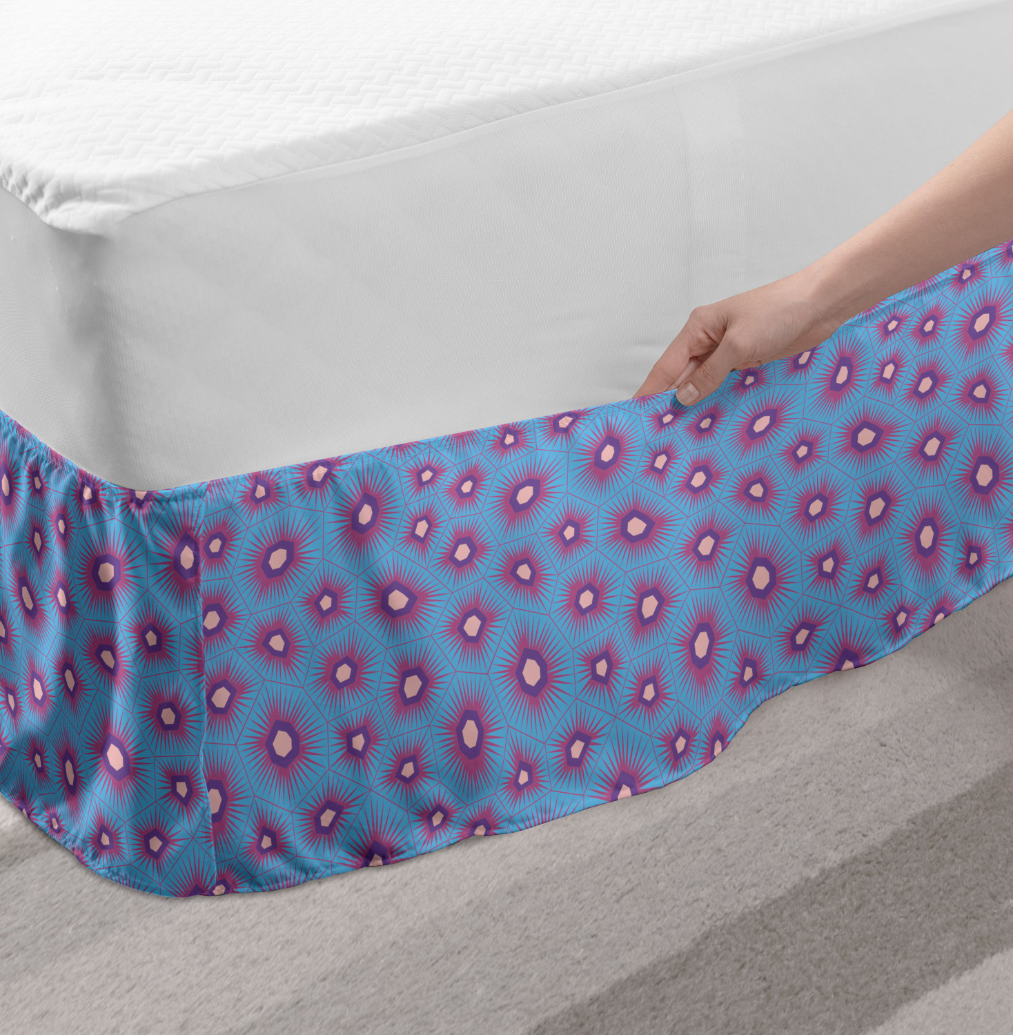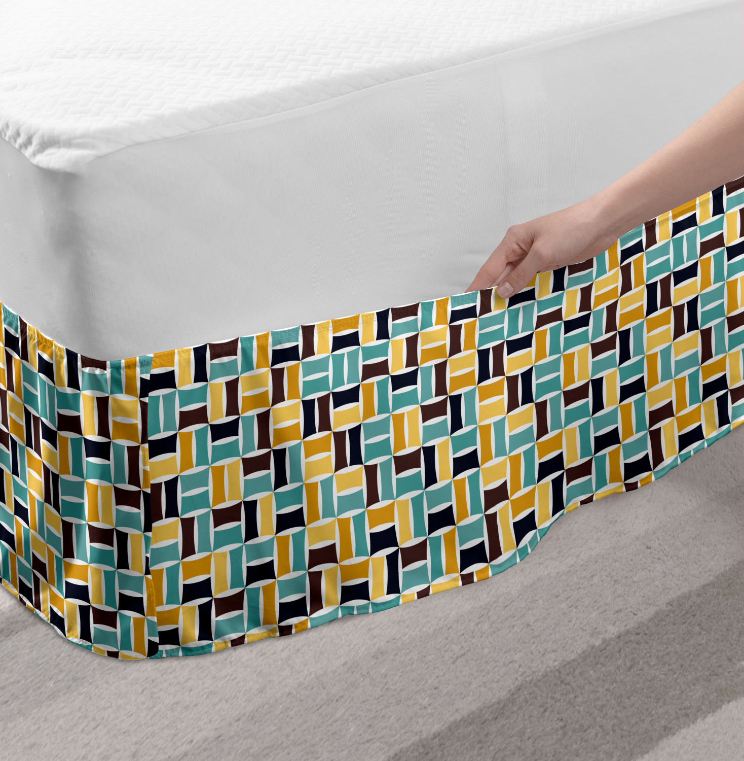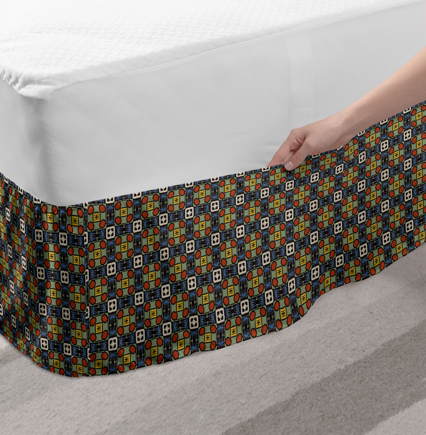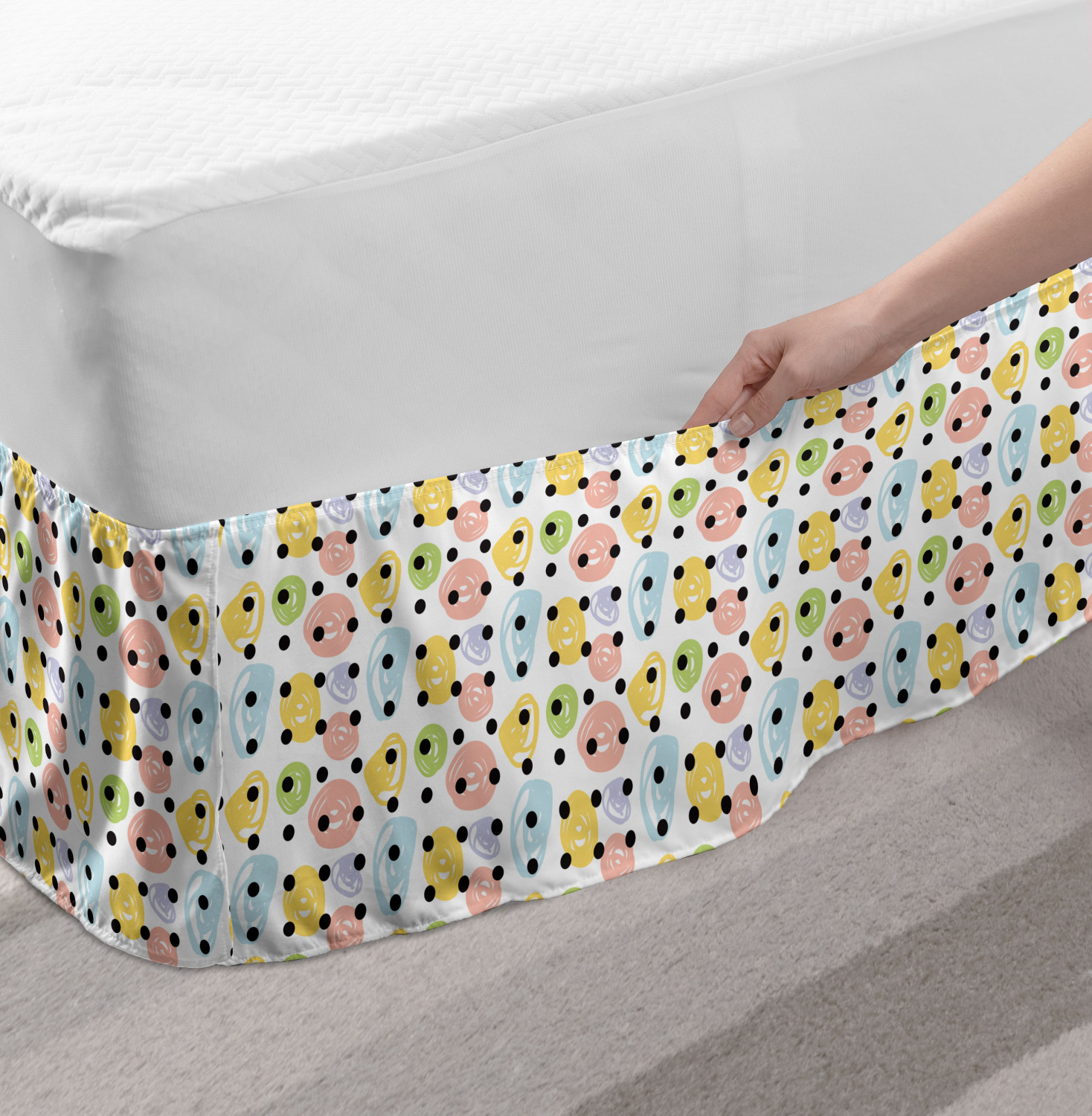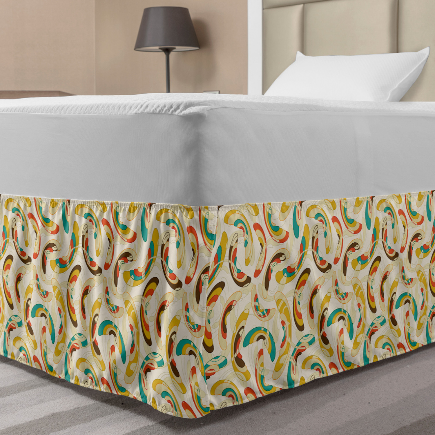 Ambesonne Absurd Pattern Bedskirt Elastic Wrap Around Skirt Gathered Design Ambesonne Bedskirt Bedroom Decor Wrap Around Elastic Bed Skirt Gathered Design In 4 sizes. 15 inches drop. All around wrap gathered. MADE IN TURKEY. MADE FROM - High quality 100% brushed soft microfiber fabric. Suitable for most types of beds. FEATURES - Install easily with elastic straps wrap under the mattress. Stays in place. Split corners. MACHINE WASHABLE - On cold cycle. Dryer safe and iron easy. No fading colors. For bedroom decor. PRINTED - With state of the art digital printing technology. Long-lasting bold colors & clear image. Change your bedroom's style with a simple touch of bedskirt! Our bedskirts are very easy to use; you can easily put around this elastic bed skirt and fasten up with straps under your mattress. Bring new energy to your master suite with colors and thousands of different patterns. You can easily match your bedding sets with our varied bed skirts. You can play safe and create vintage decor easily with these bed ruffles that belongs to retro-times. But you can ask for novelty and combine this piece with your modern choices. Our bed skirt is smartly designed with modern split corners. And you don't need to worry if it gets dusty or dirty. Just machine wash in the cold cycle and tumble dry on low. Thanks to new printing techniques the colors will not fade easily. Design a neat look for your bed with this gathered bed skirt. It is designed with a slim/low style ruffle to catch a more contemporary line. You can give these bed skirts as a Christmas, birthday, wedding gift, mother's day or house warming gift. It can be a great present for your mother, father, newly married friends, grandmother, aunt, uncle. The digital images we display have the most accurate color possible, however, due to differences in computer monitors, we cannot be responsible for variations in color between the actual product and your screen. Due to manual measurement, please kindly allow 1-2 cm discrepancy.
