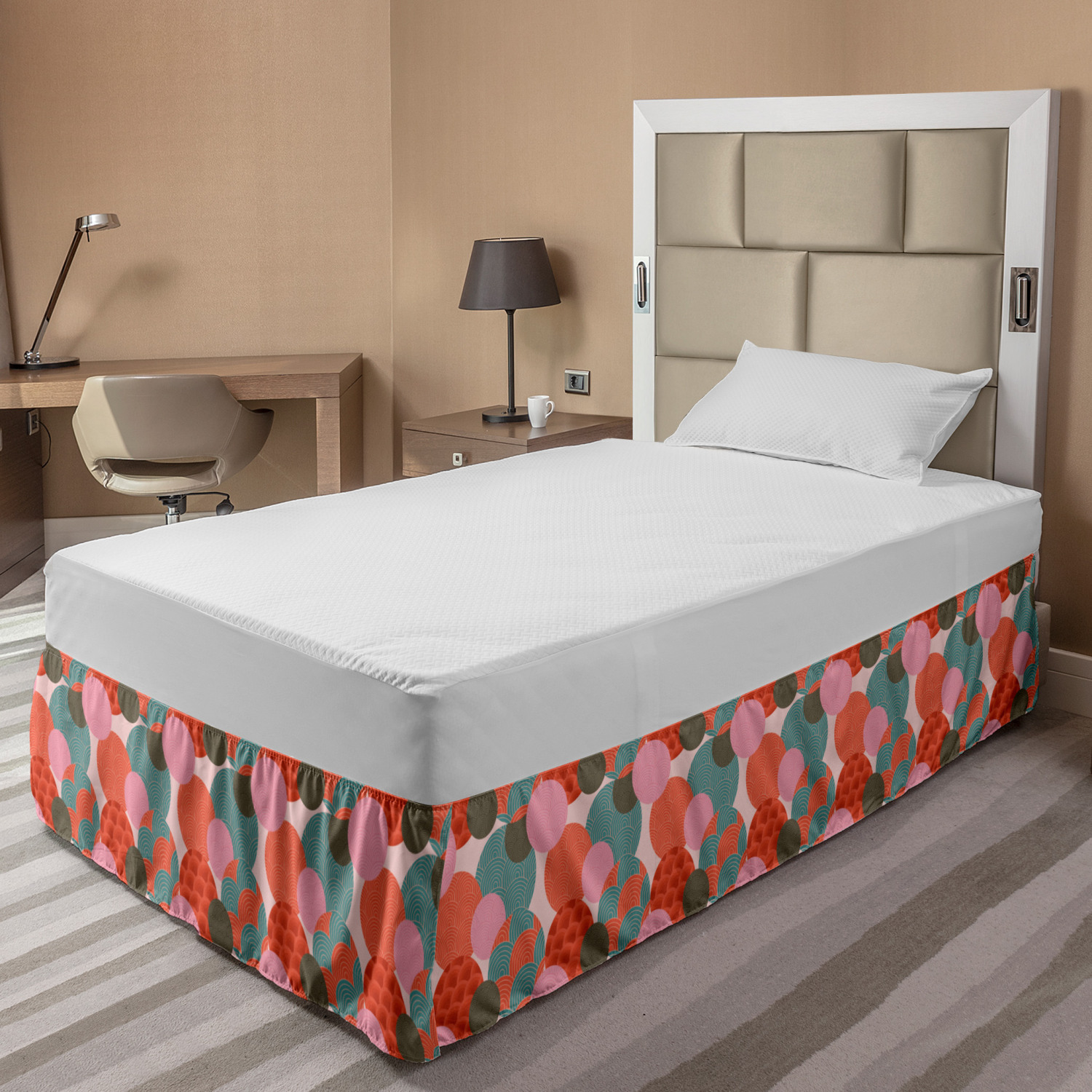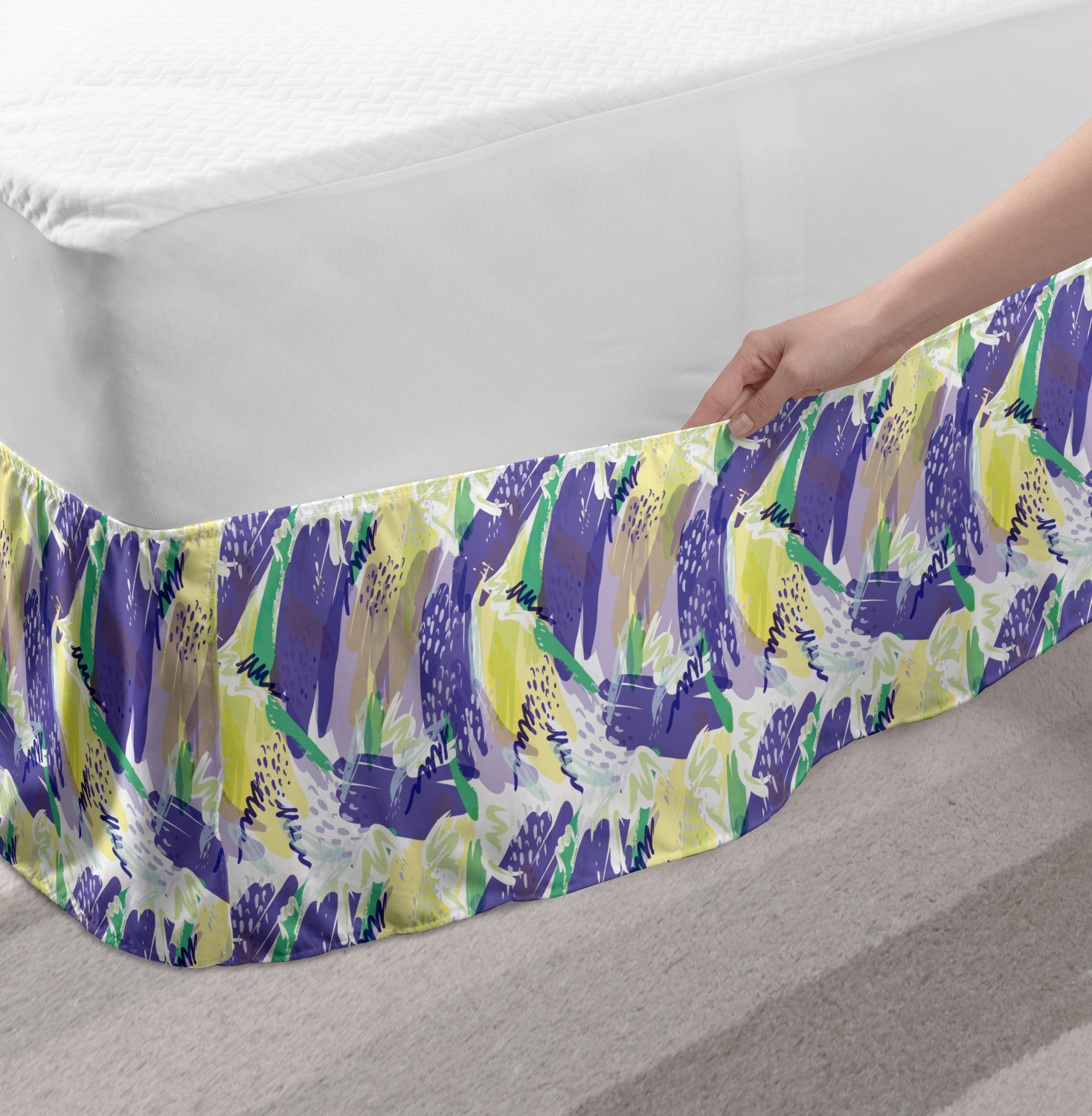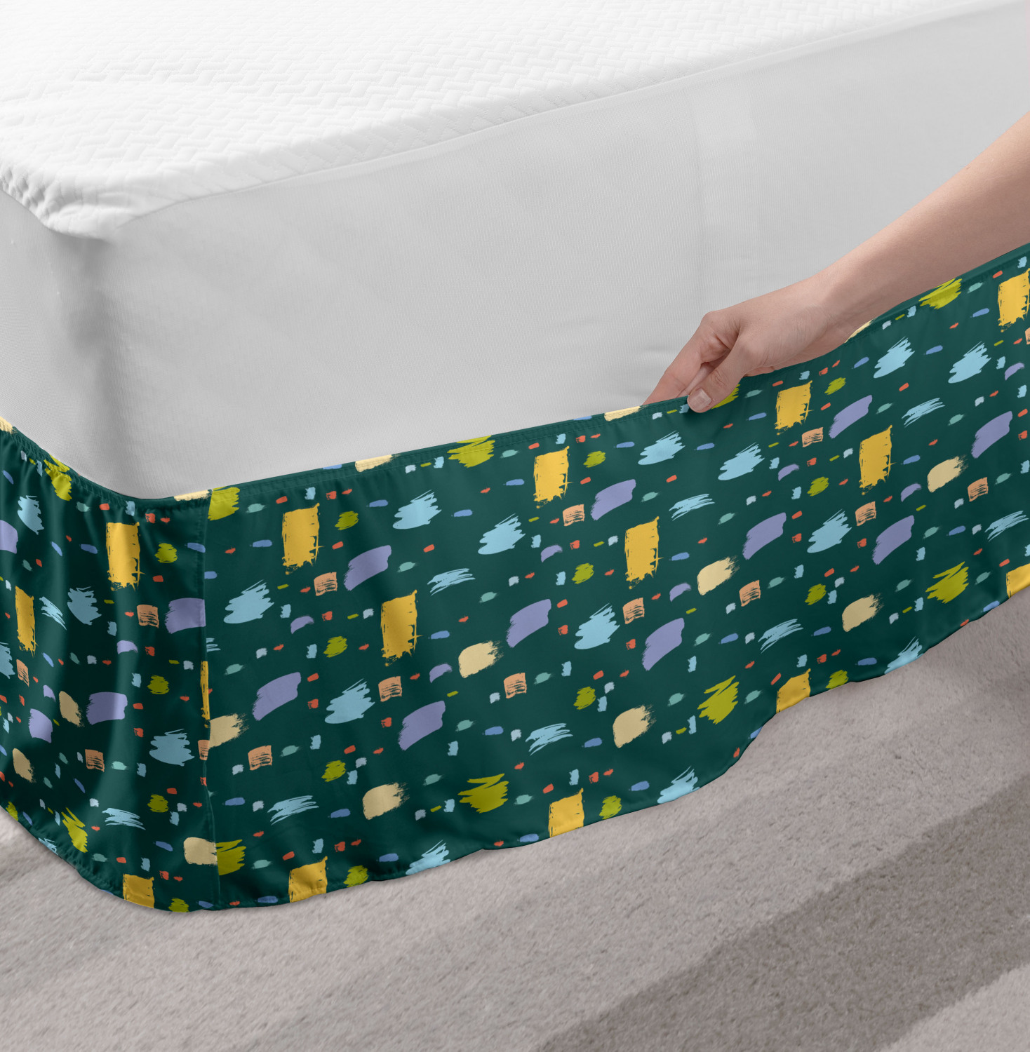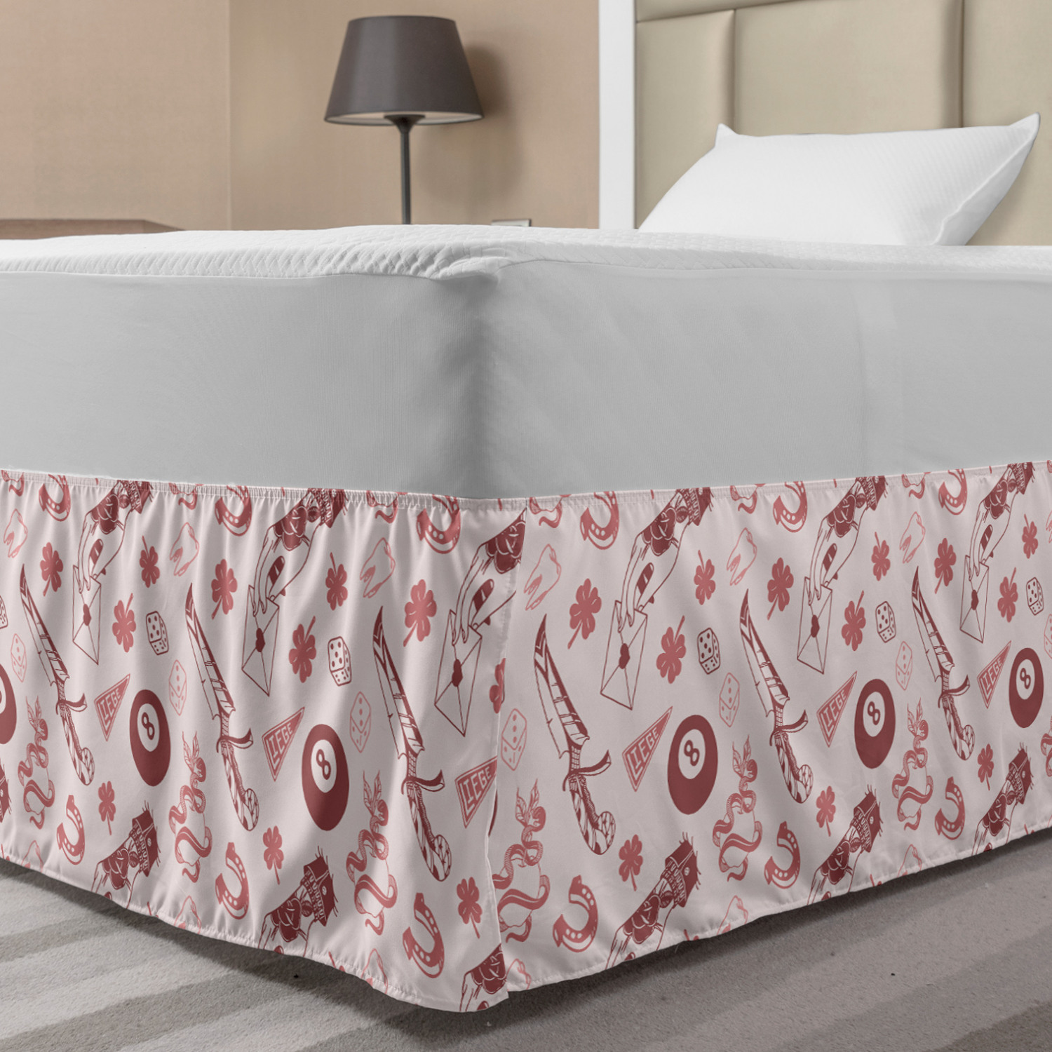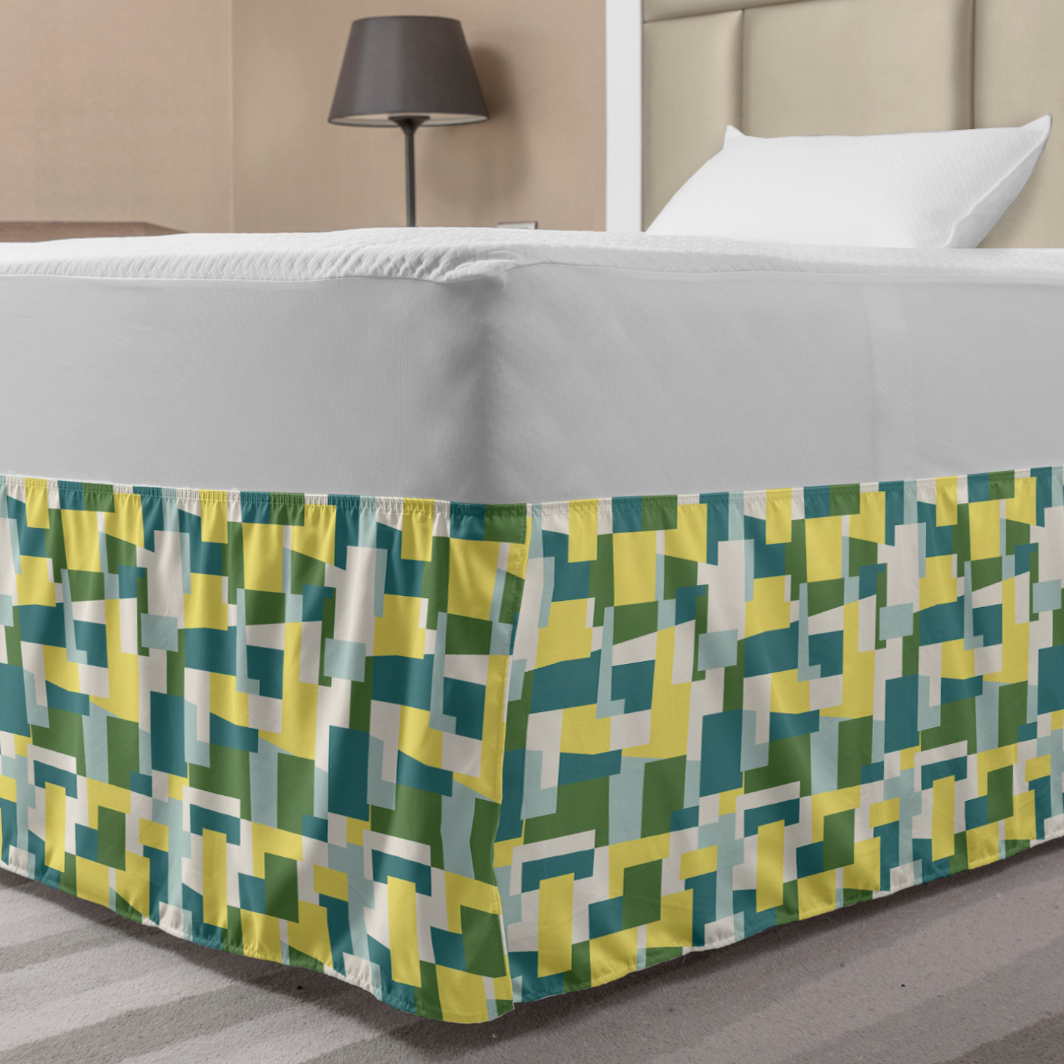 Ambesonne Absurd Pattern Bedskirt Elastic Wrap Around Skirt Gathered Design Ambesonne Bedskirt Bedroom Decor Wrap Around Elastic Bed Skirt Gathered Design In 4 sizes. 15 inches drop. All around wrap gathered. MADE IN TURKEY. MADE FROM - High quality 100% brushed soft microfiber fabric. Suitable for most types of beds. FEATURES - Install easily with elastic straps wrap under the mattress. Stays in place. Split corners. MACHINE WASHABLE - On cold cycle. Dryer safe and iron easy. No fading colors. For bedroom decor. PRINTED - With state of the art digital printing technology. Long-lasting bold colors & clear image. Change your bedroom's style with a simple touch of bedskirt! Our bedskirts are very easy to use; you can easily put around this elastic bed skirt and fasten up with straps under your mattress. Bring new energy to your master suite with colors and thousands of different patterns. You can easily match your bedding sets with our varied bed skirts. You can play safe and create vintage decor easily with these bed ruffles that belongs to retro-times. But you can ask for novelty and combine this piece with your modern choices. Our bed skirt is smartly designed with modern split corners. And you don't need to worry if it gets dusty or dirty. Just machine wash in the cold cycle and tumble dry on low. Thanks to new printing techniques the colors will not fade easily. Design a neat look for your bed with this gathered bed skirt. It is designed with a slim/low style ruffle to catch a more contemporary line. You can give these bed skirts as a Christmas, birthday, wedding gift, mother's day or house warming gift. It can be a great present for your mother, father, newly married friends, grandmother, aunt, uncle. The digital images we display have the most accurate color possible, however, due to differences in computer monitors, we cannot be responsible for variations in color between the actual product and your screen. Due to manual measurement, please kindly allow 1-2 cm discrepancy.