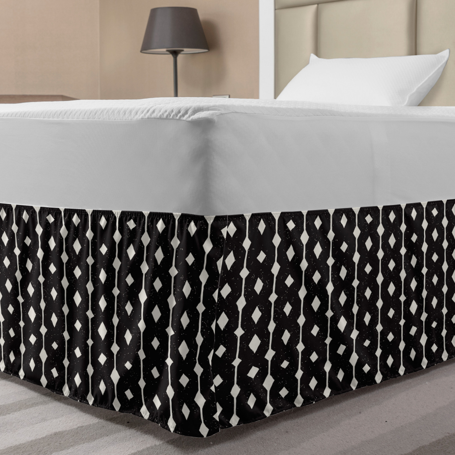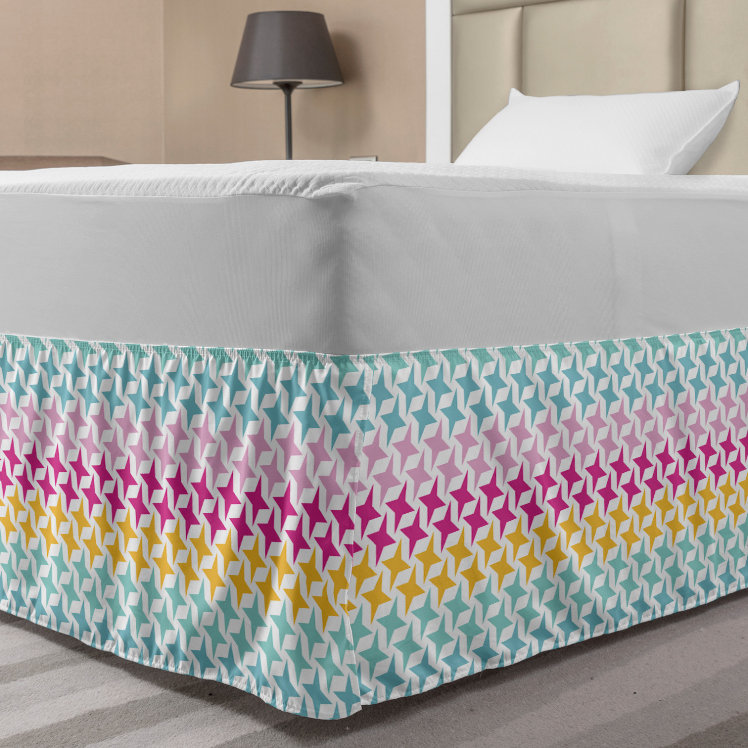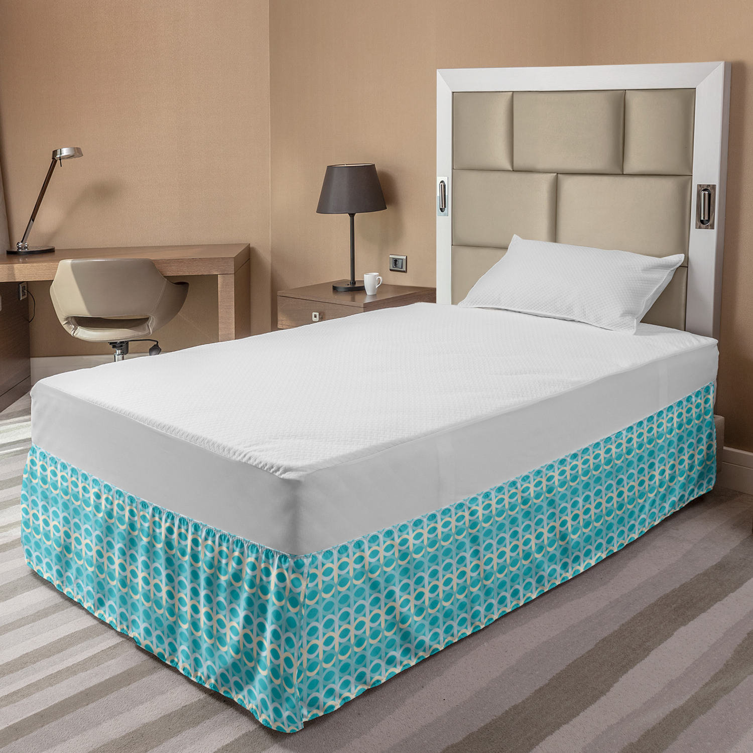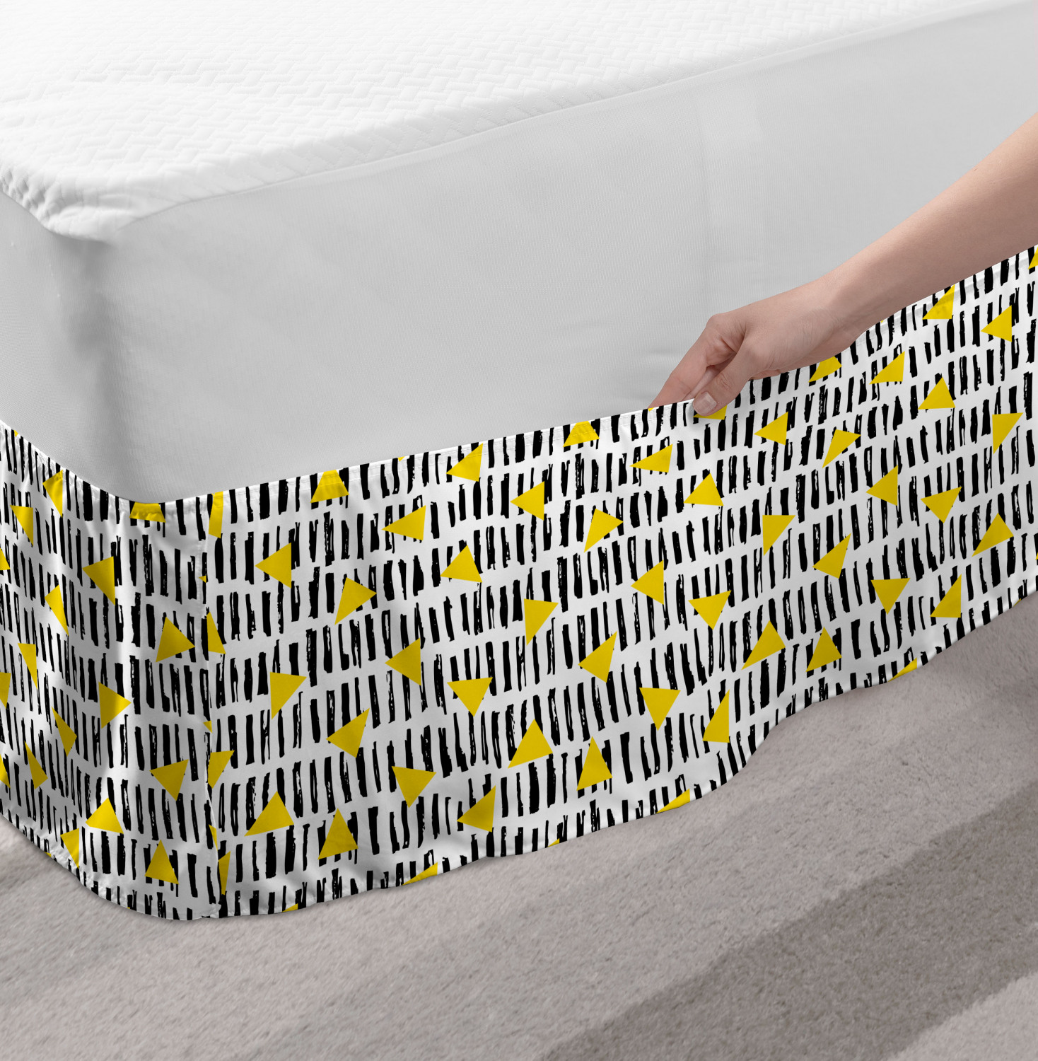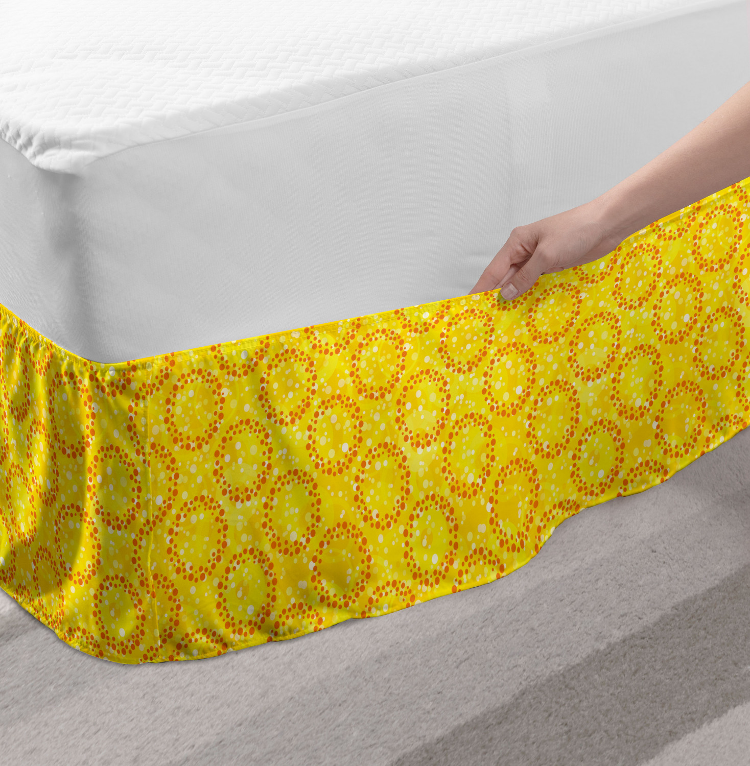Ambesonne Absurd Pattern Bedskirt Elastic Wrap Around Skirt Gathered Design Ambesonne Bedskirt Bedroom Decor Wrap Around Elastic Bed Skirt Gathered Design In 4 sizes. 15 inches drop. All around wrap gathered. MADE IN TURKEY. MADE FROM - High quality 100% brushed soft microfiber fabric. Suitable for most types of beds. FEATURES - Install easily with elastic straps wrap under the mattress. Stays in place. Split corners. MACHINE WASHABLE - On cold cycle. Dryer safe and iron easy. No fading colors. For bedroom decor. PRINTED - With state of the art digital printing technology. Long-lasting bold colors & clear image. Change your bedroom's style with a simple touch of bedskirt! Our bedskirts are very easy to use; you can easily put around this elastic bed skirt and fasten up with straps under your mattress. Bring new energy to your master suite with colors and thousands of different patterns. You can easily match your bedding sets with our varied bed skirts. You can play safe and create vintage decor easily with these bed ruffles that belongs to retro-times. But you can ask for novelty and combine this piece with your modern choices. Our bed skirt is smartly designed with modern split corners. And you don't need to worry if it gets dusty or dirty. Just machine wash in the cold cycle and tumble dry on low. Thanks to new printing techniques the colors will not fade easily. Design a neat look for your bed with this gathered bed skirt. It is designed with a slim/low style ruffle to catch a more contemporary line. You can give these bed skirts as a Christmas, birthday, wedding gift, mother's day or house warming gift. It can be a great present for your mother, father, newly married friends, grandmother, aunt, uncle. The digital images we display have the most accurate color possible, however, due to differences in computer monitors, we cannot be responsible for variations in color between the actual product and your screen. Due to manual measurement, please kindly allow 1-2 cm discrepancy.