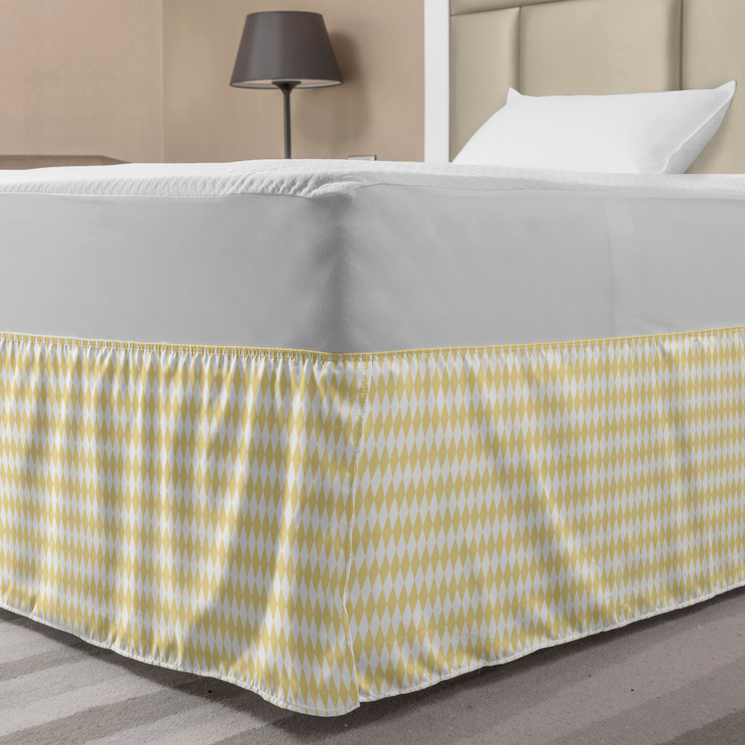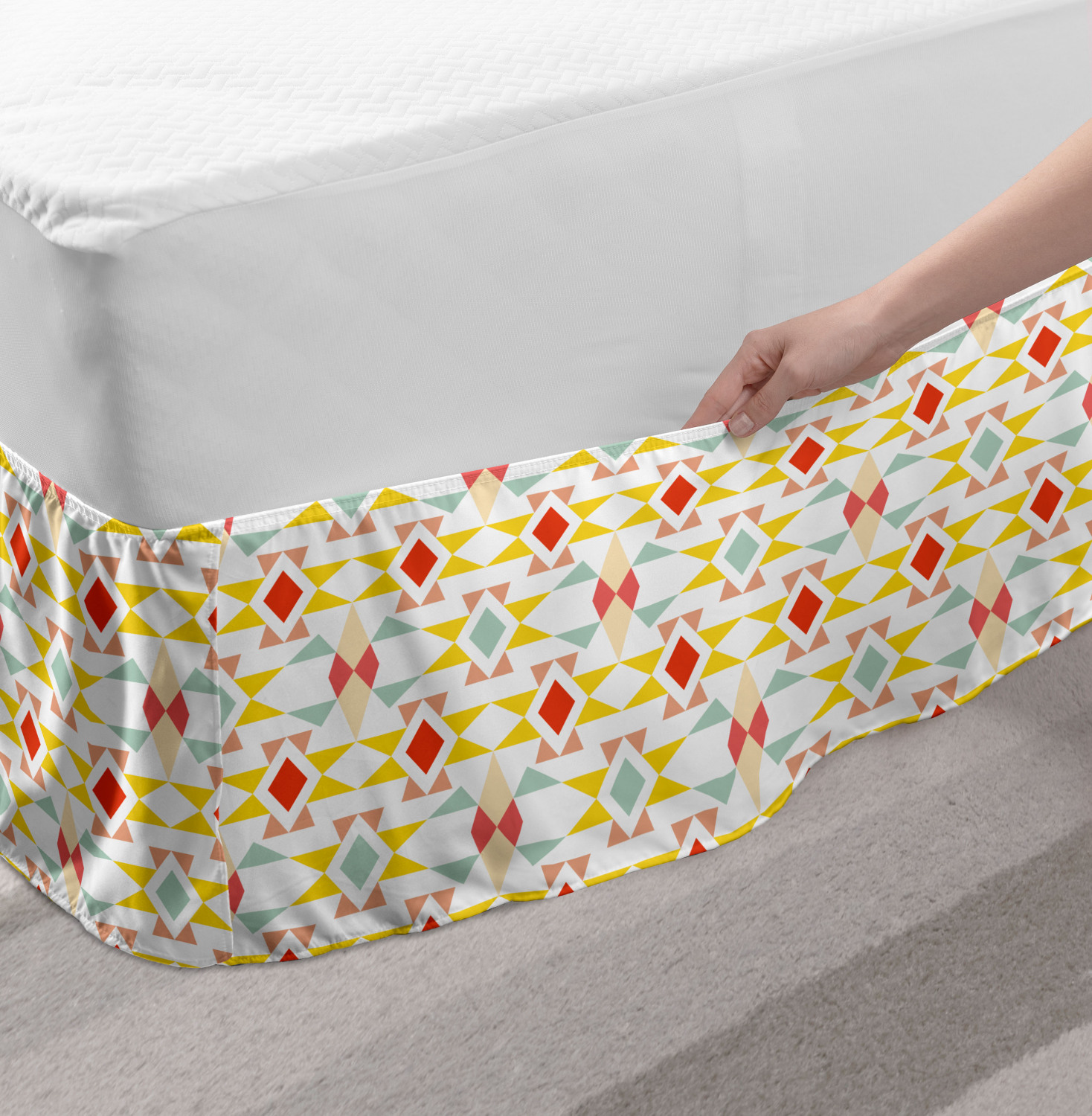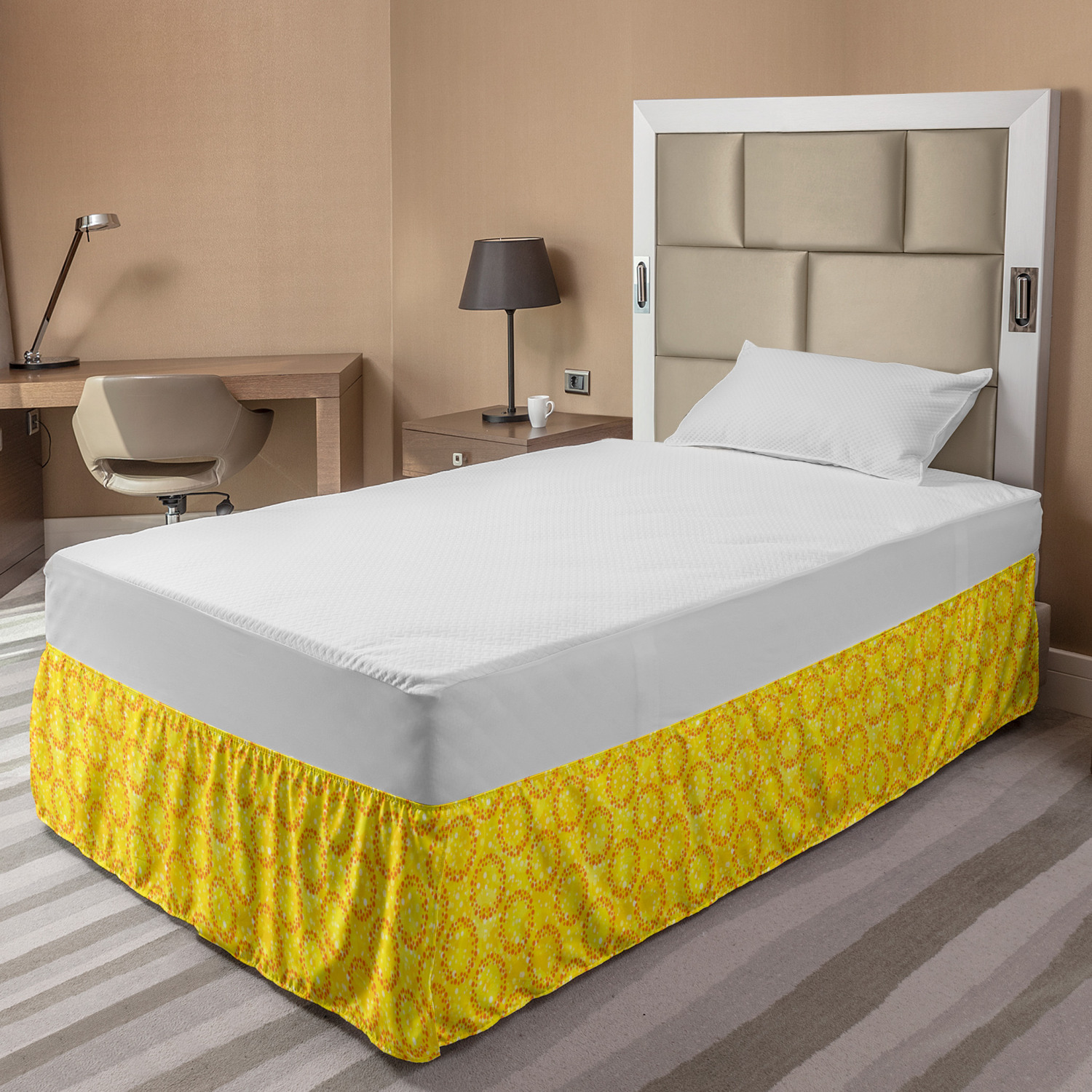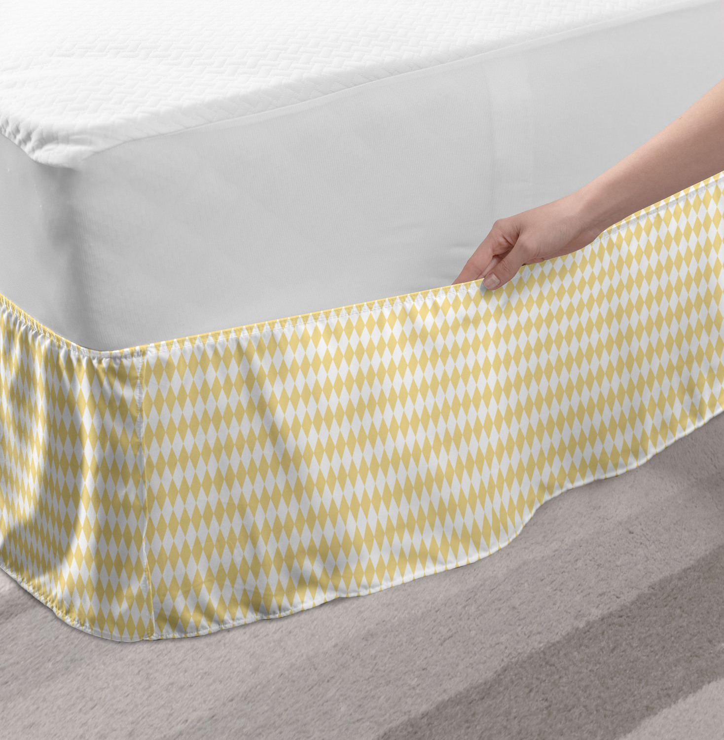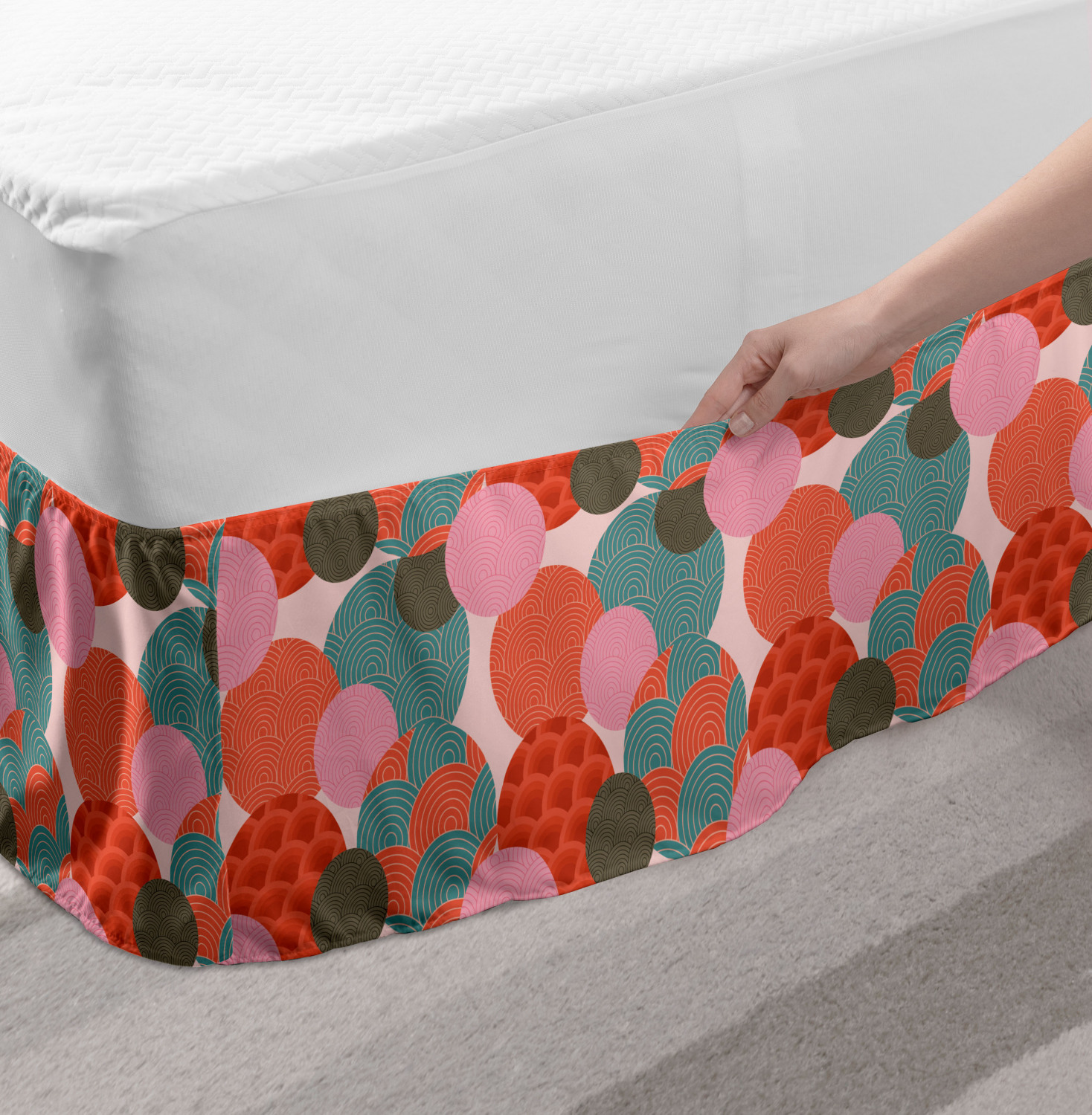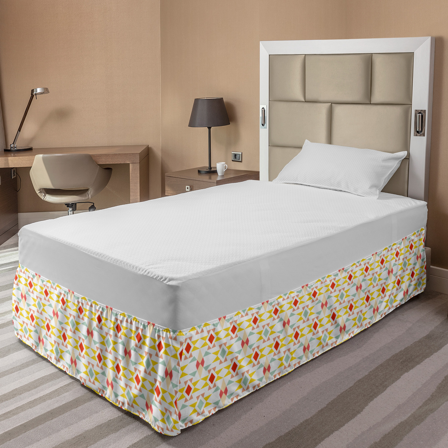 Ambesonne Absurd Pattern Bedskirt Elastic Wrap Around Skirt Gathered Design Ambesonne Bedskirt Bedroom Decor Wrap Around Elastic Bed Skirt Gathered Design In 4 sizes. 15 inches drop. All around wrap gathered. MADE IN TURKEY. MADE FROM - High quality 100% brushed soft microfiber fabric. Suitable for most types of beds. FEATURES - Install easily with elastic straps wrap under the mattress. Stays in place. Split corners. MACHINE WASHABLE - On cold cycle. Dryer safe and iron easy. No fading colors. For bedroom decor. PRINTED - With state of the art digital printing technology. Long-lasting bold colors & clear image. Change your bedroom's style with a simple touch of bedskirt! Our bedskirts are very easy to use; you can easily put around this elastic bed skirt and fasten up with straps under your mattress. Bring new energy to your master suite with colors and thousands of different patterns. You can easily match your bedding sets with our varied bed skirts. You can play safe and create vintage decor easily with these bed ruffles that belongs to retro-times. But you can ask for novelty and combine this piece with your modern choices. Our bed skirt is smartly designed with modern split corners. And you don't need to worry if it gets dusty or dirty. Just machine wash in the cold cycle and tumble dry on low. Thanks to new printing techniques the colors will not fade easily. Design a neat look for your bed with this gathered bed skirt. It is designed with a slim/low style ruffle to catch a more contemporary line. You can give these bed skirts as a Christmas, birthday, wedding gift, mother's day or house warming gift. It can be a great present for your mother, father, newly married friends, grandmother, aunt, uncle. The digital images we display have the most accurate color possible, however, due to differences in computer monitors, we cannot be responsible for variations in color between the actual product and your screen. Due to manual measurement, please kindly allow 1-2 cm discrepancy.