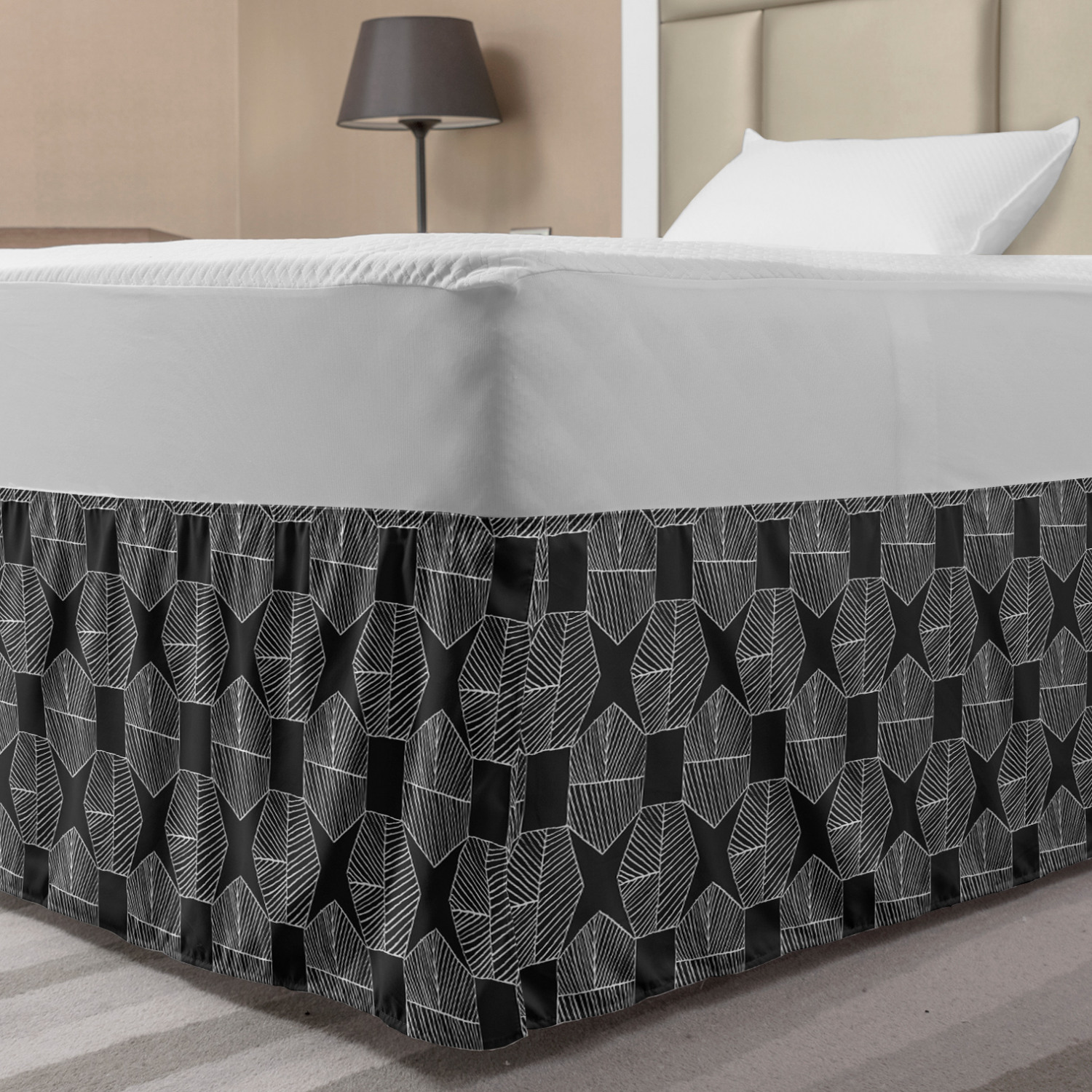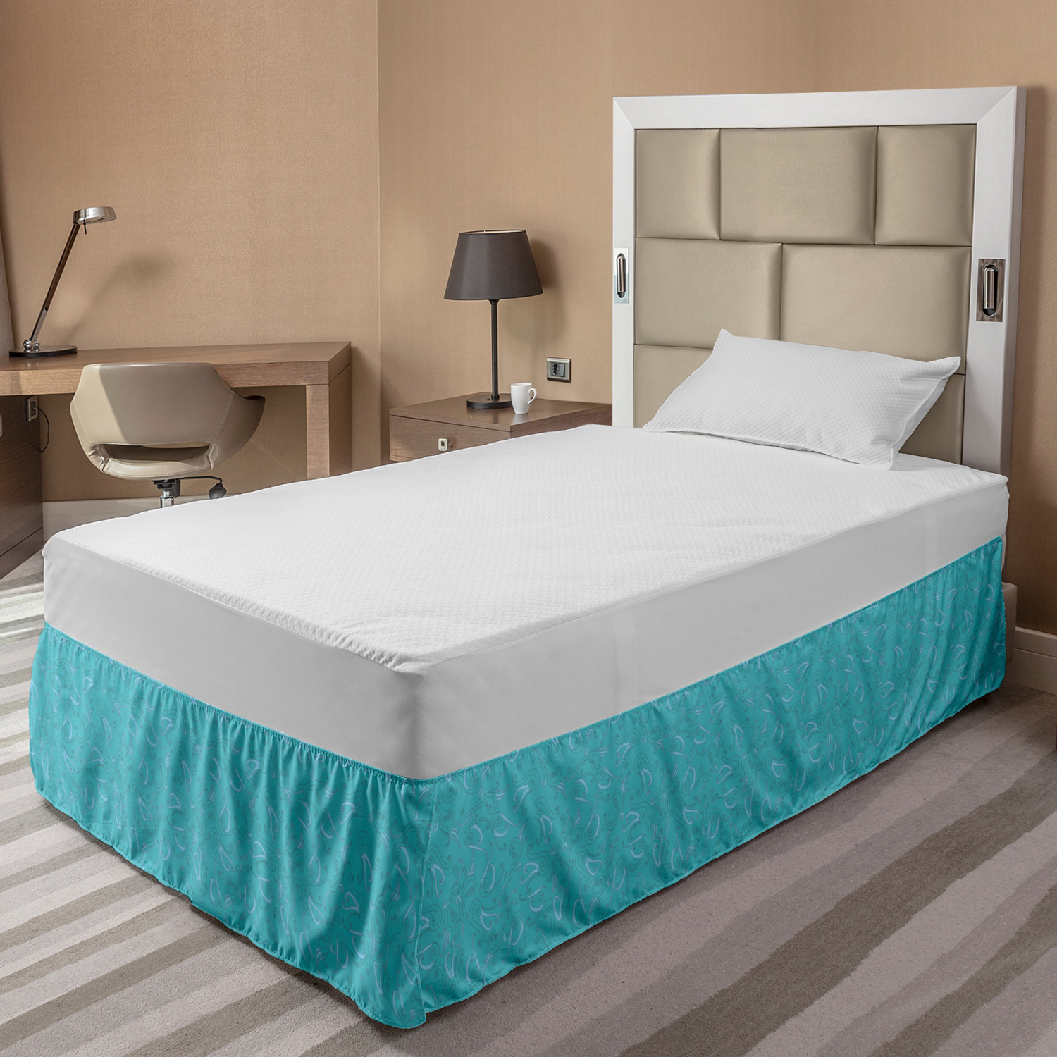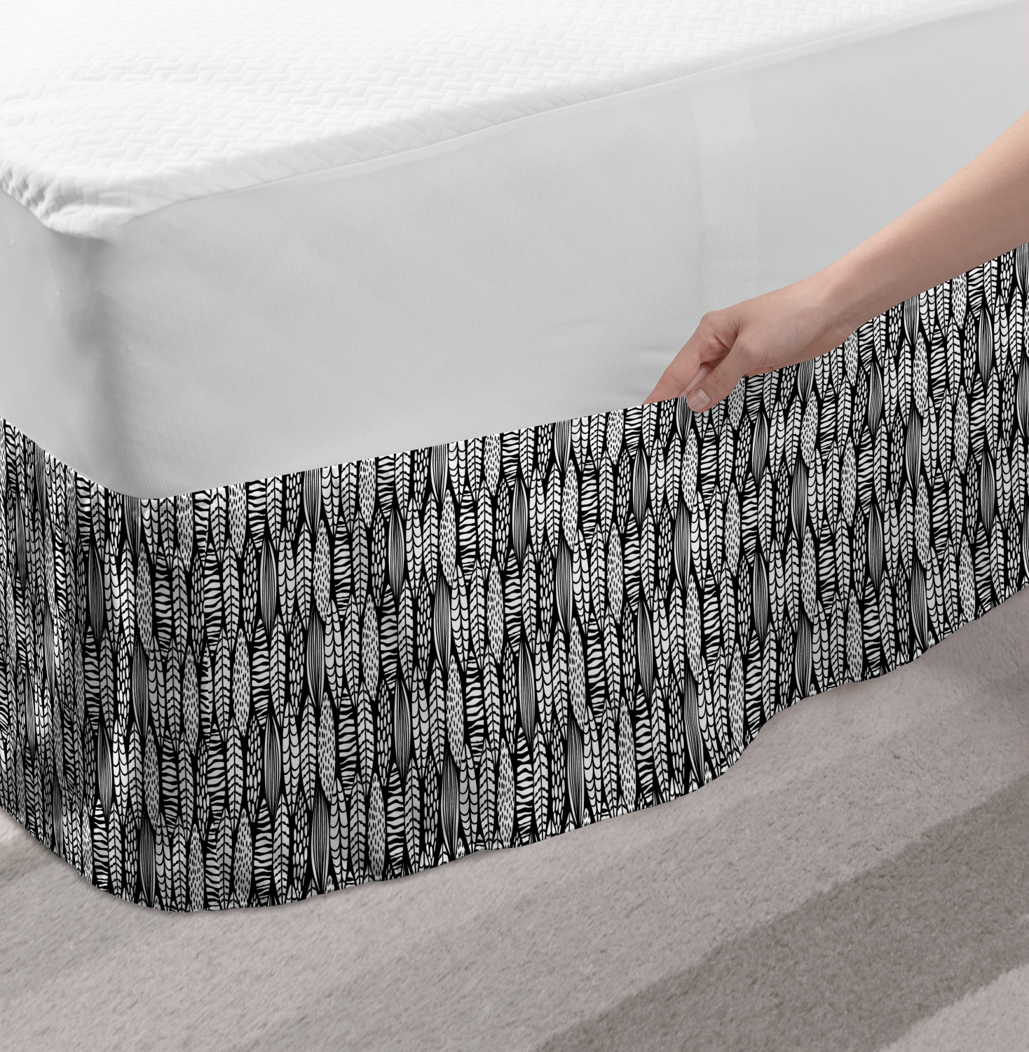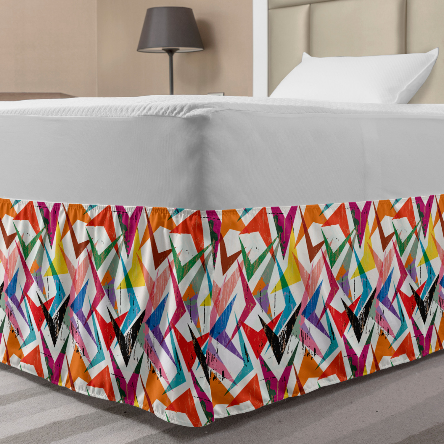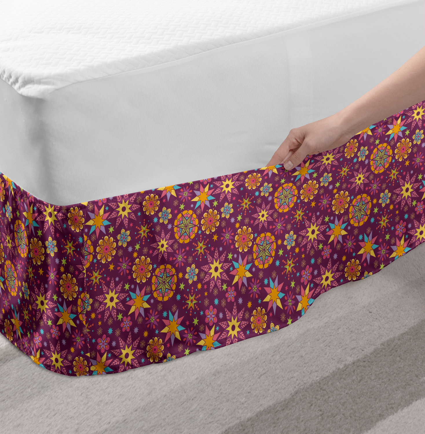 Ambesonne Absurd Pattern Bedskirt Elastic Wrap Around Skirt Gathered Design Ambesonne Bedskirt Bedroom Decor Wrap Around Elastic Bed Skirt Gathered Design In 4 sizes. 15 inches drop. All around wrap gathered. MADE IN TURKEY. MADE FROM - High quality 100% brushed soft microfiber fabric. Suitable for most types of beds. FEATURES - Install easily with elastic straps wrap under the mattress. Stays in place. Split corners. MACHINE WASHABLE - On cold cycle. Dryer safe and iron easy. No fading colors. For bedroom decor. PRINTED - With state of the art digital printing technology. Long-lasting bold colors & clear image. Change your bedroom's style with a simple touch of bedskirt! Our bedskirts are very easy to use; you can easily put around this elastic bed skirt and fasten up with straps under your mattress. Bring new energy to your master suite with colors and thousands of different patterns. You can easily match your bedding sets with our varied bed skirts. You can play safe and create vintage decor easily with these bed ruffles that belongs to retro-times. But you can ask for novelty and combine this piece with your modern choices. Our bed skirt is smartly designed with modern split corners. And you don't need to worry if it gets dusty or dirty. Just machine wash in the cold cycle and tumble dry on low. Thanks to new printing techniques the colors will not fade easily. Design a neat look for your bed with this gathered bed skirt. It is designed with a slim/low style ruffle to catch a more contemporary line. You can give these bed skirts as a Christmas, birthday, wedding gift, mother's day or house warming gift. It can be a great present for your mother, father, newly married friends, grandmother, aunt, uncle. The digital images we display have the most accurate color possible, however, due to differences in computer monitors, we cannot be responsible for variations in color between the actual product and your screen. Due to manual measurement, please kindly allow 1-2 cm discrepancy.