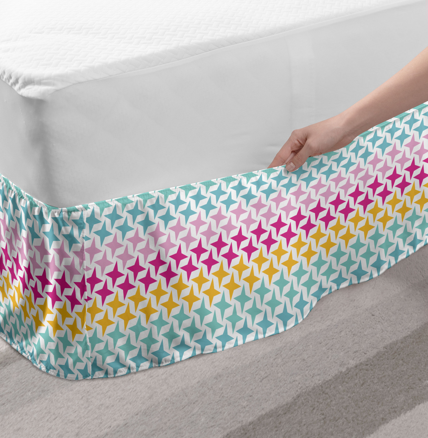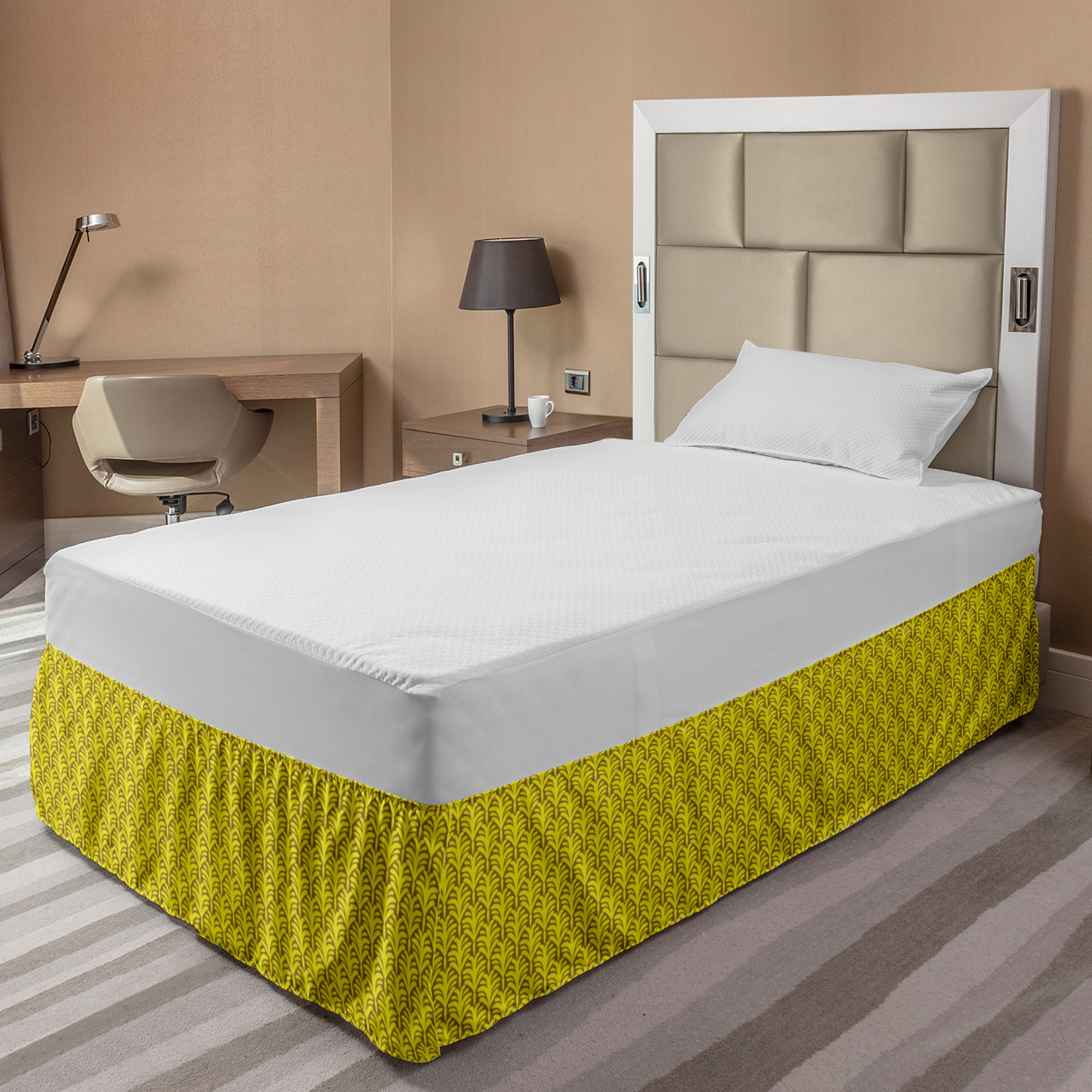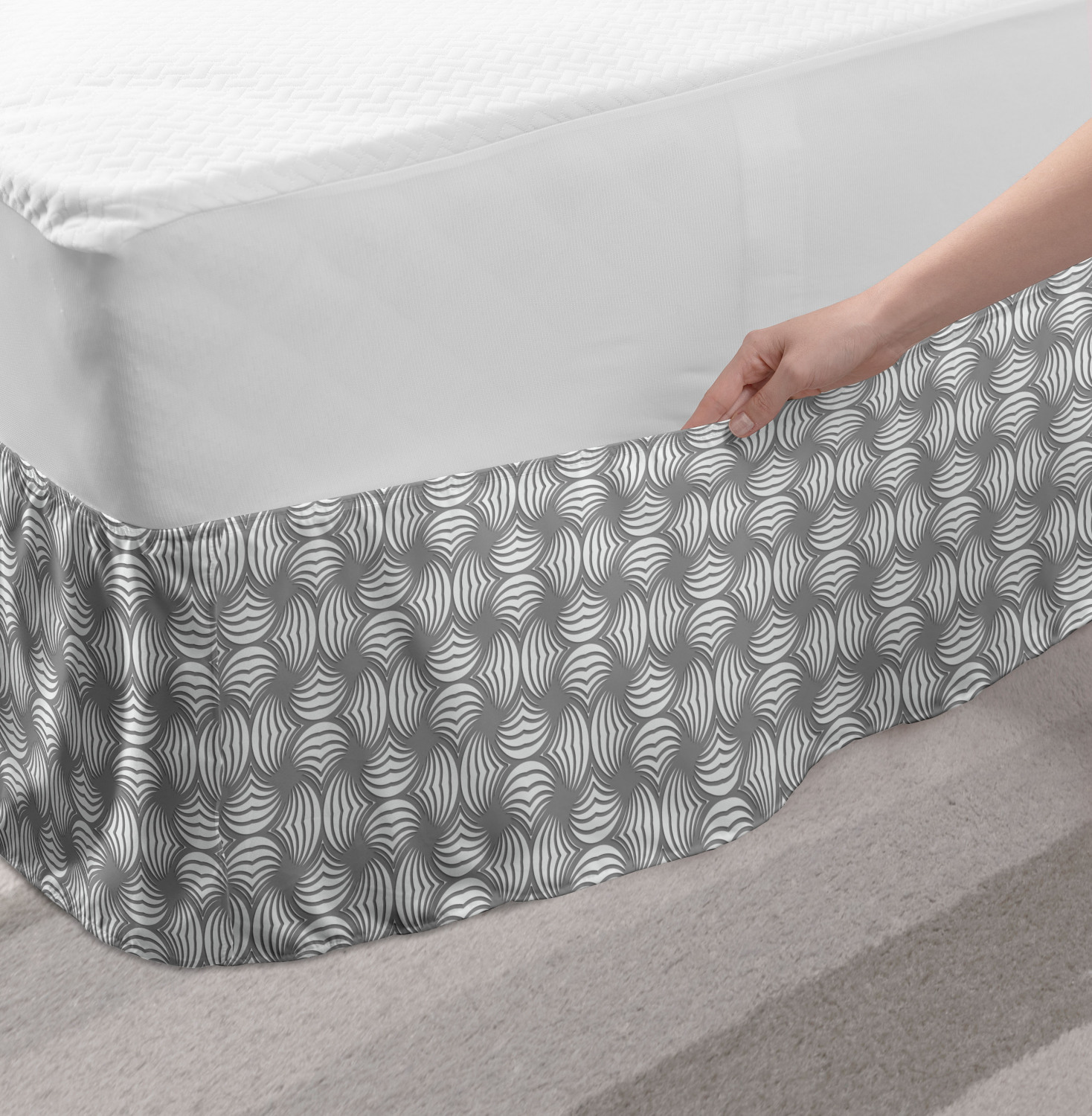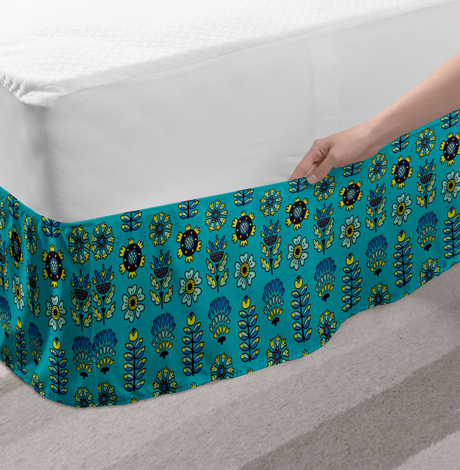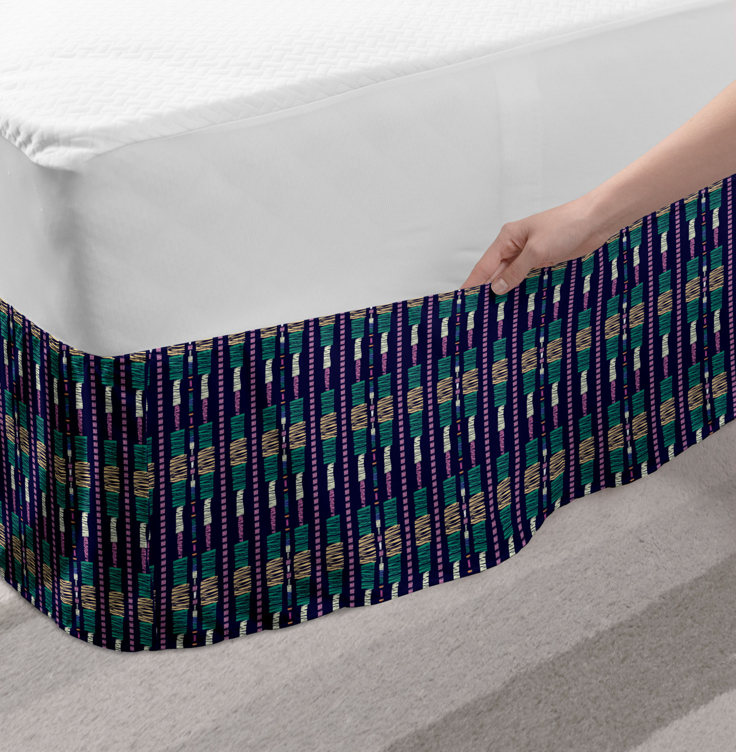 Ambesonne Absurd Pattern Bedskirt Elastic Wrap Around Skirt Gathered Design Ambesonne Bedskirt Bedroom Decor Wrap Around Elastic Bed Skirt Gathered Design In 4 sizes. 15 inches drop. All around wrap gathered. MADE IN TURKEY. MADE FROM - High quality 100% brushed soft microfiber fabric. Suitable for most types of beds. FEATURES - Install easily with elastic straps wrap under the mattress. Stays in place. Split corners. MACHINE WASHABLE - On cold cycle. Dryer safe and iron easy. No fading colors. For bedroom decor. PRINTED - With state of the art digital printing technology. Long-lasting bold colors & clear image. Change your bedroom's style with a simple touch of bedskirt! Our bedskirts are very easy to use; you can easily put around this elastic bed skirt and fasten up with straps under your mattress. Bring new energy to your master suite with colors and thousands of different patterns. You can easily match your bedding sets with our varied bed skirts. You can play safe and create vintage decor easily with these bed ruffles that belongs to retro-times. But you can ask for novelty and combine this piece with your modern choices. Our bed skirt is smartly designed with modern split corners. And you don't need to worry if it gets dusty or dirty. Just machine wash in the cold cycle and tumble dry on low. Thanks to new printing techniques the colors will not fade easily. Design a neat look for your bed with this gathered bed skirt. It is designed with a slim/low style ruffle to catch a more contemporary line. You can give these bed skirts as a Christmas, birthday, wedding gift, mother's day or house warming gift. It can be a great present for your mother, father, newly married friends, grandmother, aunt, uncle. The digital images we display have the most accurate color possible, however, due to differences in computer monitors, we cannot be responsible for variations in color between the actual product and your screen. Due to manual measurement, please kindly allow 1-2 cm discrepancy.