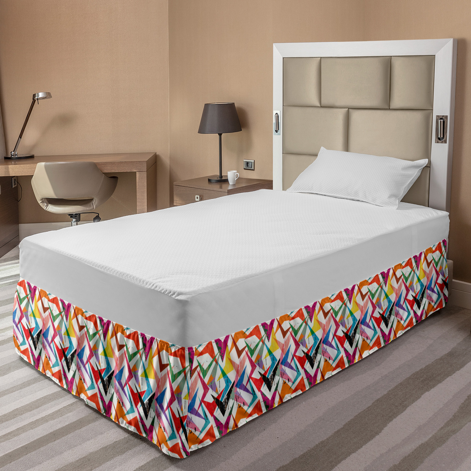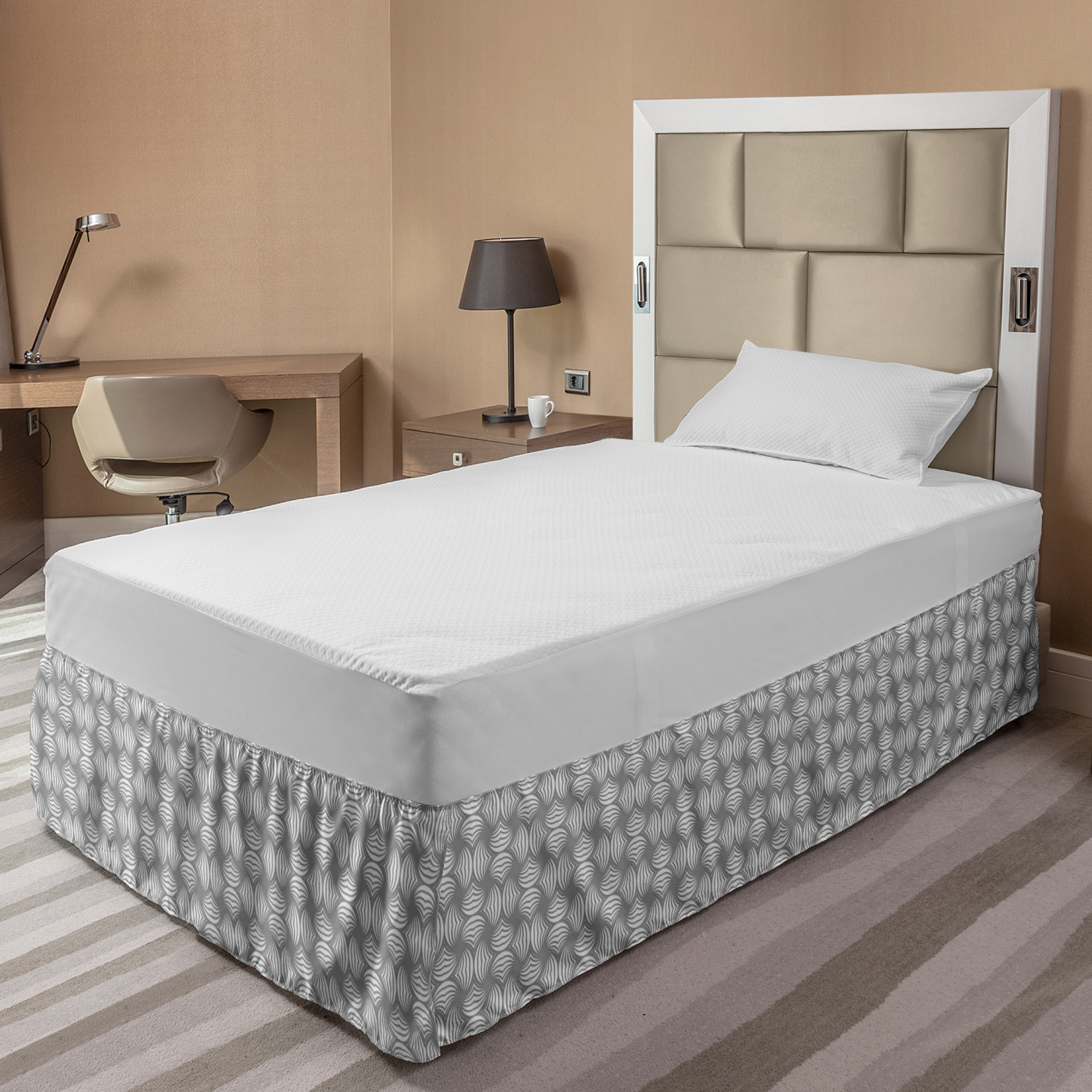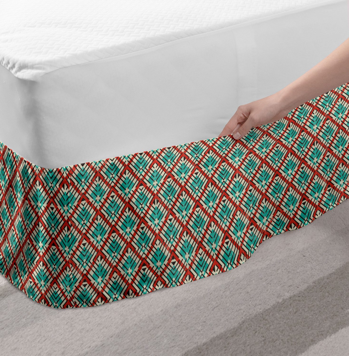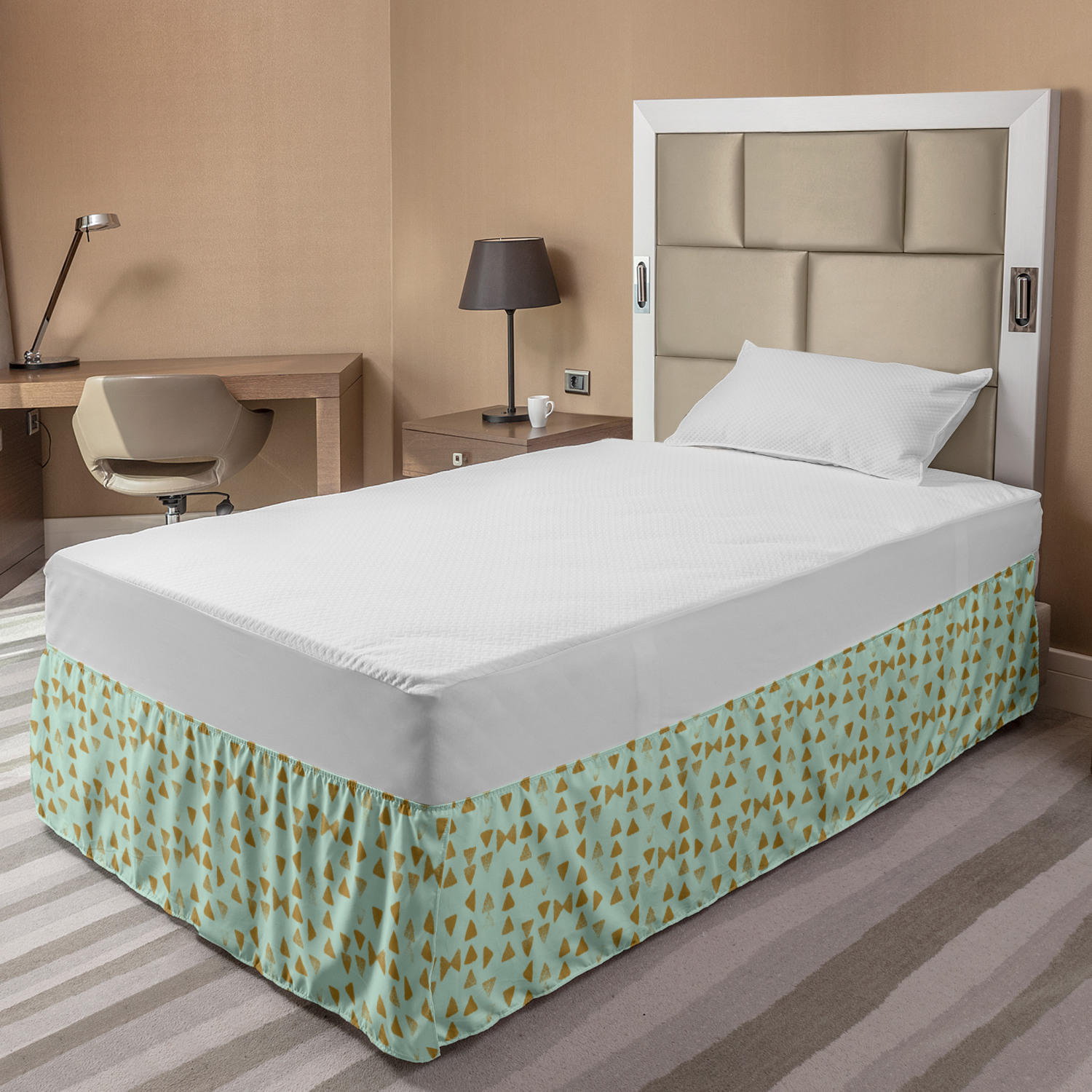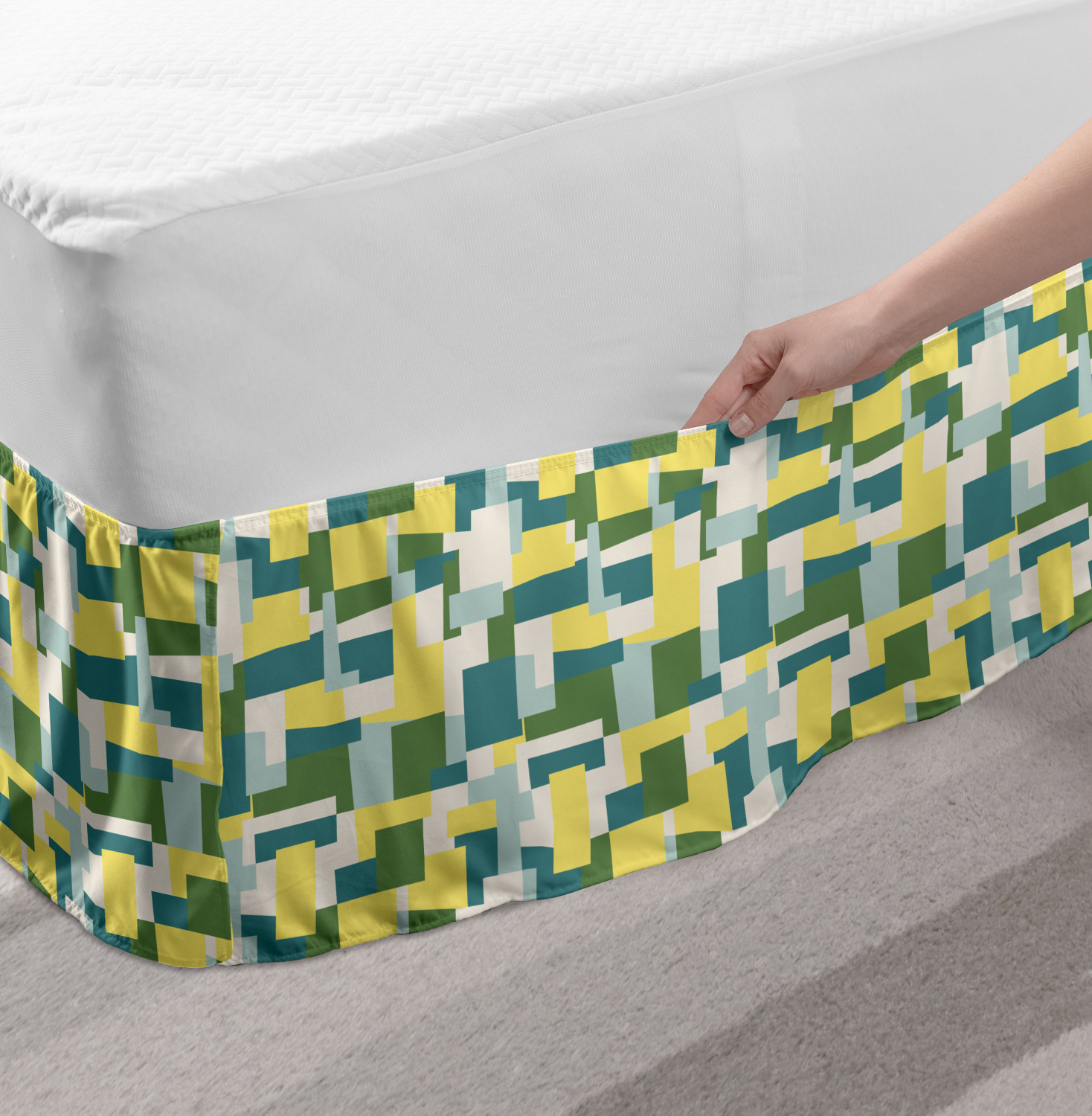 Ambesonne Absurd Pattern Bedskirt Elastic Wrap Around Skirt Gathered Design Ambesonne Bedskirt Bedroom Decor Wrap Around Elastic Bed Skirt Gathered Design In 4 sizes. 15 inches drop. All around wrap gathered. MADE IN TURKEY. MADE FROM - High quality 100% brushed soft microfiber fabric. Suitable for most types of beds. FEATURES - Install easily with elastic straps wrap under the mattress. Stays in place. Split corners. MACHINE WASHABLE - On cold cycle. Dryer safe and iron easy. No fading colors. For bedroom decor. PRINTED - With state of the art digital printing technology. Long-lasting bold colors & clear image. Change your bedroom's style with a simple touch of bedskirt! Our bedskirts are very easy to use; you can easily put around this elastic bed skirt and fasten up with straps under your mattress. Bring new energy to your master suite with colors and thousands of different patterns. You can easily match your bedding sets with our varied bed skirts. You can play safe and create vintage decor easily with these bed ruffles that belongs to retro-times. But you can ask for novelty and combine this piece with your modern choices. Our bed skirt is smartly designed with modern split corners. And you don't need to worry if it gets dusty or dirty. Just machine wash in the cold cycle and tumble dry on low. Thanks to new printing techniques the colors will not fade easily. Design a neat look for your bed with this gathered bed skirt. It is designed with a slim/low style ruffle to catch a more contemporary line. You can give these bed skirts as a Christmas, birthday, wedding gift, mother's day or house warming gift. It can be a great present for your mother, father, newly married friends, grandmother, aunt, uncle. The digital images we display have the most accurate color possible, however, due to differences in computer monitors, we cannot be responsible for variations in color between the actual product and your screen. Due to manual measurement, please kindly allow 1-2 cm discrepancy.