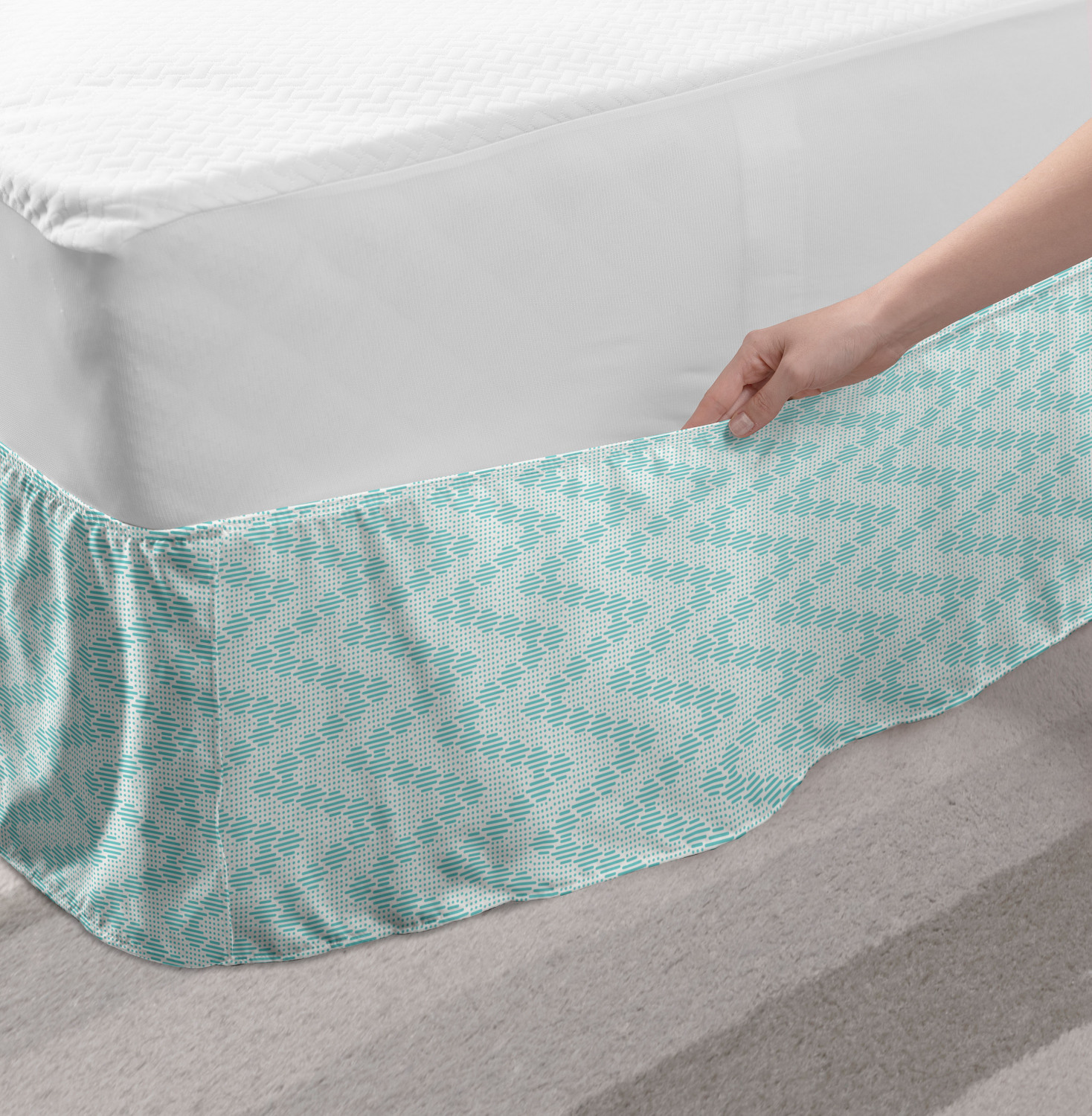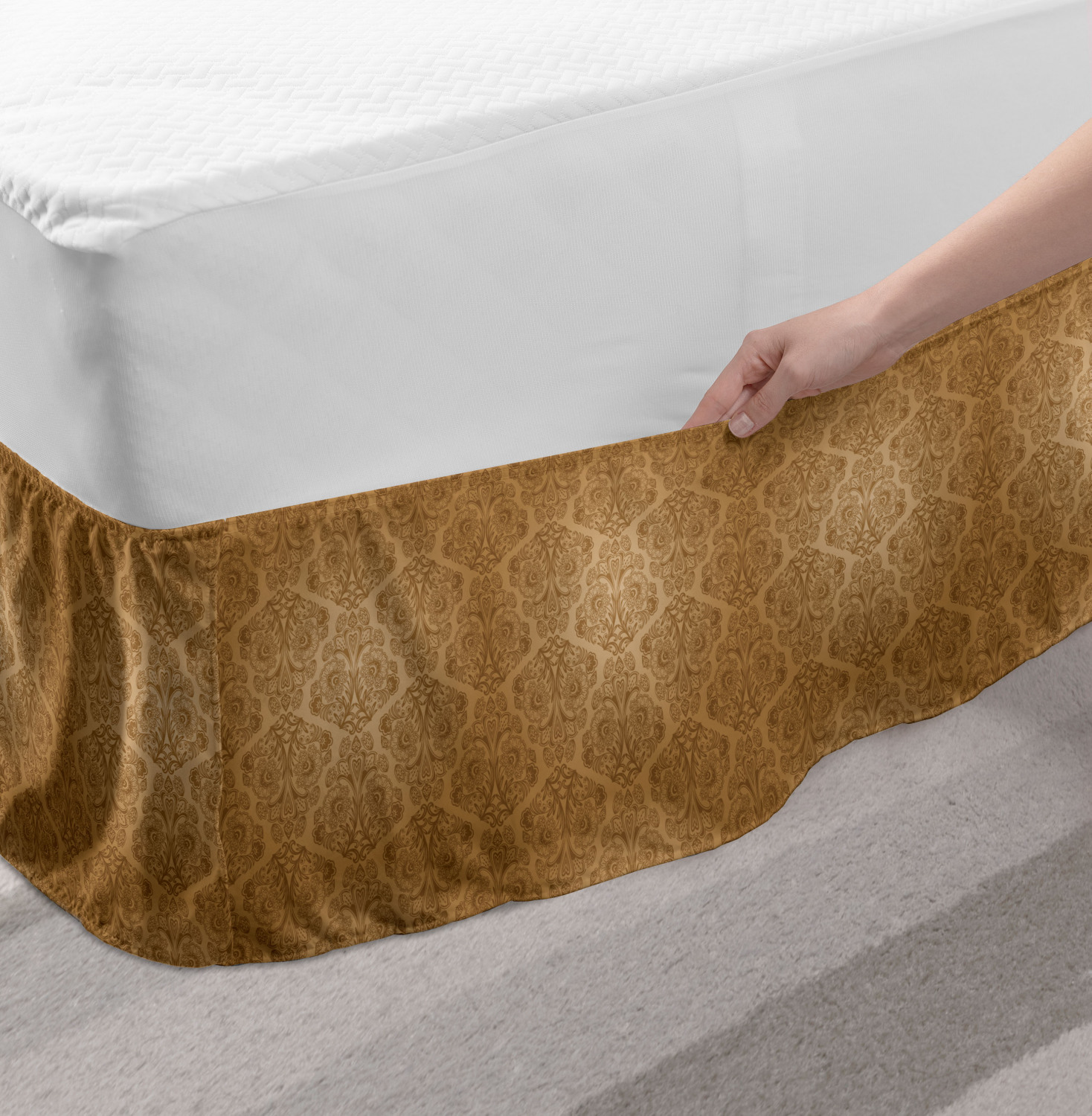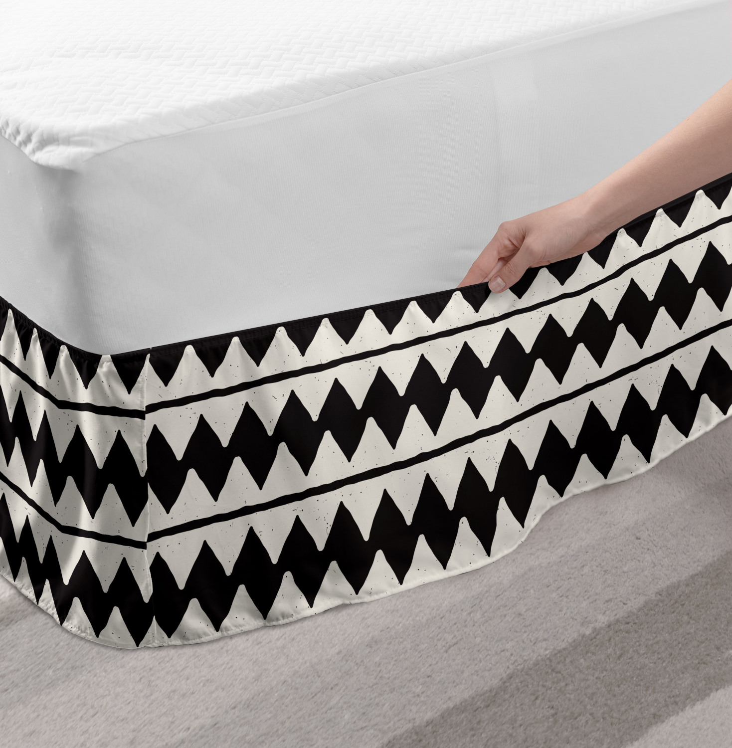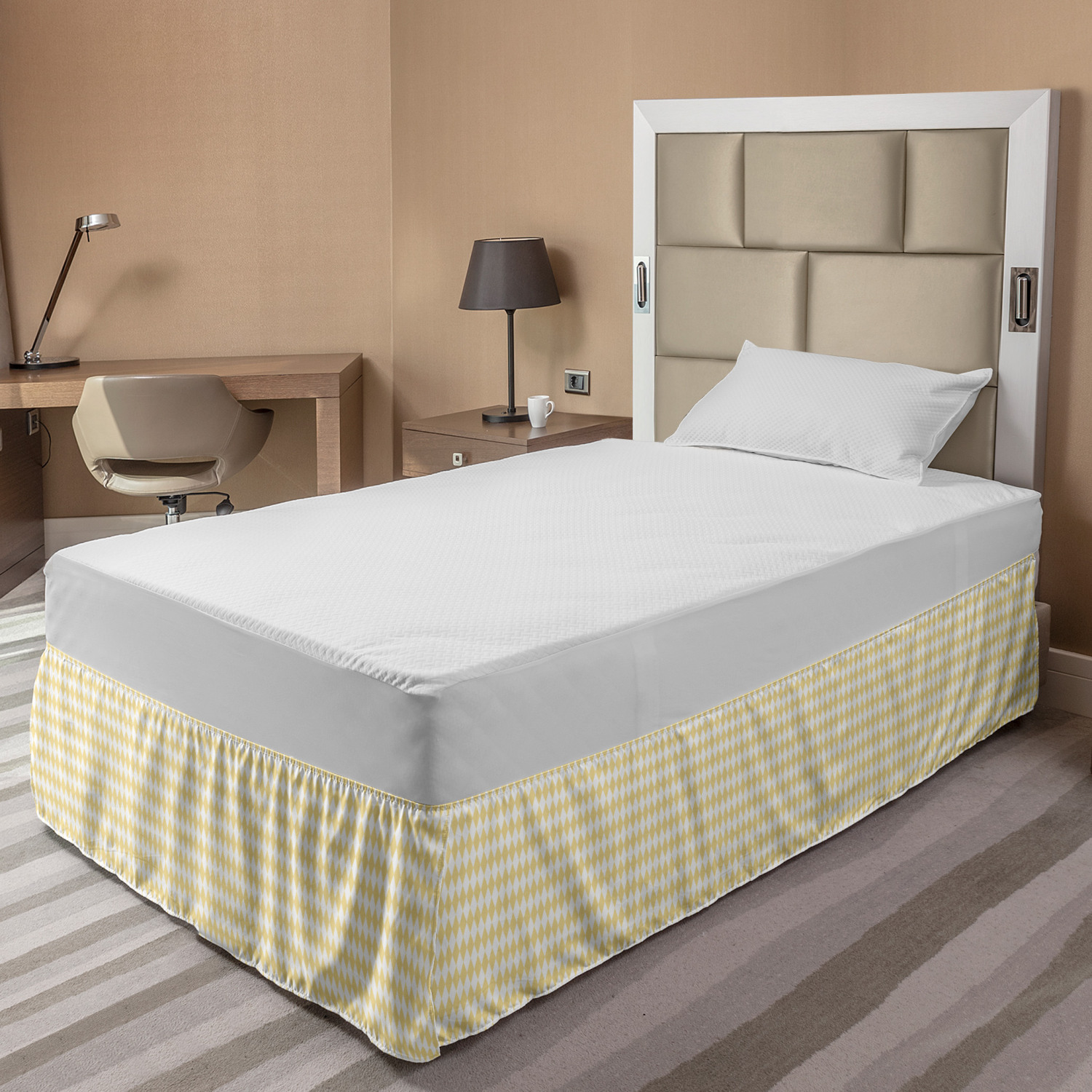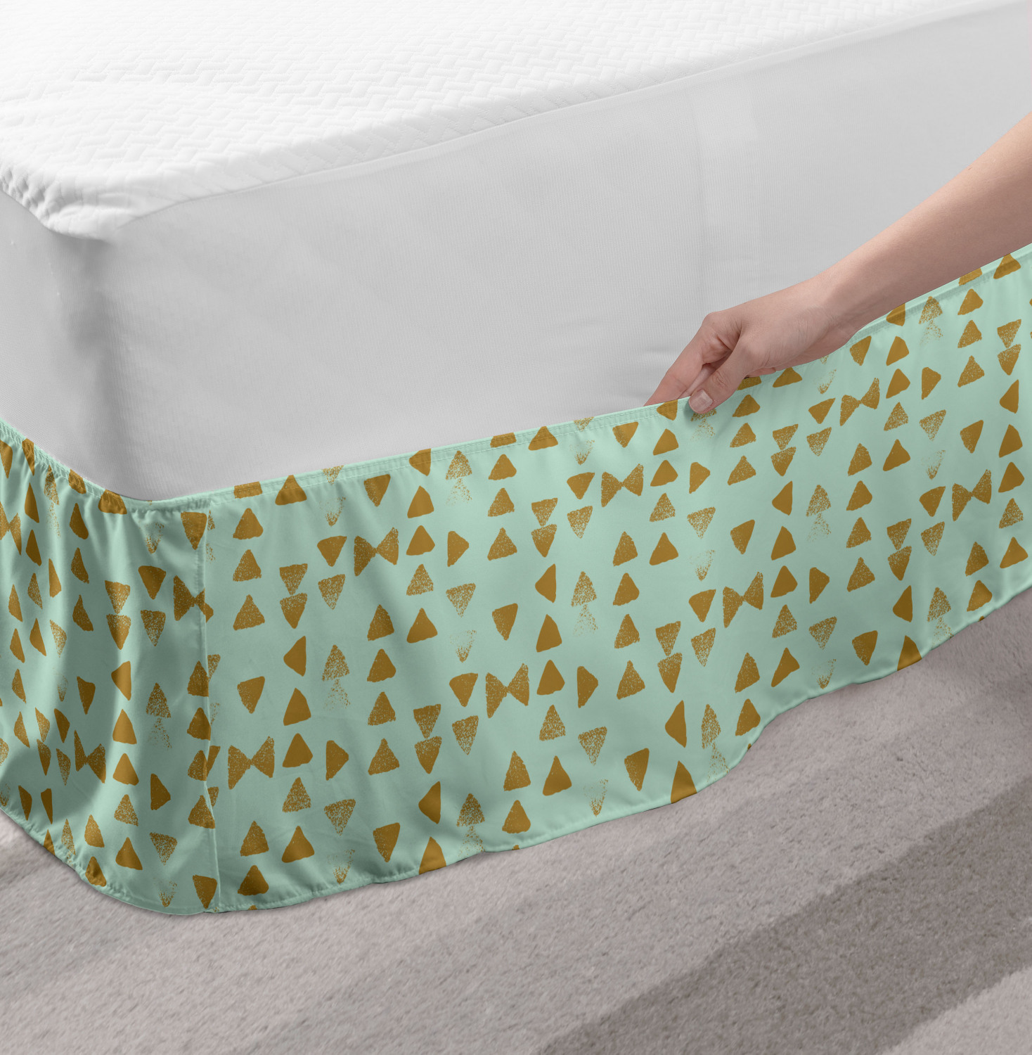 Ambesonne Absurd Pattern Bedskirt Elastic Wrap Around Skirt Gathered Design Ambesonne Bedskirt Bedroom Decor Wrap Around Elastic Bed Skirt Gathered Design In 4 sizes. 15 inches drop. All around wrap gathered. MADE IN TURKEY. MADE FROM - High quality 100% brushed soft microfiber fabric. Suitable for most types of beds. FEATURES - Install easily with elastic straps wrap under the mattress. Stays in place. Split corners. MACHINE WASHABLE - On cold cycle. Dryer safe and iron easy. No fading colors. For bedroom decor. PRINTED - With state of the art digital printing technology. Long-lasting bold colors & clear image. Change your bedroom's style with a simple touch of bedskirt! Our bedskirts are very easy to use; you can easily put around this elastic bed skirt and fasten up with straps under your mattress. Bring new energy to your master suite with colors and thousands of different patterns. You can easily match your bedding sets with our varied bed skirts. You can play safe and create vintage decor easily with these bed ruffles that belongs to retro-times. But you can ask for novelty and combine this piece with your modern choices. Our bed skirt is smartly designed with modern split corners. And you don't need to worry if it gets dusty or dirty. Just machine wash in the cold cycle and tumble dry on low. Thanks to new printing techniques the colors will not fade easily. Design a neat look for your bed with this gathered bed skirt. It is designed with a slim/low style ruffle to catch a more contemporary line. You can give these bed skirts as a Christmas, birthday, wedding gift, mother's day or house warming gift. It can be a great present for your mother, father, newly married friends, grandmother, aunt, uncle. The digital images we display have the most accurate color possible, however, due to differences in computer monitors, we cannot be responsible for variations in color between the actual product and your screen. Due to manual measurement, please kindly allow 1-2 cm discrepancy.