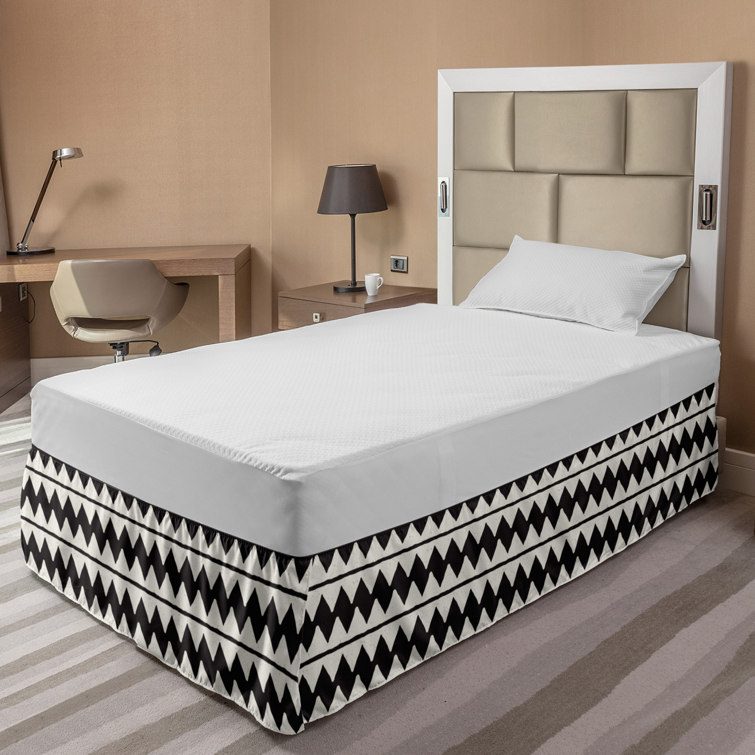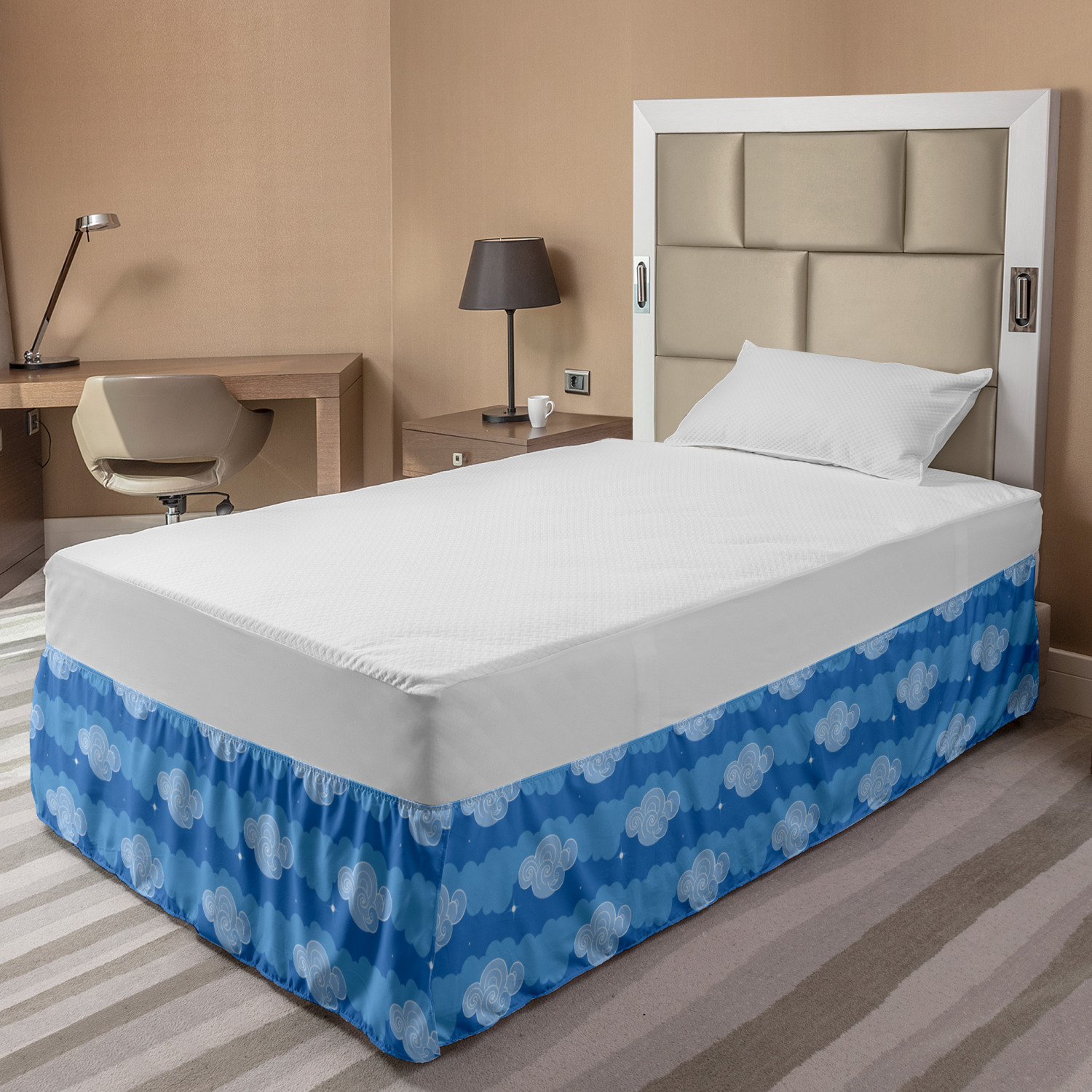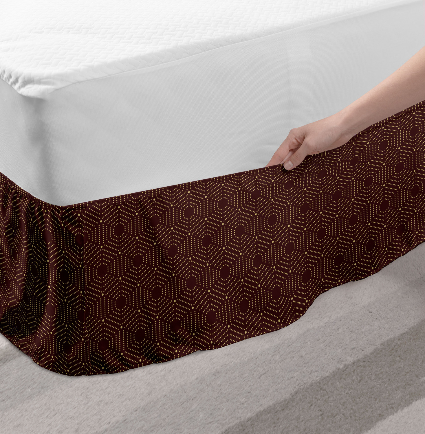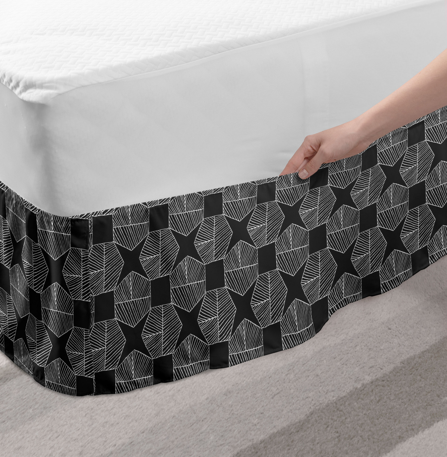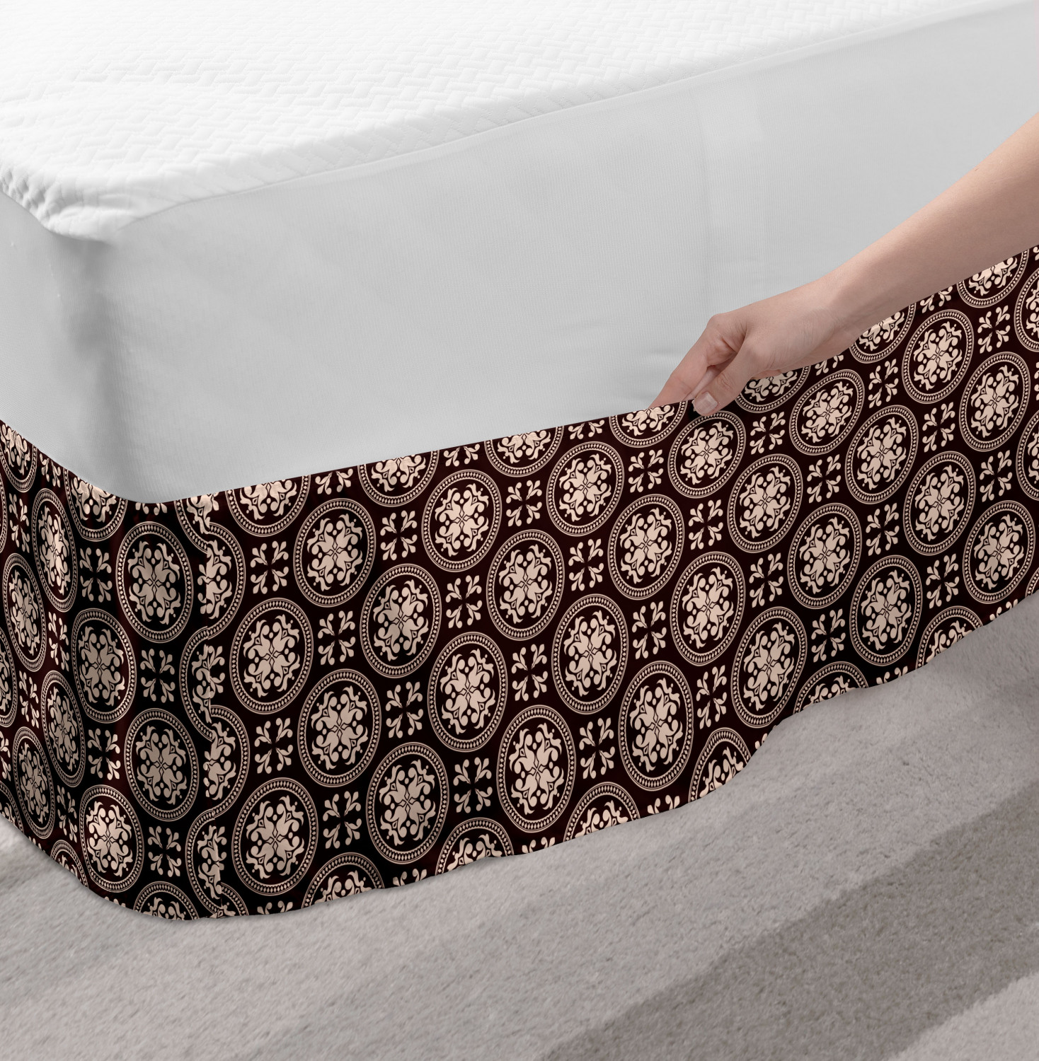 Ambesonne Absurd Pattern Bedskirt Elastic Wrap Around Skirt Gathered Design Ambesonne Bedskirt Bedroom Decor Wrap Around Elastic Bed Skirt Gathered Design In 4 sizes. 15 inches drop. All around wrap gathered. MADE IN TURKEY. MADE FROM - High quality 100% brushed soft microfiber fabric. Suitable for most types of beds. FEATURES - Install easily with elastic straps wrap under the mattress. Stays in place. Split corners. MACHINE WASHABLE - On cold cycle. Dryer safe and iron easy. No fading colors. For bedroom decor. PRINTED - With state of the art digital printing technology. Long-lasting bold colors & clear image. Change your bedroom's style with a simple touch of bedskirt! Our bedskirts are very easy to use; you can easily put around this elastic bed skirt and fasten up with straps under your mattress. Bring new energy to your master suite with colors and thousands of different patterns. You can easily match your bedding sets with our varied bed skirts. You can play safe and create vintage decor easily with these bed ruffles that belongs to retro-times. But you can ask for novelty and combine this piece with your modern choices. Our bed skirt is smartly designed with modern split corners. And you don't need to worry if it gets dusty or dirty. Just machine wash in the cold cycle and tumble dry on low. Thanks to new printing techniques the colors will not fade easily. Design a neat look for your bed with this gathered bed skirt. It is designed with a slim/low style ruffle to catch a more contemporary line. You can give these bed skirts as a Christmas, birthday, wedding gift, mother's day or house warming gift. It can be a great present for your mother, father, newly married friends, grandmother, aunt, uncle. The digital images we display have the most accurate color possible, however, due to differences in computer monitors, we cannot be responsible for variations in color between the actual product and your screen. Due to manual measurement, please kindly allow 1-2 cm discrepancy.