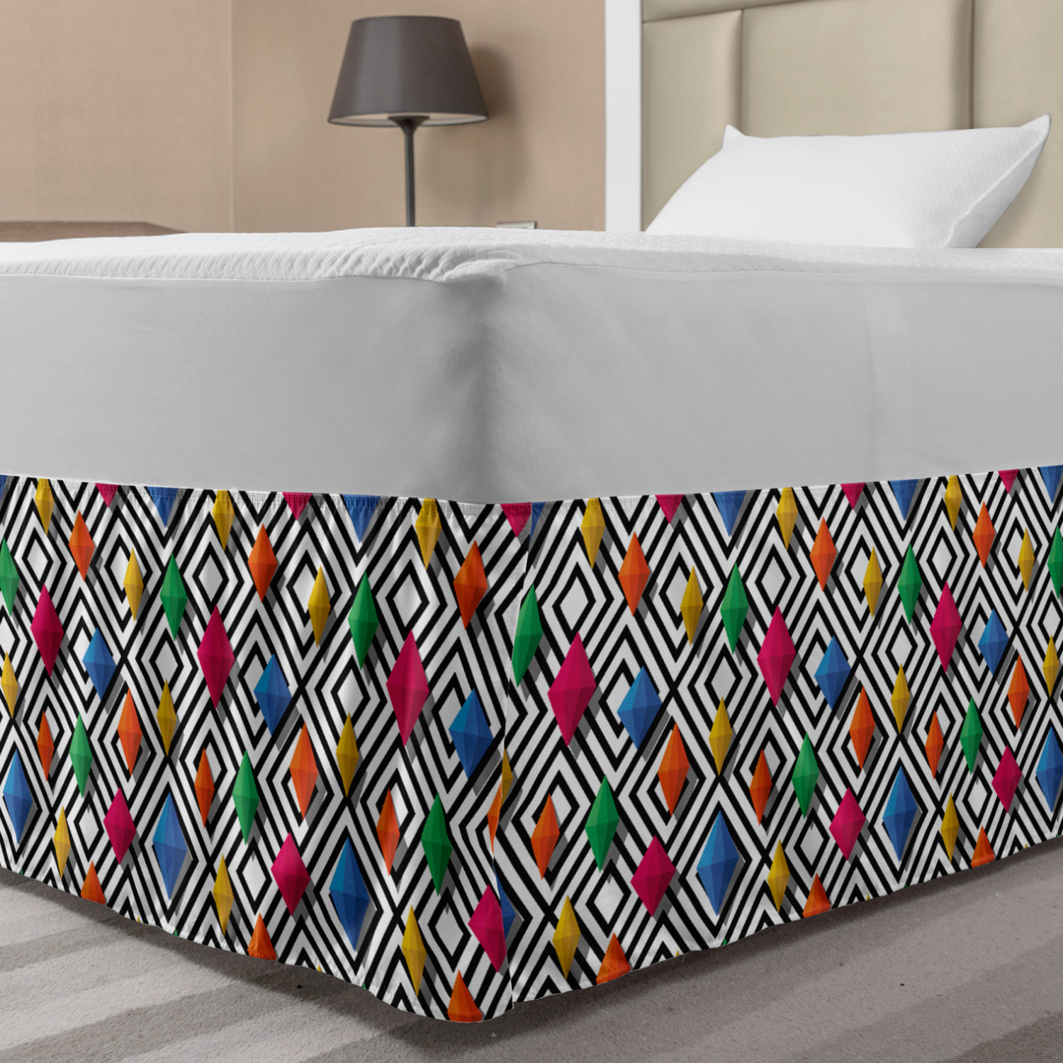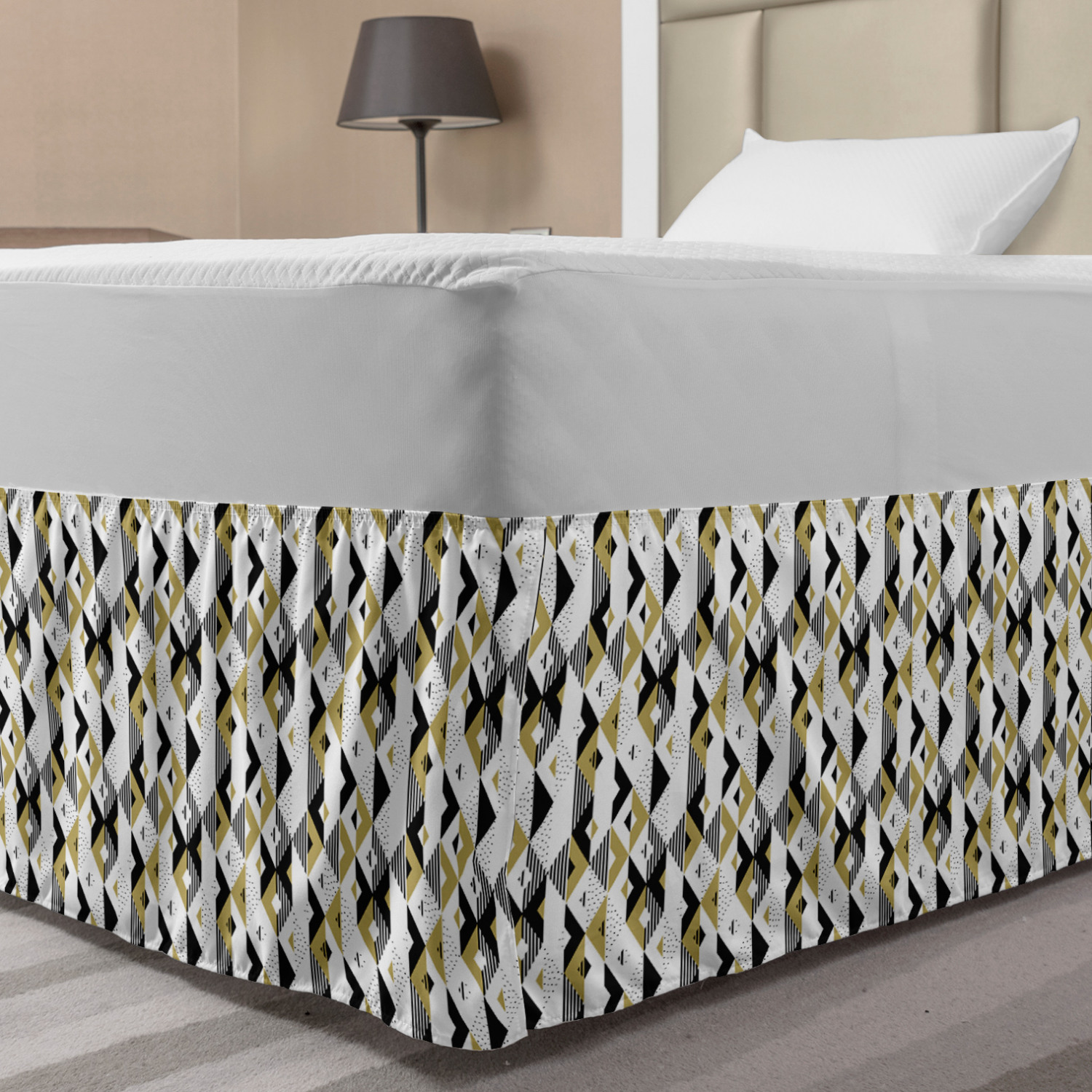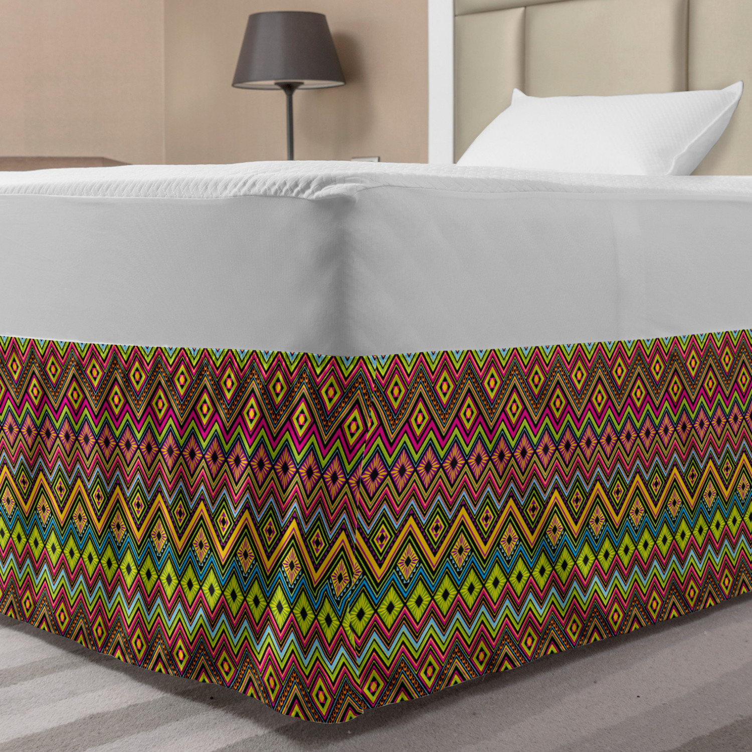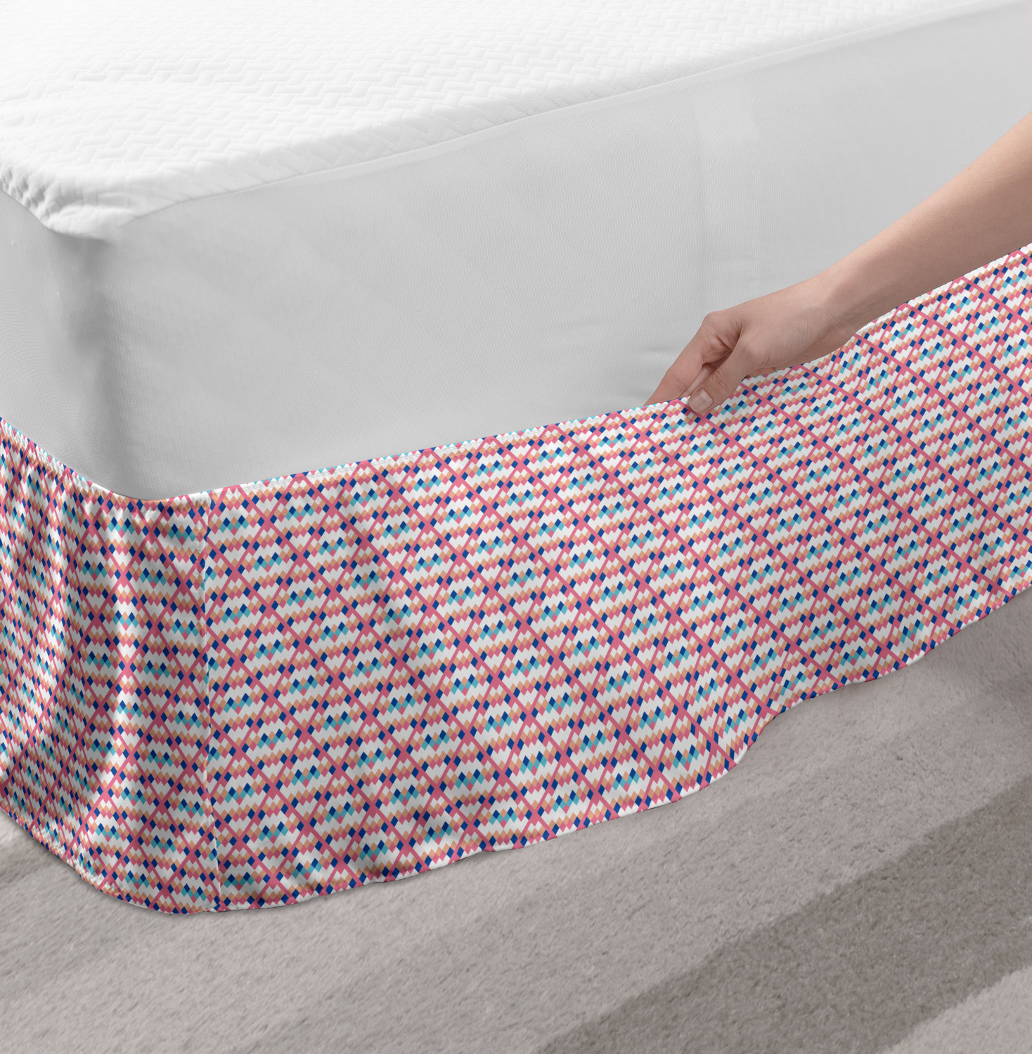 Ambesonne Chevron Pattern Bedskirt Elastic Wrap Around Skirt Gathered Design Ambesonne Bedskirt Bedroom Decor Wrap Around Elastic Bed Skirt Gathered Design In 4 sizes. 15 inches drop. All around wrap gathered. MADE IN TURKEY. MADE FROM - High quality 100% brushed soft microfiber fabric. Suitable for most types of beds. FEATURES - Install easily with elastic straps wrap under the mattress. Stays in place. Split corners. MACHINE WASHABLE - On cold cycle. Dryer safe and iron easy. No fading colors. For bedroom decor. PRINTED - With state of the art digital printing technology. Long-lasting bold colors & clear image. Change your bedroom's style with a simple touch of bedskirt! Our bedskirts are very easy to use; you can easily put around this elastic bed skirt and fasten up with straps under your mattress. Bring new energy to your master suite with colors and thousands of different patterns. You can easily match your bedding sets with our varied bed skirts. You can play safe and create vintage decor easily with these bed ruffles that belongs to retro-times. But you can ask for novelty and combine this piece with your modern choices. Our bed skirt is smartly designed with modern split corners. And you don't need to worry if it gets dusty or dirty. Just machine wash in the cold cycle and tumble dry on low. Thanks to new printing techniques the colors will not fade easily. Design a neat look for your bed with this gathered bed skirt. It is designed with a slim/low style ruffle to catch a more contemporary line. You can give these bed skirts as a Christmas, birthday, wedding gift, mother's day or house warming gift. It can be a great present for your mother, father, newly married friends, grandmother, aunt, uncle. The digital images we display have the most accurate color possible, however, due to differences in computer monitors, we cannot be responsible for variations in color between the actual product and your screen. Due to manual measurement, please kindly allow 1-2 cm discrepancy.