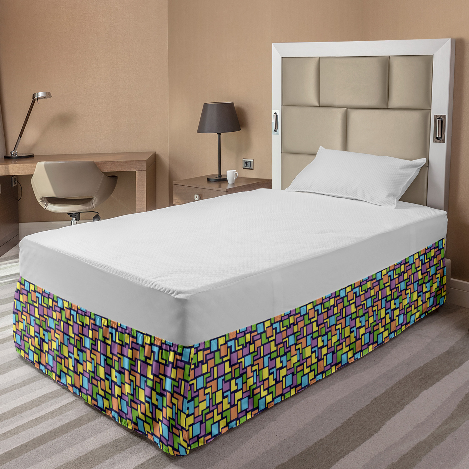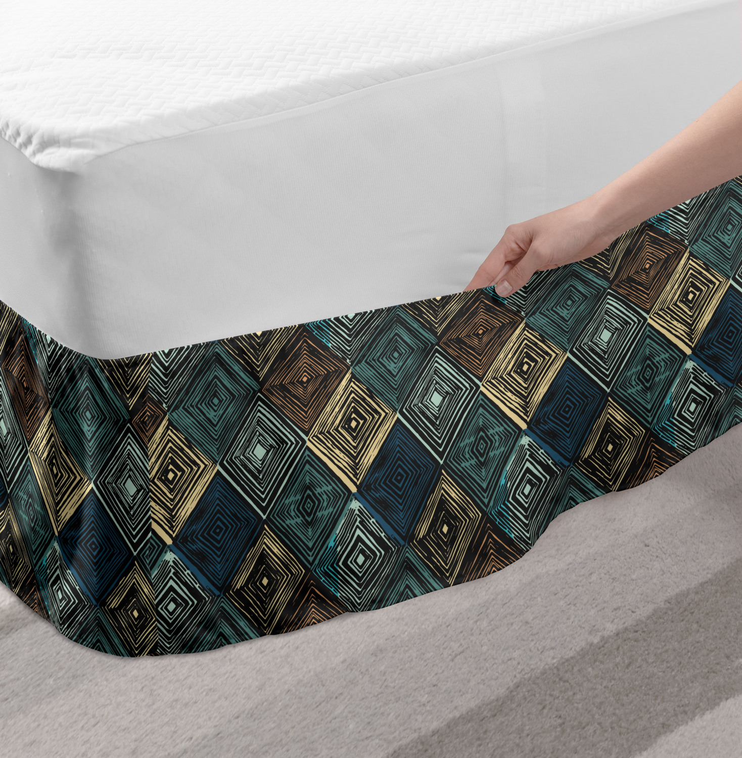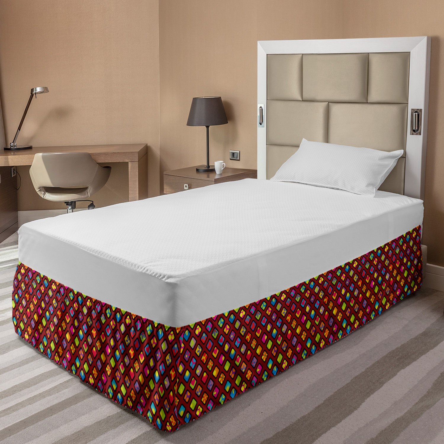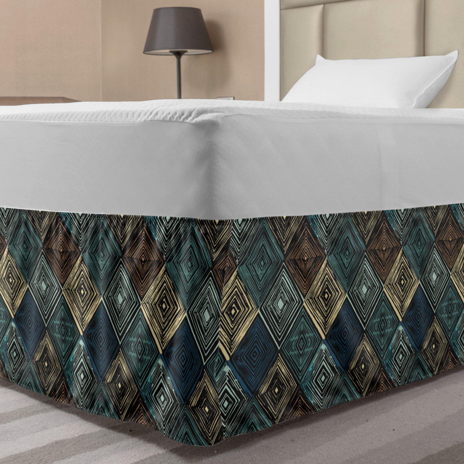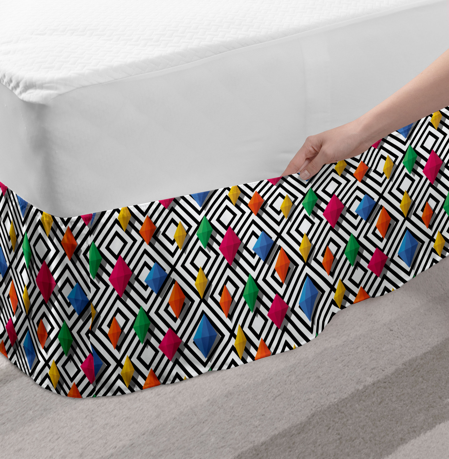 Ambesonne Chevron Pattern Bedskirt Elastic Wrap Around Skirt Gathered Design Ambesonne Bedskirt Bedroom Decor Wrap Around Elastic Bed Skirt Gathered Design In 4 sizes. 15 inches drop. All around wrap gathered. MADE IN TURKEY. MADE FROM - High quality 100% brushed soft microfiber fabric. Suitable for most types of beds. FEATURES - Install easily with elastic straps wrap under the mattress. Stays in place. Split corners. MACHINE WASHABLE - On cold cycle. Dryer safe and iron easy. No fading colors. For bedroom decor. PRINTED - With state of the art digital printing technology. Long-lasting bold colors & clear image. Change your bedroom's style with a simple touch of bedskirt! Our bedskirts are very easy to use; you can easily put around this elastic bed skirt and fasten up with straps under your mattress. Bring new energy to your master suite with colors and thousands of different patterns. You can easily match your bedding sets with our varied bed skirts. You can play safe and create vintage decor easily with these bed ruffles that belongs to retro-times. But you can ask for novelty and combine this piece with your modern choices. Our bed skirt is smartly designed with modern split corners. And you don't need to worry if it gets dusty or dirty. Just machine wash in the cold cycle and tumble dry on low. Thanks to new printing techniques the colors will not fade easily. Design a neat look for your bed with this gathered bed skirt. It is designed with a slim/low style ruffle to catch a more contemporary line. You can give these bed skirts as a Christmas, birthday, wedding gift, mother's day or house warming gift. It can be a great present for your mother, father, newly married friends, grandmother, aunt, uncle. The digital images we display have the most accurate color possible, however, due to differences in computer monitors, we cannot be responsible for variations in color between the actual product and your screen. Due to manual measurement, please kindly allow 1-2 cm discrepancy.