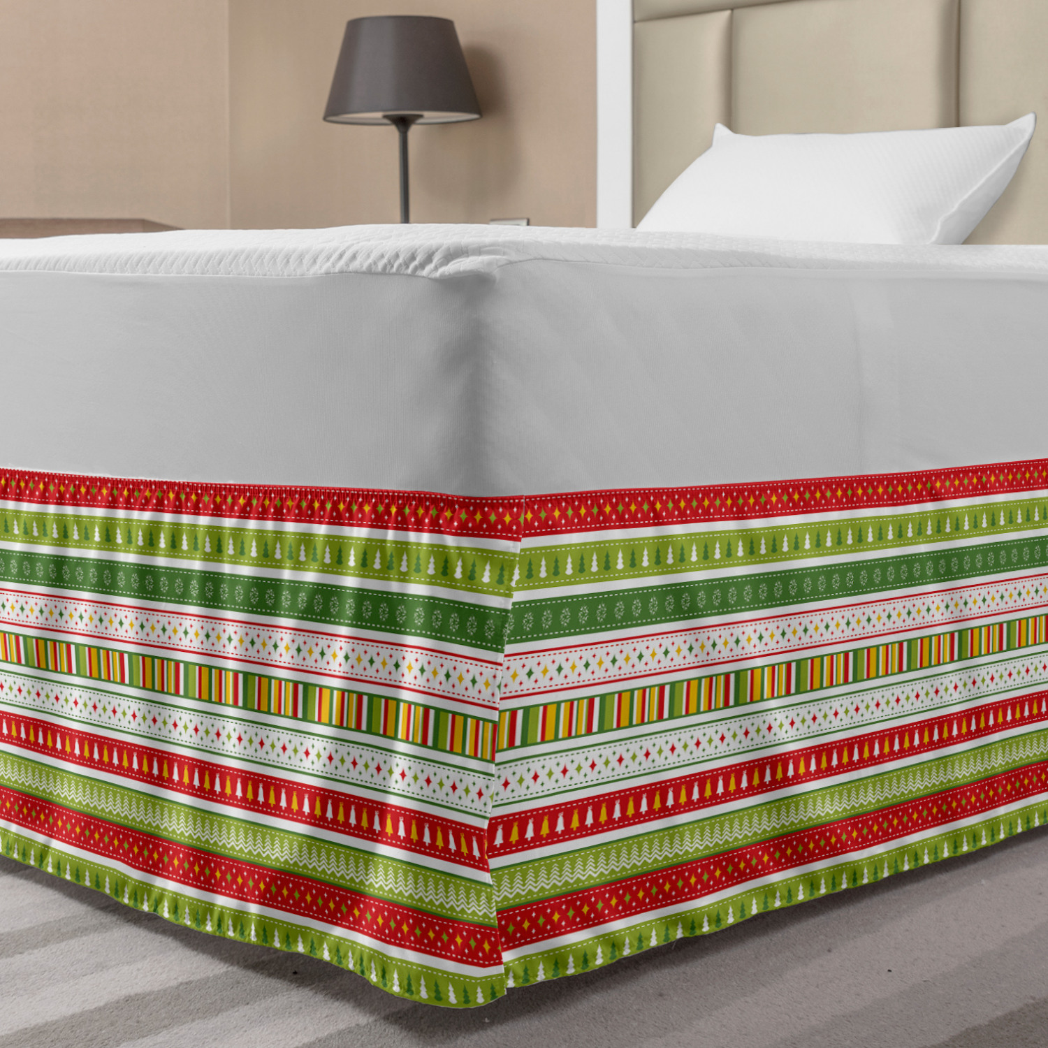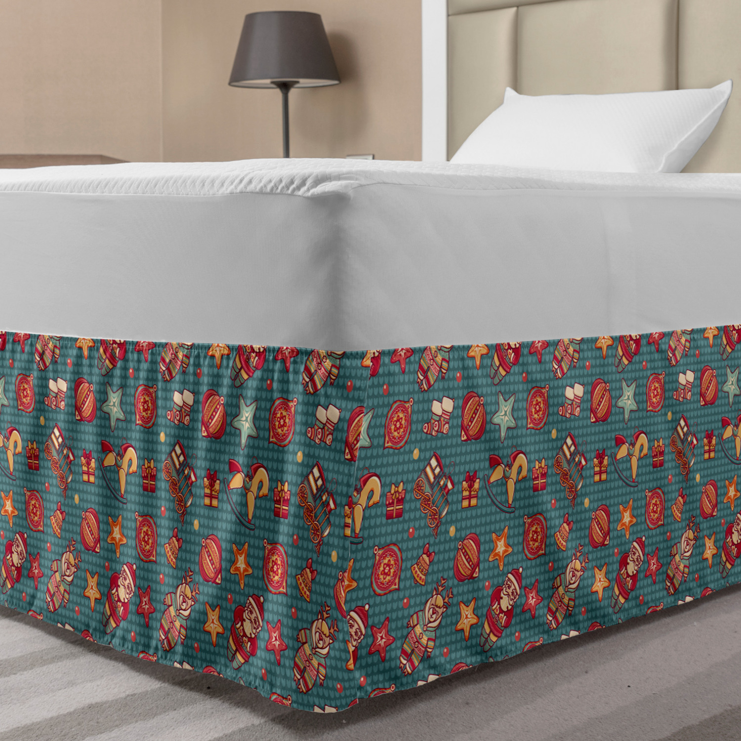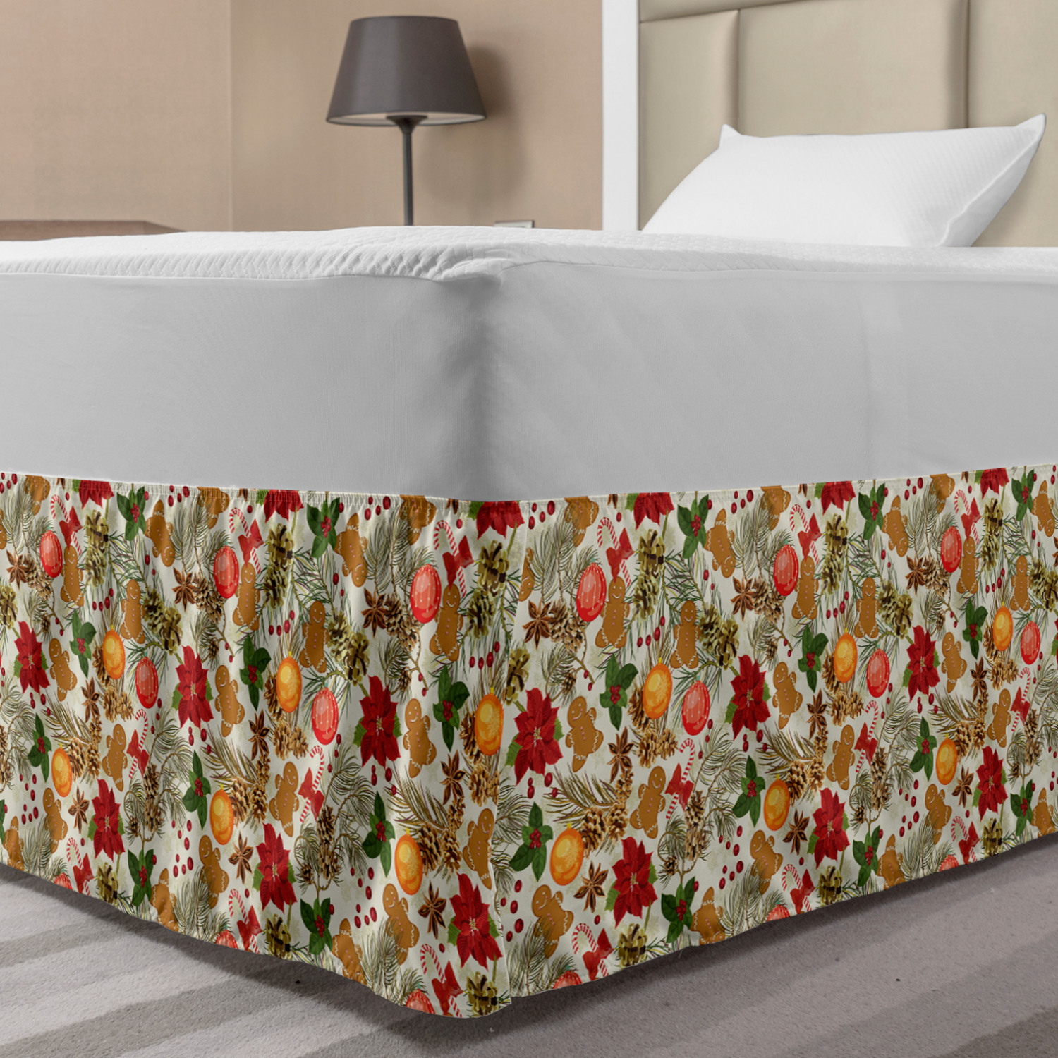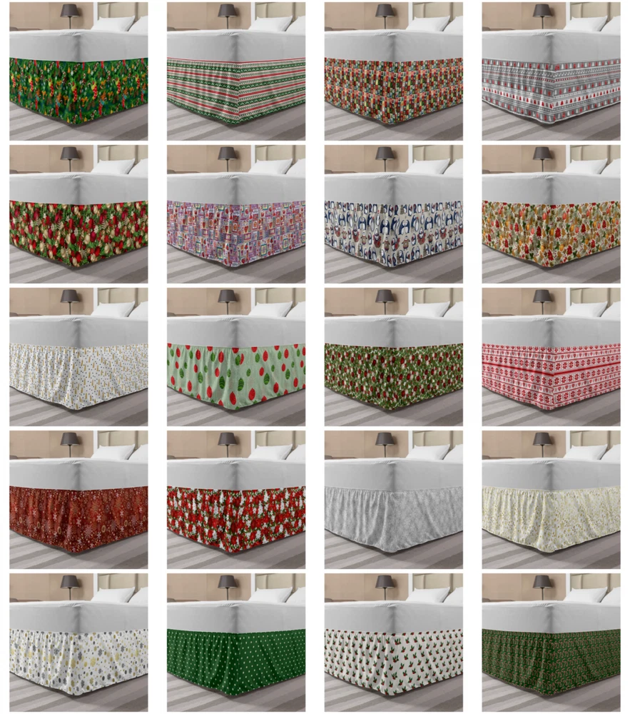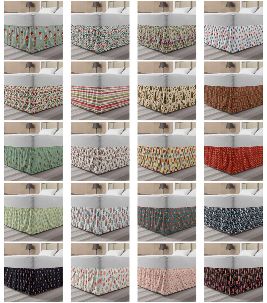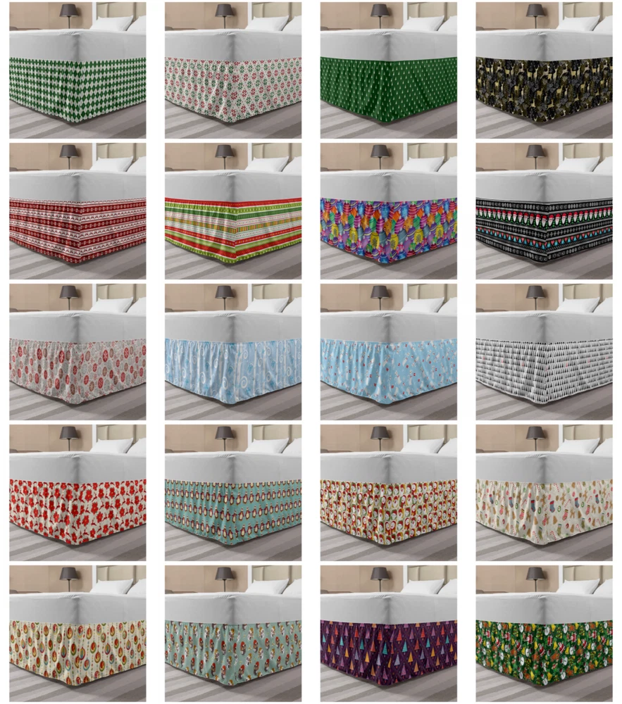 Ambesonne Christmas Print Bedskirt Elastic Wrap Around Skirt Gathered Design Ambesonne Bedskirt Bedroom Decor Wrap Around Elastic Bed Skirt Gathered Design In 4 sizes. 15 inches drop. All around wrap gathered. MADE IN TURKEY. MADE FROM - High quality 100% brushed soft microfiber fabric. Suitable for most types of beds. FEATURES - Install easily with elastic straps wrap under the mattress. Stays in place. Split corners. MACHINE WASHABLE - On cold cycle. Dryer safe and iron easy. No fading colors. For bedroom decor. PRINTED - With state of the art digital printing technology. Long-lasting bold colors & clear image. Change your bedroom's style with a simple touch of bedskirt! Our bedskirts are very easy to use; you can easily put around this elastic bed skirt and fasten up with straps under your mattress. Bring new energy to your master suite with colors and thousands of different patterns. You can easily match your bedding sets with our varied bed skirts. You can play safe and create vintage decor easily with these bed ruffles that belongs to retro-times. But you can ask for novelty and combine this piece with your modern choices. Our bed skirt is smartly designed with modern split corners. And you don't need to worry if it gets dusty or dirty. Just machine wash in the cold cycle and tumble dry on low. Thanks to new printing techniques the colors will not fade easily. Design a neat look for your bed with this gathered bed skirt. It is designed with a slim/low style ruffle to catch a more contemporary line. You can give these bed skirts as a Christmas, birthday, wedding gift, mother's day or house warming gift. It can be a great present for your mother, father, newly married friends, grandmother, aunt, uncle. The digital images we display have the most accurate color possible, however, due to differences in computer monitors, we cannot be responsible for variations in color between the actual product and your screen. Due to manual measurement, please kindly allow 1-2 cm discrepancy.