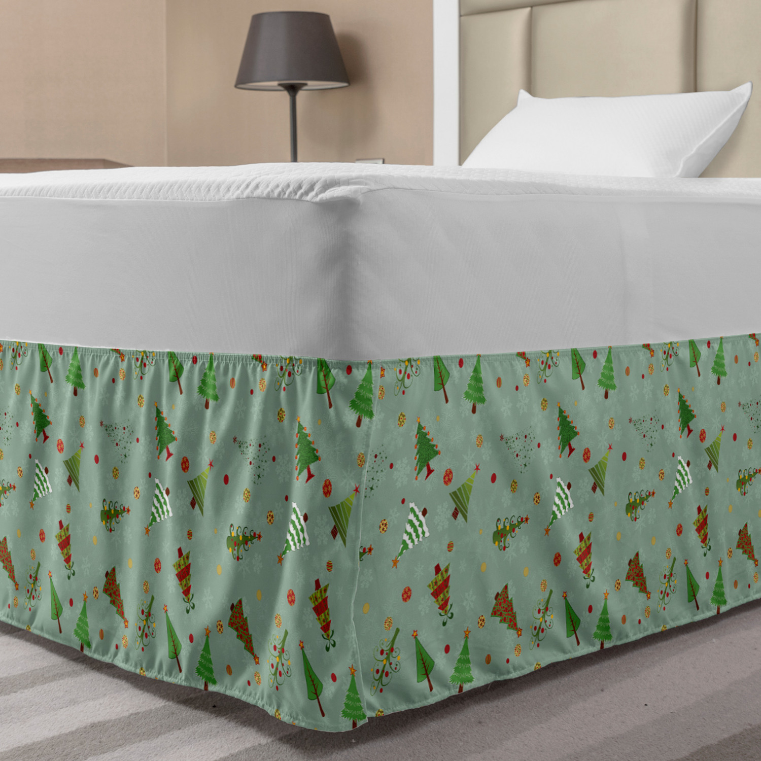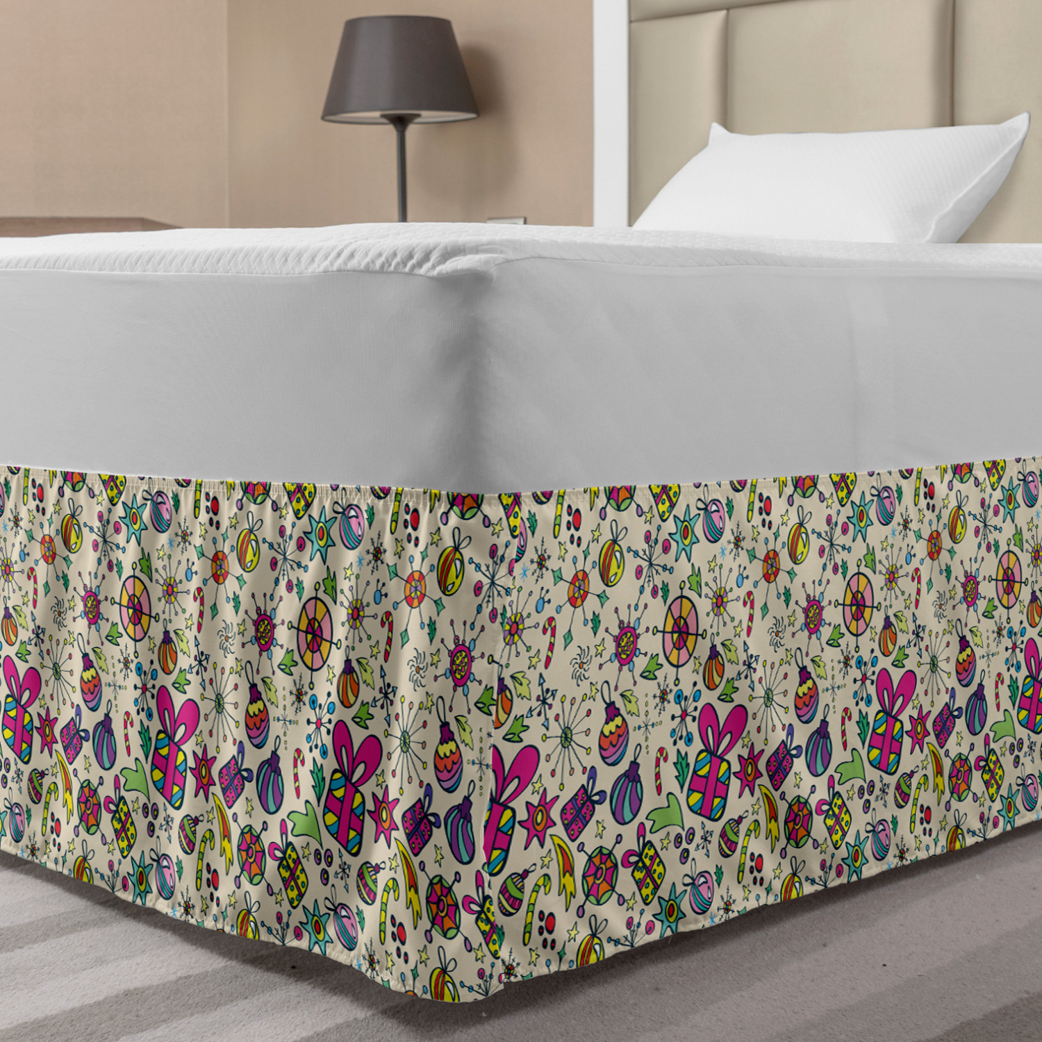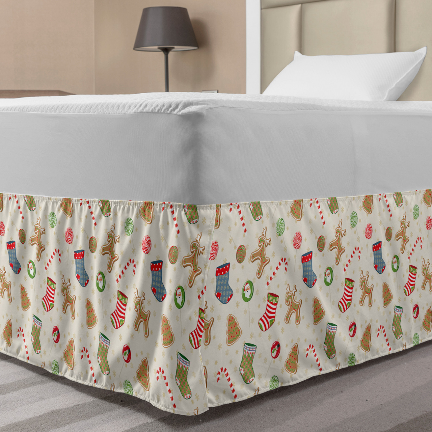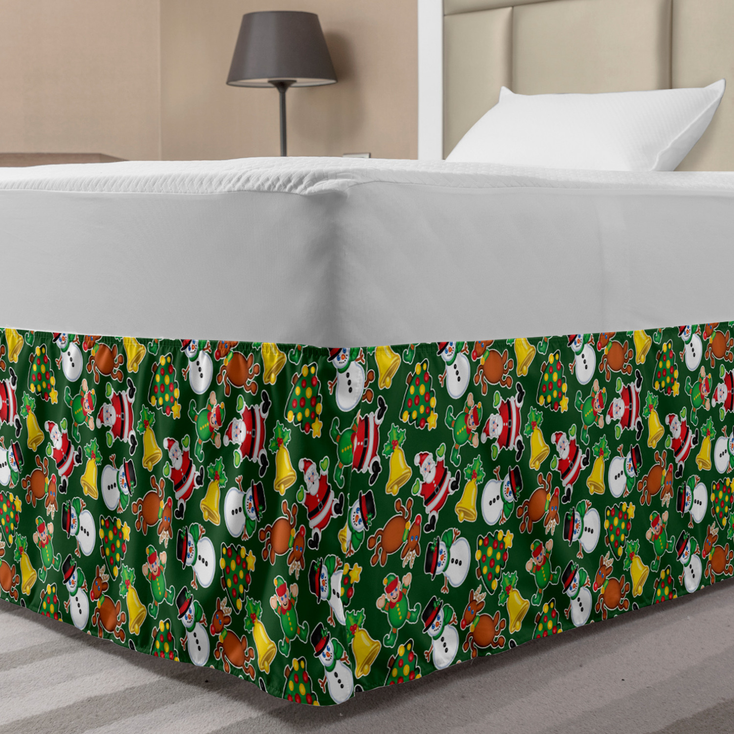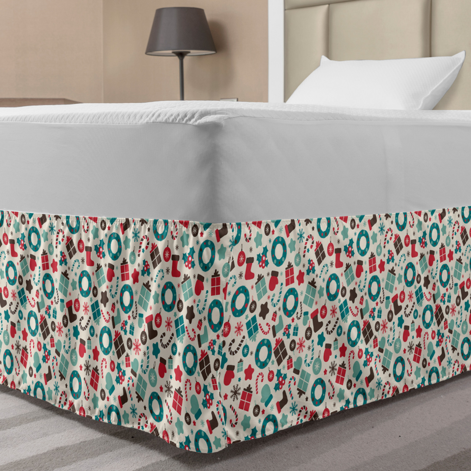 Ambesonne Christmas Print Bedskirt Elastic Wrap Around Skirt Gathered Design Ambesonne Bedskirt Bedroom Decor Wrap Around Elastic Bed Skirt Gathered Design In 4 sizes. 15 inches drop. All around wrap gathered. MADE IN TURKEY. MADE FROM - High quality 100% brushed soft microfiber fabric. Suitable for most types of beds. FEATURES - Install easily with elastic straps wrap under the mattress. Stays in place. Split corners. MACHINE WASHABLE - On cold cycle. Dryer safe and iron easy. No fading colors. For bedroom decor. PRINTED - With state of the art digital printing technology. Long-lasting bold colors & clear image. Change your bedroom's style with a simple touch of bedskirt! Our bedskirts are very easy to use; you can easily put around this elastic bed skirt and fasten up with straps under your mattress. Bring new energy to your master suite with colors and thousands of different patterns. You can easily match your bedding sets with our varied bed skirts. You can play safe and create vintage decor easily with these bed ruffles that belongs to retro-times. But you can ask for novelty and combine this piece with your modern choices. Our bed skirt is smartly designed with modern split corners. And you don't need to worry if it gets dusty or dirty. Just machine wash in the cold cycle and tumble dry on low. Thanks to new printing techniques the colors will not fade easily. Design a neat look for your bed with this gathered bed skirt. It is designed with a slim/low style ruffle to catch a more contemporary line. You can give these bed skirts as a Christmas, birthday, wedding gift, mother's day or house warming gift. It can be a great present for your mother, father, newly married friends, grandmother, aunt, uncle. The digital images we display have the most accurate color possible, however, due to differences in computer monitors, we cannot be responsible for variations in color between the actual product and your screen. Due to manual measurement, please kindly allow 1-2 cm discrepancy.