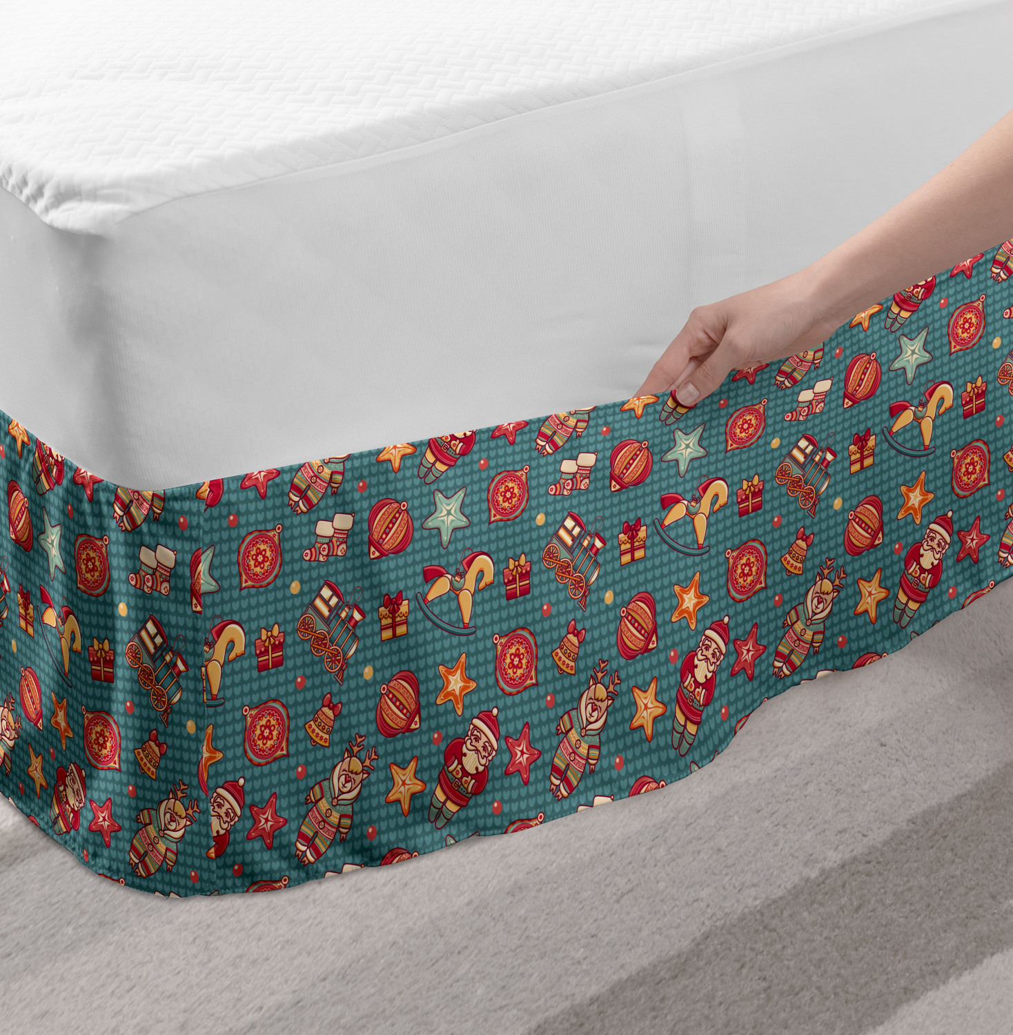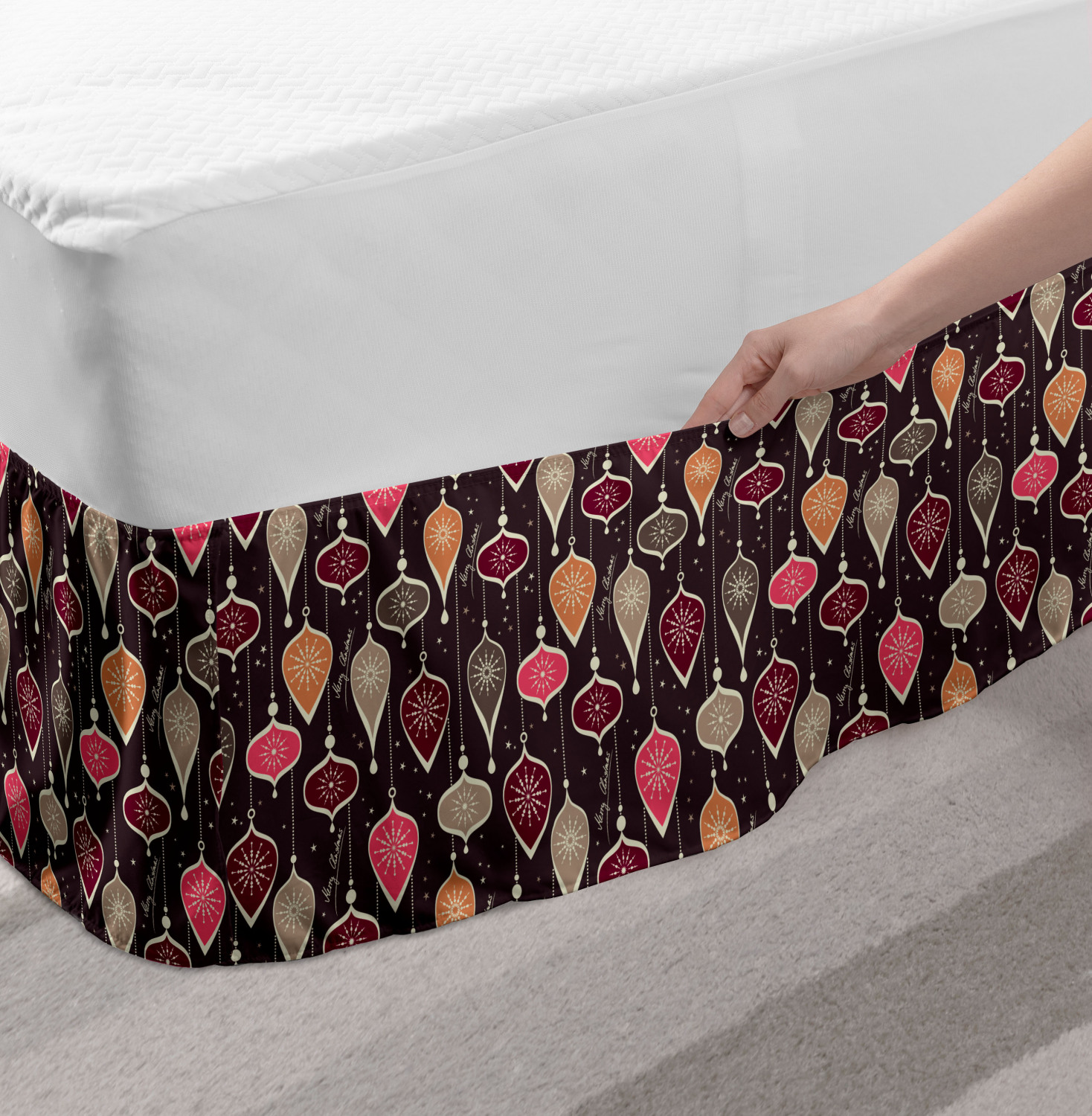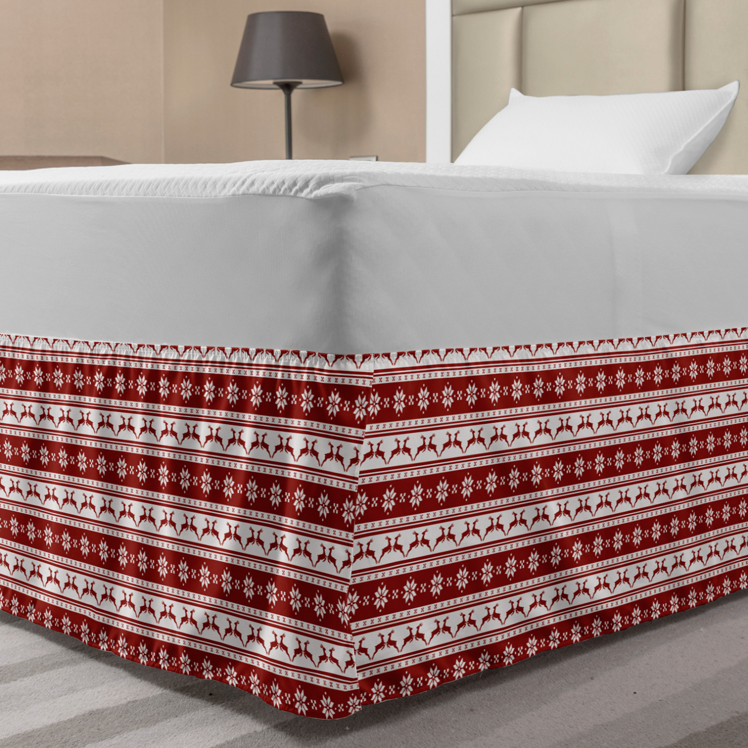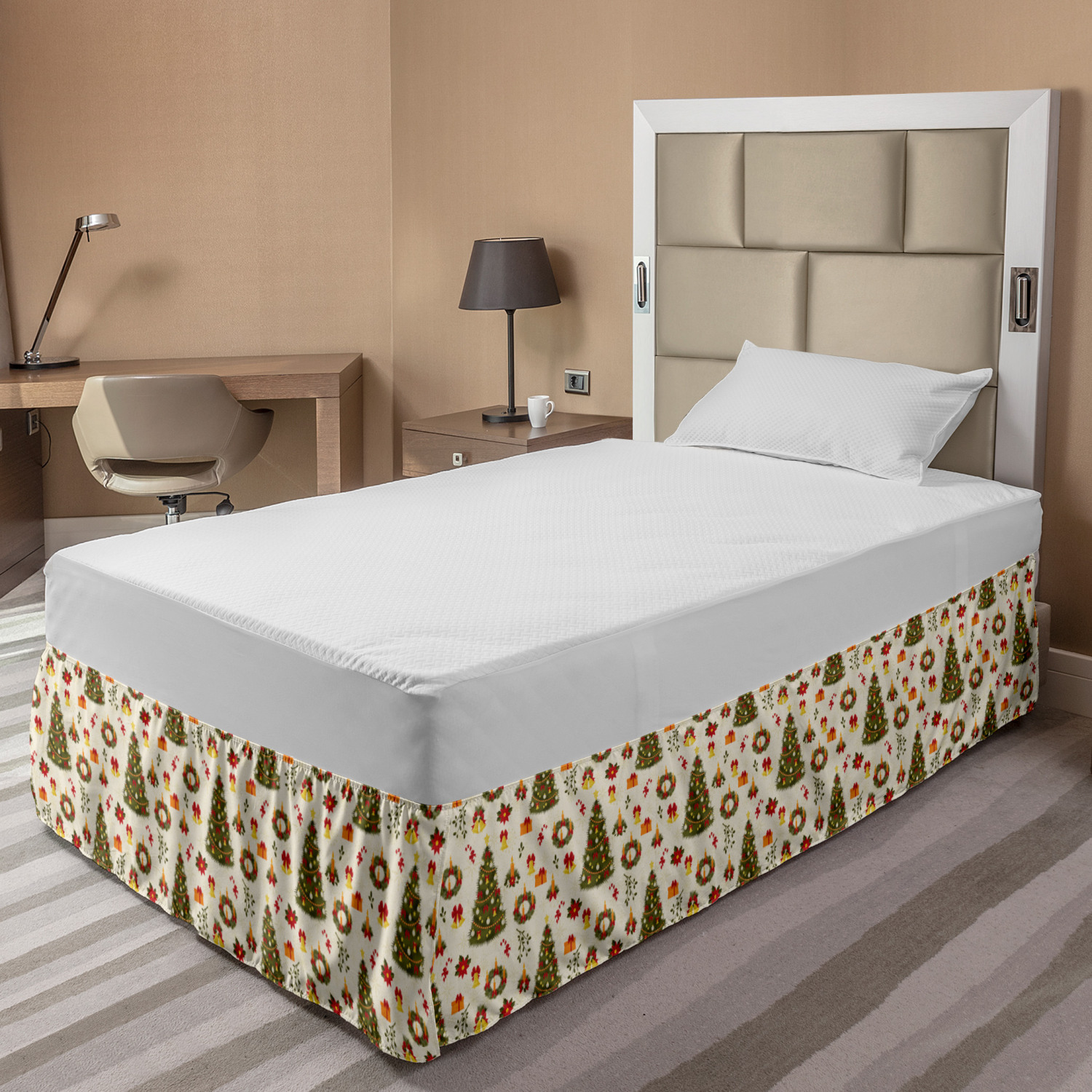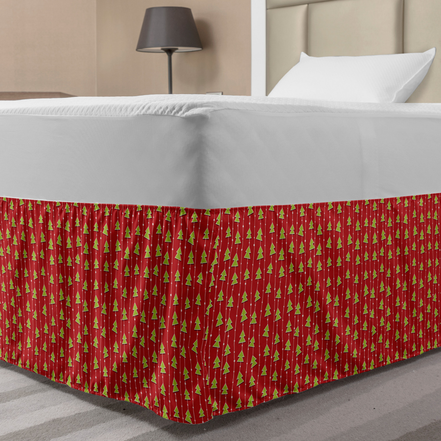 Ambesonne Christmas Print Bedskirt Elastic Wrap Around Skirt Gathered Design Ambesonne Bedskirt Bedroom Decor Wrap Around Elastic Bed Skirt Gathered Design In 4 sizes. 15 inches drop. All around wrap gathered. MADE IN TURKEY. MADE FROM - High quality 100% brushed soft microfiber fabric. Suitable for most types of beds. FEATURES - Install easily with elastic straps wrap under the mattress. Stays in place. Split corners. MACHINE WASHABLE - On cold cycle. Dryer safe and iron easy. No fading colors. For bedroom decor. PRINTED - With state of the art digital printing technology. Long-lasting bold colors & clear image. Change your bedroom's style with a simple touch of bedskirt! Our bedskirts are very easy to use; you can easily put around this elastic bed skirt and fasten up with straps under your mattress. Bring new energy to your master suite with colors and thousands of different patterns. You can easily match your bedding sets with our varied bed skirts. You can play safe and create vintage decor easily with these bed ruffles that belongs to retro-times. But you can ask for novelty and combine this piece with your modern choices. Our bed skirt is smartly designed with modern split corners. And you don't need to worry if it gets dusty or dirty. Just machine wash in the cold cycle and tumble dry on low. Thanks to new printing techniques the colors will not fade easily. Design a neat look for your bed with this gathered bed skirt. It is designed with a slim/low style ruffle to catch a more contemporary line. You can give these bed skirts as a Christmas, birthday, wedding gift, mother's day or house warming gift. It can be a great present for your mother, father, newly married friends, grandmother, aunt, uncle. The digital images we display have the most accurate color possible, however, due to differences in computer monitors, we cannot be responsible for variations in color between the actual product and your screen. Due to manual measurement, please kindly allow 1-2 cm discrepancy.
