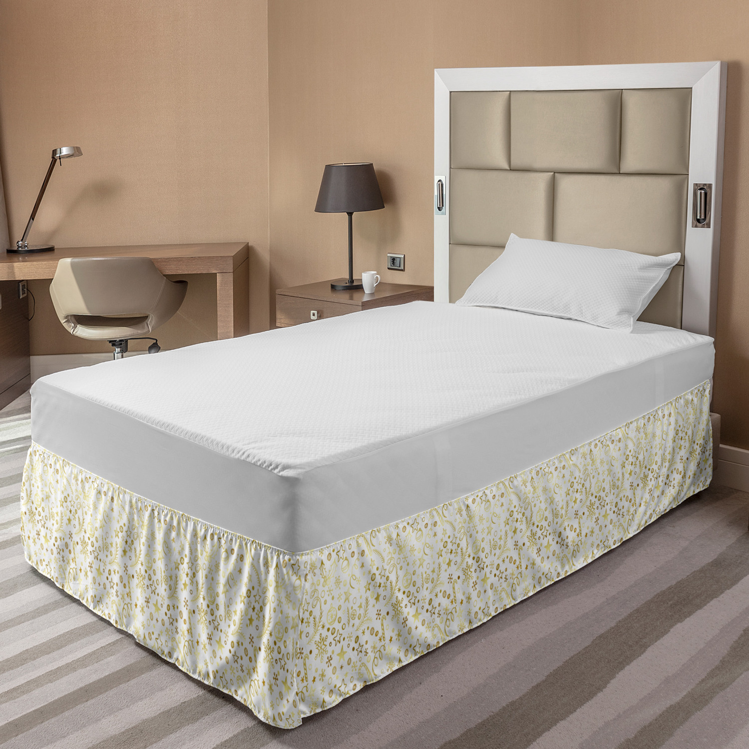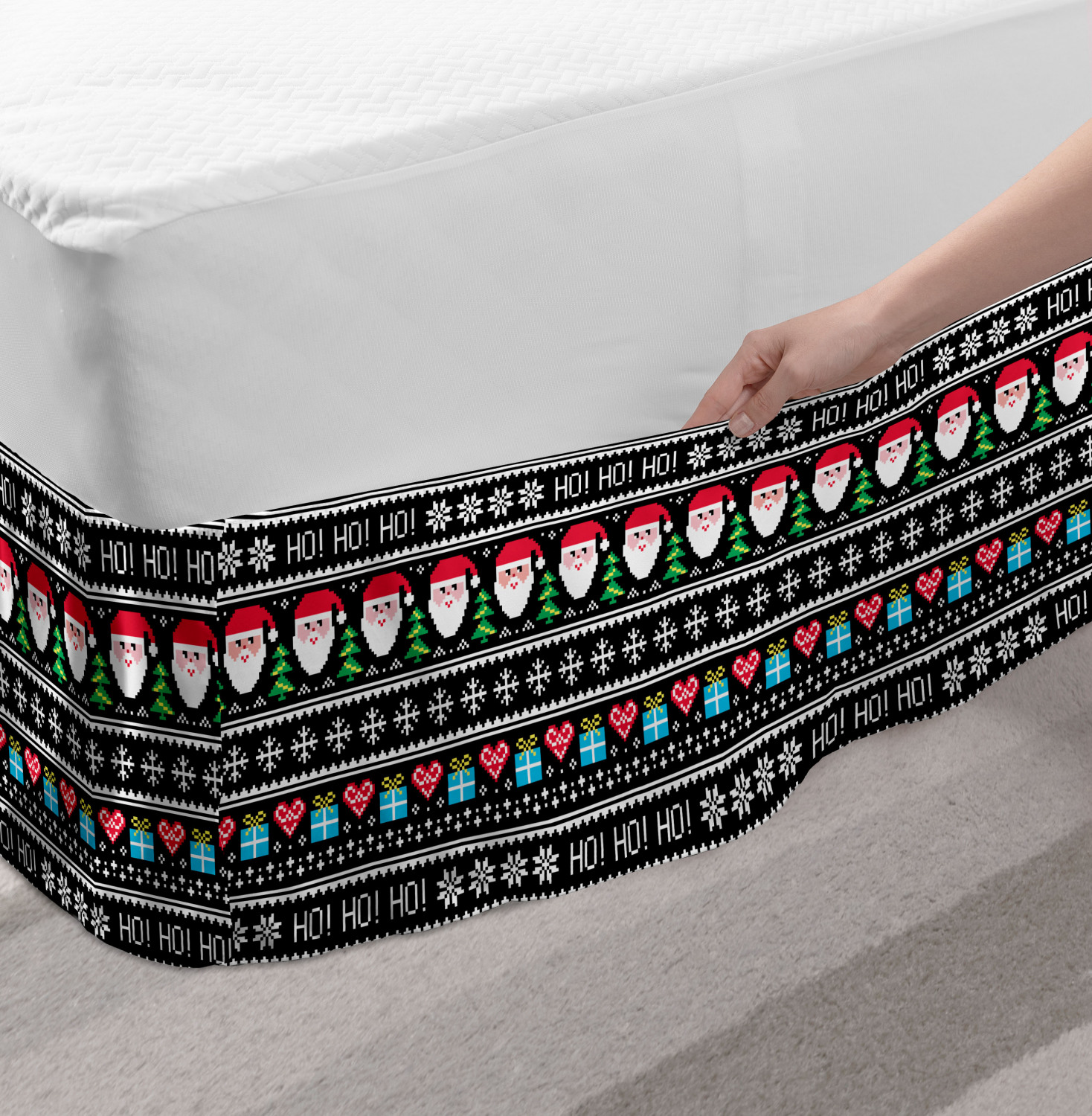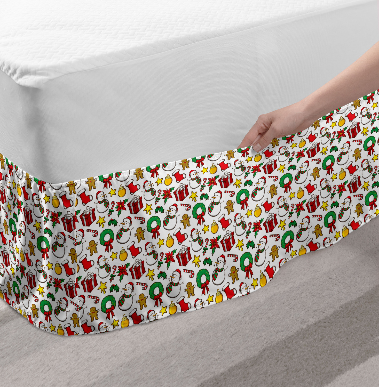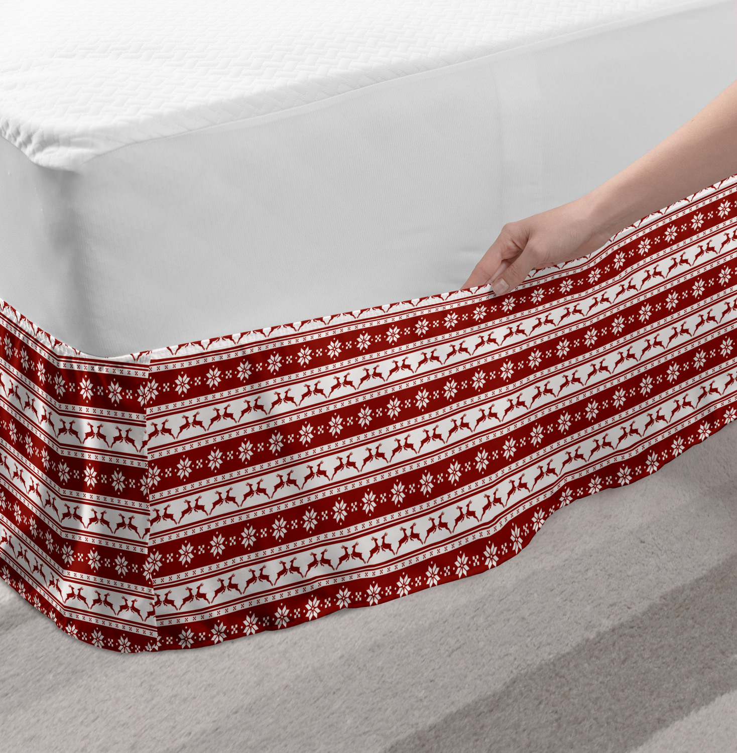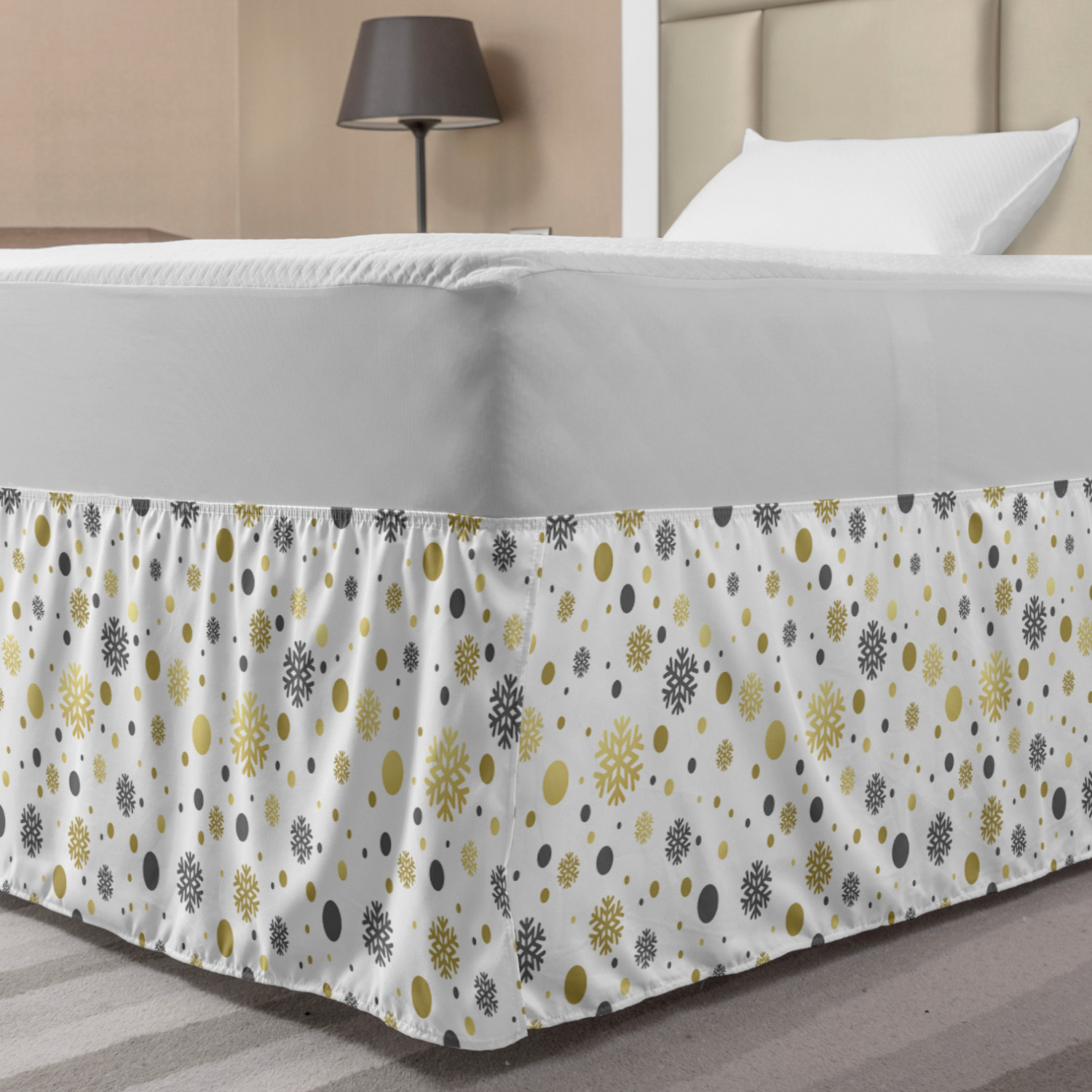 Ambesonne Christmas Print Bedskirt Elastic Wrap Around Skirt Gathered Design Ambesonne Bedskirt Bedroom Decor Wrap Around Elastic Bed Skirt Gathered Design In 4 sizes. 15 inches drop. All around wrap gathered. MADE IN TURKEY. MADE FROM - High quality 100% brushed soft microfiber fabric. Suitable for most types of beds. FEATURES - Install easily with elastic straps wrap under the mattress. Stays in place. Split corners. MACHINE WASHABLE - On cold cycle. Dryer safe and iron easy. No fading colors. For bedroom decor. PRINTED - With state of the art digital printing technology. Long-lasting bold colors & clear image. Change your bedroom's style with a simple touch of bedskirt! Our bedskirts are very easy to use; you can easily put around this elastic bed skirt and fasten up with straps under your mattress. Bring new energy to your master suite with colors and thousands of different patterns. You can easily match your bedding sets with our varied bed skirts. You can play safe and create vintage decor easily with these bed ruffles that belongs to retro-times. But you can ask for novelty and combine this piece with your modern choices. Our bed skirt is smartly designed with modern split corners. And you don't need to worry if it gets dusty or dirty. Just machine wash in the cold cycle and tumble dry on low. Thanks to new printing techniques the colors will not fade easily. Design a neat look for your bed with this gathered bed skirt. It is designed with a slim/low style ruffle to catch a more contemporary line. You can give these bed skirts as a Christmas, birthday, wedding gift, mother's day or house warming gift. It can be a great present for your mother, father, newly married friends, grandmother, aunt, uncle. The digital images we display have the most accurate color possible, however, due to differences in computer monitors, we cannot be responsible for variations in color between the actual product and your screen. Due to manual measurement, please kindly allow 1-2 cm discrepancy.