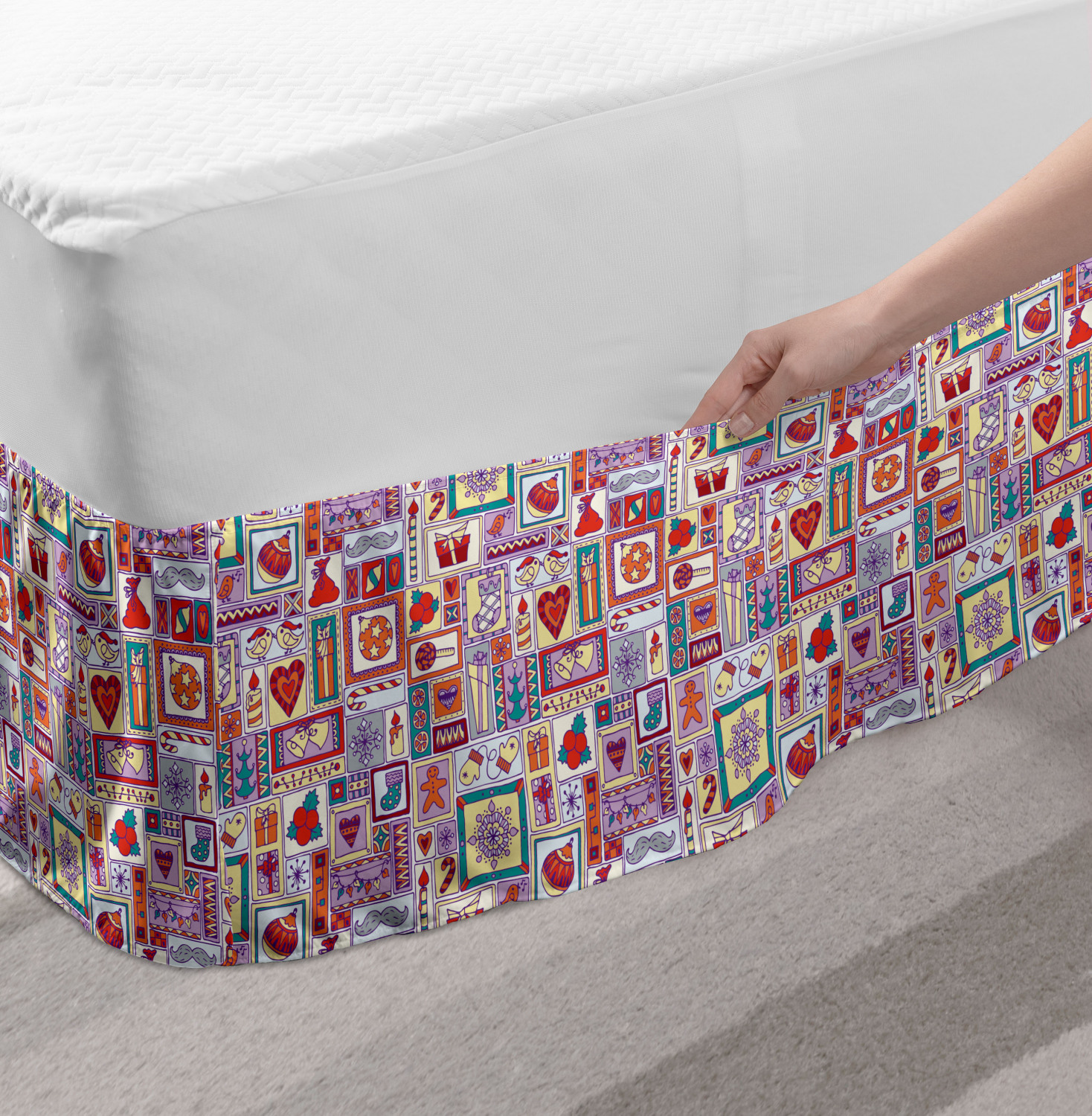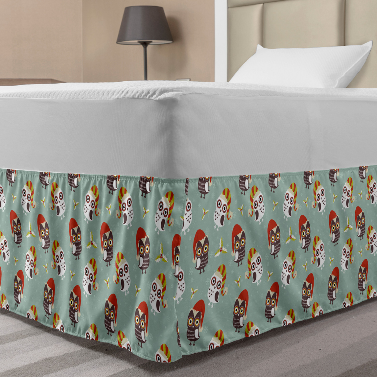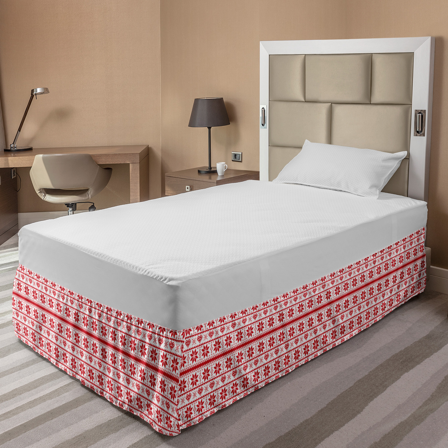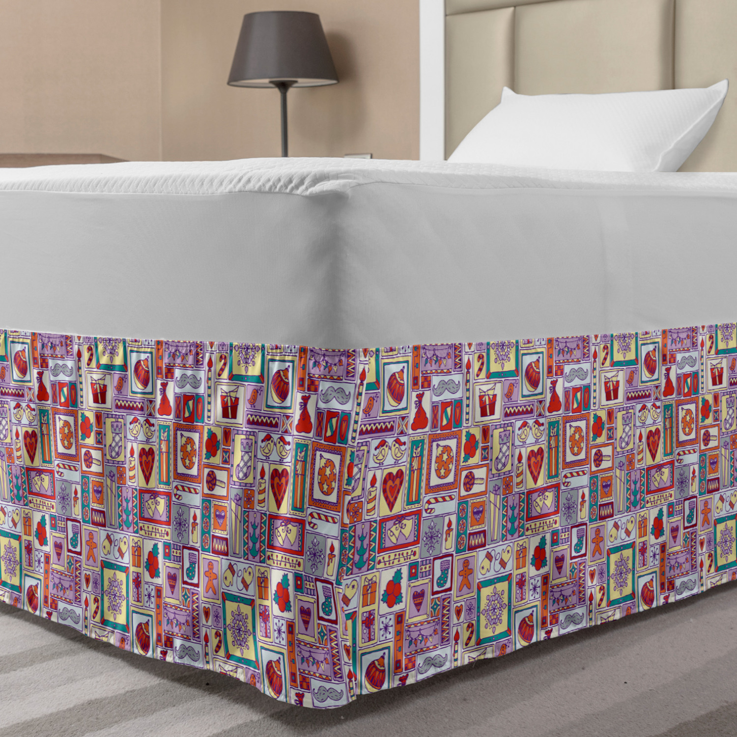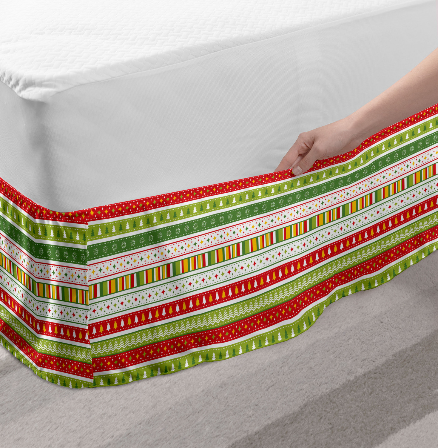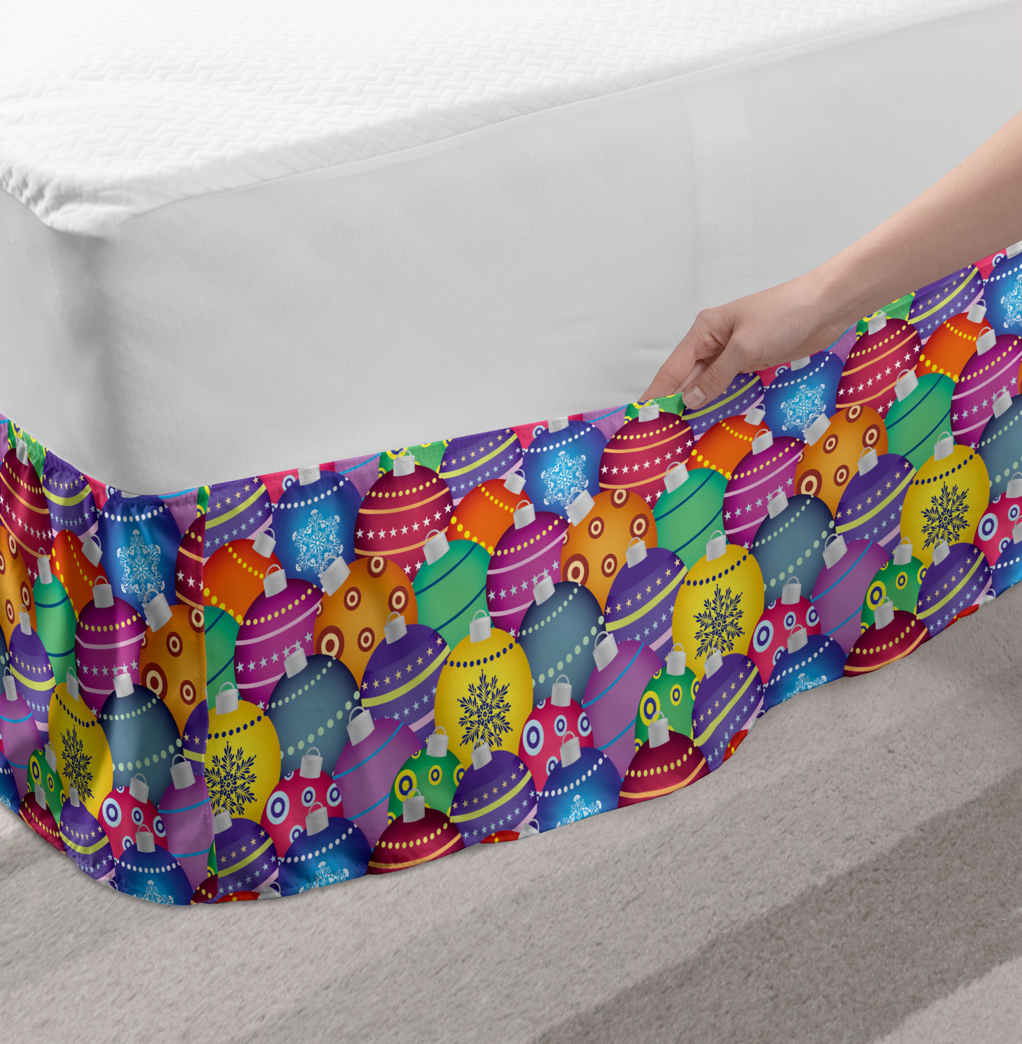 Ambesonne Christmas Print Bedskirt Elastic Wrap Around Skirt Gathered Design Ambesonne Bedskirt Bedroom Decor Wrap Around Elastic Bed Skirt Gathered Design In 4 sizes. 15 inches drop. All around wrap gathered. MADE IN TURKEY. MADE FROM - High quality 100% brushed soft microfiber fabric. Suitable for most types of beds. FEATURES - Install easily with elastic straps wrap under the mattress. Stays in place. Split corners. MACHINE WASHABLE - On cold cycle. Dryer safe and iron easy. No fading colors. For bedroom decor. PRINTED - With state of the art digital printing technology. Long-lasting bold colors & clear image. Change your bedroom's style with a simple touch of bedskirt! Our bedskirts are very easy to use; you can easily put around this elastic bed skirt and fasten up with straps under your mattress. Bring new energy to your master suite with colors and thousands of different patterns. You can easily match your bedding sets with our varied bed skirts. You can play safe and create vintage decor easily with these bed ruffles that belongs to retro-times. But you can ask for novelty and combine this piece with your modern choices. Our bed skirt is smartly designed with modern split corners. And you don't need to worry if it gets dusty or dirty. Just machine wash in the cold cycle and tumble dry on low. Thanks to new printing techniques the colors will not fade easily. Design a neat look for your bed with this gathered bed skirt. It is designed with a slim/low style ruffle to catch a more contemporary line. You can give these bed skirts as a Christmas, birthday, wedding gift, mother's day or house warming gift. It can be a great present for your mother, father, newly married friends, grandmother, aunt, uncle. The digital images we display have the most accurate color possible, however, due to differences in computer monitors, we cannot be responsible for variations in color between the actual product and your screen. Due to manual measurement, please kindly allow 1-2 cm discrepancy.