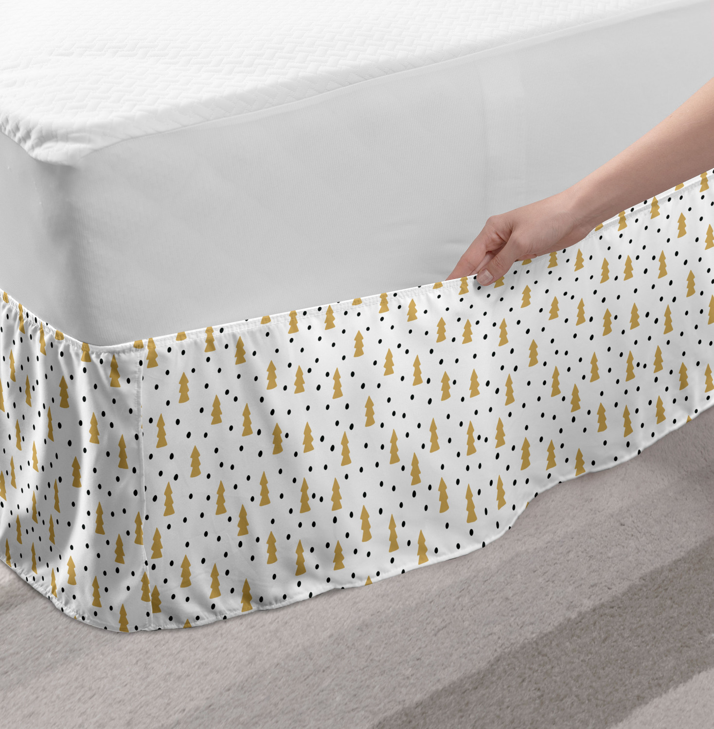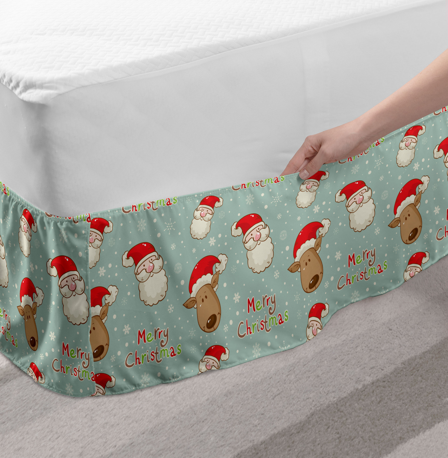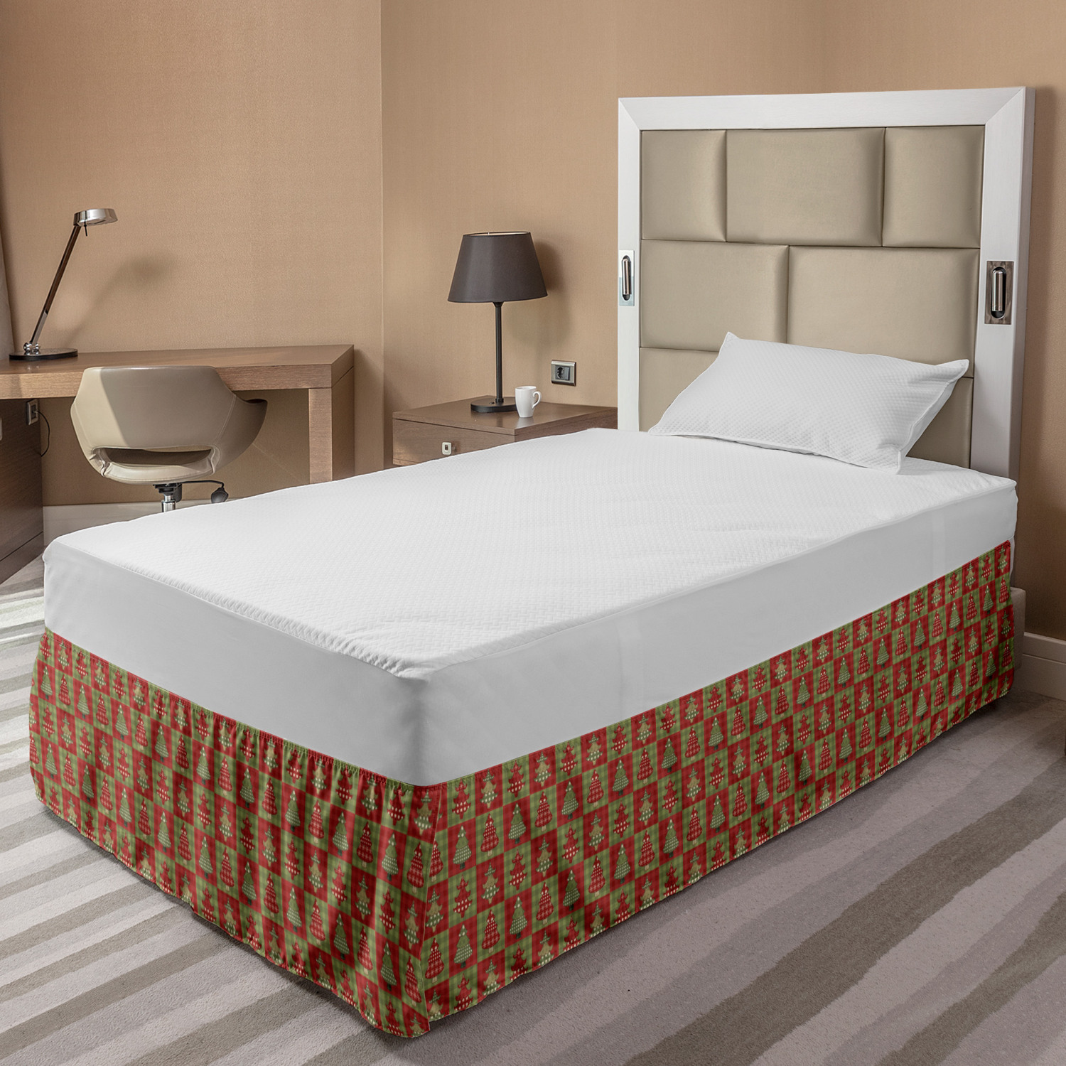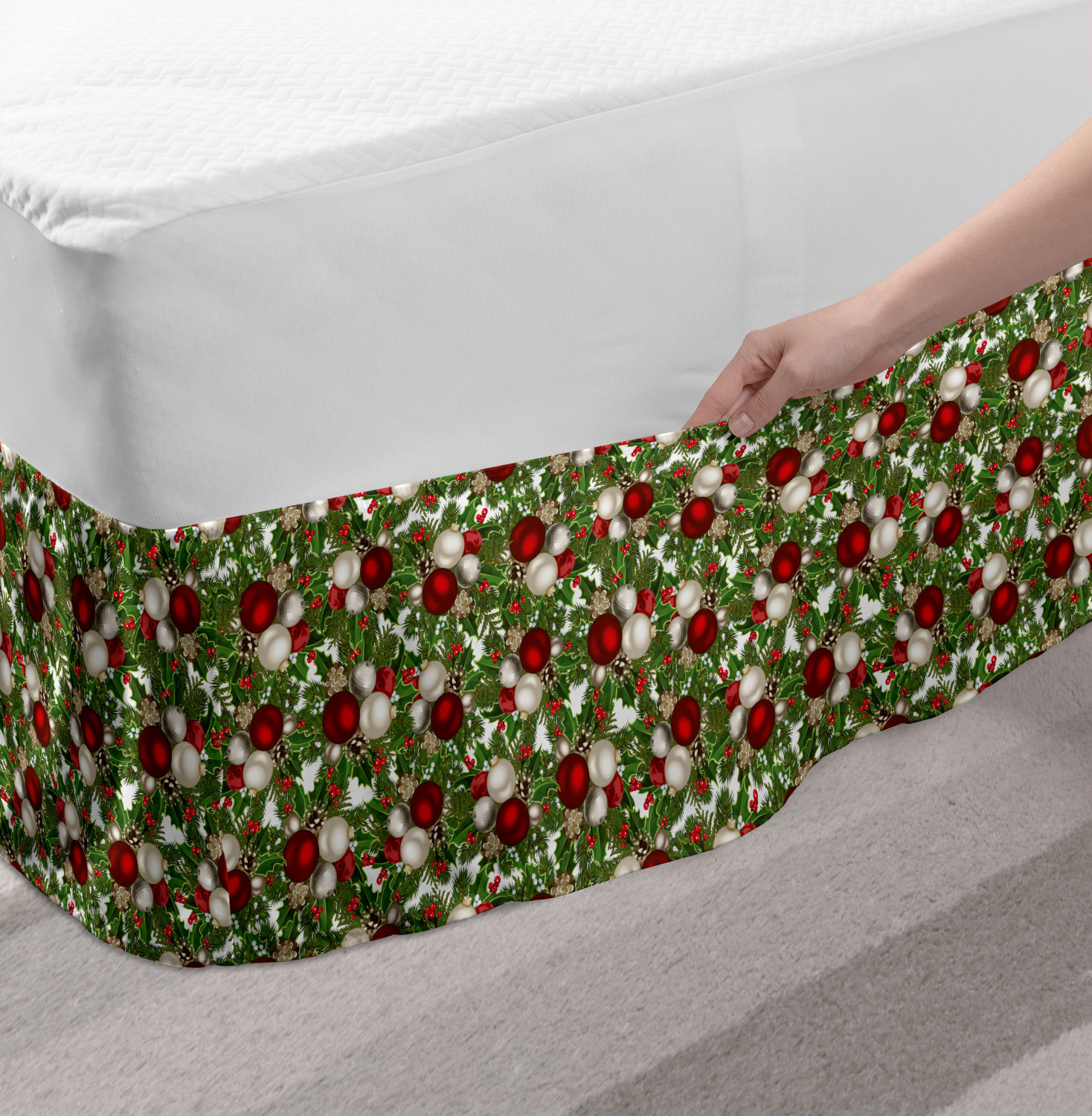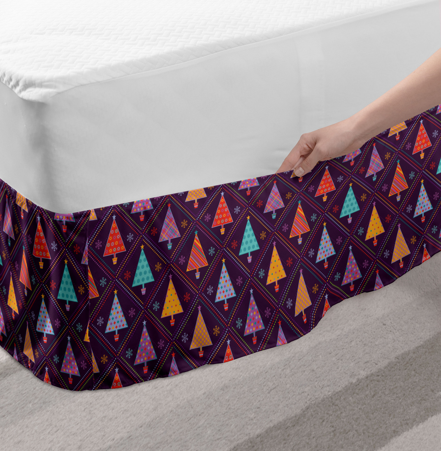 Ambesonne Christmas Print Bedskirt Elastic Wrap Around Skirt Gathered Design Ambesonne Bedskirt Bedroom Decor Wrap Around Elastic Bed Skirt Gathered Design In 4 sizes. 15 inches drop. All around wrap gathered. MADE IN TURKEY. MADE FROM - High quality 100% brushed soft microfiber fabric. Suitable for most types of beds. FEATURES - Install easily with elastic straps wrap under the mattress. Stays in place. Split corners. MACHINE WASHABLE - On cold cycle. Dryer safe and iron easy. No fading colors. For bedroom decor. PRINTED - With state of the art digital printing technology. Long-lasting bold colors & clear image. Change your bedroom's style with a simple touch of bedskirt! Our bedskirts are very easy to use; you can easily put around this elastic bed skirt and fasten up with straps under your mattress. Bring new energy to your master suite with colors and thousands of different patterns. You can easily match your bedding sets with our varied bed skirts. You can play safe and create vintage decor easily with these bed ruffles that belongs to retro-times. But you can ask for novelty and combine this piece with your modern choices. Our bed skirt is smartly designed with modern split corners. And you don't need to worry if it gets dusty or dirty. Just machine wash in the cold cycle and tumble dry on low. Thanks to new printing techniques the colors will not fade easily. Design a neat look for your bed with this gathered bed skirt. It is designed with a slim/low style ruffle to catch a more contemporary line. You can give these bed skirts as a Christmas, birthday, wedding gift, mother's day or house warming gift. It can be a great present for your mother, father, newly married friends, grandmother, aunt, uncle. The digital images we display have the most accurate color possible, however, due to differences in computer monitors, we cannot be responsible for variations in color between the actual product and your screen. Due to manual measurement, please kindly allow 1-2 cm discrepancy.