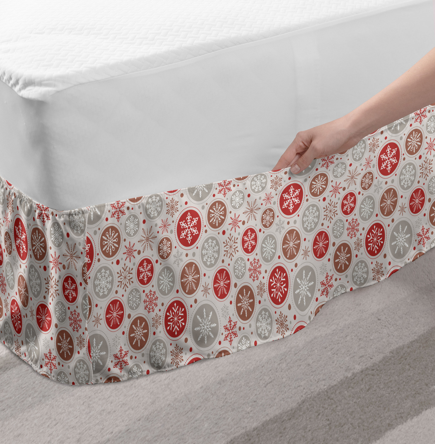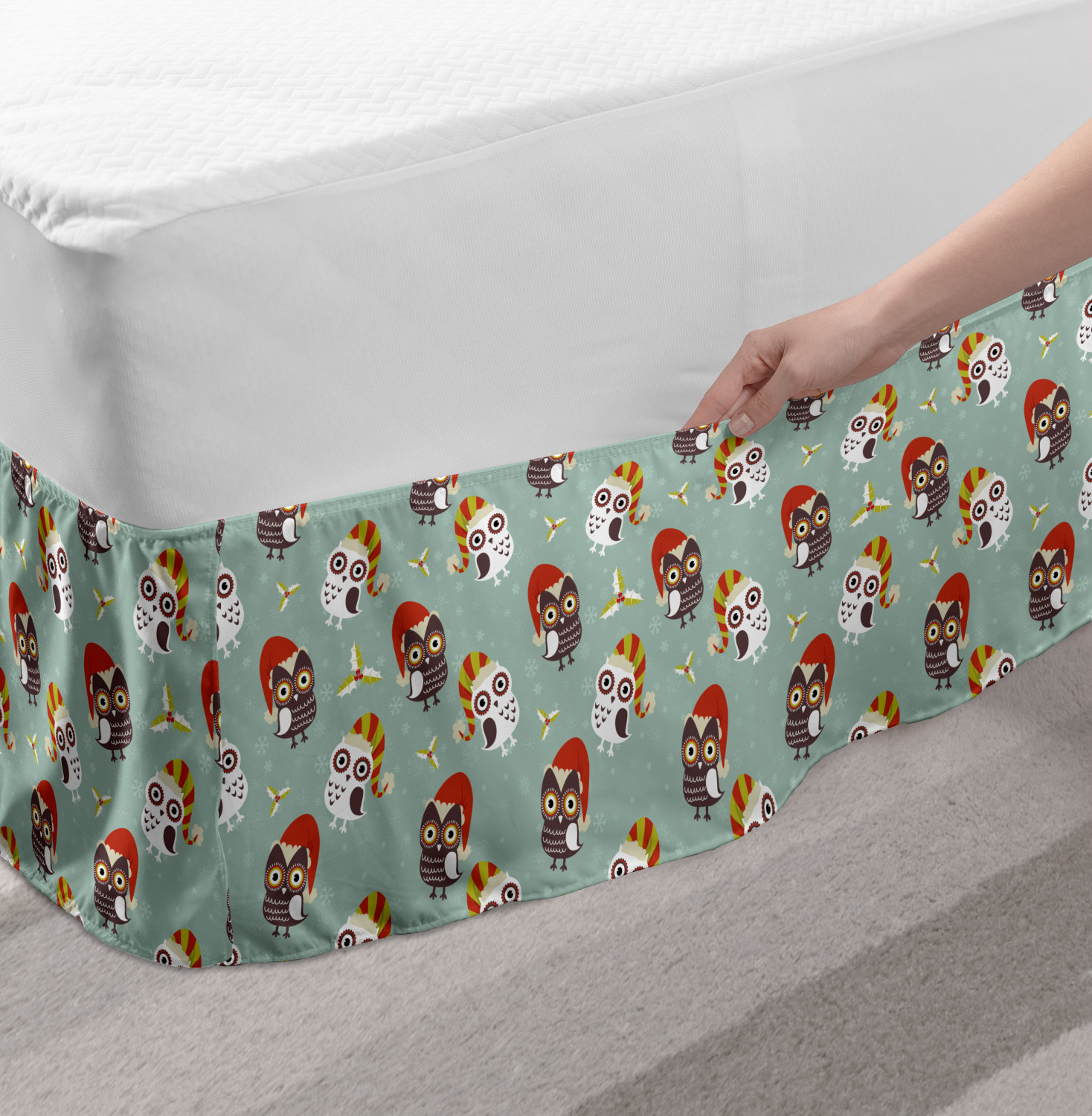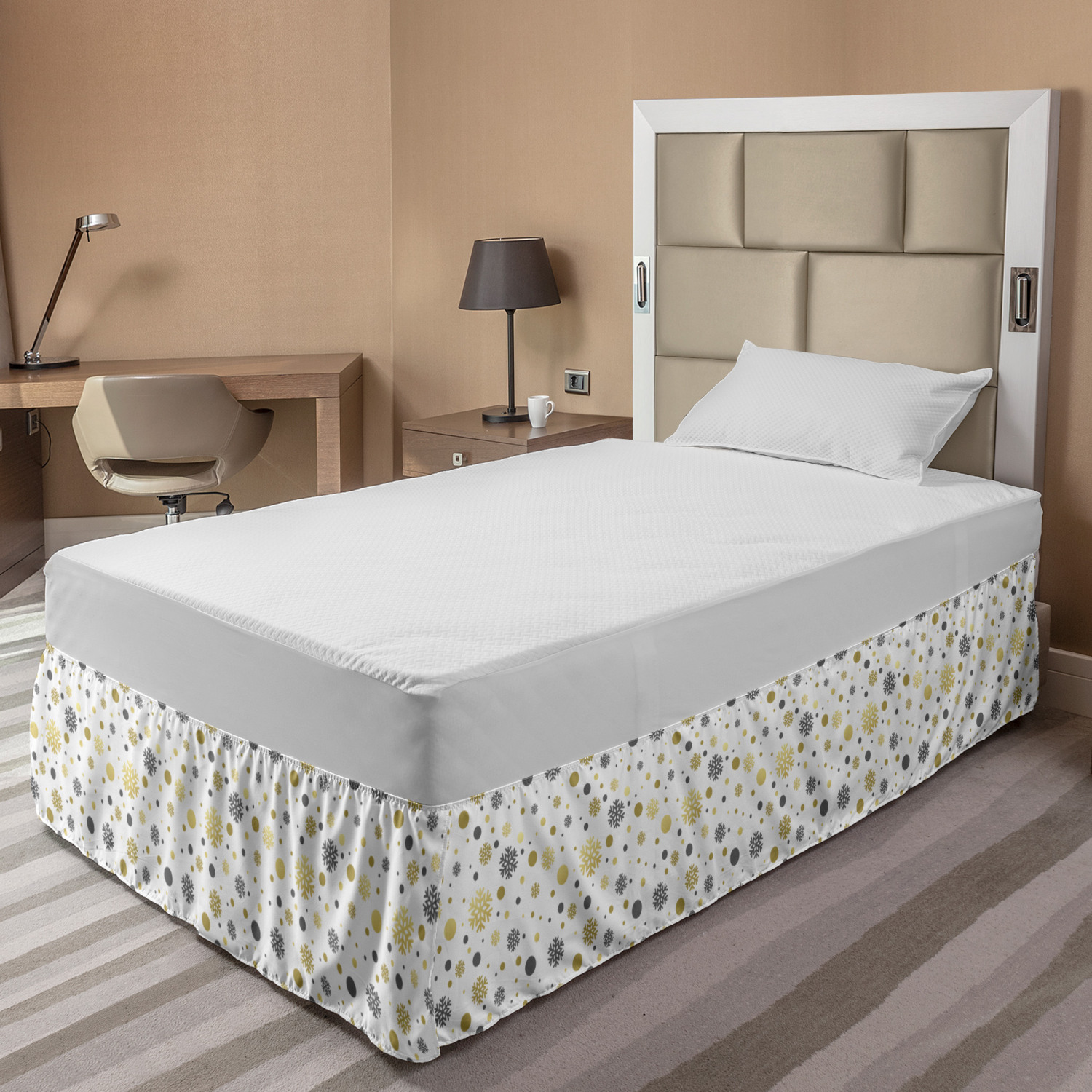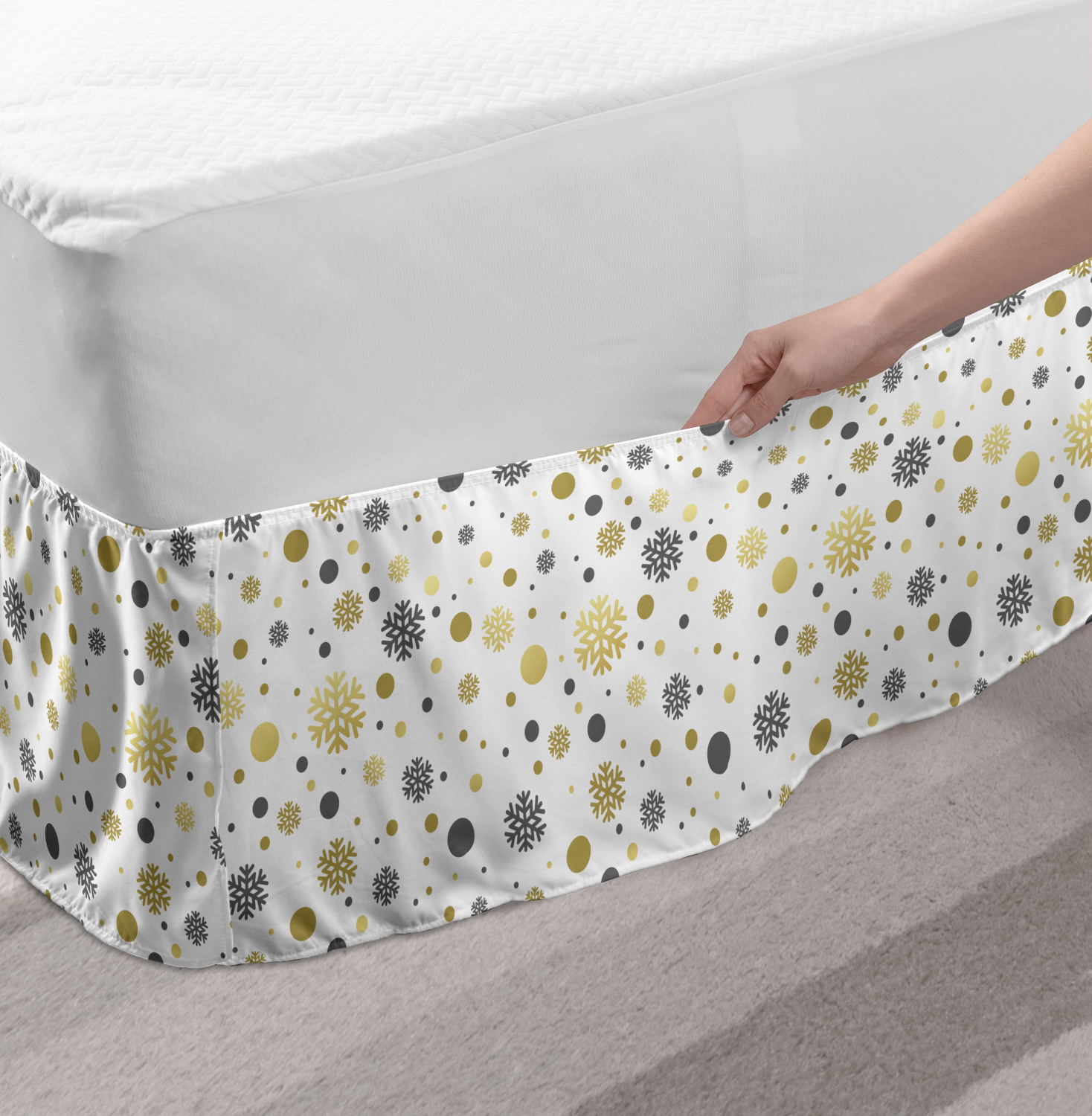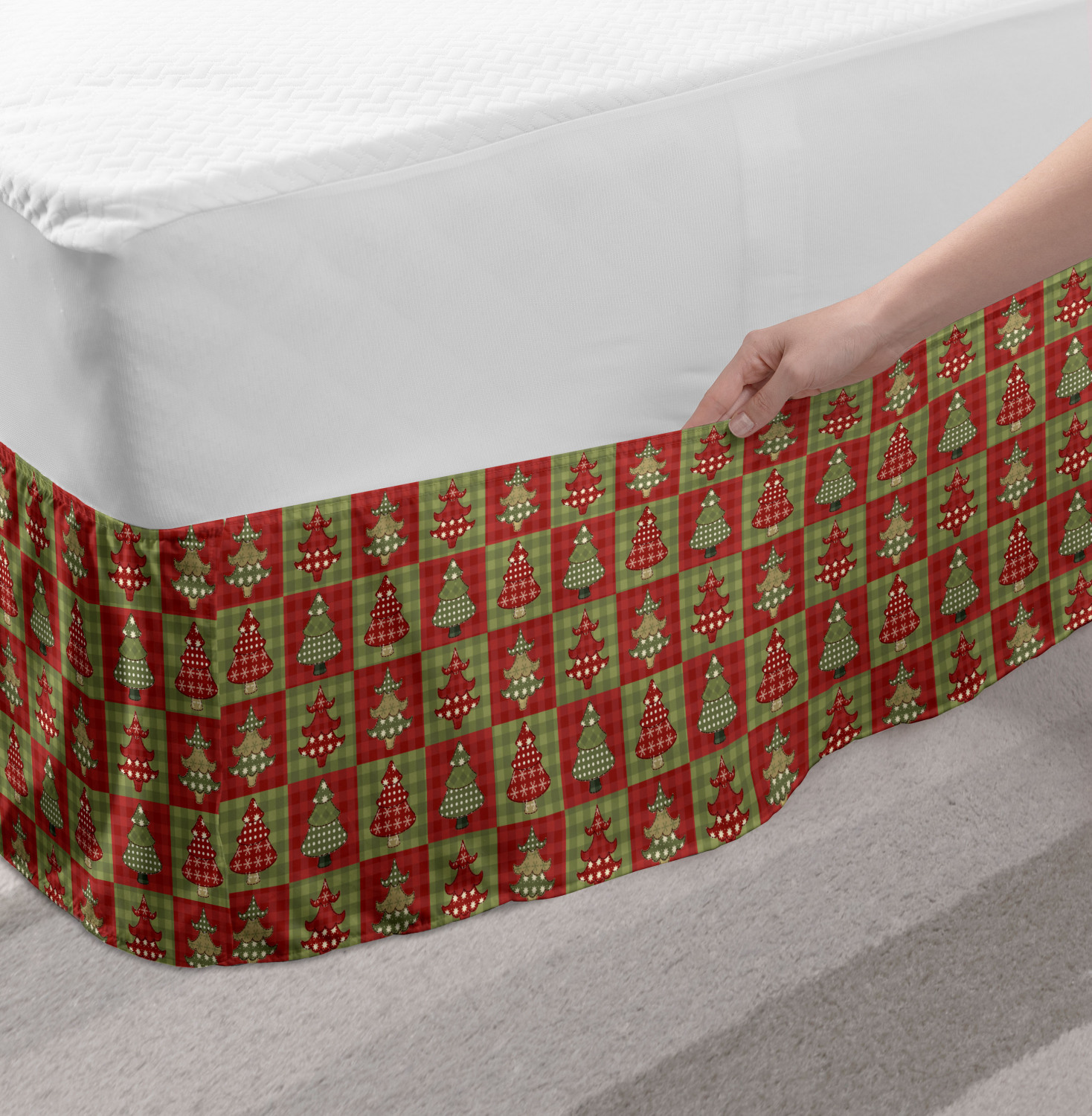 Ambesonne Christmas Print Bedskirt Elastic Wrap Around Skirt Gathered Design Ambesonne Bedskirt Bedroom Decor Wrap Around Elastic Bed Skirt Gathered Design In 4 sizes. 15 inches drop. All around wrap gathered. MADE IN TURKEY. MADE FROM - High quality 100% brushed soft microfiber fabric. Suitable for most types of beds. FEATURES - Install easily with elastic straps wrap under the mattress. Stays in place. Split corners. MACHINE WASHABLE - On cold cycle. Dryer safe and iron easy. No fading colors. For bedroom decor. PRINTED - With state of the art digital printing technology. Long-lasting bold colors & clear image. Change your bedroom's style with a simple touch of bedskirt! Our bedskirts are very easy to use; you can easily put around this elastic bed skirt and fasten up with straps under your mattress. Bring new energy to your master suite with colors and thousands of different patterns. You can easily match your bedding sets with our varied bed skirts. You can play safe and create vintage decor easily with these bed ruffles that belongs to retro-times. But you can ask for novelty and combine this piece with your modern choices. Our bed skirt is smartly designed with modern split corners. And you don't need to worry if it gets dusty or dirty. Just machine wash in the cold cycle and tumble dry on low. Thanks to new printing techniques the colors will not fade easily. Design a neat look for your bed with this gathered bed skirt. It is designed with a slim/low style ruffle to catch a more contemporary line. You can give these bed skirts as a Christmas, birthday, wedding gift, mother's day or house warming gift. It can be a great present for your mother, father, newly married friends, grandmother, aunt, uncle. The digital images we display have the most accurate color possible, however, due to differences in computer monitors, we cannot be responsible for variations in color between the actual product and your screen. Due to manual measurement, please kindly allow 1-2 cm discrepancy.