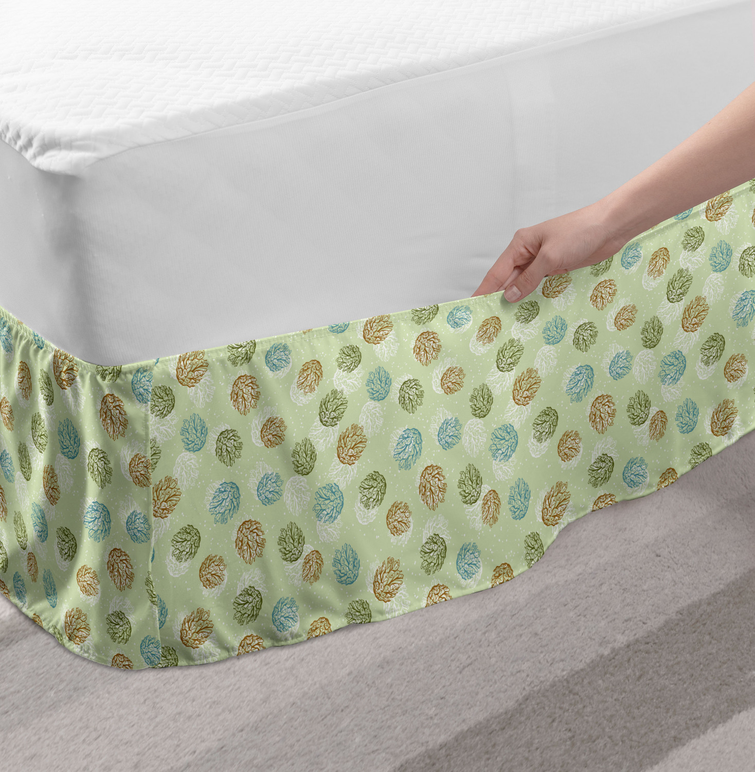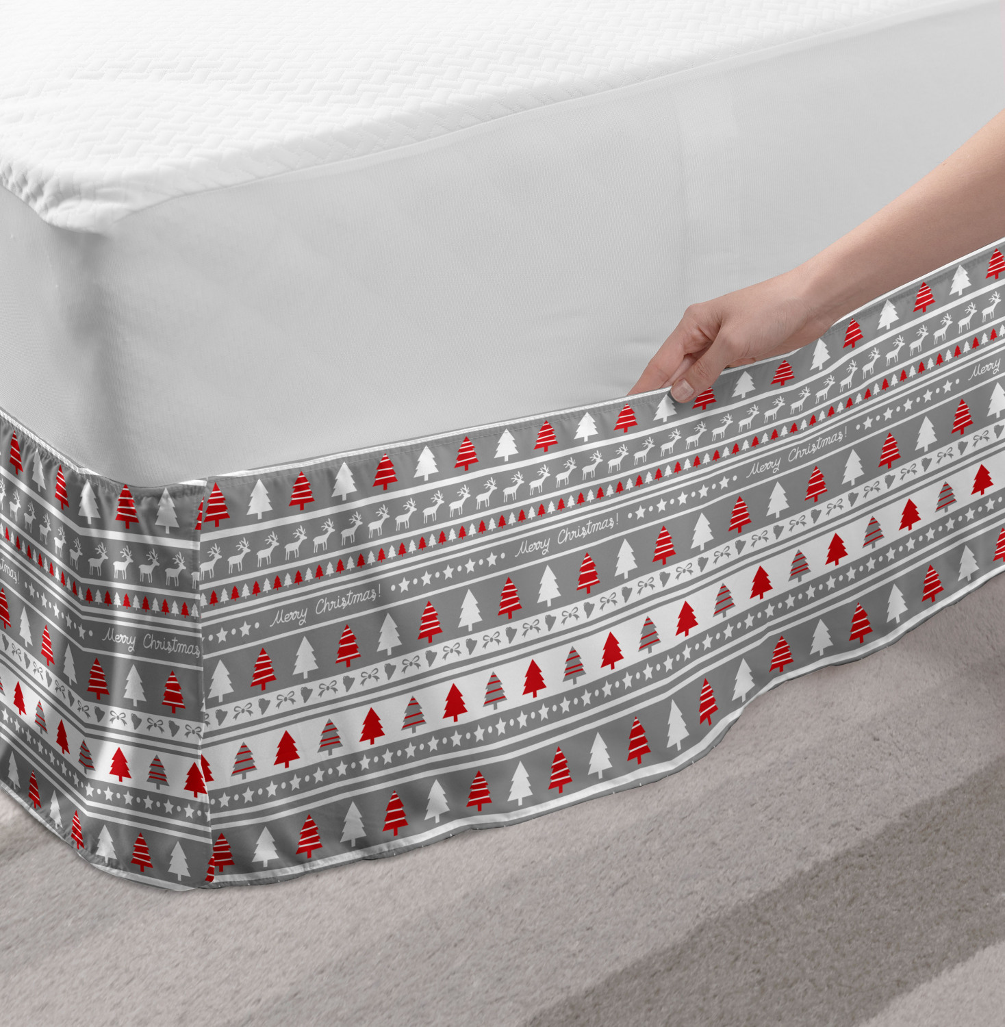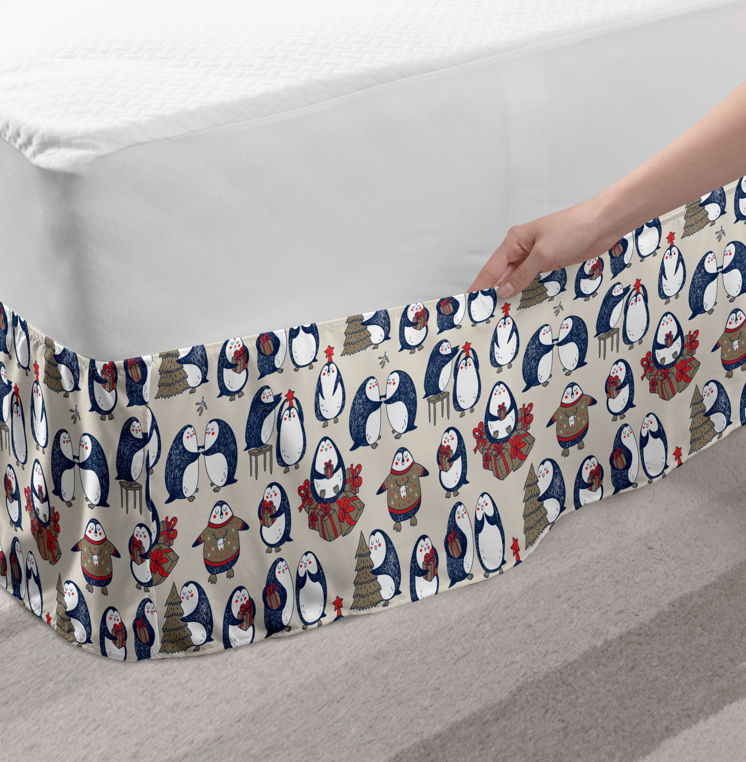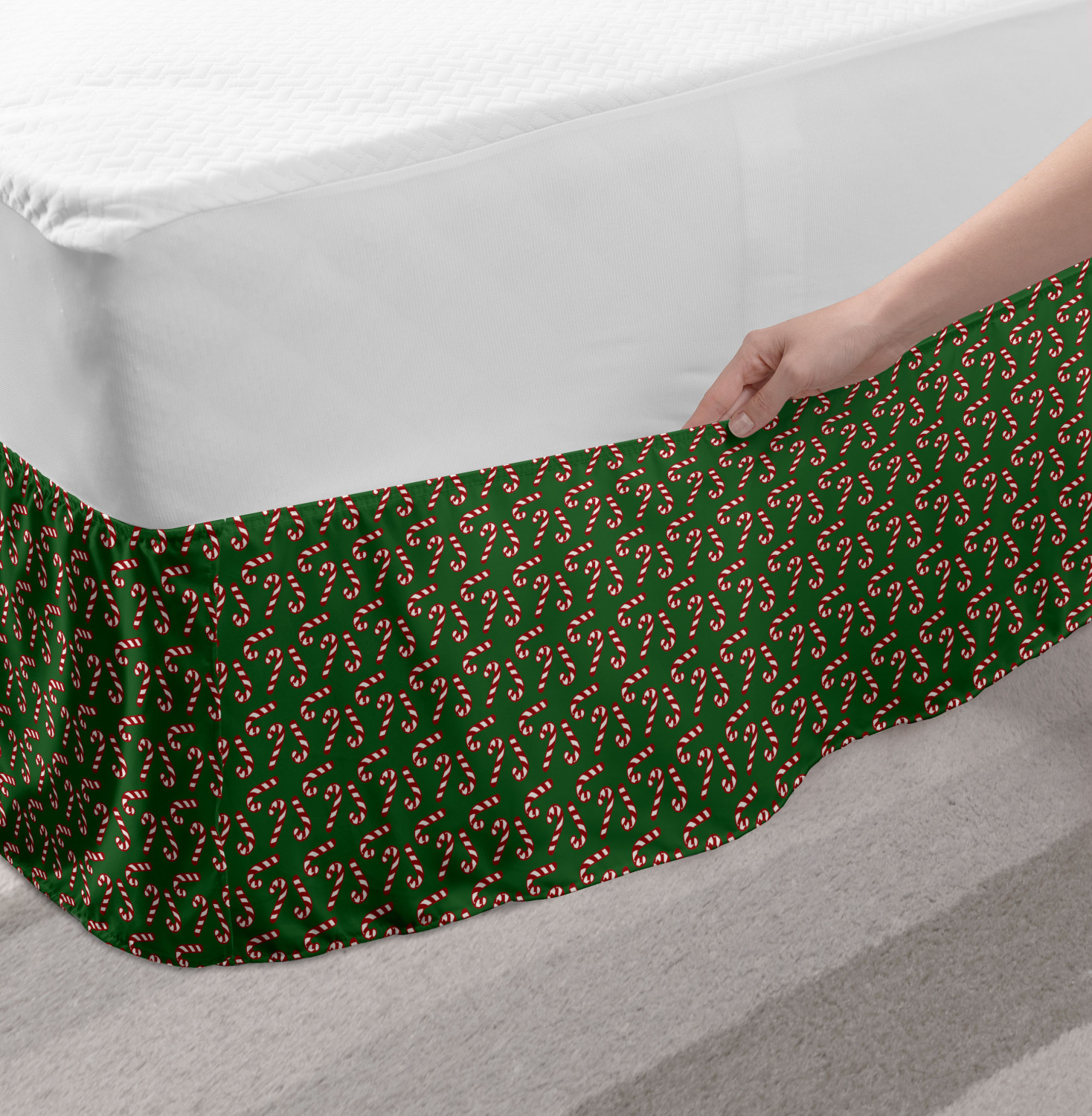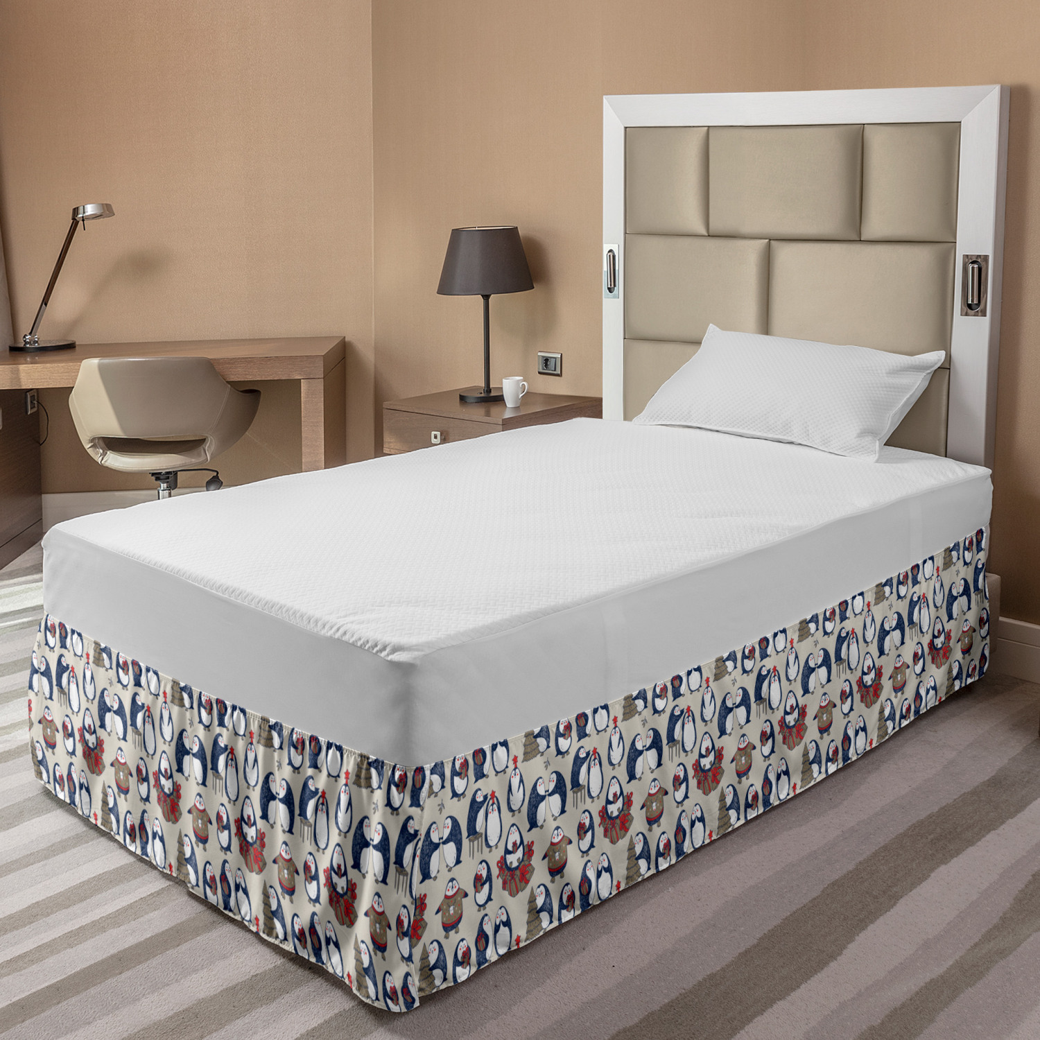 Ambesonne Christmas Print Bedskirt Elastic Wrap Around Skirt Gathered Design Ambesonne Bedskirt Bedroom Decor Wrap Around Elastic Bed Skirt Gathered Design In 4 sizes. 15 inches drop. All around wrap gathered. MADE IN TURKEY. MADE FROM - High quality 100% brushed soft microfiber fabric. Suitable for most types of beds. FEATURES - Install easily with elastic straps wrap under the mattress. Stays in place. Split corners. MACHINE WASHABLE - On cold cycle. Dryer safe and iron easy. No fading colors. For bedroom decor. PRINTED - With state of the art digital printing technology. Long-lasting bold colors & clear image. Change your bedroom's style with a simple touch of bedskirt! Our bedskirts are very easy to use; you can easily put around this elastic bed skirt and fasten up with straps under your mattress. Bring new energy to your master suite with colors and thousands of different patterns. You can easily match your bedding sets with our varied bed skirts. You can play safe and create vintage decor easily with these bed ruffles that belongs to retro-times. But you can ask for novelty and combine this piece with your modern choices. Our bed skirt is smartly designed with modern split corners. And you don't need to worry if it gets dusty or dirty. Just machine wash in the cold cycle and tumble dry on low. Thanks to new printing techniques the colors will not fade easily. Design a neat look for your bed with this gathered bed skirt. It is designed with a slim/low style ruffle to catch a more contemporary line. You can give these bed skirts as a Christmas, birthday, wedding gift, mother's day or house warming gift. It can be a great present for your mother, father, newly married friends, grandmother, aunt, uncle. The digital images we display have the most accurate color possible, however, due to differences in computer monitors, we cannot be responsible for variations in color between the actual product and your screen. Due to manual measurement, please kindly allow 1-2 cm discrepancy.