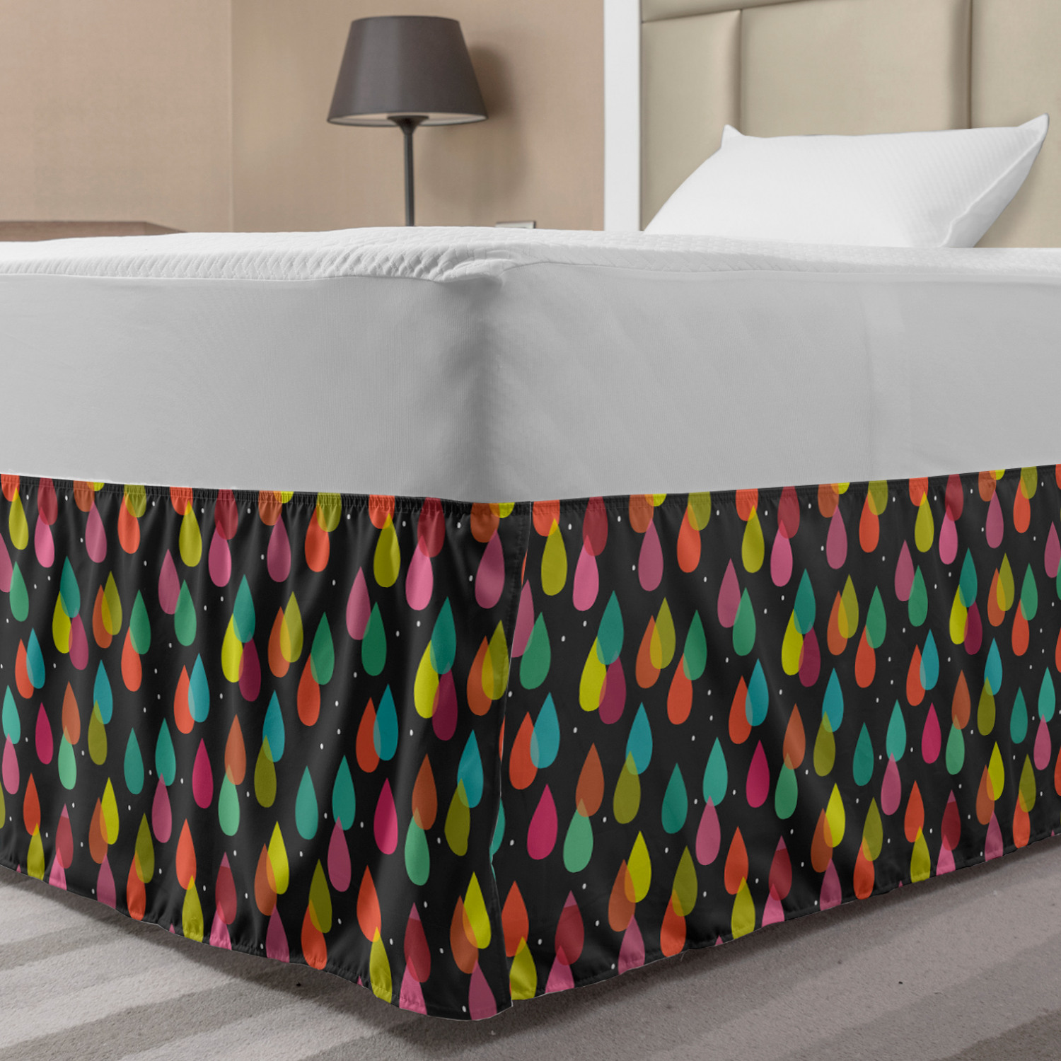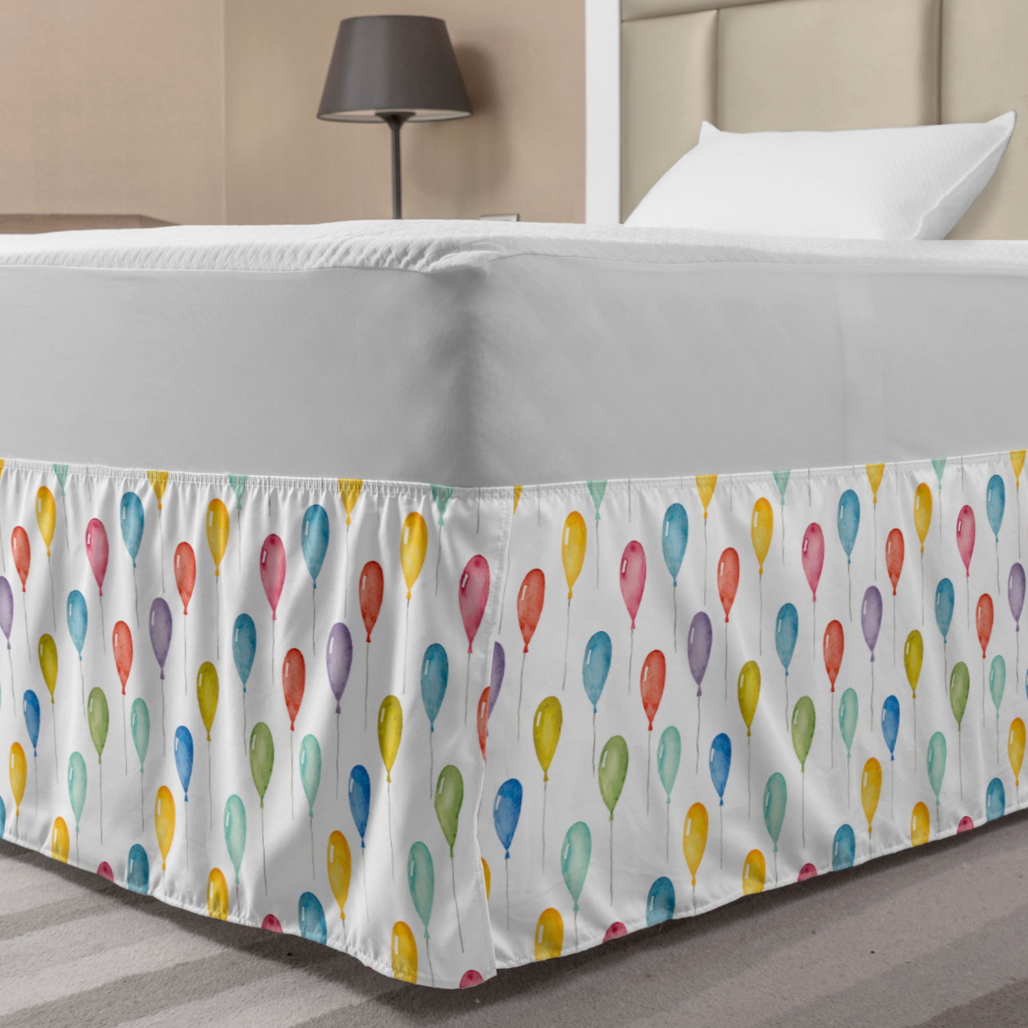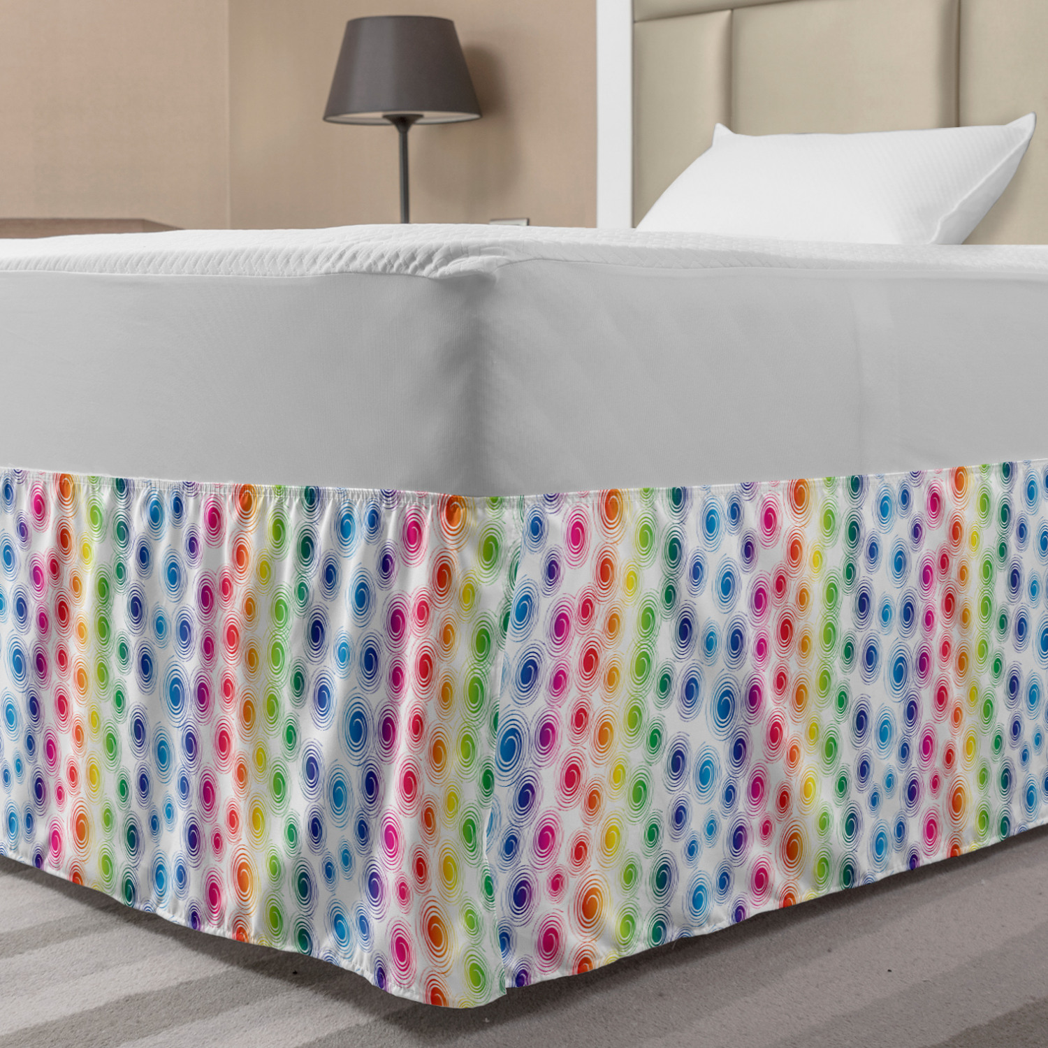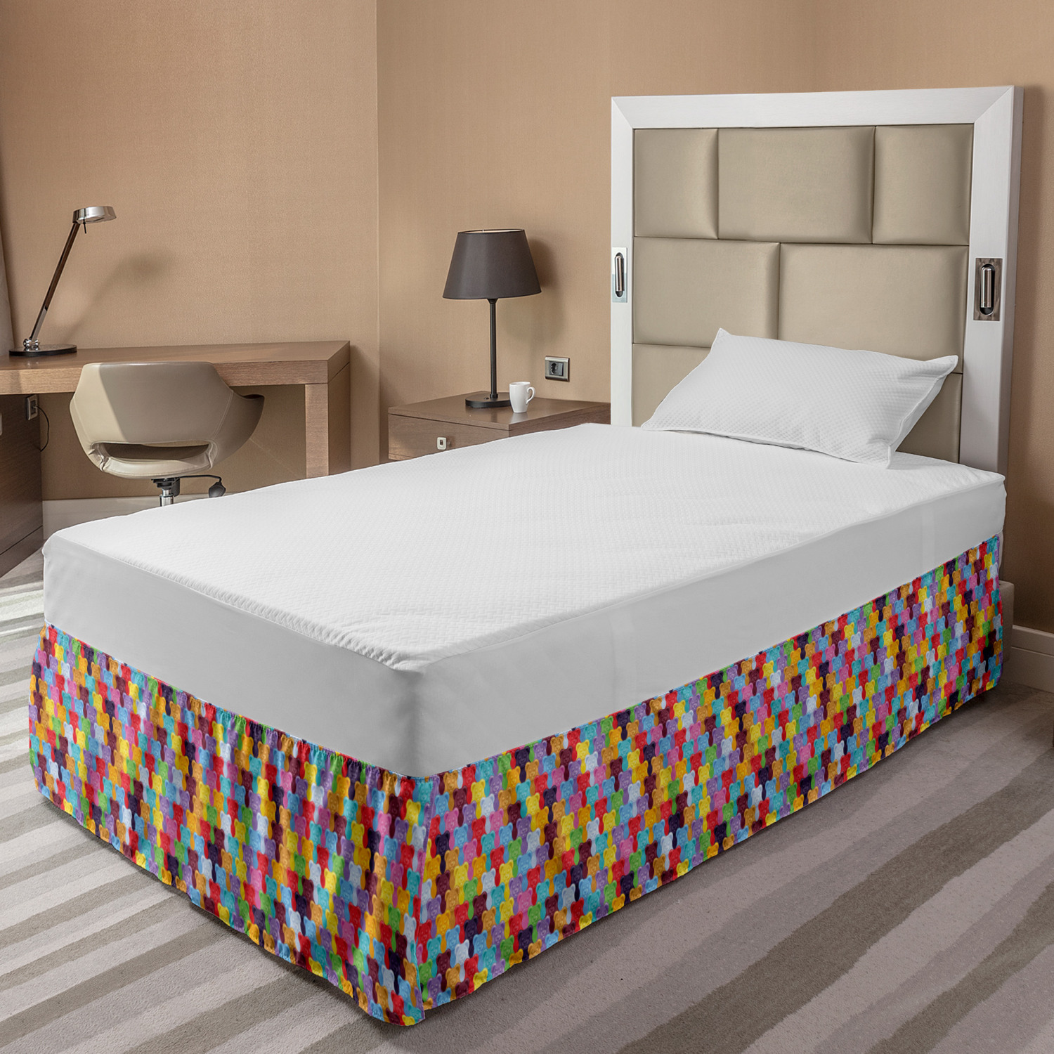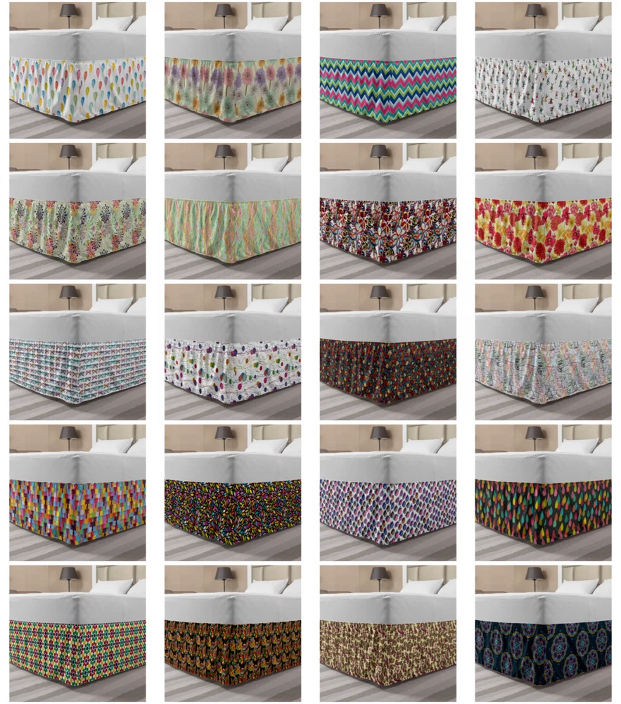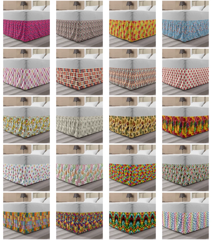 Ambesonne Colorful Theme Bedskirt Elastic Wrap Around Skirt Gathered Design Ambesonne Bedskirt Bedroom Decor Wrap Around Elastic Bed Skirt Gathered Design In 4 sizes. 15 inches drop. All around wrap gathered. MADE IN TURKEY. MADE FROM - High quality 100% brushed soft microfiber fabric. Suitable for most types of beds. FEATURES - Install easily with elastic straps wrap under the mattress. Stays in place. Split corners. MACHINE WASHABLE - On cold cycle. Dryer safe and iron easy. No fading colors. For bedroom decor. PRINTED - With state of the art digital printing technology. Long-lasting bold colors & clear image. Change your bedroom's style with a simple touch of bedskirt! Our bedskirts are very easy to use; you can easily put around this elastic bed skirt and fasten up with straps under your mattress. Bring new energy to your master suite with colors and thousands of different patterns. You can easily match your bedding sets with our varied bed skirts. You can play safe and create vintage decor easily with these bed ruffles that belongs to retro-times. But you can ask for novelty and combine this piece with your modern choices. Our bed skirt is smartly designed with modern split corners. And you don't need to worry if it gets dusty or dirty. Just machine wash in the cold cycle and tumble dry on low. Thanks to new printing techniques the colors will not fade easily. Design a neat look for your bed with this gathered bed skirt. It is designed with a slim/low style ruffle to catch a more contemporary line. You can give these bed skirts as a Christmas, birthday, wedding gift, mother's day or house warming gift. It can be a great present for your mother, father, newly married friends, grandmother, aunt, uncle. The digital images we display have the most accurate color possible, however, due to differences in computer monitors, we cannot be responsible for variations in color between the actual product and your screen. Due to manual measurement, please kindly allow 1-2 cm discrepancy.