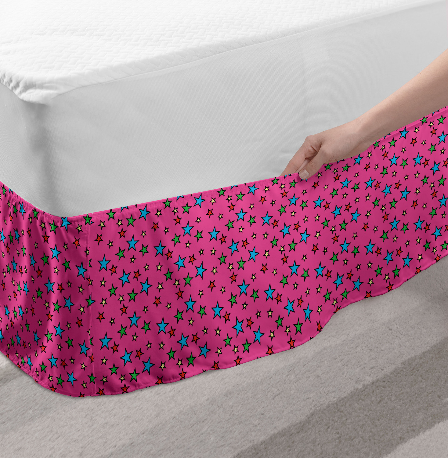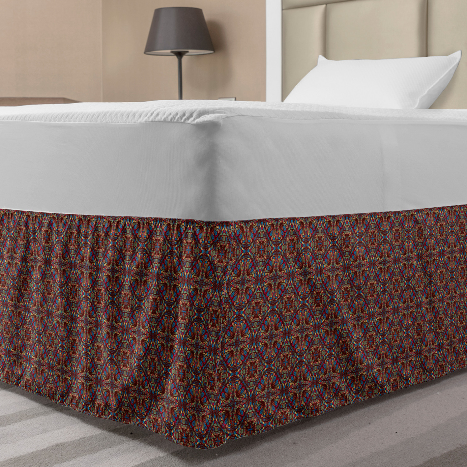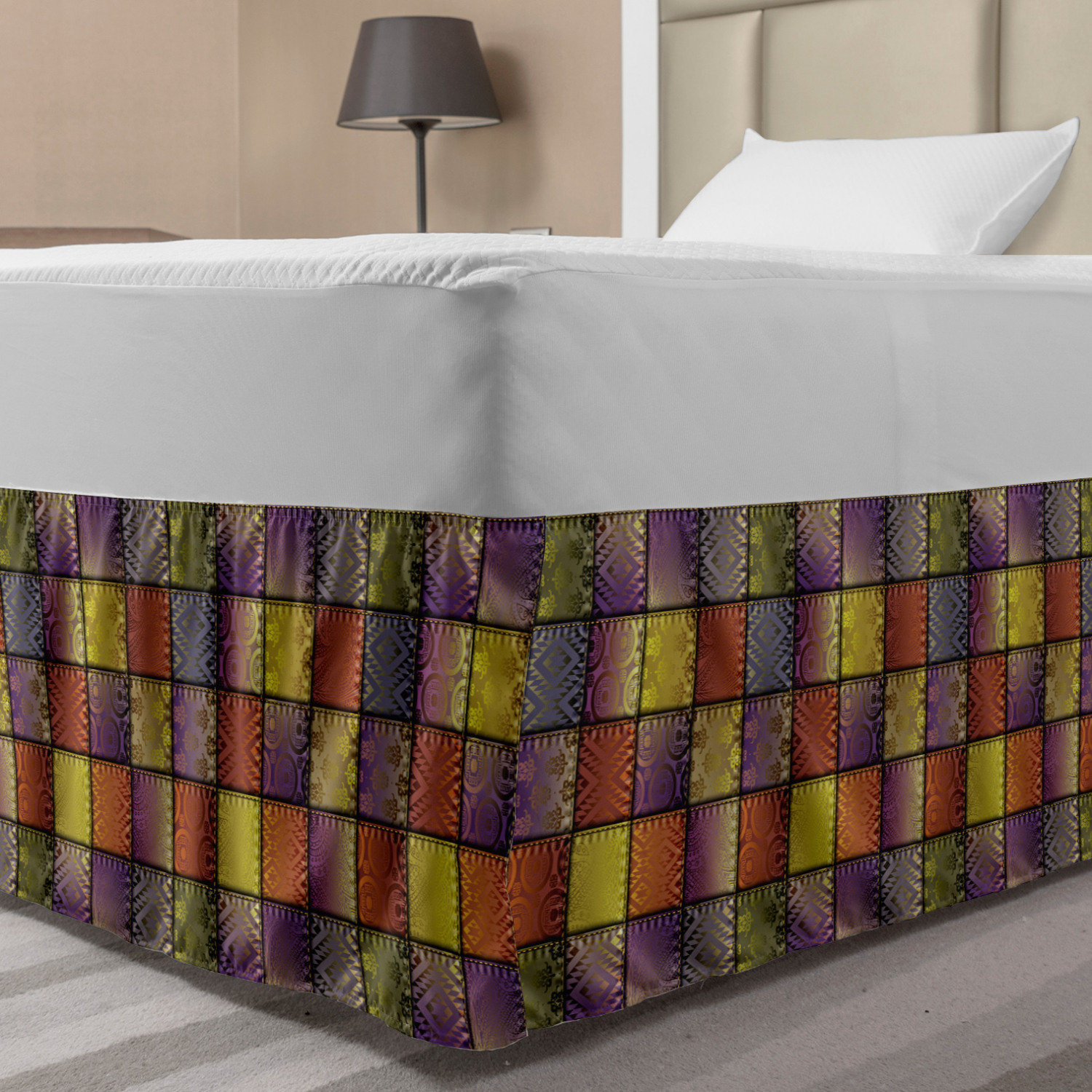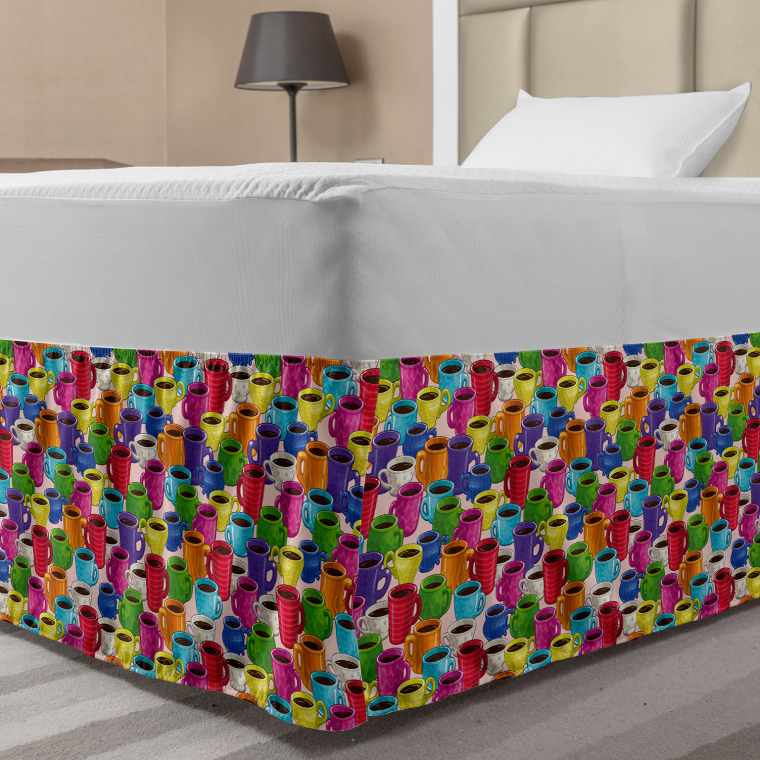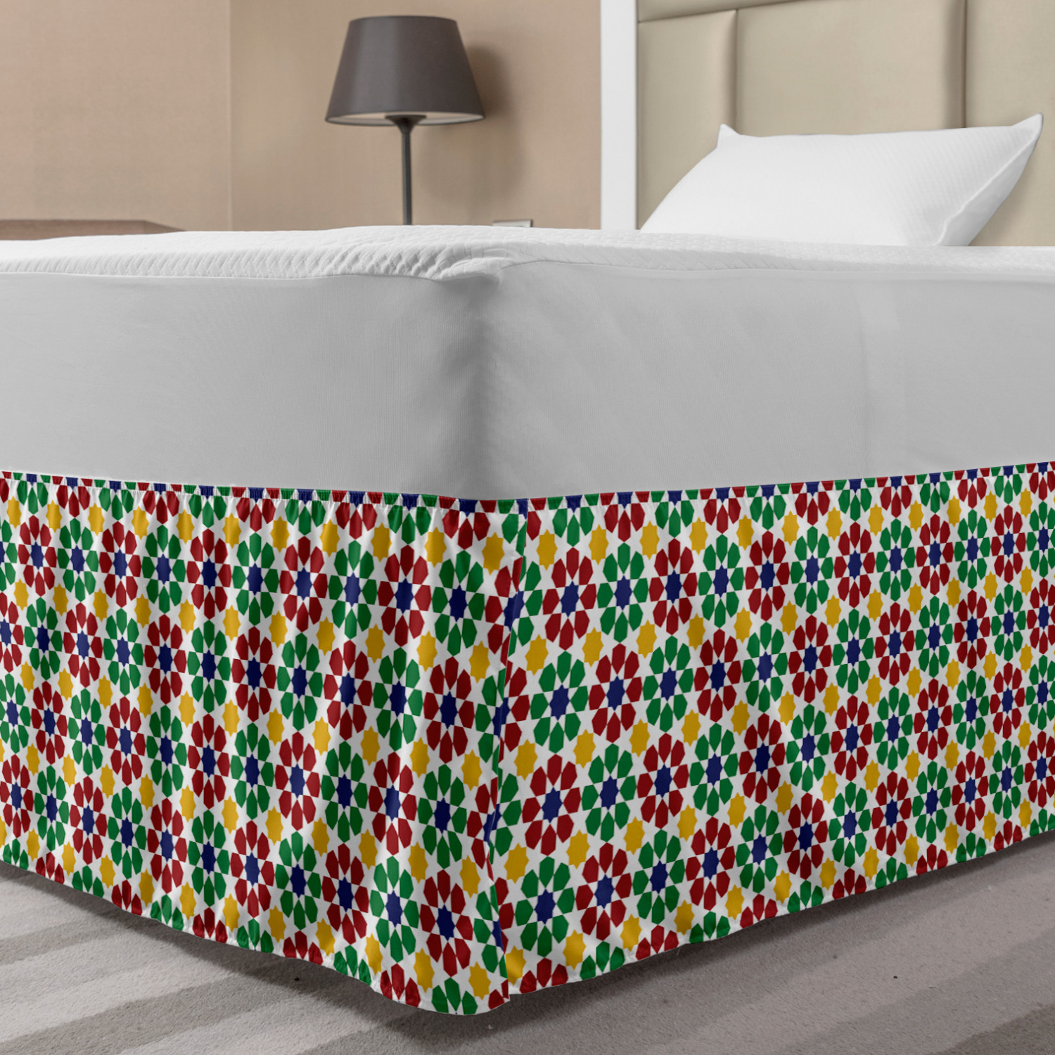 Ambesonne Colorful Theme Bedskirt Elastic Wrap Around Skirt Gathered Design Ambesonne Bedskirt Bedroom Decor Wrap Around Elastic Bed Skirt Gathered Design In 4 sizes. 15 inches drop. All around wrap gathered. MADE IN TURKEY. MADE FROM - High quality 100% brushed soft microfiber fabric. Suitable for most types of beds. FEATURES - Install easily with elastic straps wrap under the mattress. Stays in place. Split corners. MACHINE WASHABLE - On cold cycle. Dryer safe and iron easy. No fading colors. For bedroom decor. PRINTED - With state of the art digital printing technology. Long-lasting bold colors & clear image. Change your bedroom's style with a simple touch of bedskirt! Our bedskirts are very easy to use; you can easily put around this elastic bed skirt and fasten up with straps under your mattress. Bring new energy to your master suite with colors and thousands of different patterns. You can easily match your bedding sets with our varied bed skirts. You can play safe and create vintage decor easily with these bed ruffles that belongs to retro-times. But you can ask for novelty and combine this piece with your modern choices. Our bed skirt is smartly designed with modern split corners. And you don't need to worry if it gets dusty or dirty. Just machine wash in the cold cycle and tumble dry on low. Thanks to new printing techniques the colors will not fade easily. Design a neat look for your bed with this gathered bed skirt. It is designed with a slim/low style ruffle to catch a more contemporary line. You can give these bed skirts as a Christmas, birthday, wedding gift, mother's day or house warming gift. It can be a great present for your mother, father, newly married friends, grandmother, aunt, uncle. The digital images we display have the most accurate color possible, however, due to differences in computer monitors, we cannot be responsible for variations in color between the actual product and your screen. Due to manual measurement, please kindly allow 1-2 cm discrepancy.