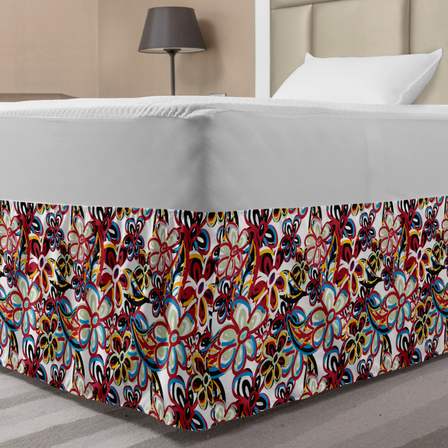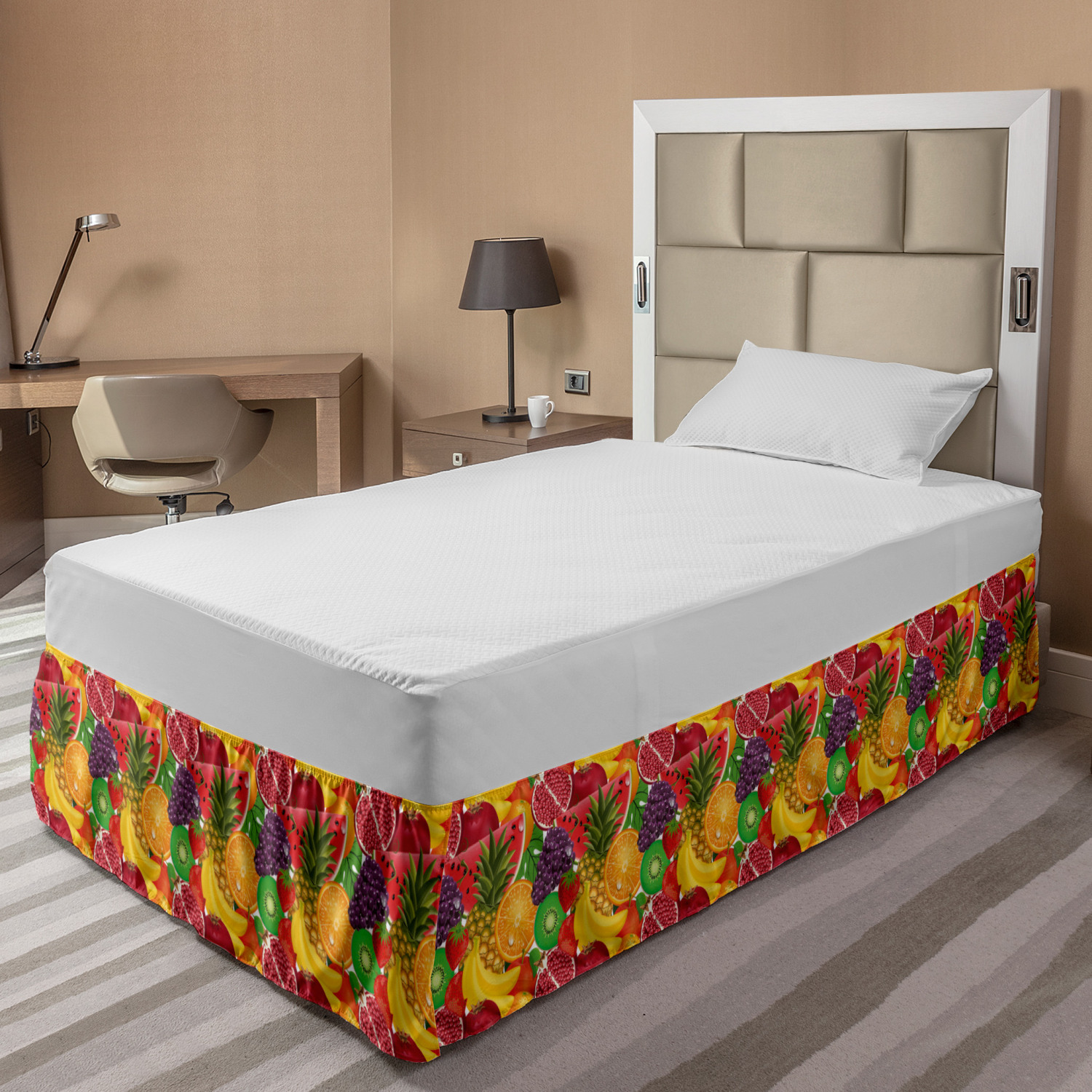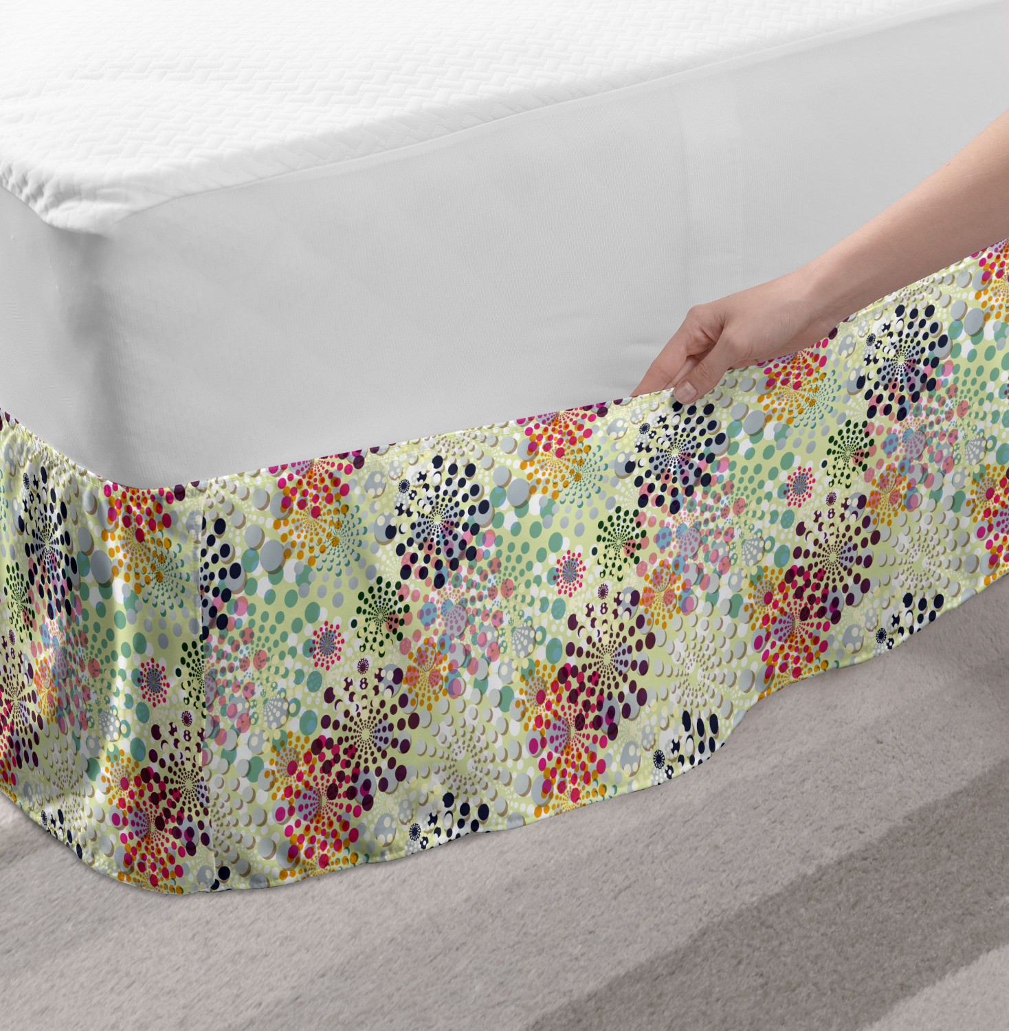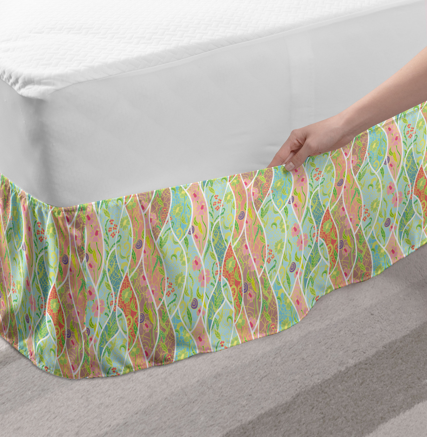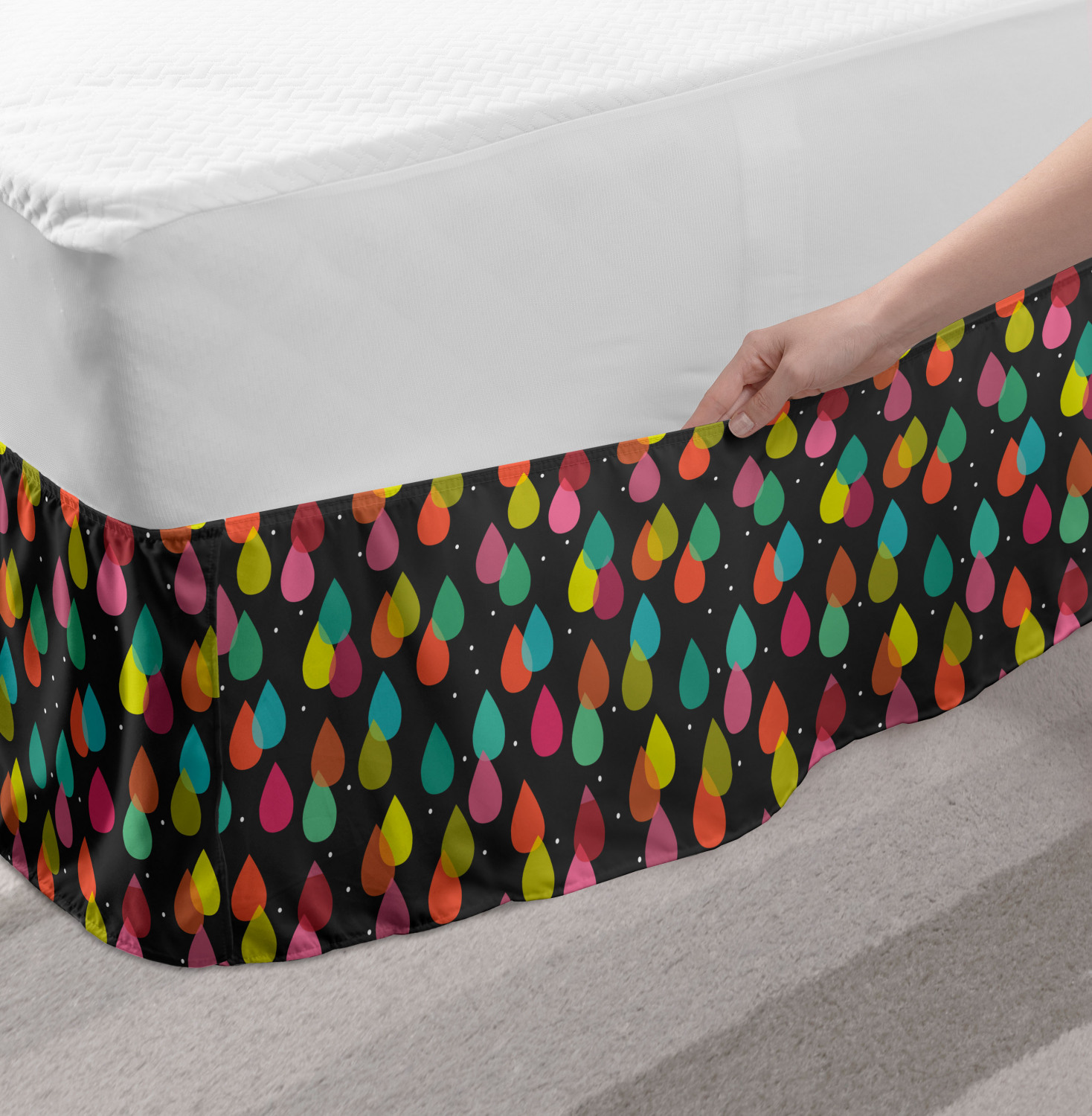 Ambesonne Colorful Theme Bedskirt Elastic Wrap Around Skirt Gathered Design Ambesonne Bedskirt Bedroom Decor Wrap Around Elastic Bed Skirt Gathered Design In 4 sizes. 15 inches drop. All around wrap gathered. MADE IN TURKEY. MADE FROM - High quality 100% brushed soft microfiber fabric. Suitable for most types of beds. FEATURES - Install easily with elastic straps wrap under the mattress. Stays in place. Split corners. MACHINE WASHABLE - On cold cycle. Dryer safe and iron easy. No fading colors. For bedroom decor. PRINTED - With state of the art digital printing technology. Long-lasting bold colors & clear image. Change your bedroom's style with a simple touch of bedskirt! Our bedskirts are very easy to use; you can easily put around this elastic bed skirt and fasten up with straps under your mattress. Bring new energy to your master suite with colors and thousands of different patterns. You can easily match your bedding sets with our varied bed skirts. You can play safe and create vintage decor easily with these bed ruffles that belongs to retro-times. But you can ask for novelty and combine this piece with your modern choices. Our bed skirt is smartly designed with modern split corners. And you don't need to worry if it gets dusty or dirty. Just machine wash in the cold cycle and tumble dry on low. Thanks to new printing techniques the colors will not fade easily. Design a neat look for your bed with this gathered bed skirt. It is designed with a slim/low style ruffle to catch a more contemporary line. You can give these bed skirts as a Christmas, birthday, wedding gift, mother's day or house warming gift. It can be a great present for your mother, father, newly married friends, grandmother, aunt, uncle. The digital images we display have the most accurate color possible, however, due to differences in computer monitors, we cannot be responsible for variations in color between the actual product and your screen. Due to manual measurement, please kindly allow 1-2 cm discrepancy.