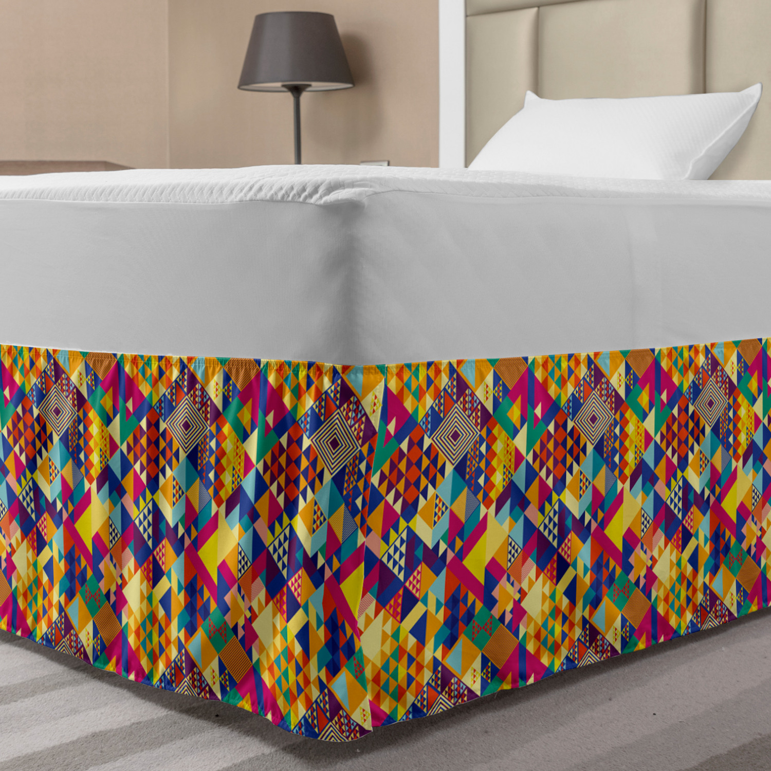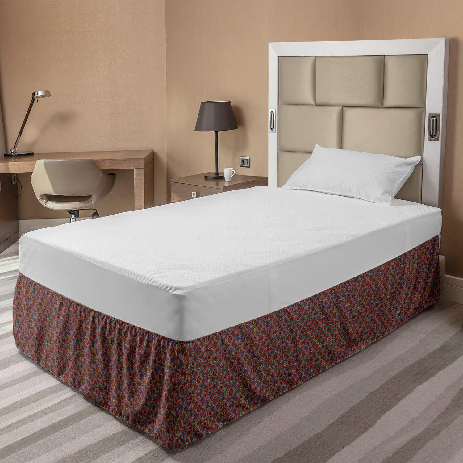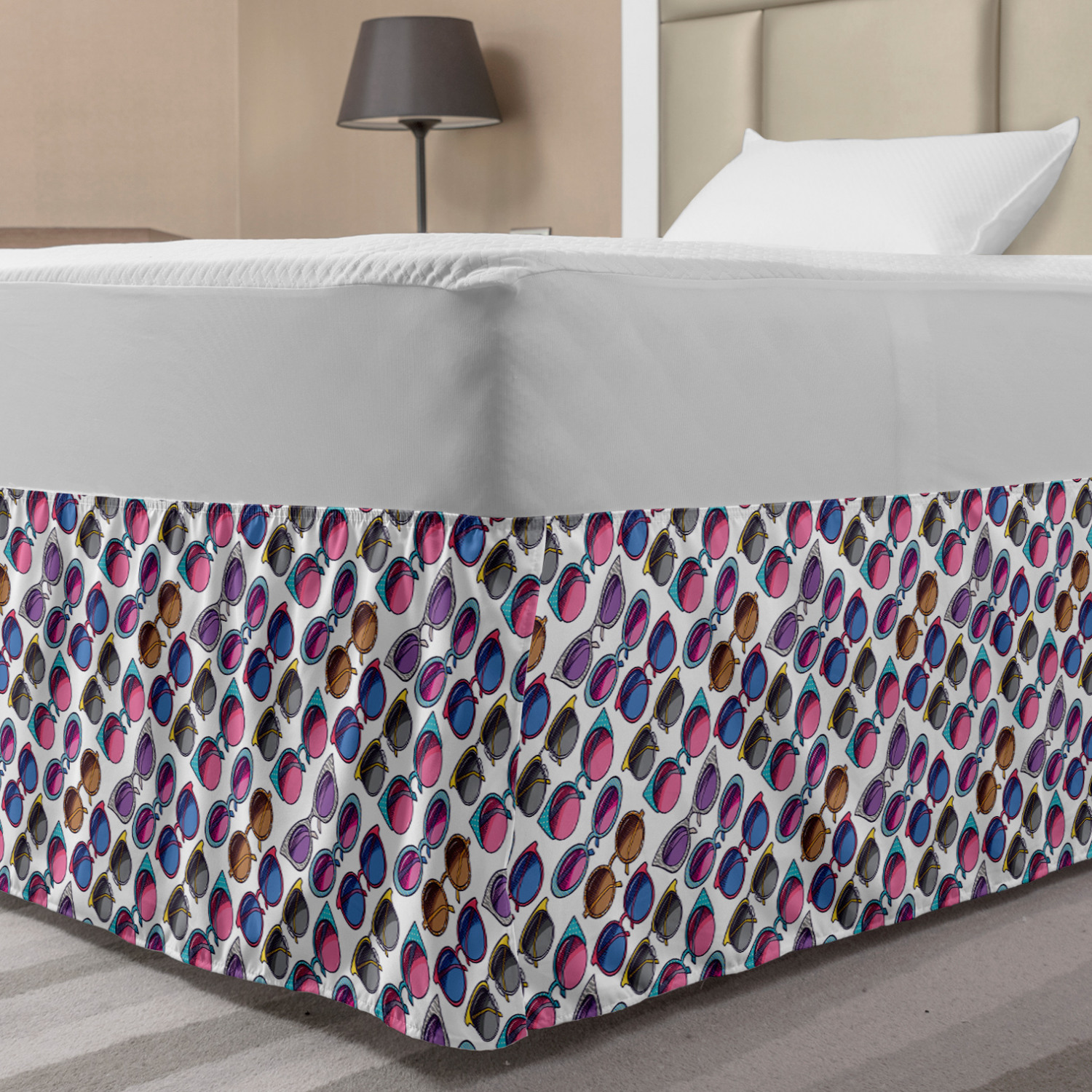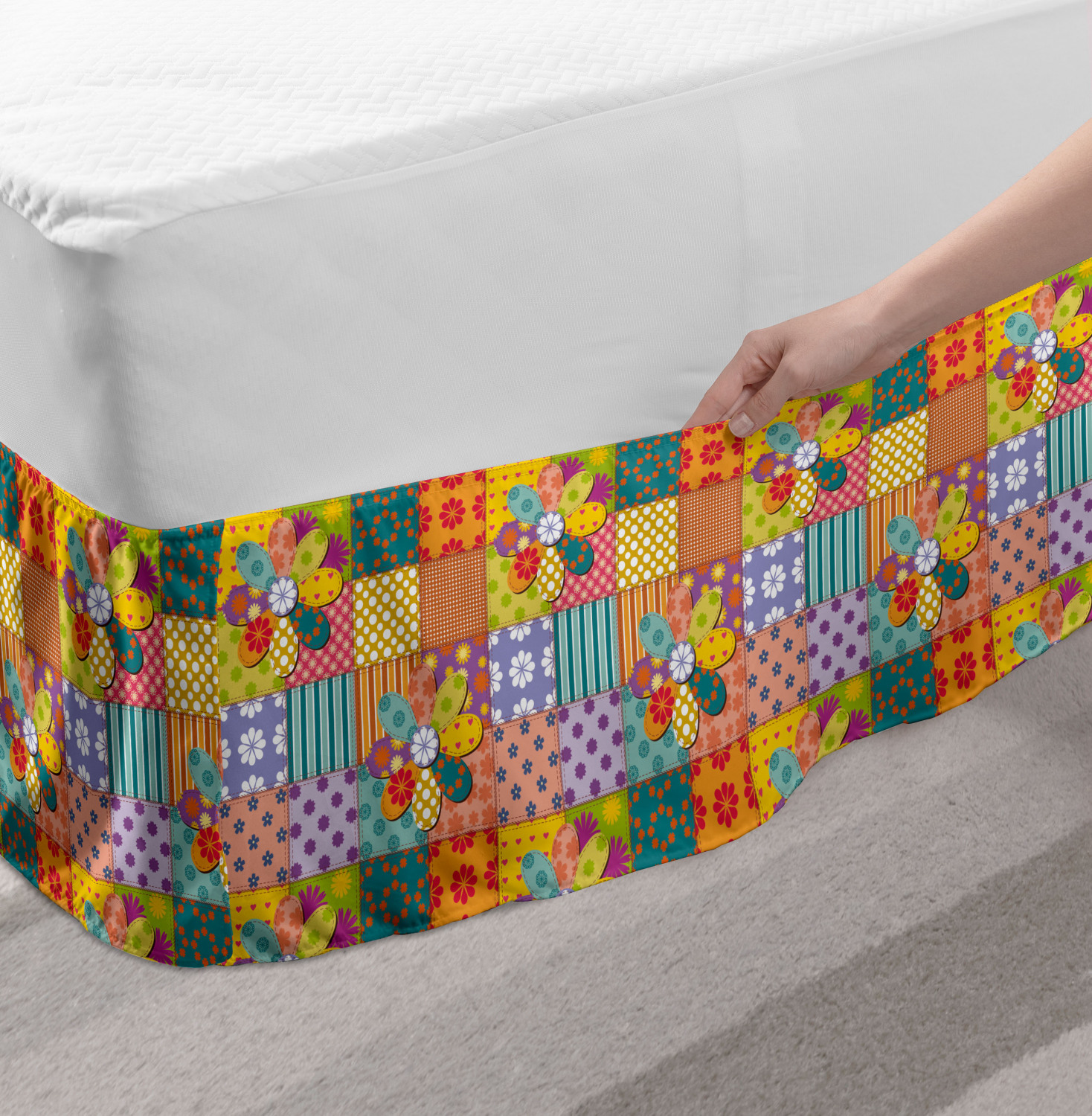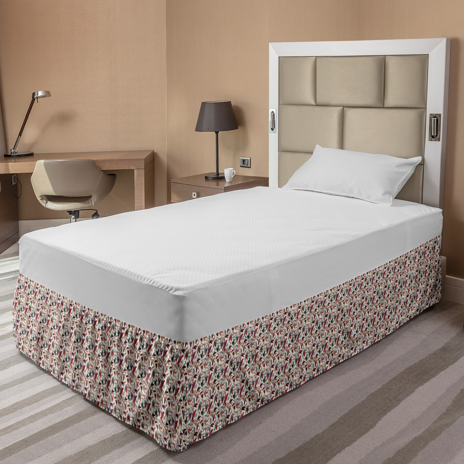 Ambesonne Colorful Theme Bedskirt Elastic Wrap Around Skirt Gathered Design Ambesonne Bedskirt Bedroom Decor Wrap Around Elastic Bed Skirt Gathered Design In 4 sizes. 15 inches drop. All around wrap gathered. MADE IN TURKEY. MADE FROM - High quality 100% brushed soft microfiber fabric. Suitable for most types of beds. FEATURES - Install easily with elastic straps wrap under the mattress. Stays in place. Split corners. MACHINE WASHABLE - On cold cycle. Dryer safe and iron easy. No fading colors. For bedroom decor. PRINTED - With state of the art digital printing technology. Long-lasting bold colors & clear image. Change your bedroom's style with a simple touch of bedskirt! Our bedskirts are very easy to use; you can easily put around this elastic bed skirt and fasten up with straps under your mattress. Bring new energy to your master suite with colors and thousands of different patterns. You can easily match your bedding sets with our varied bed skirts. You can play safe and create vintage decor easily with these bed ruffles that belongs to retro-times. But you can ask for novelty and combine this piece with your modern choices. Our bed skirt is smartly designed with modern split corners. And you don't need to worry if it gets dusty or dirty. Just machine wash in the cold cycle and tumble dry on low. Thanks to new printing techniques the colors will not fade easily. Design a neat look for your bed with this gathered bed skirt. It is designed with a slim/low style ruffle to catch a more contemporary line. You can give these bed skirts as a Christmas, birthday, wedding gift, mother's day or house warming gift. It can be a great present for your mother, father, newly married friends, grandmother, aunt, uncle. The digital images we display have the most accurate color possible, however, due to differences in computer monitors, we cannot be responsible for variations in color between the actual product and your screen. Due to manual measurement, please kindly allow 1-2 cm discrepancy.