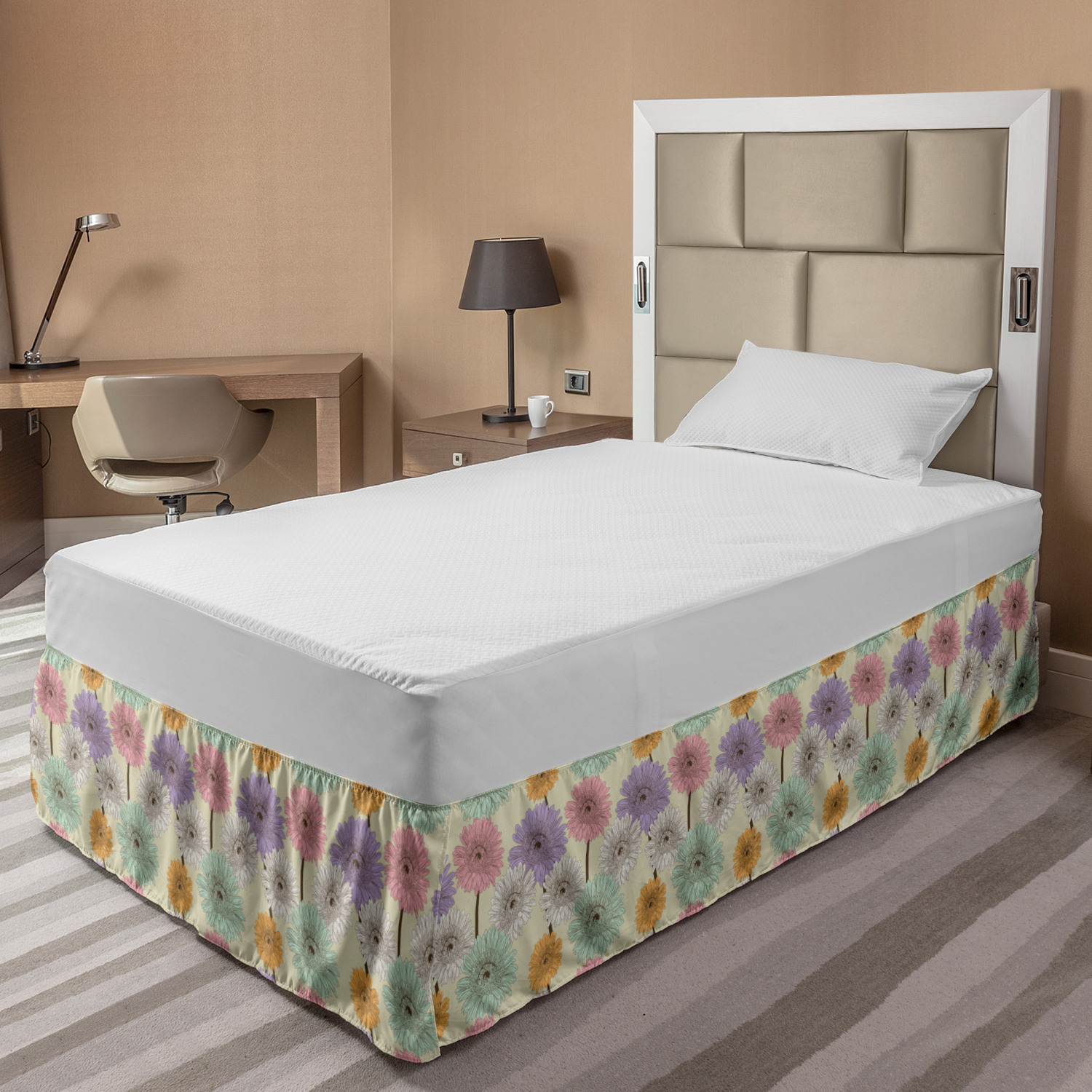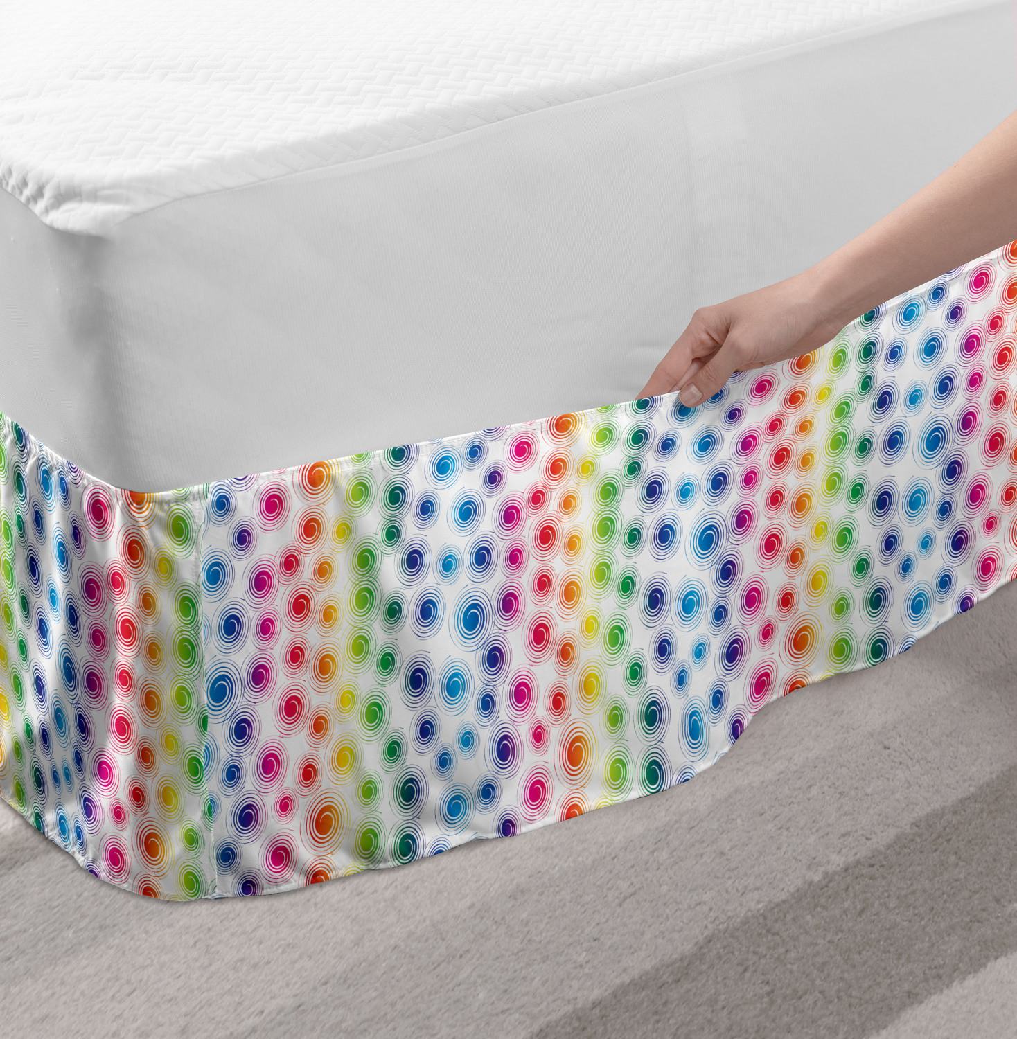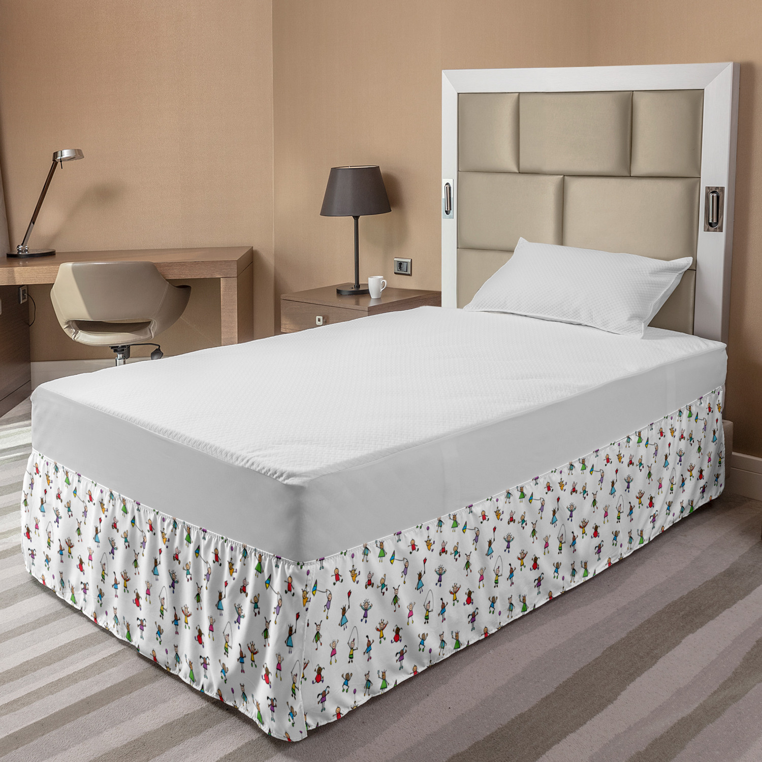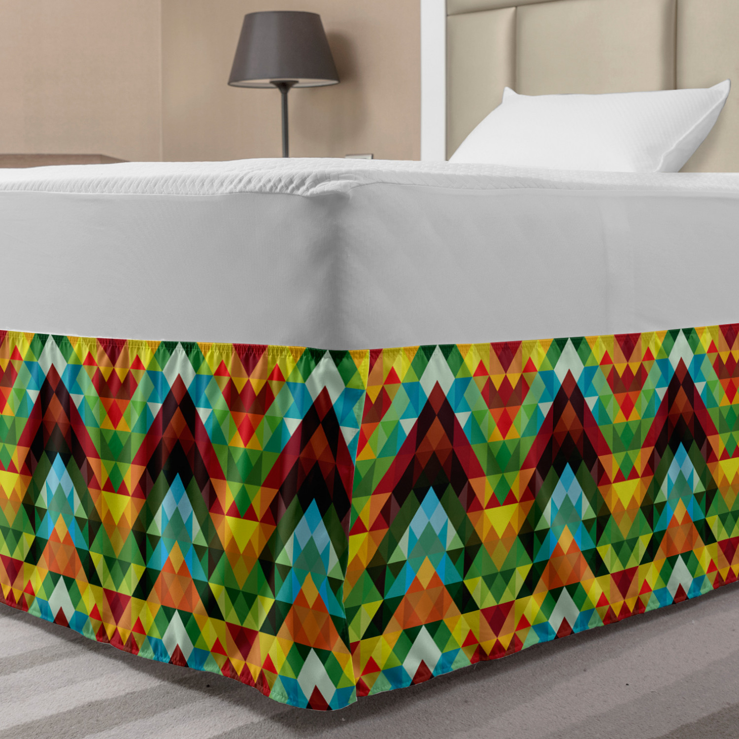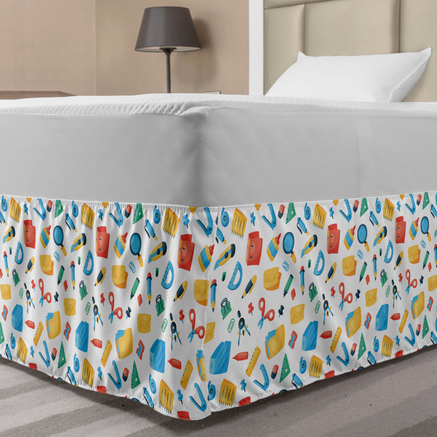 Ambesonne Colorful Theme Bedskirt Elastic Wrap Around Skirt Gathered Design Ambesonne Bedskirt Bedroom Decor Wrap Around Elastic Bed Skirt Gathered Design In 4 sizes. 15 inches drop. All around wrap gathered. MADE IN TURKEY. MADE FROM - High quality 100% brushed soft microfiber fabric. Suitable for most types of beds. FEATURES - Install easily with elastic straps wrap under the mattress. Stays in place. Split corners. MACHINE WASHABLE - On cold cycle. Dryer safe and iron easy. No fading colors. For bedroom decor. PRINTED - With state of the art digital printing technology. Long-lasting bold colors & clear image. Change your bedroom's style with a simple touch of bedskirt! Our bedskirts are very easy to use; you can easily put around this elastic bed skirt and fasten up with straps under your mattress. Bring new energy to your master suite with colors and thousands of different patterns. You can easily match your bedding sets with our varied bed skirts. You can play safe and create vintage decor easily with these bed ruffles that belongs to retro-times. But you can ask for novelty and combine this piece with your modern choices. Our bed skirt is smartly designed with modern split corners. And you don't need to worry if it gets dusty or dirty. Just machine wash in the cold cycle and tumble dry on low. Thanks to new printing techniques the colors will not fade easily. Design a neat look for your bed with this gathered bed skirt. It is designed with a slim/low style ruffle to catch a more contemporary line. You can give these bed skirts as a Christmas, birthday, wedding gift, mother's day or house warming gift. It can be a great present for your mother, father, newly married friends, grandmother, aunt, uncle. The digital images we display have the most accurate color possible, however, due to differences in computer monitors, we cannot be responsible for variations in color between the actual product and your screen. Due to manual measurement, please kindly allow 1-2 cm discrepancy.