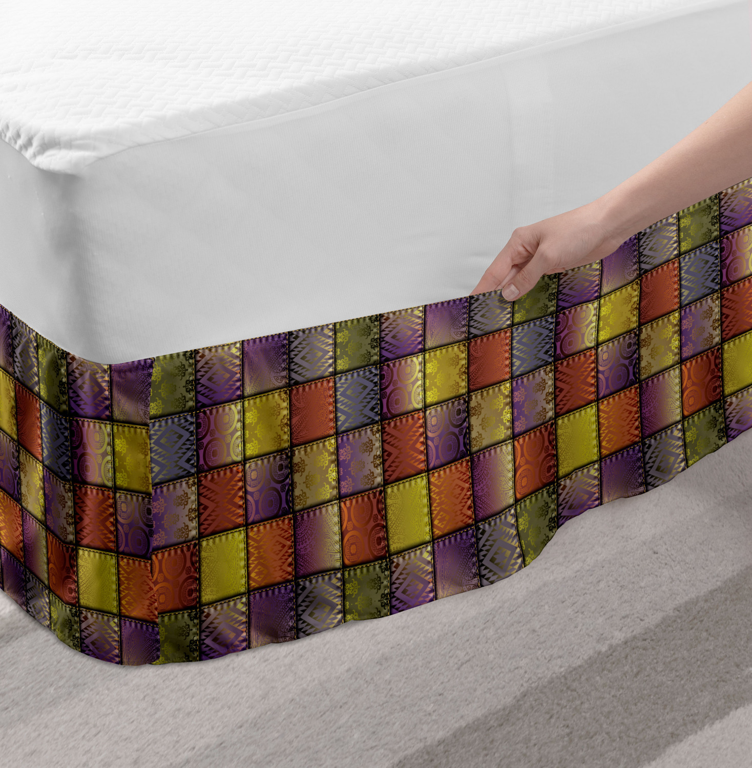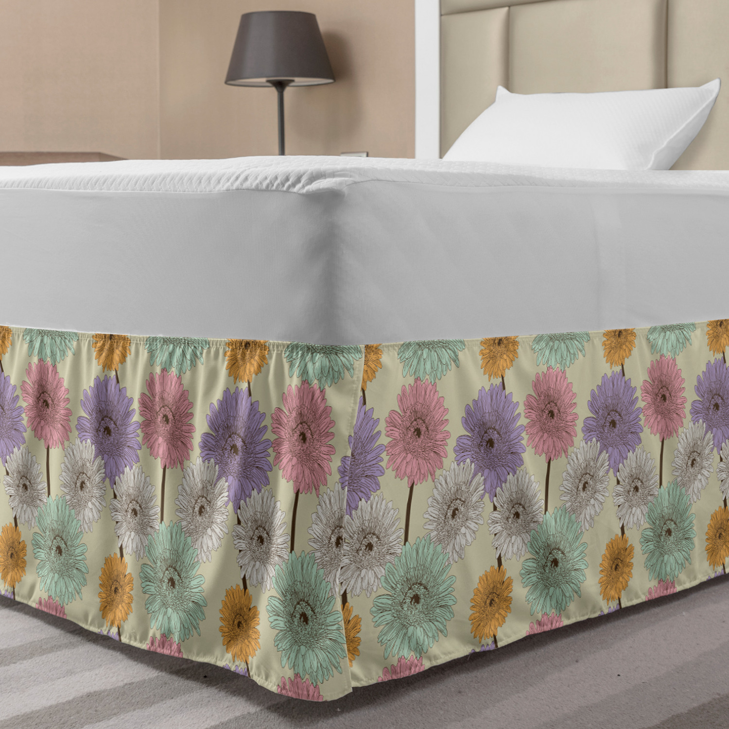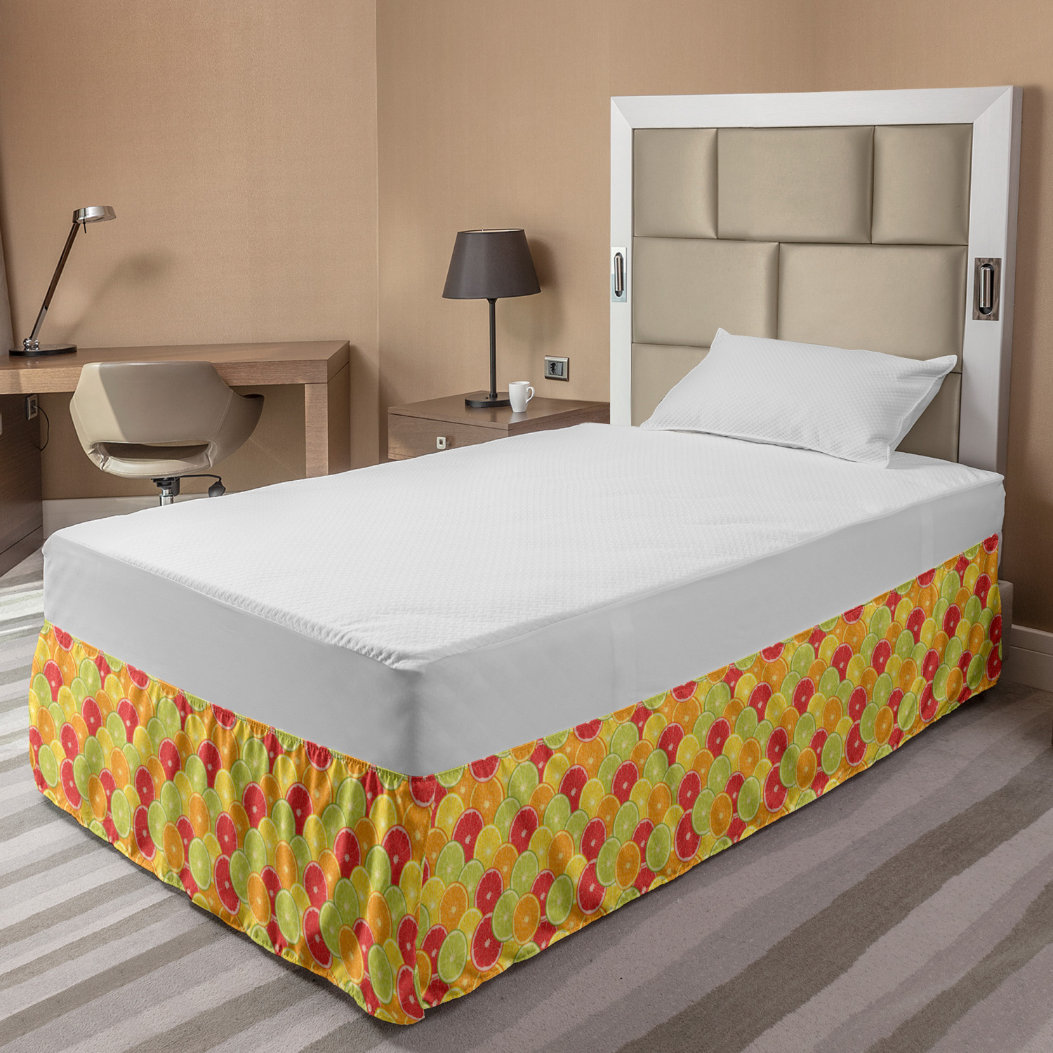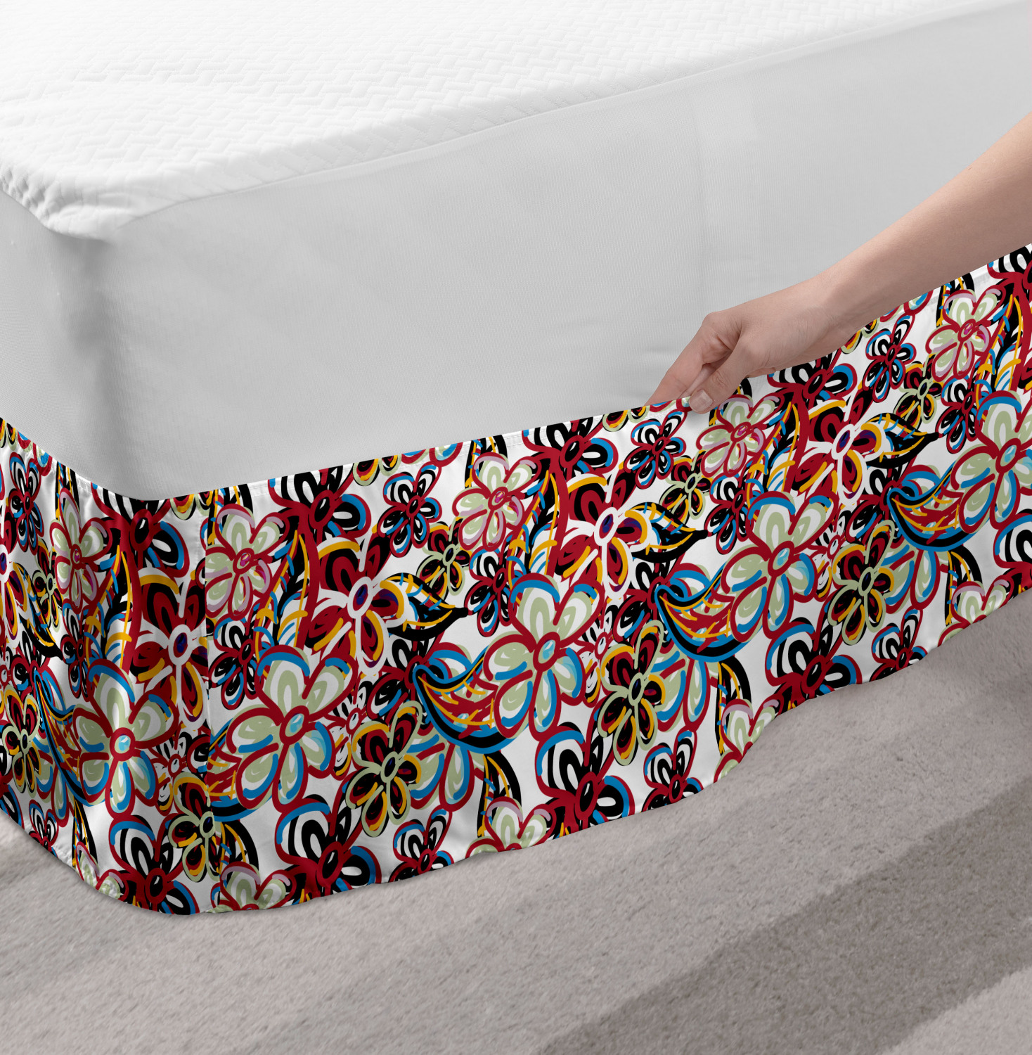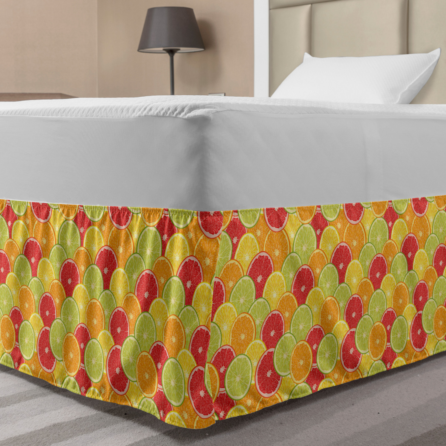 Ambesonne Colorful Theme Bedskirt Elastic Wrap Around Skirt Gathered Design Ambesonne Bedskirt Bedroom Decor Wrap Around Elastic Bed Skirt Gathered Design In 4 sizes. 15 inches drop. All around wrap gathered. MADE IN TURKEY. MADE FROM - High quality 100% brushed soft microfiber fabric. Suitable for most types of beds. FEATURES - Install easily with elastic straps wrap under the mattress. Stays in place. Split corners. MACHINE WASHABLE - On cold cycle. Dryer safe and iron easy. No fading colors. For bedroom decor. PRINTED - With state of the art digital printing technology. Long-lasting bold colors & clear image. Change your bedroom's style with a simple touch of bedskirt! Our bedskirts are very easy to use; you can easily put around this elastic bed skirt and fasten up with straps under your mattress. Bring new energy to your master suite with colors and thousands of different patterns. You can easily match your bedding sets with our varied bed skirts. You can play safe and create vintage decor easily with these bed ruffles that belongs to retro-times. But you can ask for novelty and combine this piece with your modern choices. Our bed skirt is smartly designed with modern split corners. And you don't need to worry if it gets dusty or dirty. Just machine wash in the cold cycle and tumble dry on low. Thanks to new printing techniques the colors will not fade easily. Design a neat look for your bed with this gathered bed skirt. It is designed with a slim/low style ruffle to catch a more contemporary line. You can give these bed skirts as a Christmas, birthday, wedding gift, mother's day or house warming gift. It can be a great present for your mother, father, newly married friends, grandmother, aunt, uncle. The digital images we display have the most accurate color possible, however, due to differences in computer monitors, we cannot be responsible for variations in color between the actual product and your screen. Due to manual measurement, please kindly allow 1-2 cm discrepancy.