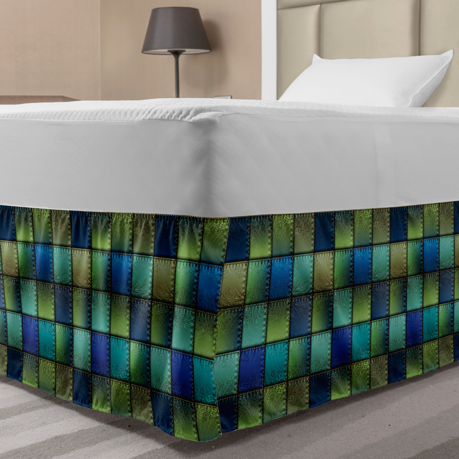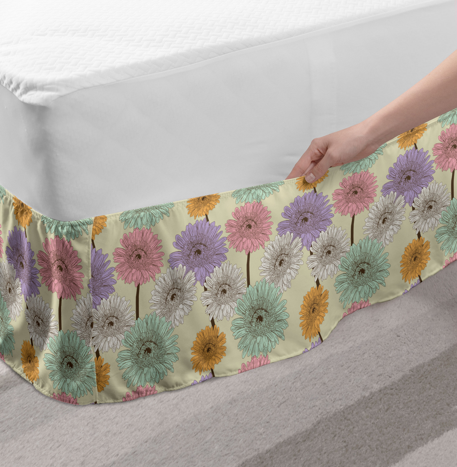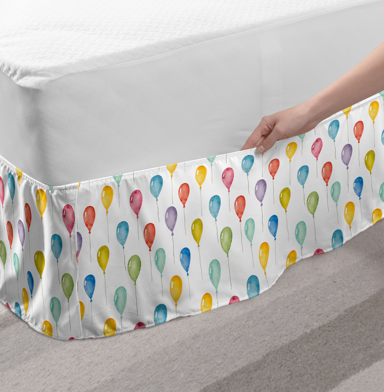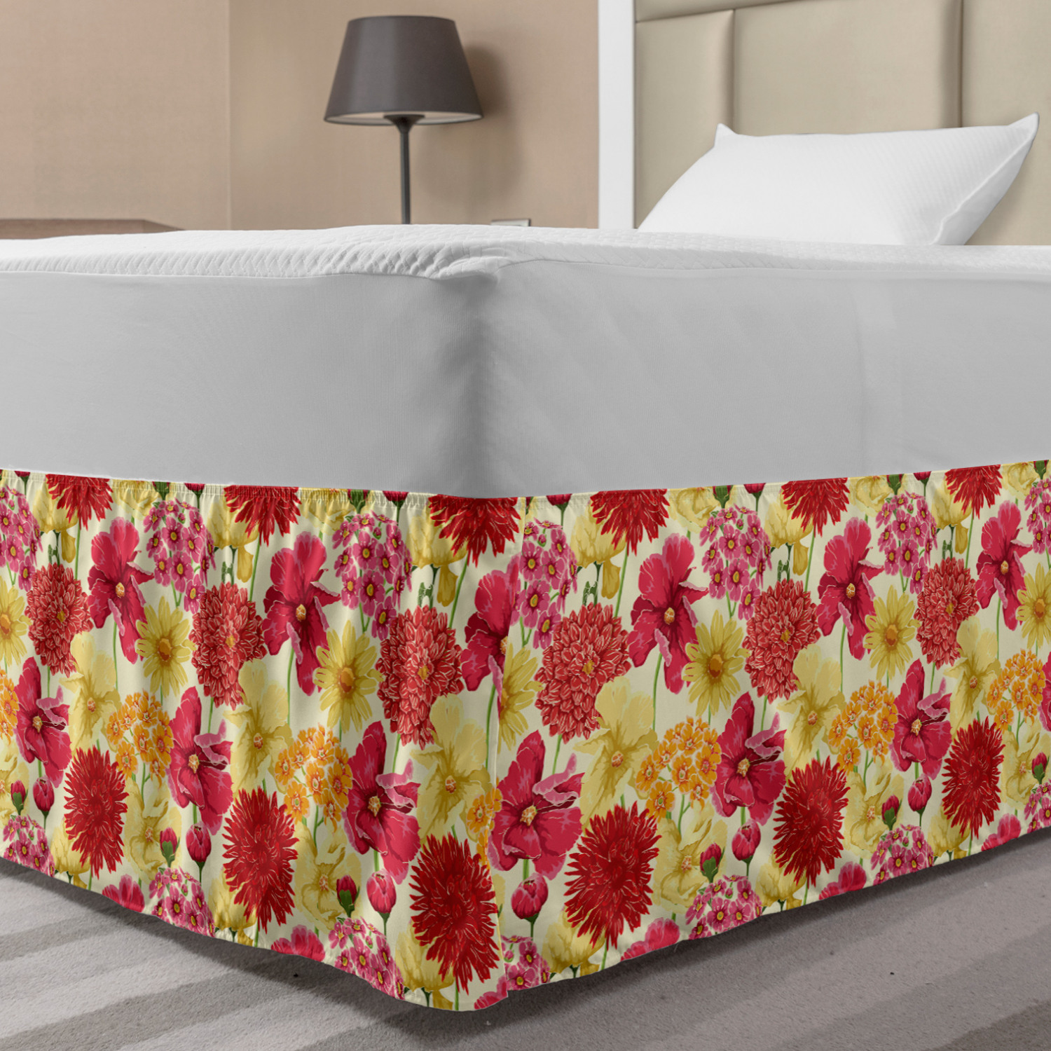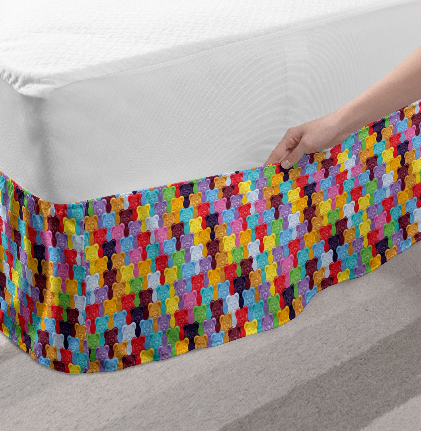 Ambesonne Colorful Theme Bedskirt Elastic Wrap Around Skirt Gathered Design Ambesonne Bedskirt Bedroom Decor Wrap Around Elastic Bed Skirt Gathered Design In 4 sizes. 15 inches drop. All around wrap gathered. MADE IN TURKEY. MADE FROM - High quality 100% brushed soft microfiber fabric. Suitable for most types of beds. FEATURES - Install easily with elastic straps wrap under the mattress. Stays in place. Split corners. MACHINE WASHABLE - On cold cycle. Dryer safe and iron easy. No fading colors. For bedroom decor. PRINTED - With state of the art digital printing technology. Long-lasting bold colors & clear image. Change your bedroom's style with a simple touch of bedskirt! Our bedskirts are very easy to use; you can easily put around this elastic bed skirt and fasten up with straps under your mattress. Bring new energy to your master suite with colors and thousands of different patterns. You can easily match your bedding sets with our varied bed skirts. You can play safe and create vintage decor easily with these bed ruffles that belongs to retro-times. But you can ask for novelty and combine this piece with your modern choices. Our bed skirt is smartly designed with modern split corners. And you don't need to worry if it gets dusty or dirty. Just machine wash in the cold cycle and tumble dry on low. Thanks to new printing techniques the colors will not fade easily. Design a neat look for your bed with this gathered bed skirt. It is designed with a slim/low style ruffle to catch a more contemporary line. You can give these bed skirts as a Christmas, birthday, wedding gift, mother's day or house warming gift. It can be a great present for your mother, father, newly married friends, grandmother, aunt, uncle. The digital images we display have the most accurate color possible, however, due to differences in computer monitors, we cannot be responsible for variations in color between the actual product and your screen. Due to manual measurement, please kindly allow 1-2 cm discrepancy.