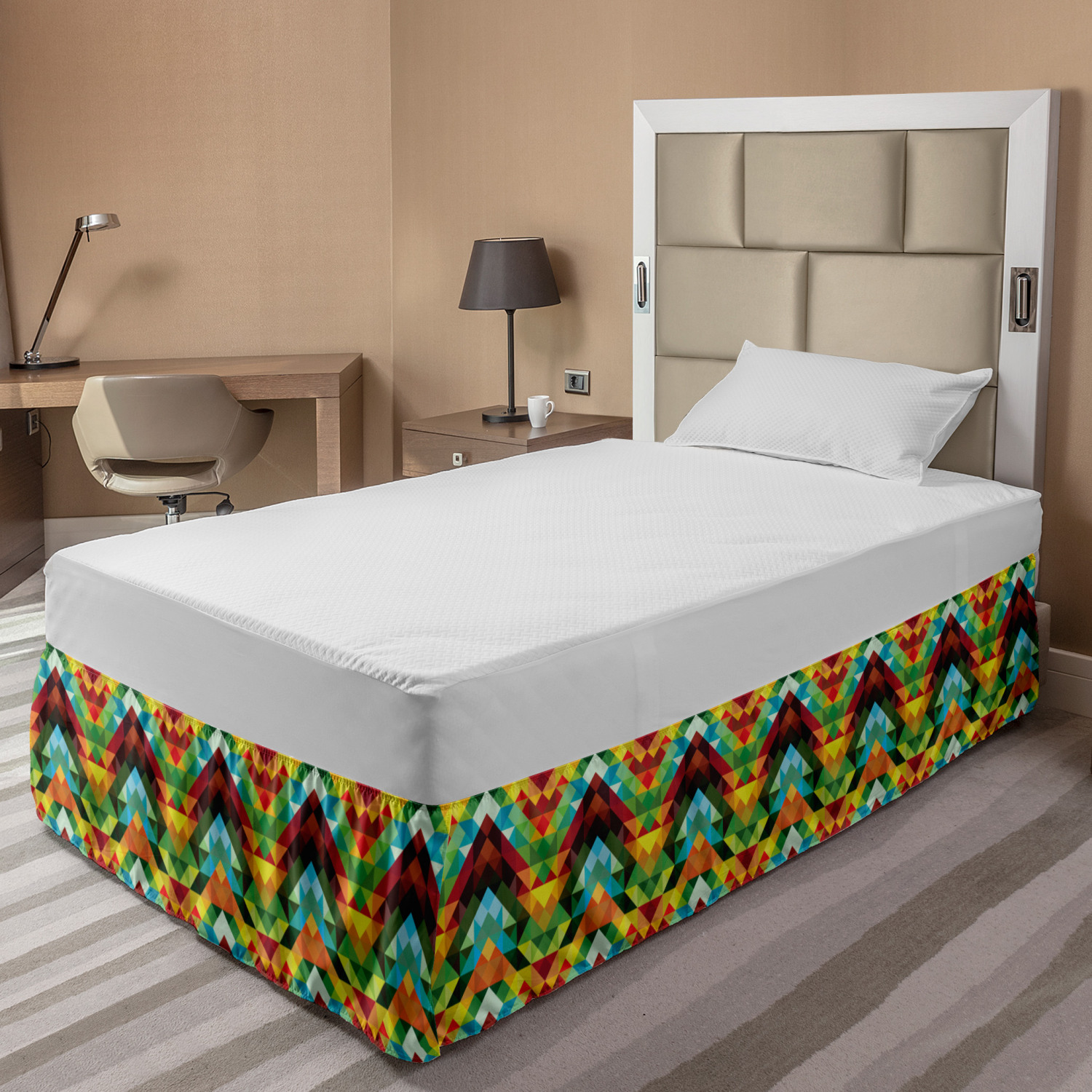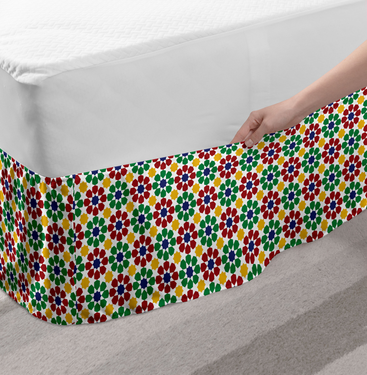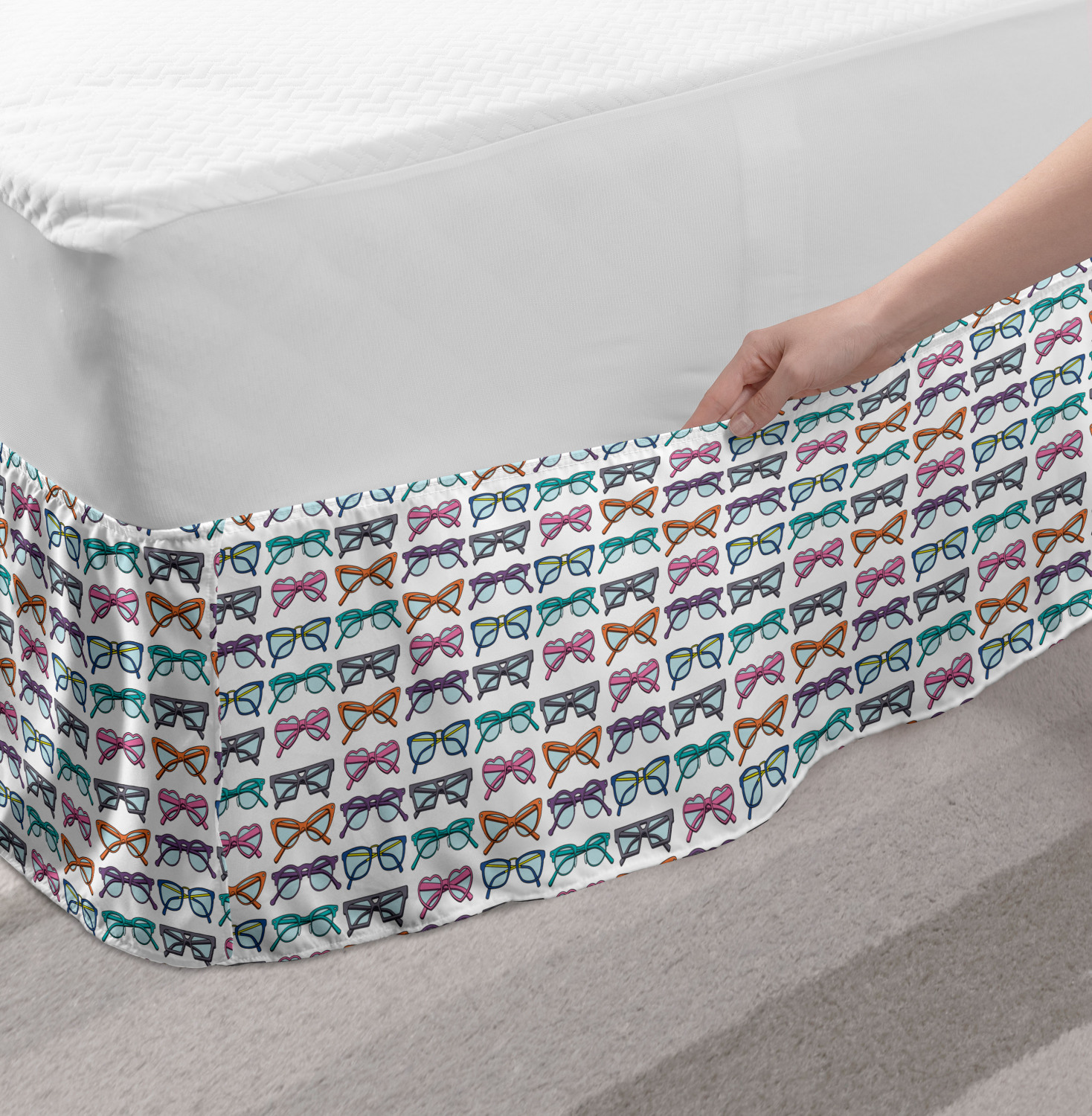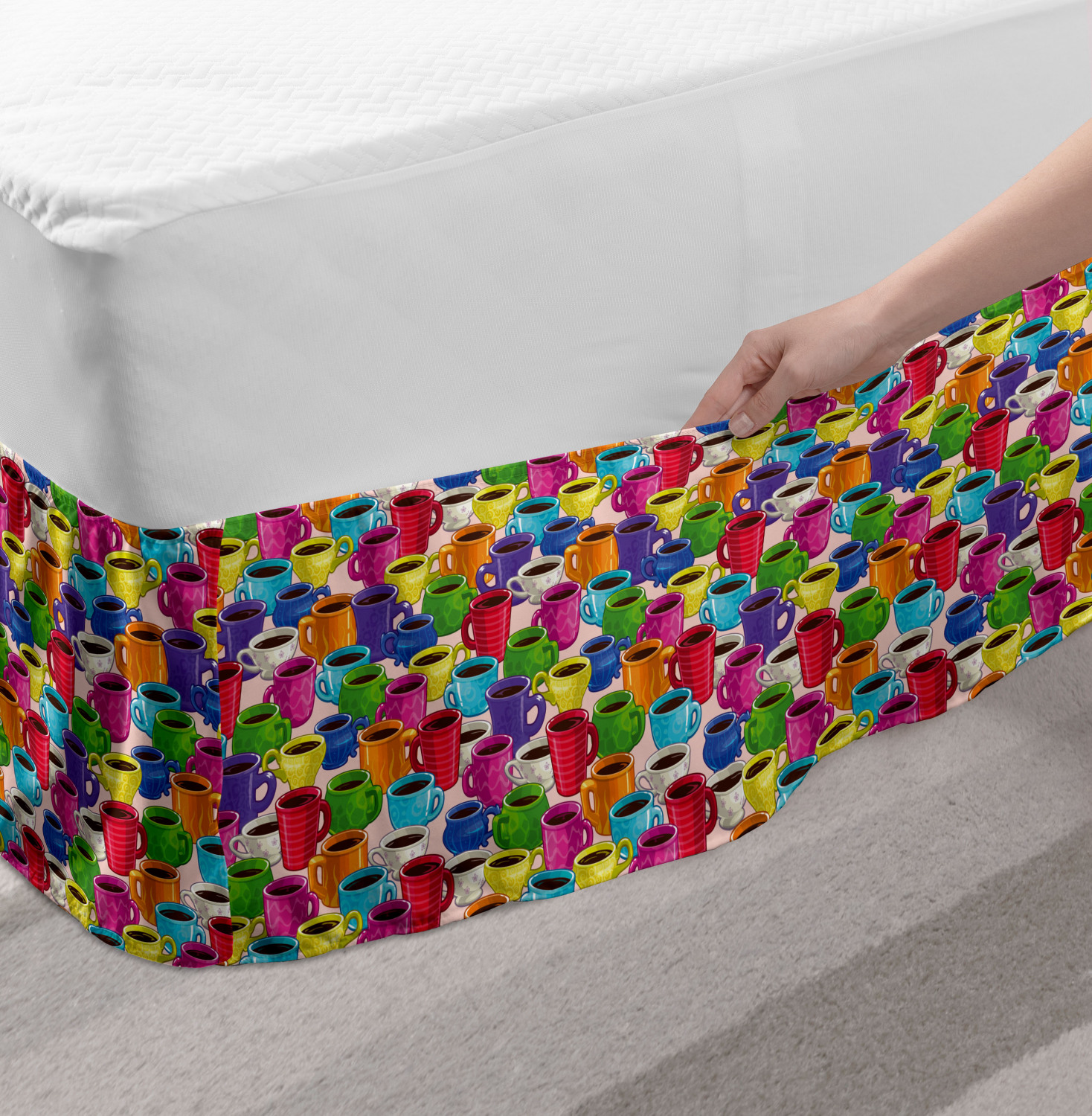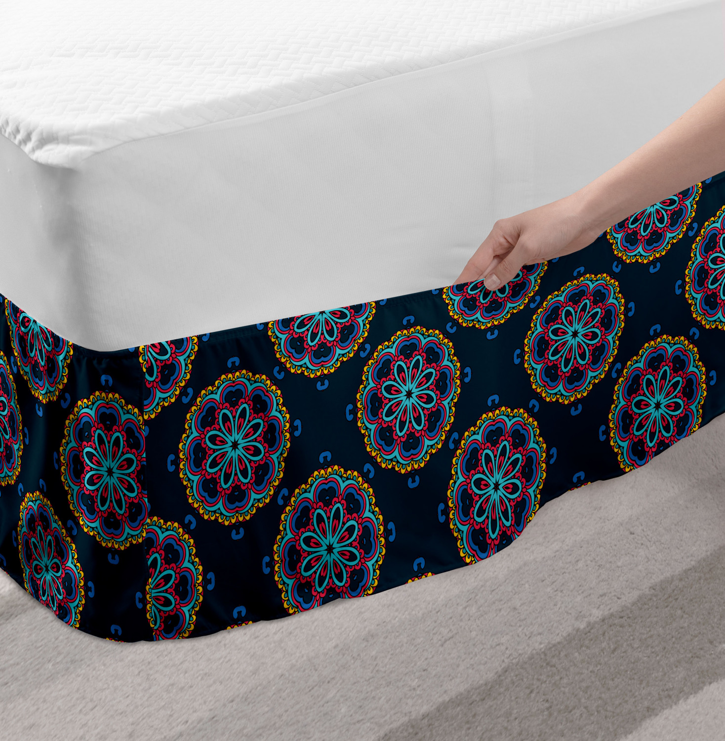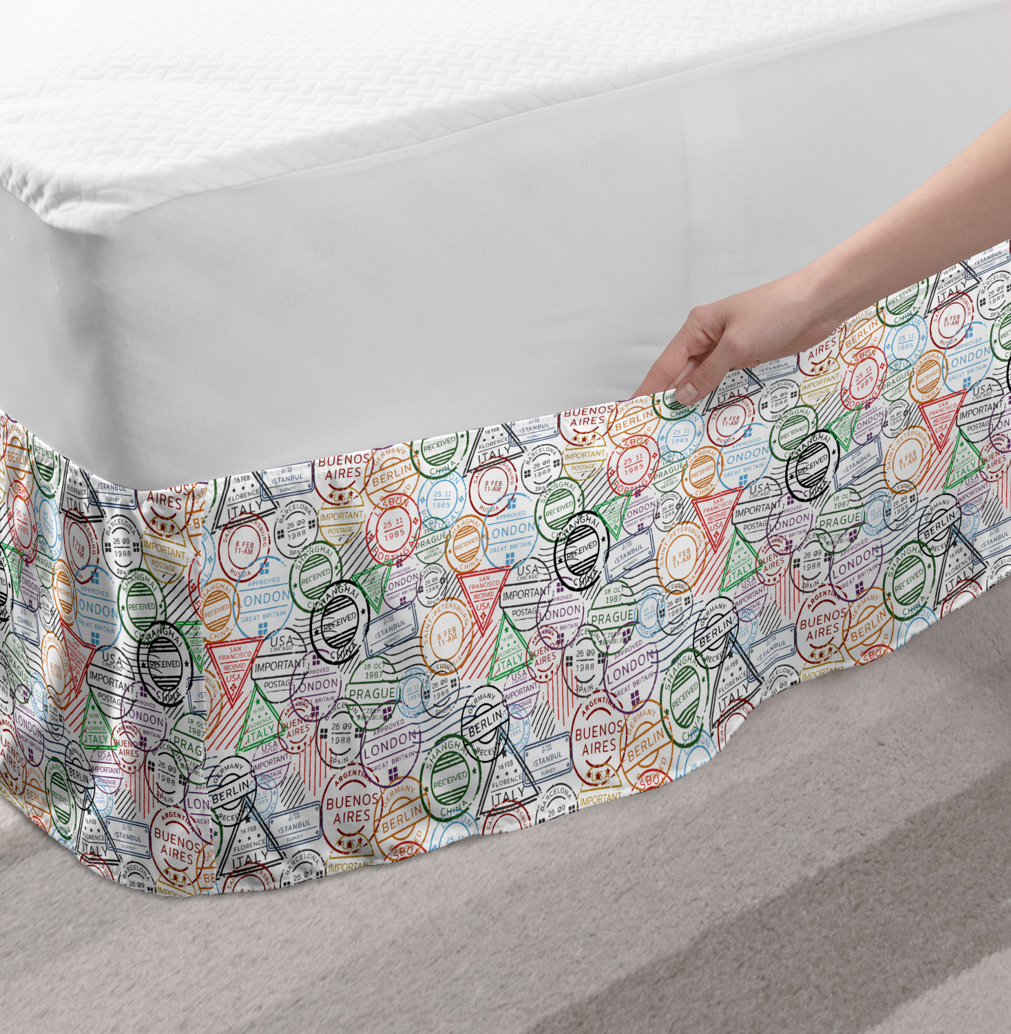 Ambesonne Colorful Theme Bedskirt Elastic Wrap Around Skirt Gathered Design Ambesonne Bedskirt Bedroom Decor Wrap Around Elastic Bed Skirt Gathered Design In 4 sizes. 15 inches drop. All around wrap gathered. MADE IN TURKEY. MADE FROM - High quality 100% brushed soft microfiber fabric. Suitable for most types of beds. FEATURES - Install easily with elastic straps wrap under the mattress. Stays in place. Split corners. MACHINE WASHABLE - On cold cycle. Dryer safe and iron easy. No fading colors. For bedroom decor. PRINTED - With state of the art digital printing technology. Long-lasting bold colors & clear image. Change your bedroom's style with a simple touch of bedskirt! Our bedskirts are very easy to use; you can easily put around this elastic bed skirt and fasten up with straps under your mattress. Bring new energy to your master suite with colors and thousands of different patterns. You can easily match your bedding sets with our varied bed skirts. You can play safe and create vintage decor easily with these bed ruffles that belongs to retro-times. But you can ask for novelty and combine this piece with your modern choices. Our bed skirt is smartly designed with modern split corners. And you don't need to worry if it gets dusty or dirty. Just machine wash in the cold cycle and tumble dry on low. Thanks to new printing techniques the colors will not fade easily. Design a neat look for your bed with this gathered bed skirt. It is designed with a slim/low style ruffle to catch a more contemporary line. You can give these bed skirts as a Christmas, birthday, wedding gift, mother's day or house warming gift. It can be a great present for your mother, father, newly married friends, grandmother, aunt, uncle. The digital images we display have the most accurate color possible, however, due to differences in computer monitors, we cannot be responsible for variations in color between the actual product and your screen. Due to manual measurement, please kindly allow 1-2 cm discrepancy.