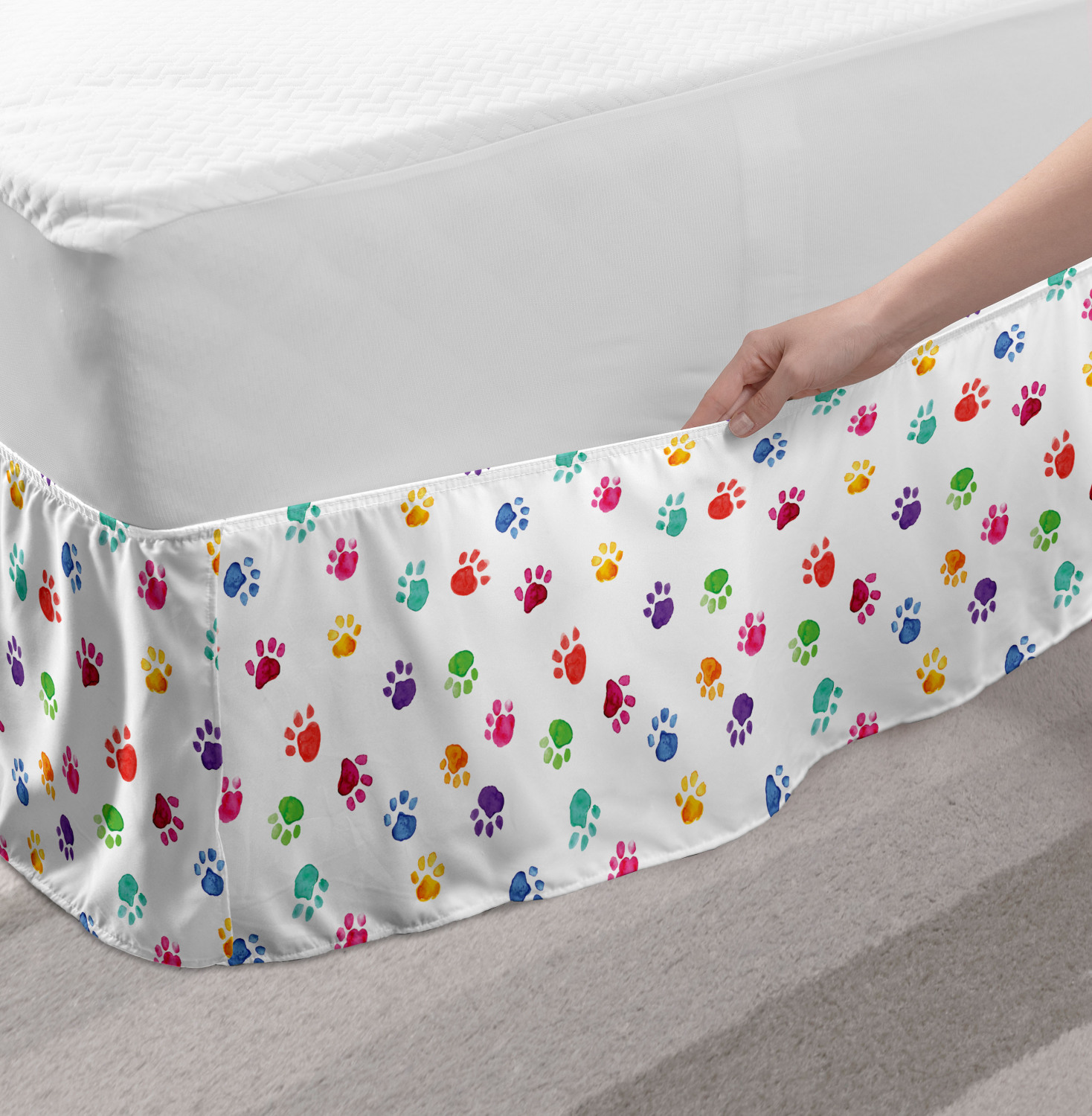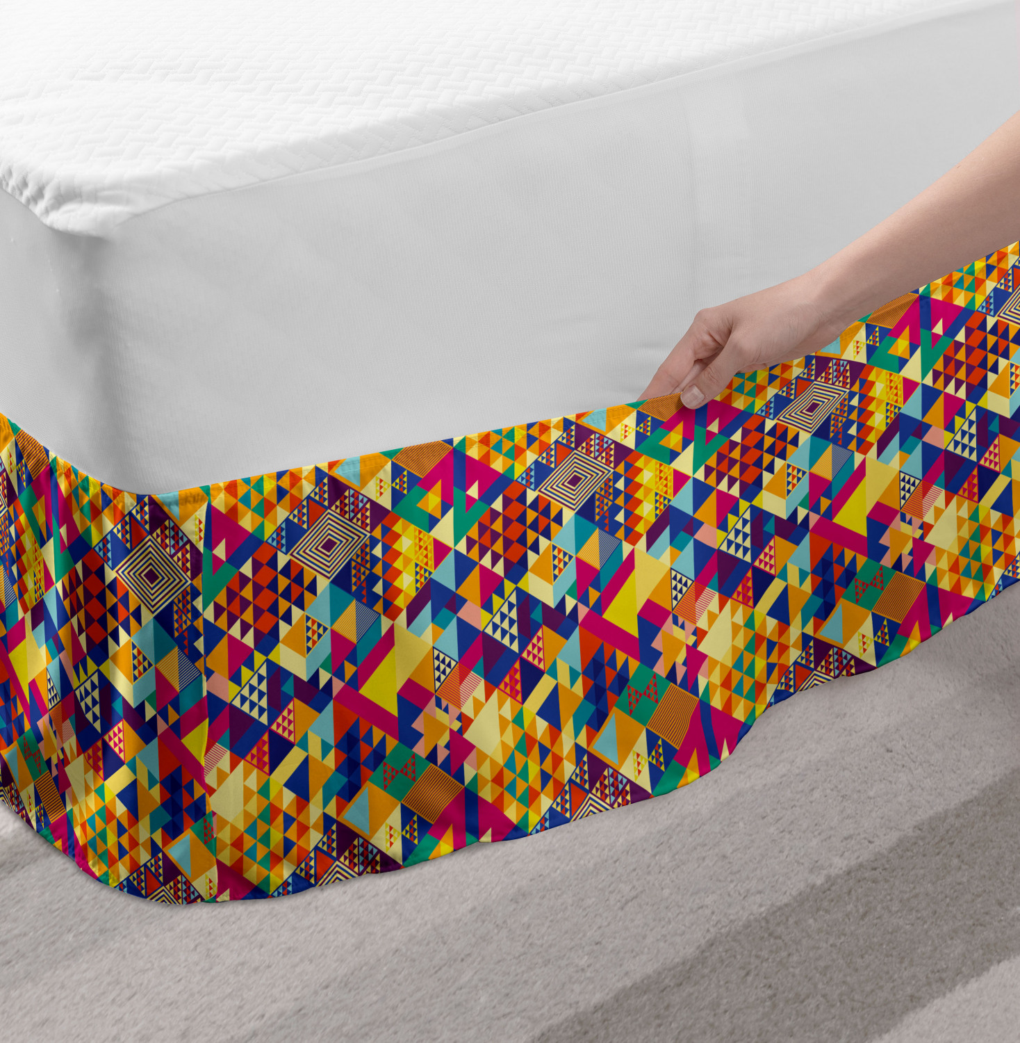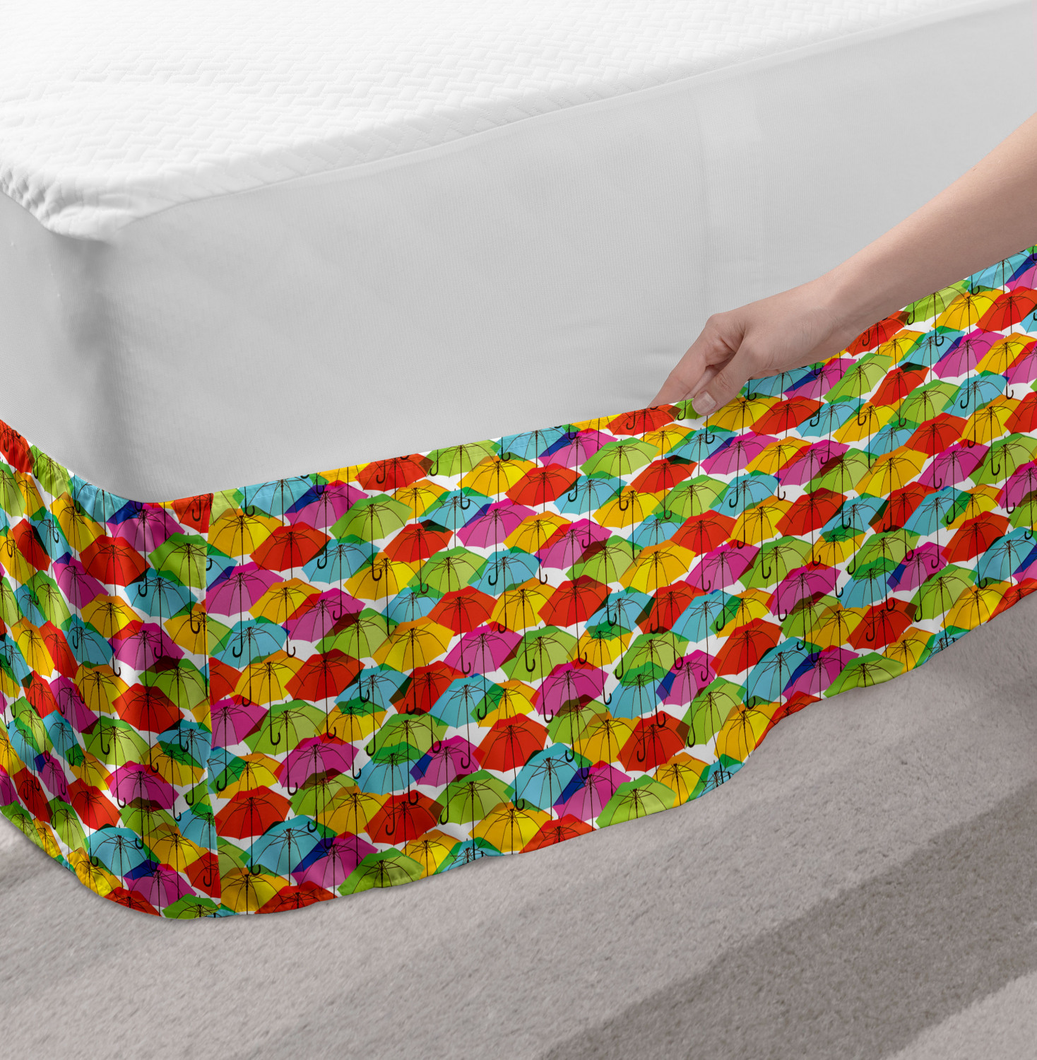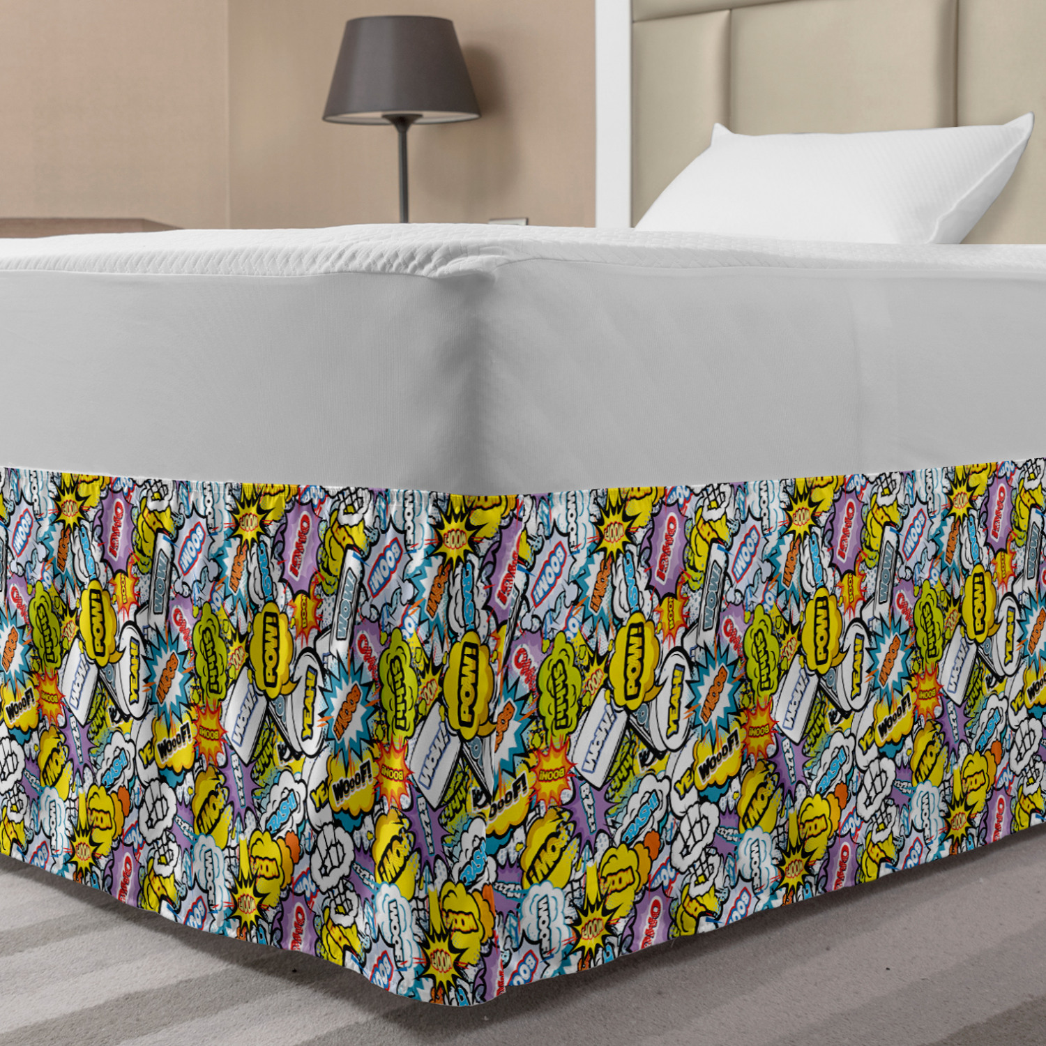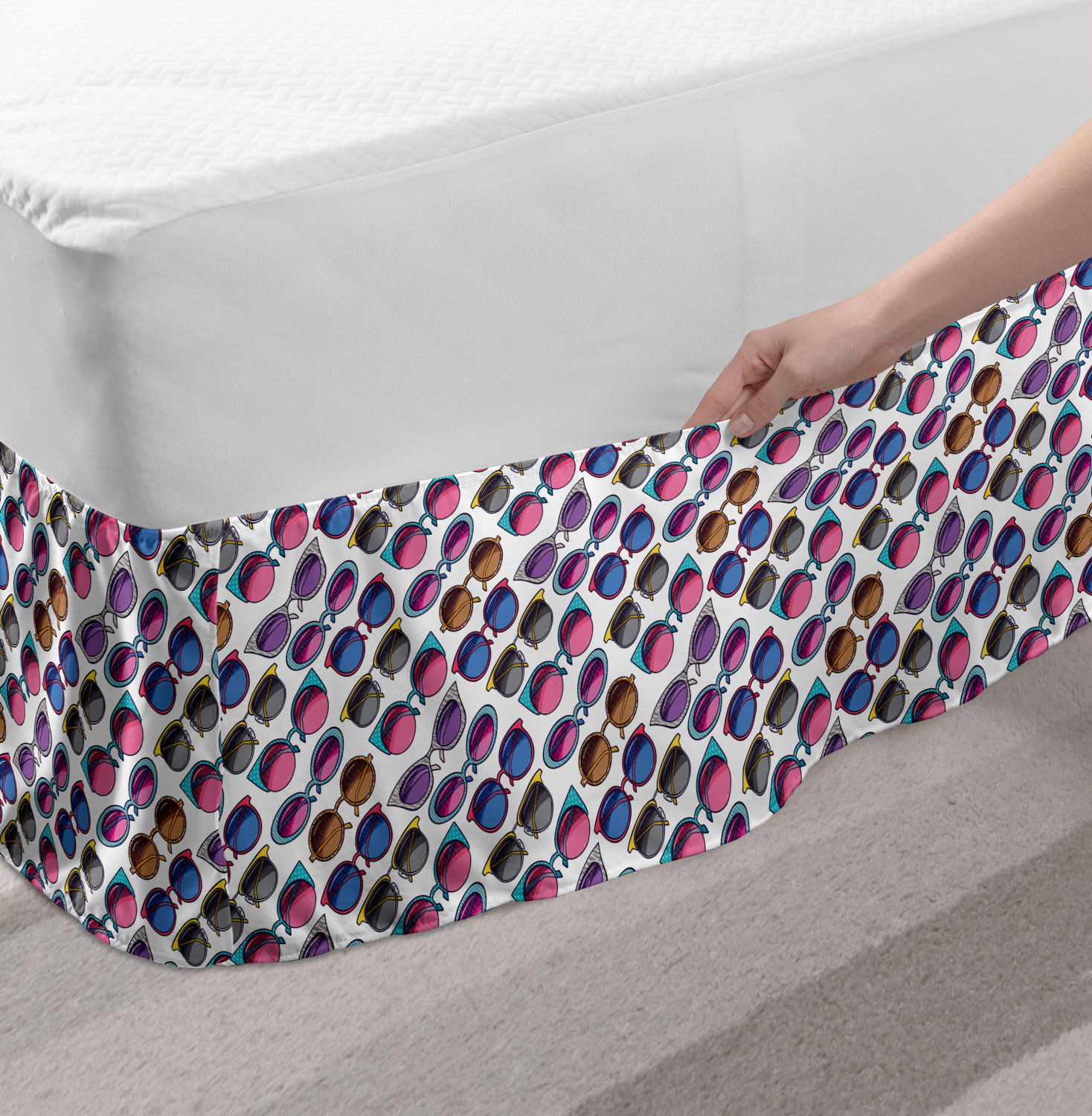 Ambesonne Colorful Theme Bedskirt Elastic Wrap Around Skirt Gathered Design Ambesonne Bedskirt Bedroom Decor Wrap Around Elastic Bed Skirt Gathered Design In 4 sizes. 15 inches drop. All around wrap gathered. MADE IN TURKEY. MADE FROM - High quality 100% brushed soft microfiber fabric. Suitable for most types of beds. FEATURES - Install easily with elastic straps wrap under the mattress. Stays in place. Split corners. MACHINE WASHABLE - On cold cycle. Dryer safe and iron easy. No fading colors. For bedroom decor. PRINTED - With state of the art digital printing technology. Long-lasting bold colors & clear image. Change your bedroom's style with a simple touch of bedskirt! Our bedskirts are very easy to use; you can easily put around this elastic bed skirt and fasten up with straps under your mattress. Bring new energy to your master suite with colors and thousands of different patterns. You can easily match your bedding sets with our varied bed skirts. You can play safe and create vintage decor easily with these bed ruffles that belongs to retro-times. But you can ask for novelty and combine this piece with your modern choices. Our bed skirt is smartly designed with modern split corners. And you don't need to worry if it gets dusty or dirty. Just machine wash in the cold cycle and tumble dry on low. Thanks to new printing techniques the colors will not fade easily. Design a neat look for your bed with this gathered bed skirt. It is designed with a slim/low style ruffle to catch a more contemporary line. You can give these bed skirts as a Christmas, birthday, wedding gift, mother's day or house warming gift. It can be a great present for your mother, father, newly married friends, grandmother, aunt, uncle. The digital images we display have the most accurate color possible, however, due to differences in computer monitors, we cannot be responsible for variations in color between the actual product and your screen. Due to manual measurement, please kindly allow 1-2 cm discrepancy.