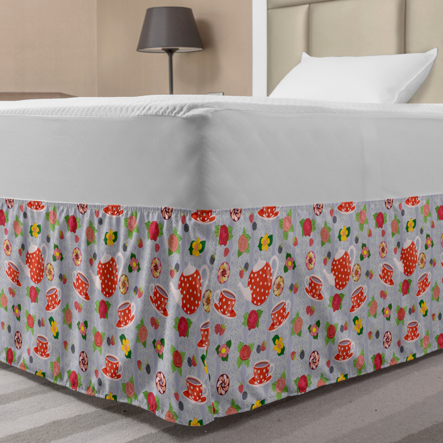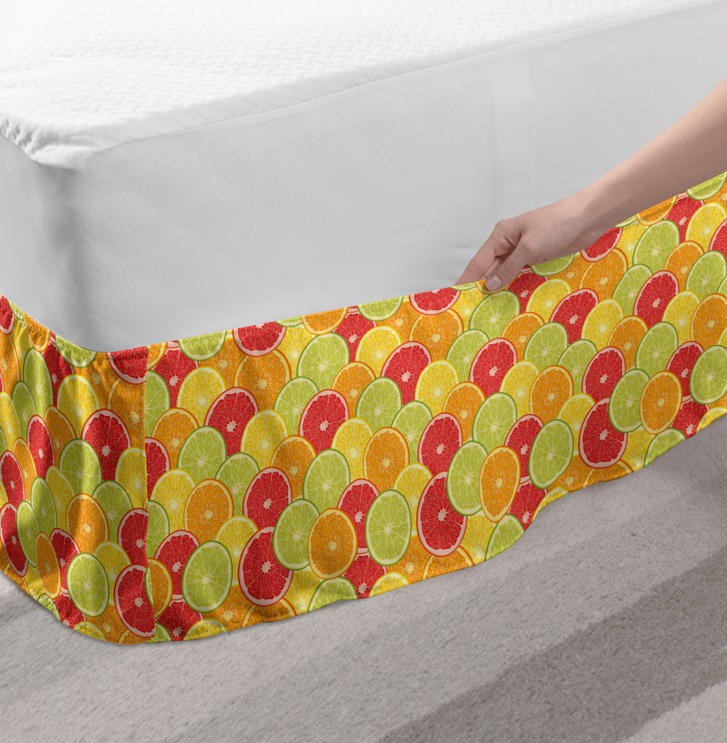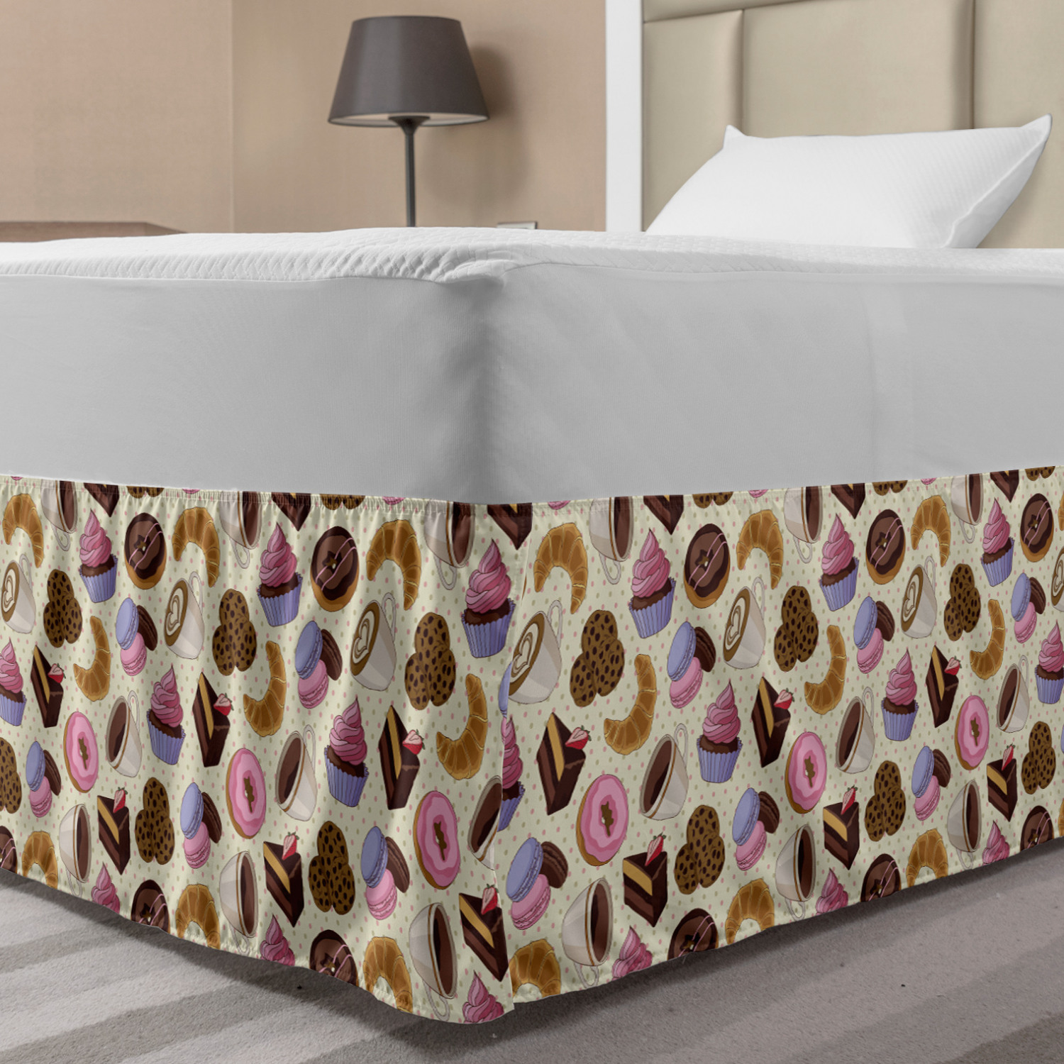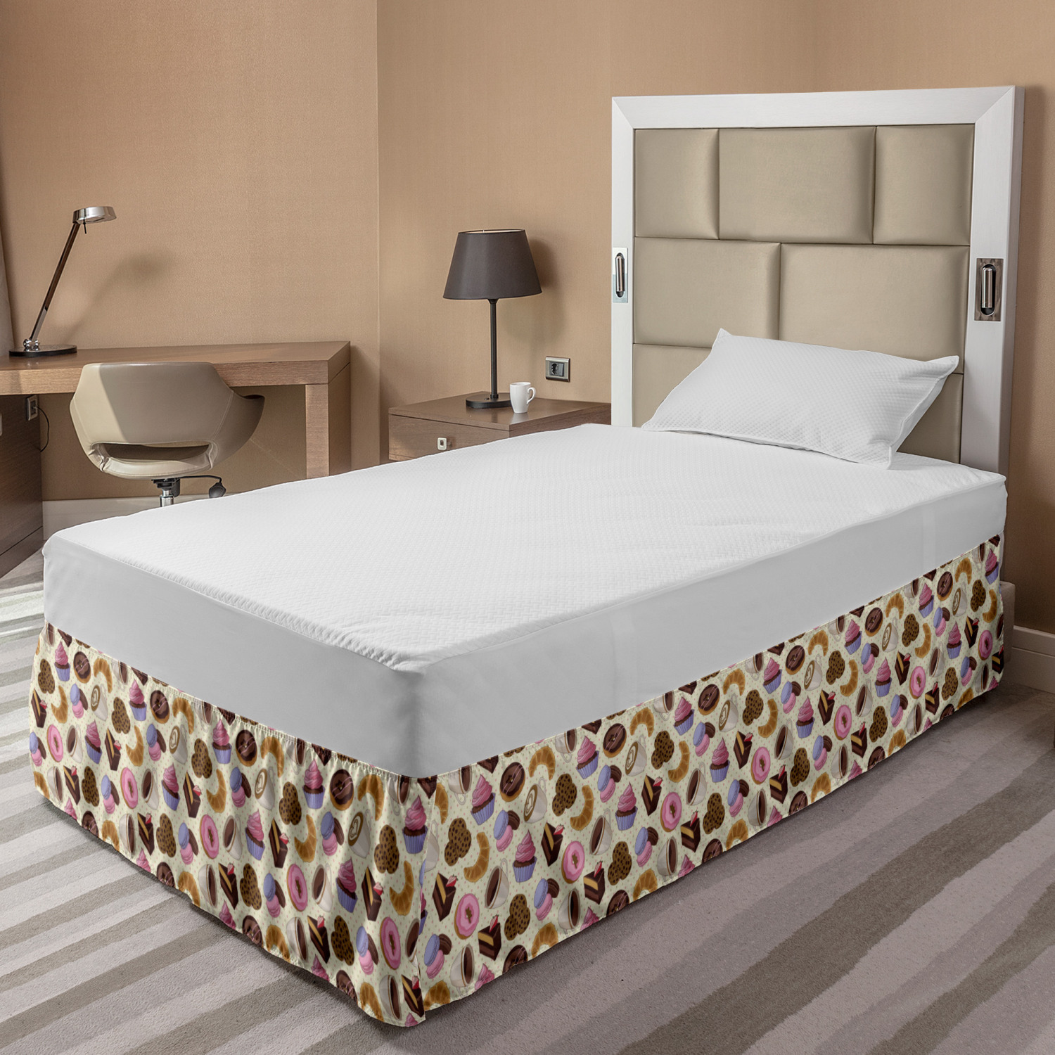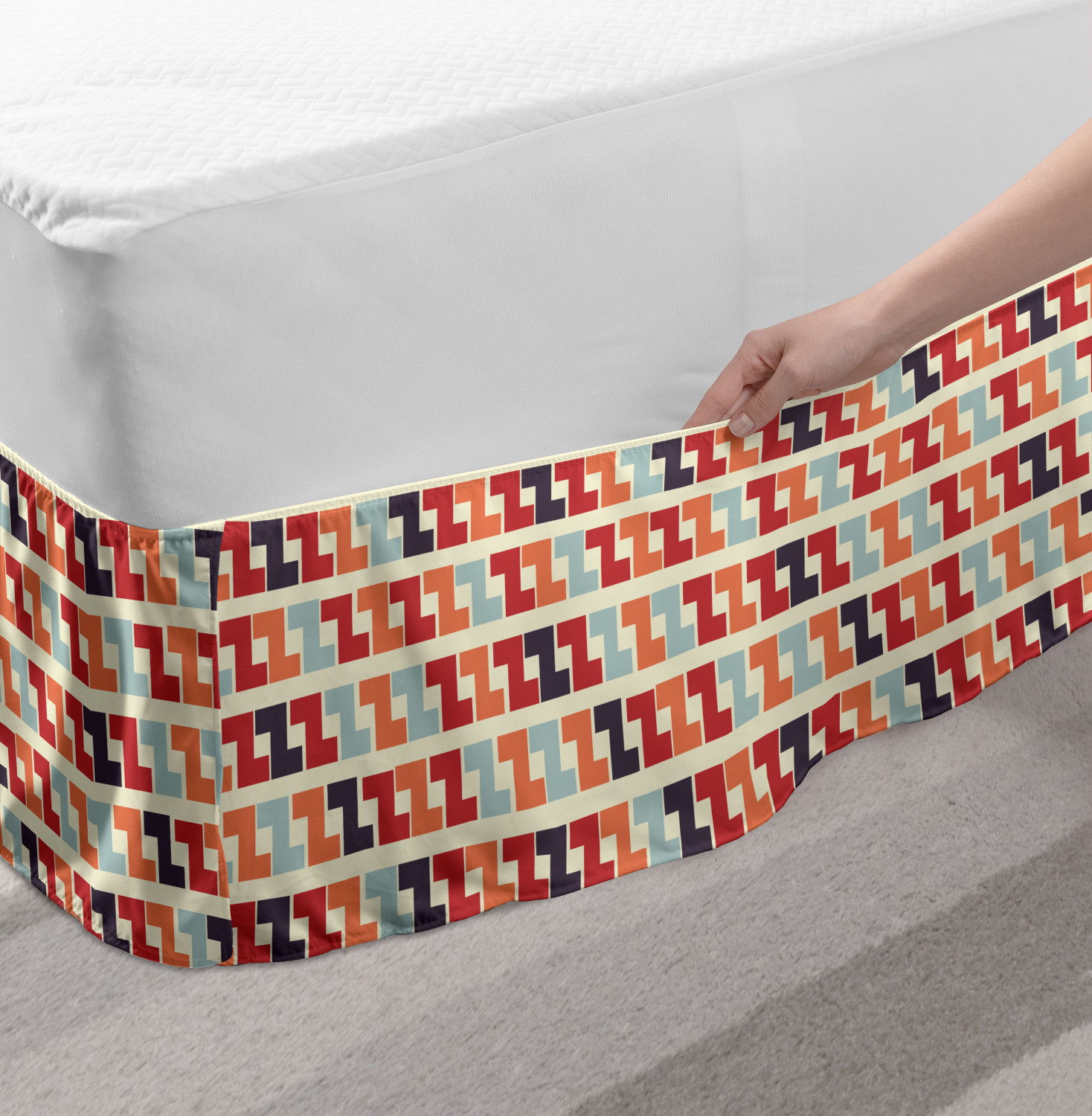 Ambesonne Colorful Theme Bedskirt Elastic Wrap Around Skirt Gathered Design Ambesonne Bedskirt Bedroom Decor Wrap Around Elastic Bed Skirt Gathered Design In 4 sizes. 15 inches drop. All around wrap gathered. MADE IN TURKEY. MADE FROM - High quality 100% brushed soft microfiber fabric. Suitable for most types of beds. FEATURES - Install easily with elastic straps wrap under the mattress. Stays in place. Split corners. MACHINE WASHABLE - On cold cycle. Dryer safe and iron easy. No fading colors. For bedroom decor. PRINTED - With state of the art digital printing technology. Long-lasting bold colors & clear image. Change your bedroom's style with a simple touch of bedskirt! Our bedskirts are very easy to use; you can easily put around this elastic bed skirt and fasten up with straps under your mattress. Bring new energy to your master suite with colors and thousands of different patterns. You can easily match your bedding sets with our varied bed skirts. You can play safe and create vintage decor easily with these bed ruffles that belongs to retro-times. But you can ask for novelty and combine this piece with your modern choices. Our bed skirt is smartly designed with modern split corners. And you don't need to worry if it gets dusty or dirty. Just machine wash in the cold cycle and tumble dry on low. Thanks to new printing techniques the colors will not fade easily. Design a neat look for your bed with this gathered bed skirt. It is designed with a slim/low style ruffle to catch a more contemporary line. You can give these bed skirts as a Christmas, birthday, wedding gift, mother's day or house warming gift. It can be a great present for your mother, father, newly married friends, grandmother, aunt, uncle. The digital images we display have the most accurate color possible, however, due to differences in computer monitors, we cannot be responsible for variations in color between the actual product and your screen. Due to manual measurement, please kindly allow 1-2 cm discrepancy.