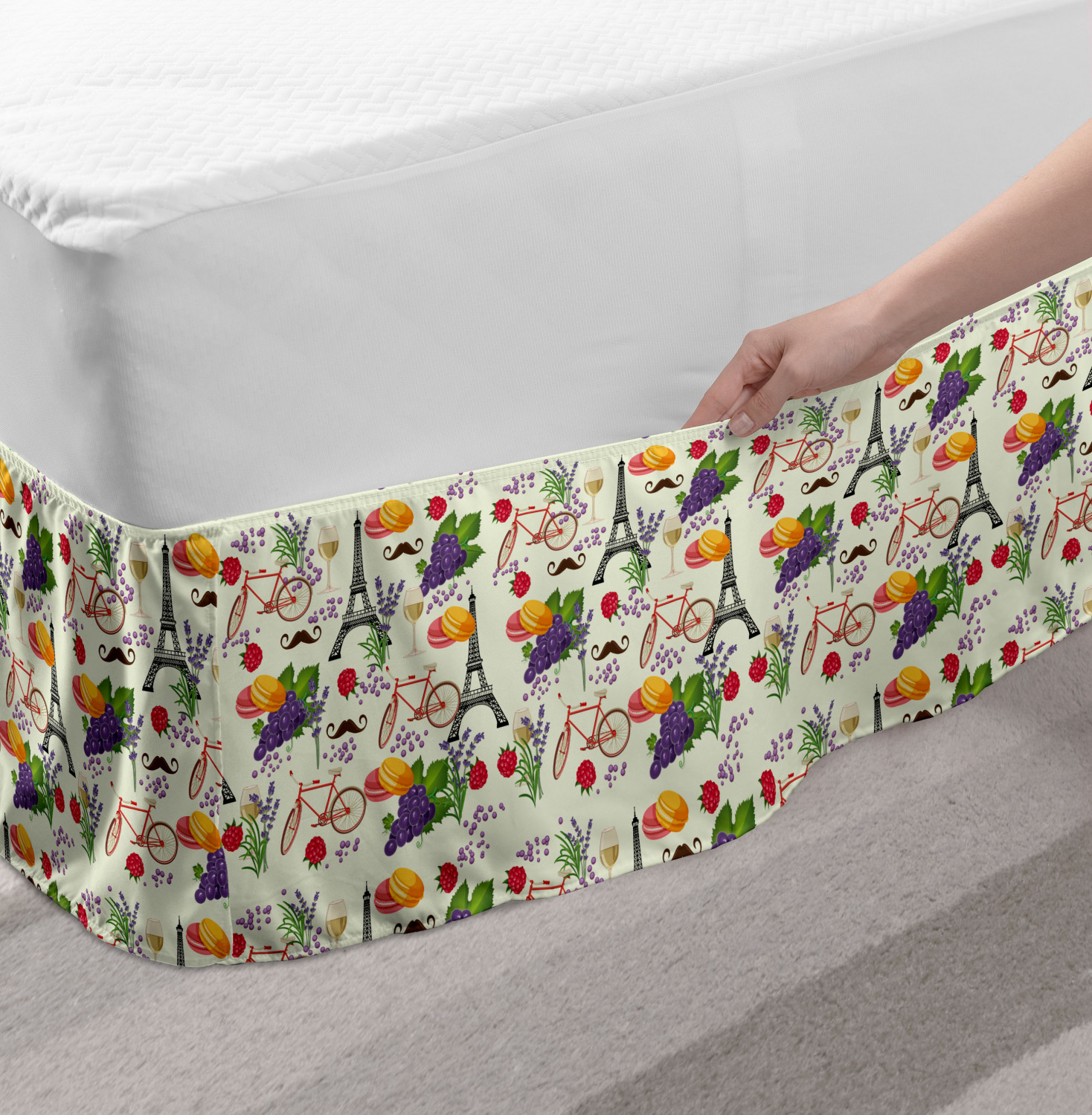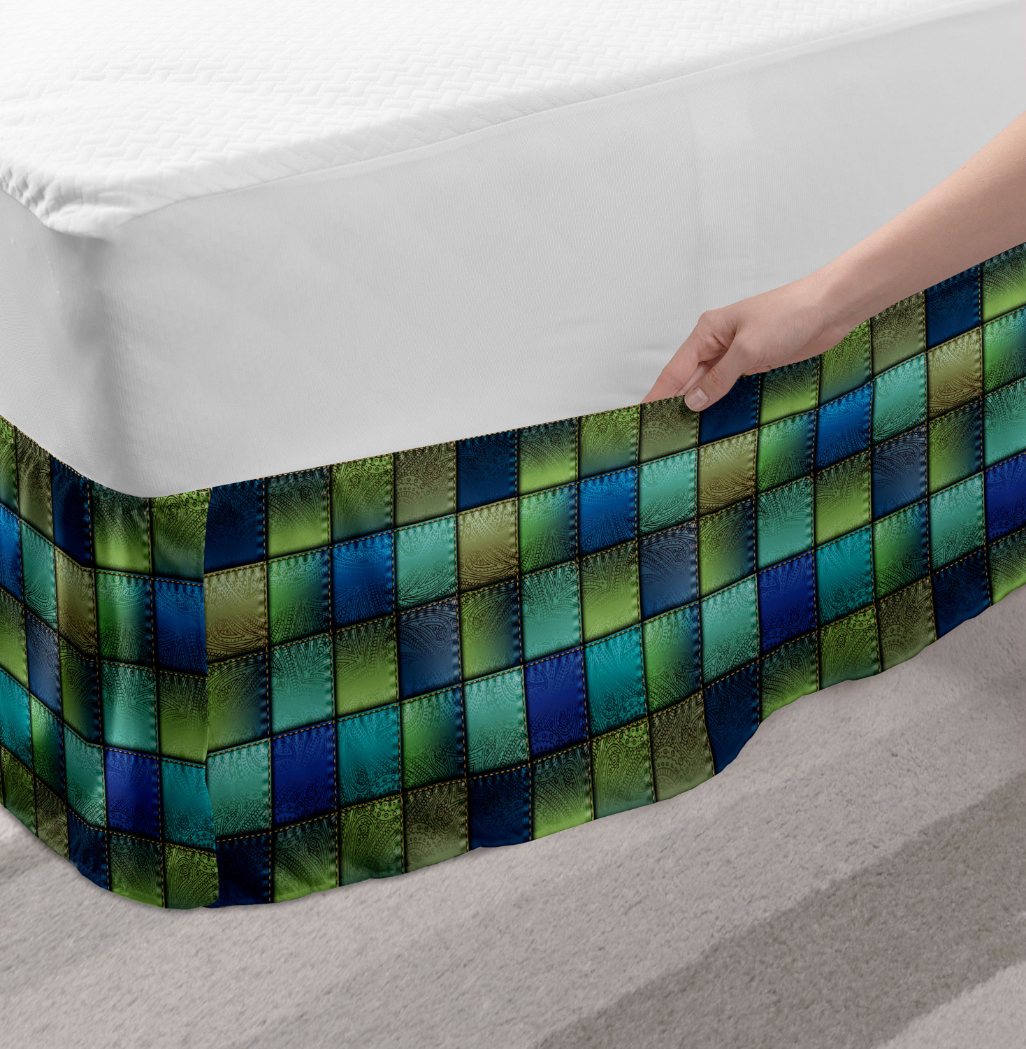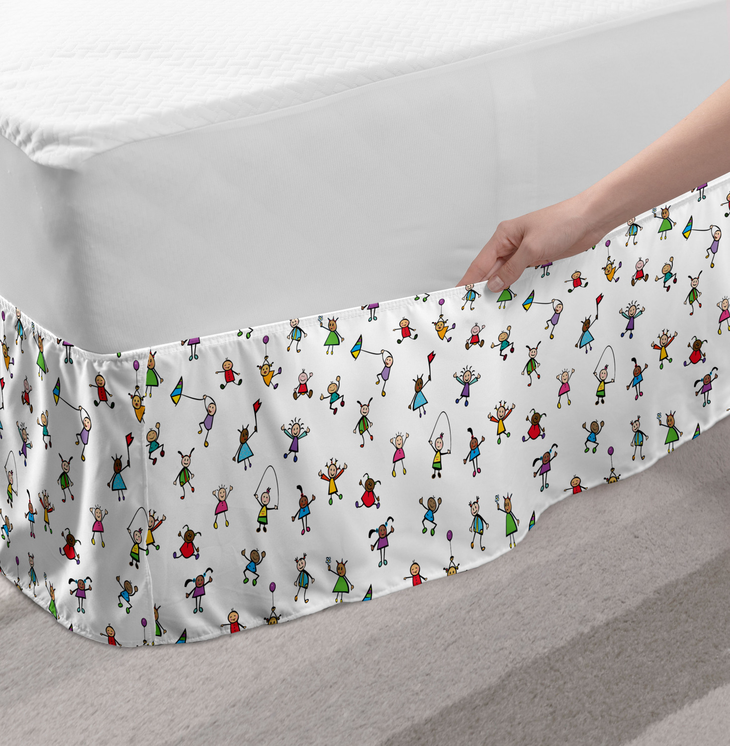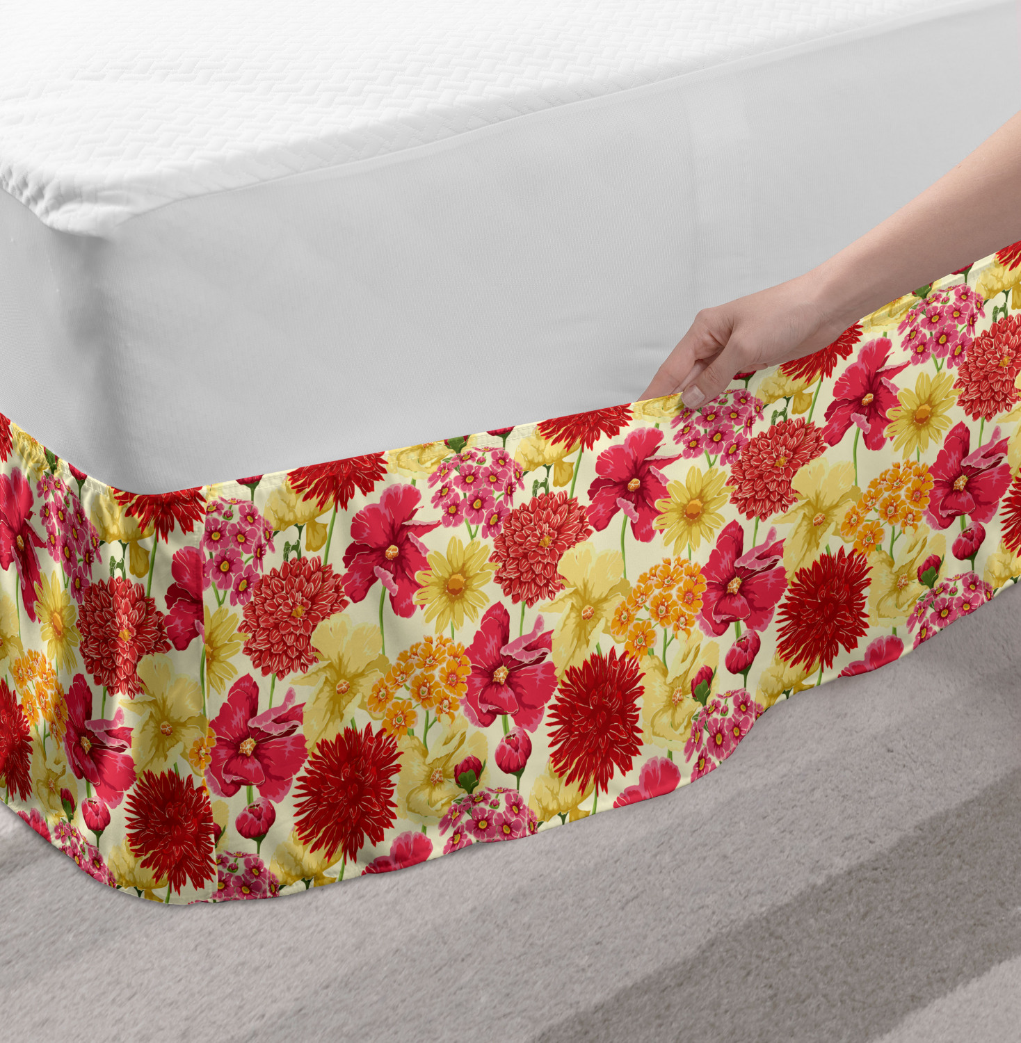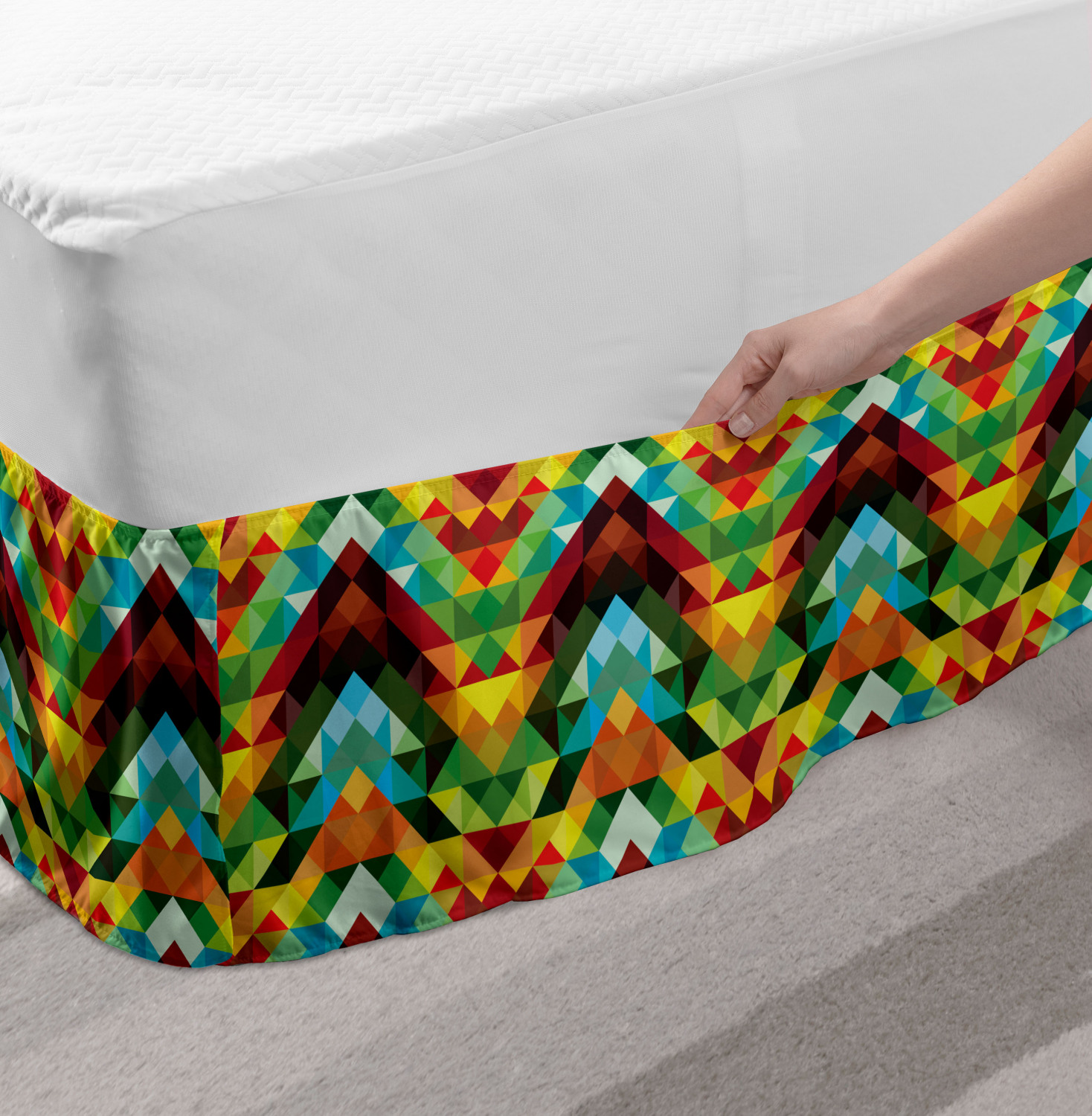 Ambesonne Colorful Theme Bedskirt Elastic Wrap Around Skirt Gathered Design Ambesonne Bedskirt Bedroom Decor Wrap Around Elastic Bed Skirt Gathered Design In 4 sizes. 15 inches drop. All around wrap gathered. MADE IN TURKEY. MADE FROM - High quality 100% brushed soft microfiber fabric. Suitable for most types of beds. FEATURES - Install easily with elastic straps wrap under the mattress. Stays in place. Split corners. MACHINE WASHABLE - On cold cycle. Dryer safe and iron easy. No fading colors. For bedroom decor. PRINTED - With state of the art digital printing technology. Long-lasting bold colors & clear image. Change your bedroom's style with a simple touch of bedskirt! Our bedskirts are very easy to use; you can easily put around this elastic bed skirt and fasten up with straps under your mattress. Bring new energy to your master suite with colors and thousands of different patterns. You can easily match your bedding sets with our varied bed skirts. You can play safe and create vintage decor easily with these bed ruffles that belongs to retro-times. But you can ask for novelty and combine this piece with your modern choices. Our bed skirt is smartly designed with modern split corners. And you don't need to worry if it gets dusty or dirty. Just machine wash in the cold cycle and tumble dry on low. Thanks to new printing techniques the colors will not fade easily. Design a neat look for your bed with this gathered bed skirt. It is designed with a slim/low style ruffle to catch a more contemporary line. You can give these bed skirts as a Christmas, birthday, wedding gift, mother's day or house warming gift. It can be a great present for your mother, father, newly married friends, grandmother, aunt, uncle. The digital images we display have the most accurate color possible, however, due to differences in computer monitors, we cannot be responsible for variations in color between the actual product and your screen. Due to manual measurement, please kindly allow 1-2 cm discrepancy.