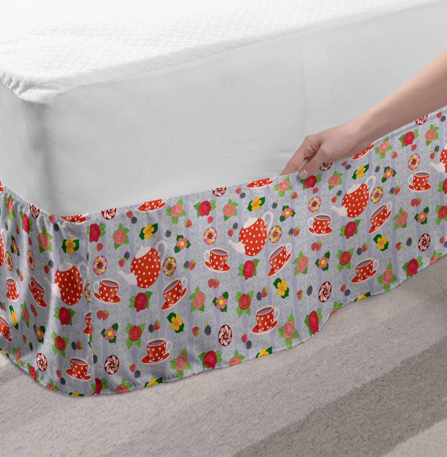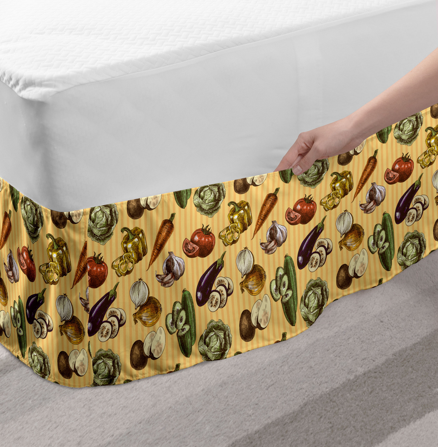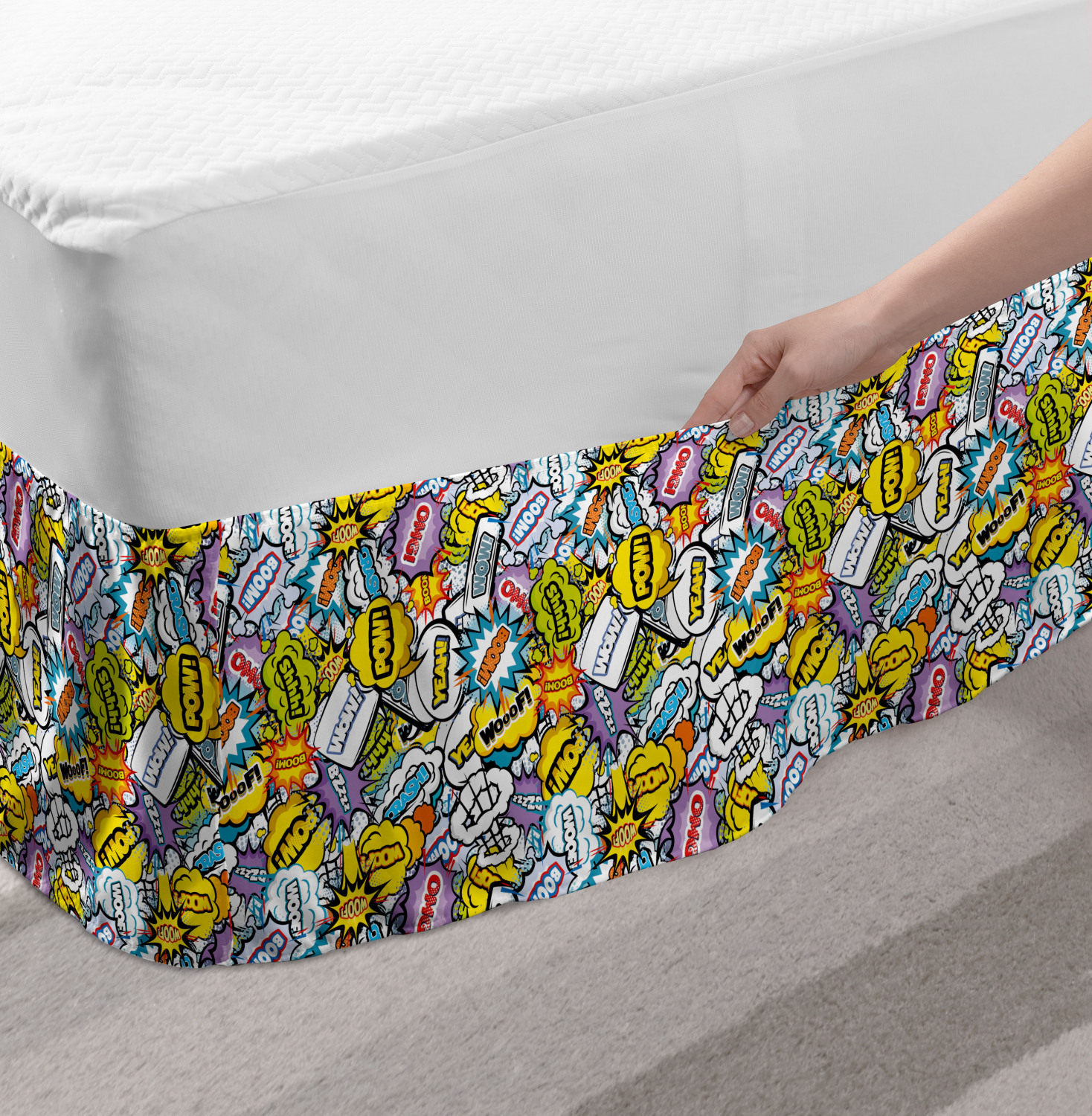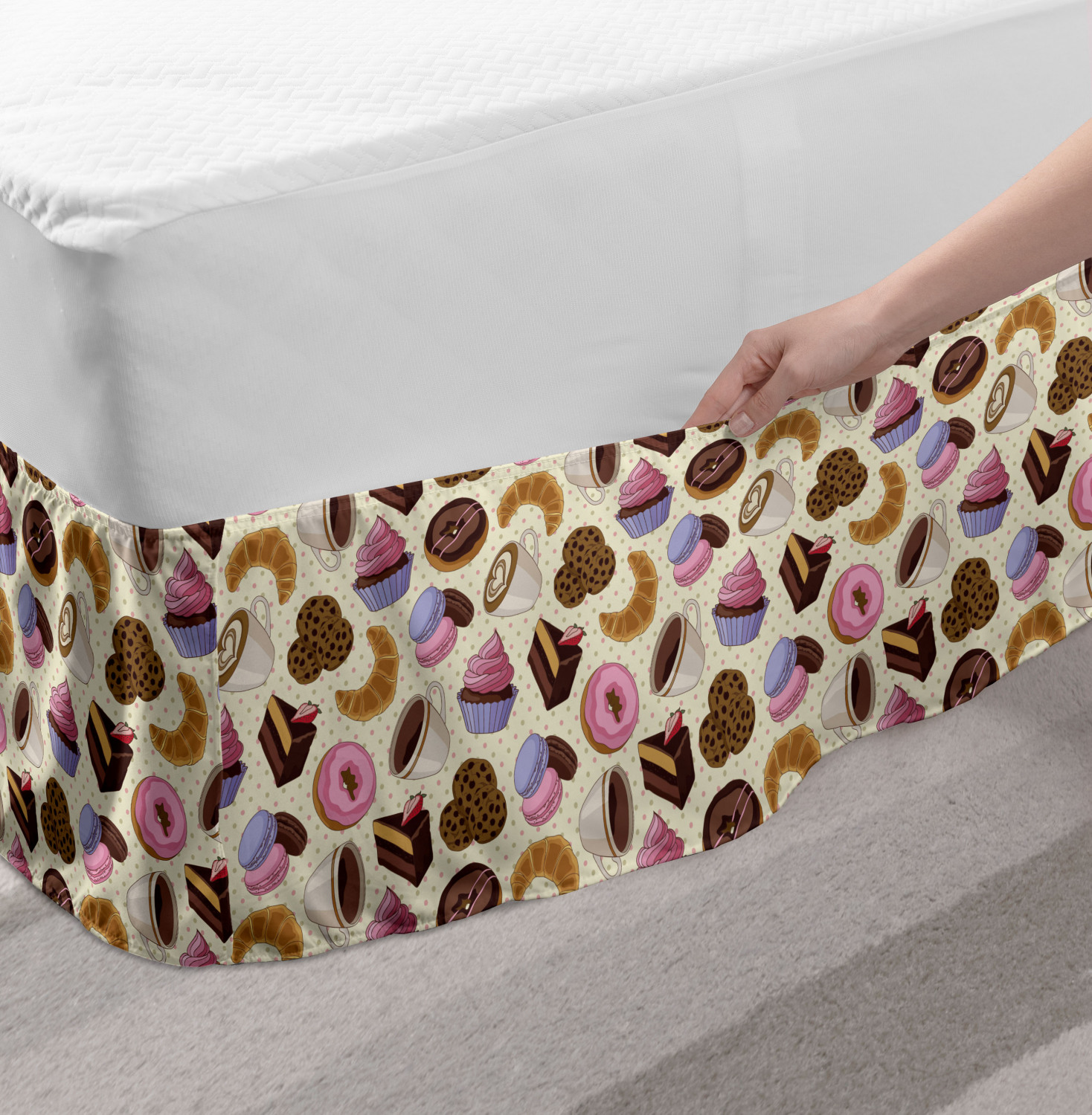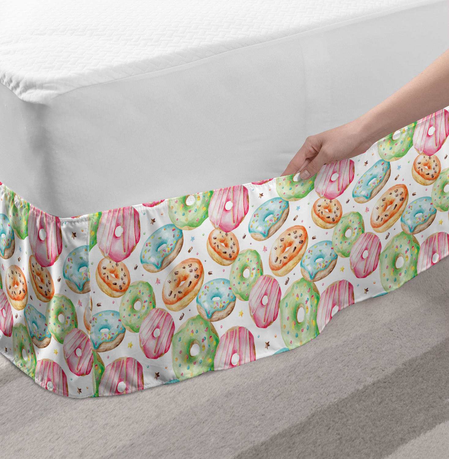 Ambesonne Colorful Theme Bedskirt Elastic Wrap Around Skirt Gathered Design Ambesonne Bedskirt Bedroom Decor Wrap Around Elastic Bed Skirt Gathered Design In 4 sizes. 15 inches drop. All around wrap gathered. MADE IN TURKEY. MADE FROM - High quality 100% brushed soft microfiber fabric. Suitable for most types of beds. FEATURES - Install easily with elastic straps wrap under the mattress. Stays in place. Split corners. MACHINE WASHABLE - On cold cycle. Dryer safe and iron easy. No fading colors. For bedroom decor. PRINTED - With state of the art digital printing technology. Long-lasting bold colors & clear image. Change your bedroom's style with a simple touch of bedskirt! Our bedskirts are very easy to use; you can easily put around this elastic bed skirt and fasten up with straps under your mattress. Bring new energy to your master suite with colors and thousands of different patterns. You can easily match your bedding sets with our varied bed skirts. You can play safe and create vintage decor easily with these bed ruffles that belongs to retro-times. But you can ask for novelty and combine this piece with your modern choices. Our bed skirt is smartly designed with modern split corners. And you don't need to worry if it gets dusty or dirty. Just machine wash in the cold cycle and tumble dry on low. Thanks to new printing techniques the colors will not fade easily. Design a neat look for your bed with this gathered bed skirt. It is designed with a slim/low style ruffle to catch a more contemporary line. You can give these bed skirts as a Christmas, birthday, wedding gift, mother's day or house warming gift. It can be a great present for your mother, father, newly married friends, grandmother, aunt, uncle. The digital images we display have the most accurate color possible, however, due to differences in computer monitors, we cannot be responsible for variations in color between the actual product and your screen. Due to manual measurement, please kindly allow 1-2 cm discrepancy.