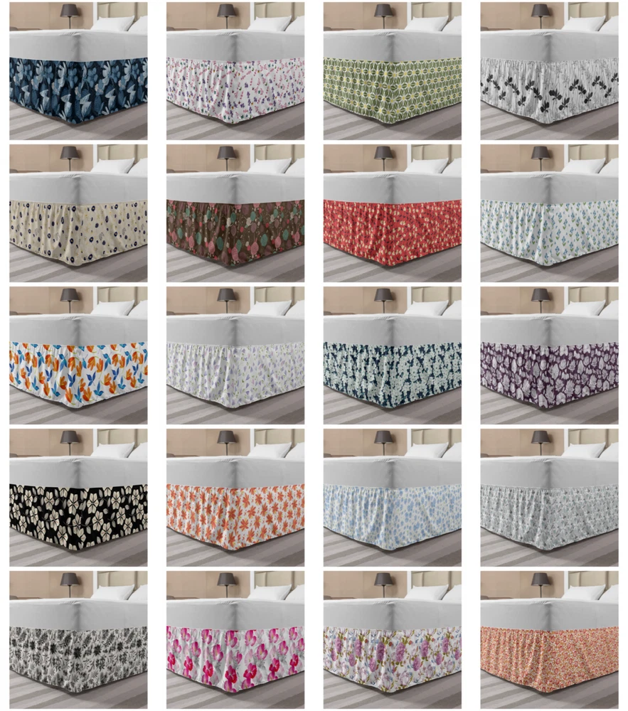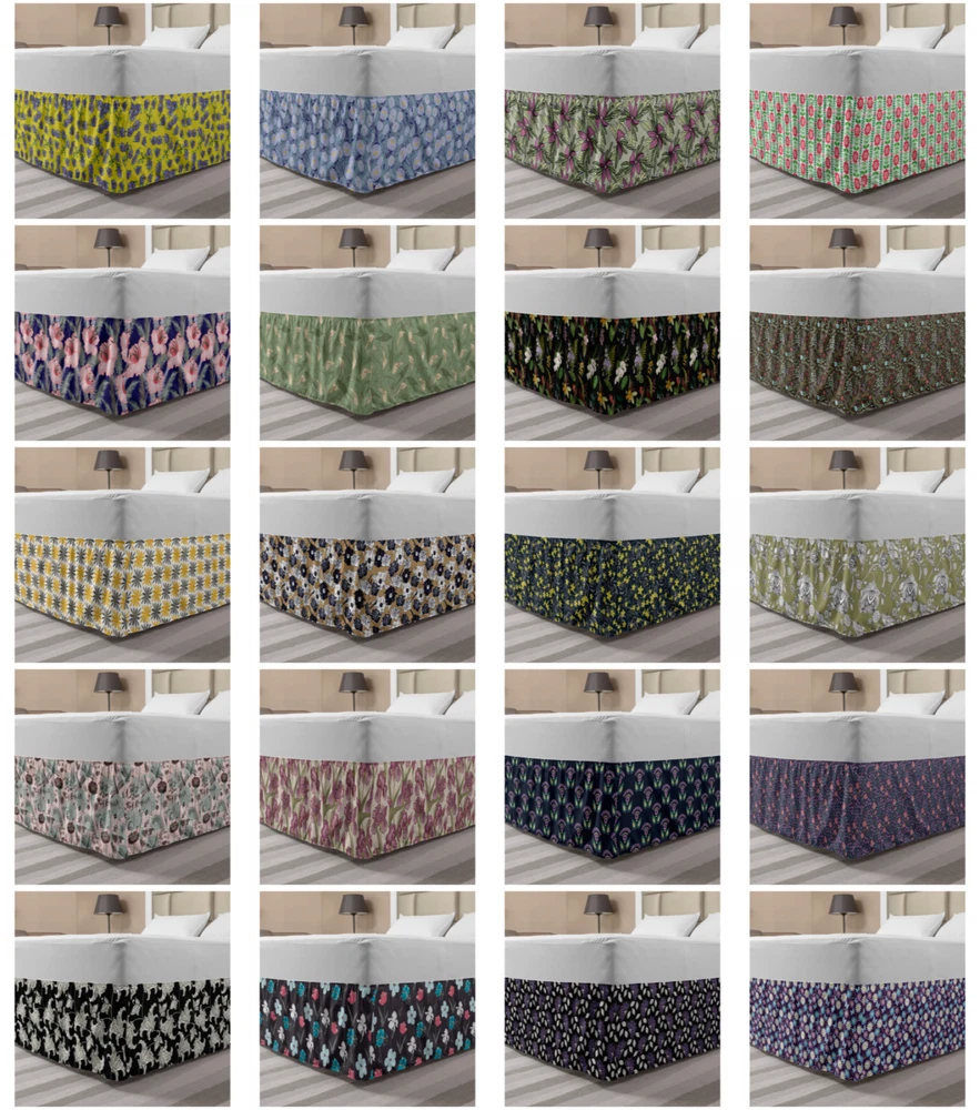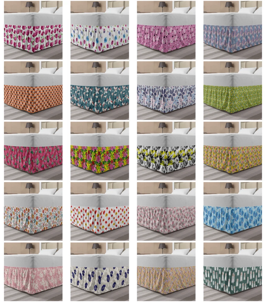Ambesonne Flower Scenes Bedskirt Elastic Wrap Around Skirt Gathered Design Ambesonne Bedskirt Bedroom Decor Wrap Around Elastic Bed Skirt Gathered Design In 4 sizes. 15 inches drop. All around wrap gathered. MADE IN TURKEY. MADE FROM - High quality 100% brushed soft microfiber fabric. Suitable for most types of beds. FEATURES - Install easily with elastic straps wrap under the mattress. Stays in place. Split corners. MACHINE WASHABLE - On cold cycle. Dryer safe and iron easy. No fading colors. For bedroom decor. PRINTED - With state of the art digital printing technology. Long-lasting bold colors & clear image. Change your bedroom's style with a simple touch of bedskirt! Our bedskirts are very easy to use; you can easily put around this elastic bed skirt and fasten up with straps under your mattress. Bring new energy to your master suite with colors and thousands of different patterns. You can easily match your bedding sets with our varied bed skirts. You can play safe and create vintage decor easily with these bed ruffles that belongs to retro-times. But you can ask for novelty and combine this piece with your modern choices. Our bed skirt is smartly designed with modern split corners. And you don't need to worry if it gets dusty or dirty. Just machine wash in the cold cycle and tumble dry on low. Thanks to new printing techniques the colors will not fade easily. Design a neat look for your bed with this gathered bed skirt. It is designed with a slim/low style ruffle to catch a more contemporary line. You can give these bed skirts as a Christmas, birthday, wedding gift, mother's day or house warming gift. It can be a great present for your mother, father, newly married friends, grandmother, aunt, uncle. The digital images we display have the most accurate color possible, however, due to differences in computer monitors, we cannot be responsible for variations in color between the actual product and your screen. Due to manual measurement, please kindly allow 1-2 cm discrepancy.