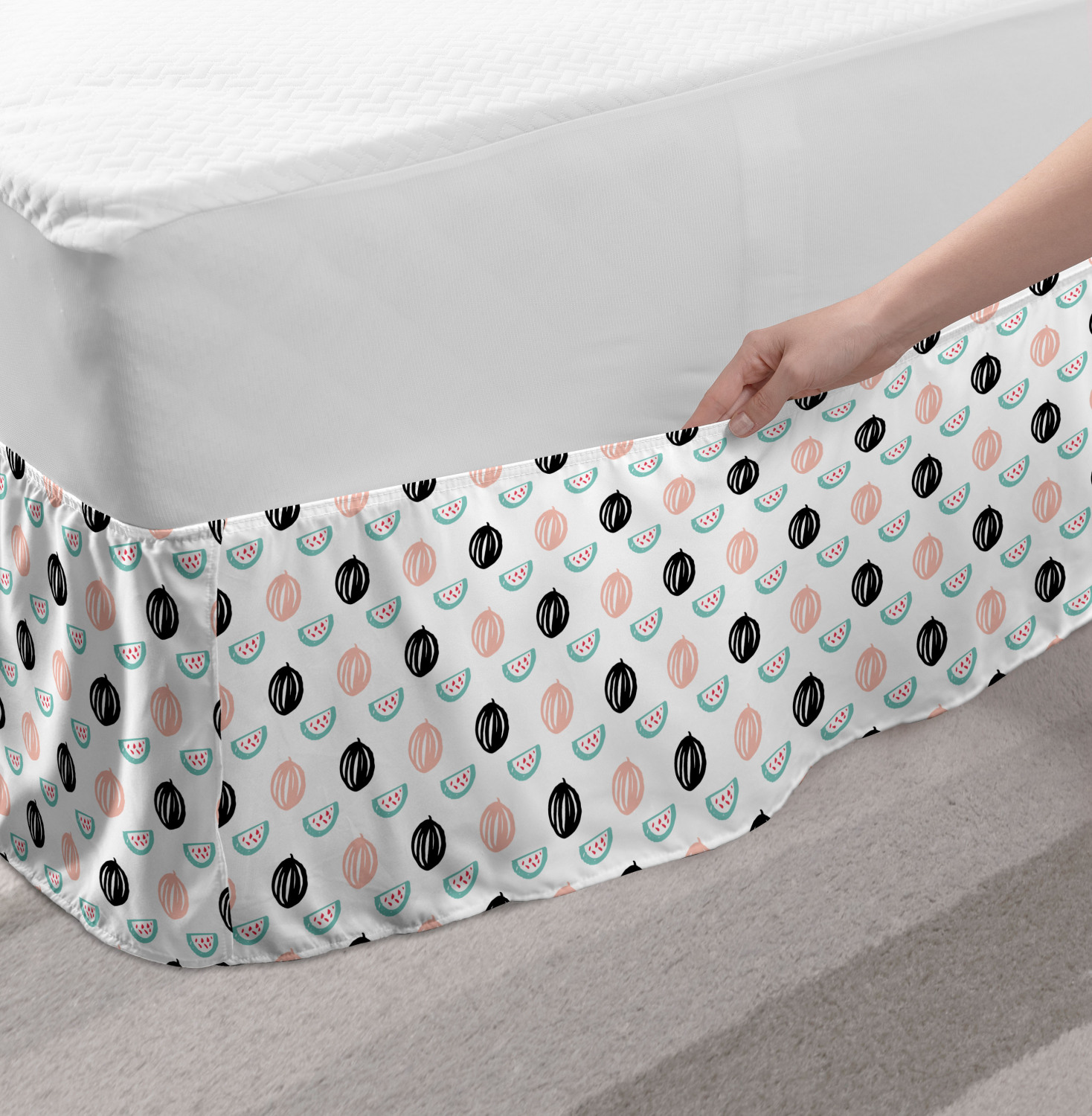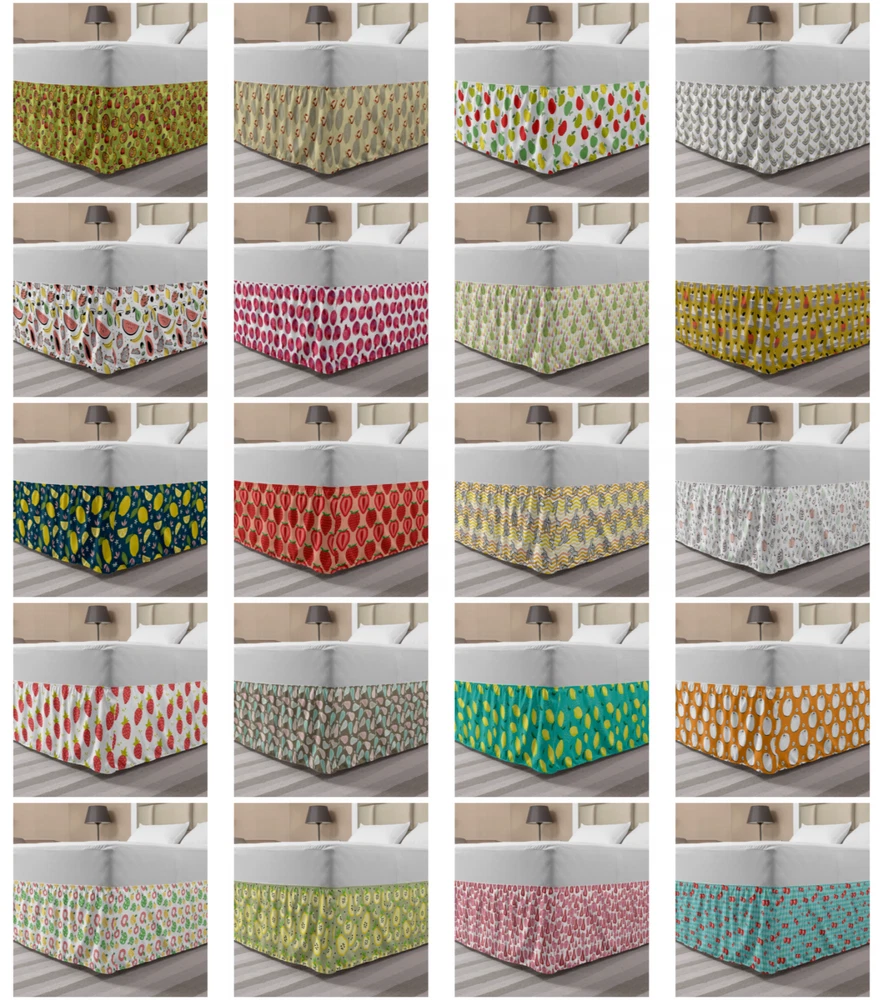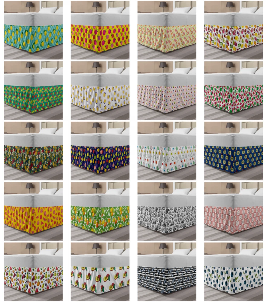 Ambesonne Fruits Bedskirt Elastic Wrap Around Skirt Gathered Design Ambesonne Bedskirt Bedroom Decor Wrap Around Elastic Bed Skirt Gathered Design In 4 sizes. 15 inches drop. All around wrap gathered. MADE IN TURKEY. MADE FROM - High quality 100% brushed soft microfiber fabric. Suitable for most types of beds. FEATURES - Install easily with elastic straps wrap under the mattress. Stays in place. Split corners. MACHINE WASHABLE - On cold cycle. Dryer safe and iron easy. No fading colors. For bedroom decor. PRINTED - With state of the art digital printing technology. Long-lasting bold colors & clear image. Change your bedroom's style with a simple touch of bedskirt! Our bedskirts are very easy to use; you can easily put around this elastic bed skirt and fasten up with straps under your mattress. Bring new energy to your master suite with colors and thousands of different patterns. You can easily match your bedding sets with our varied bed skirts. You can play safe and create vintage decor easily with these bed ruffles that belongs to retro-times. But you can ask for novelty and combine this piece with your modern choices. Our bed skirt is smartly designed with modern split corners. And you don't need to worry if it gets dusty or dirty. Just machine wash in the cold cycle and tumble dry on low. Thanks to new printing techniques the colors will not fade easily. Design a neat look for your bed with this gathered bed skirt. It is designed with a slim/low style ruffle to catch a more contemporary line. You can give these bed skirts as a Christmas, birthday, wedding gift, mother's day or house warming gift. It can be a great present for your mother, father, newly married friends, grandmother, aunt, uncle. The digital images we display have the most accurate color possible, however, due to differences in computer monitors, we cannot be responsible for variations in color between the actual product and your screen. Due to manual measurement, please kindly allow 1-2 cm discrepancy.
