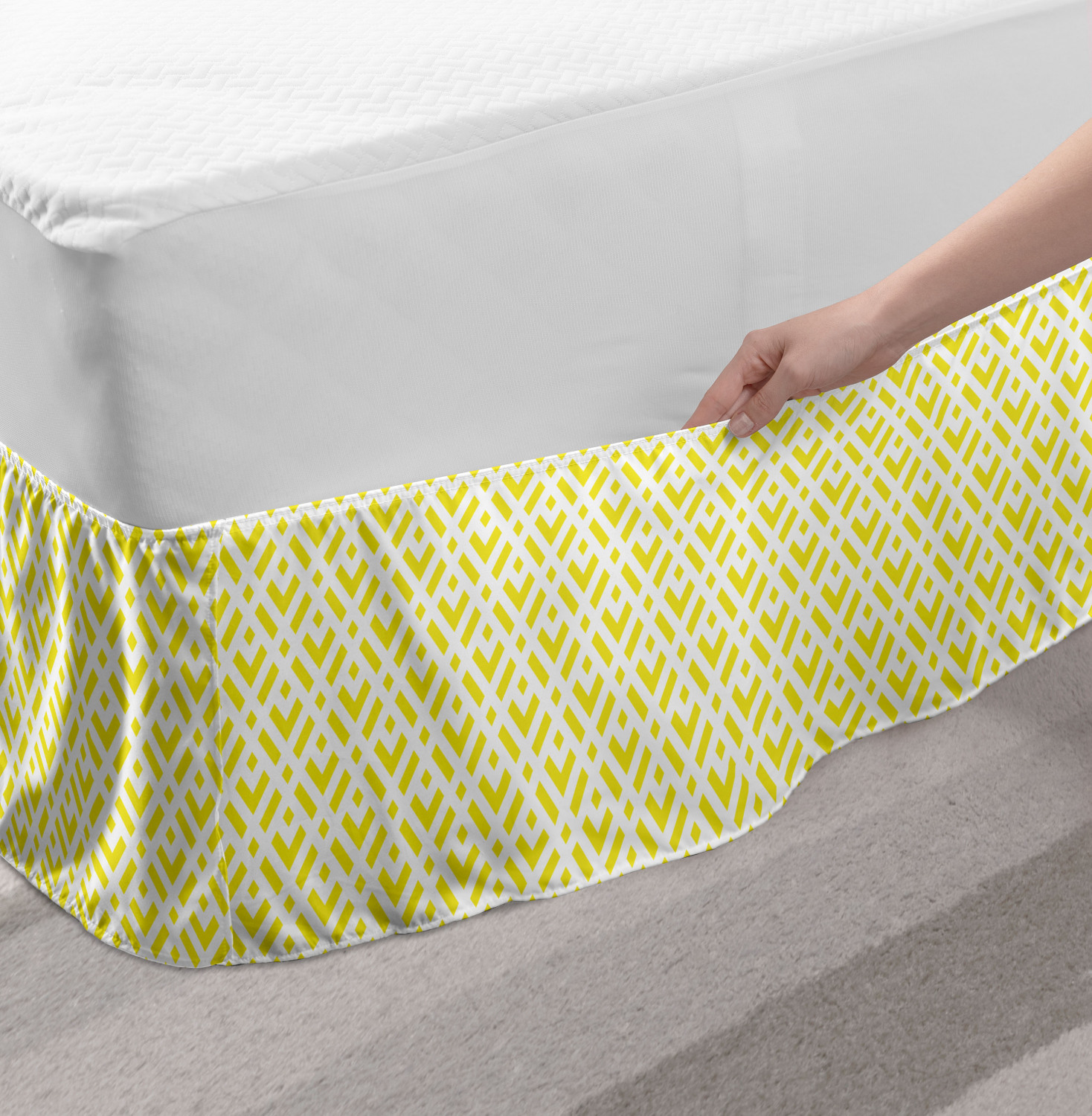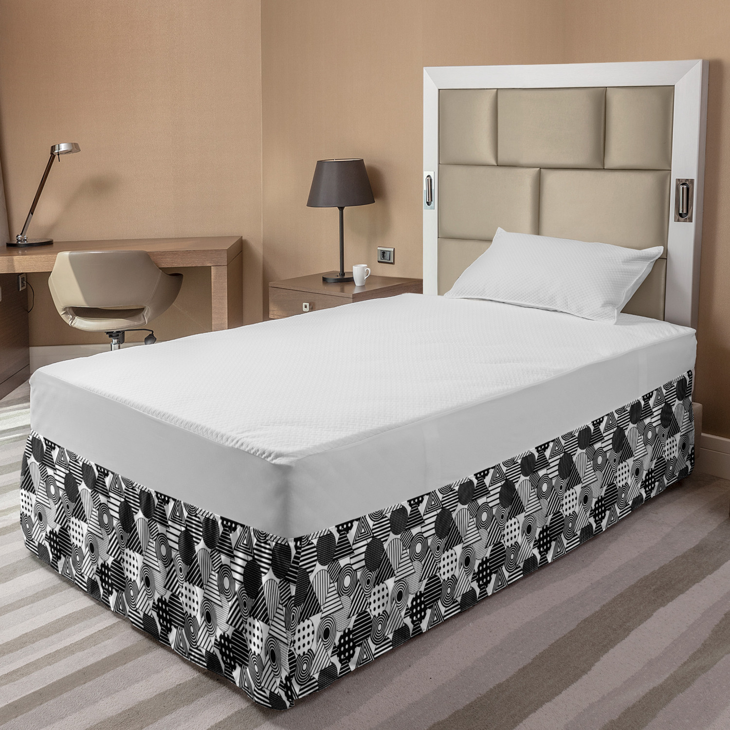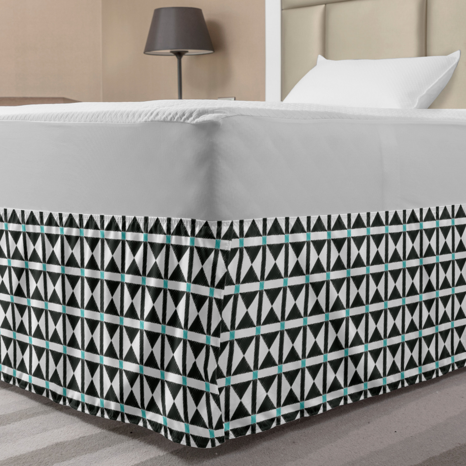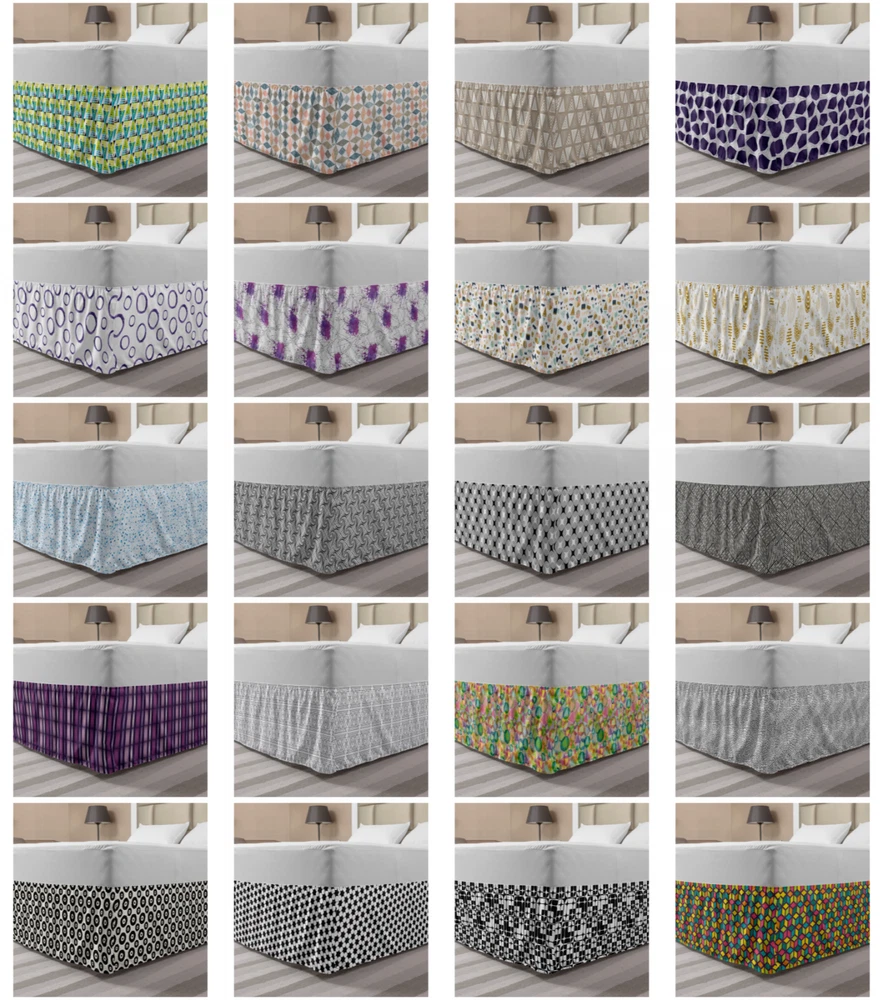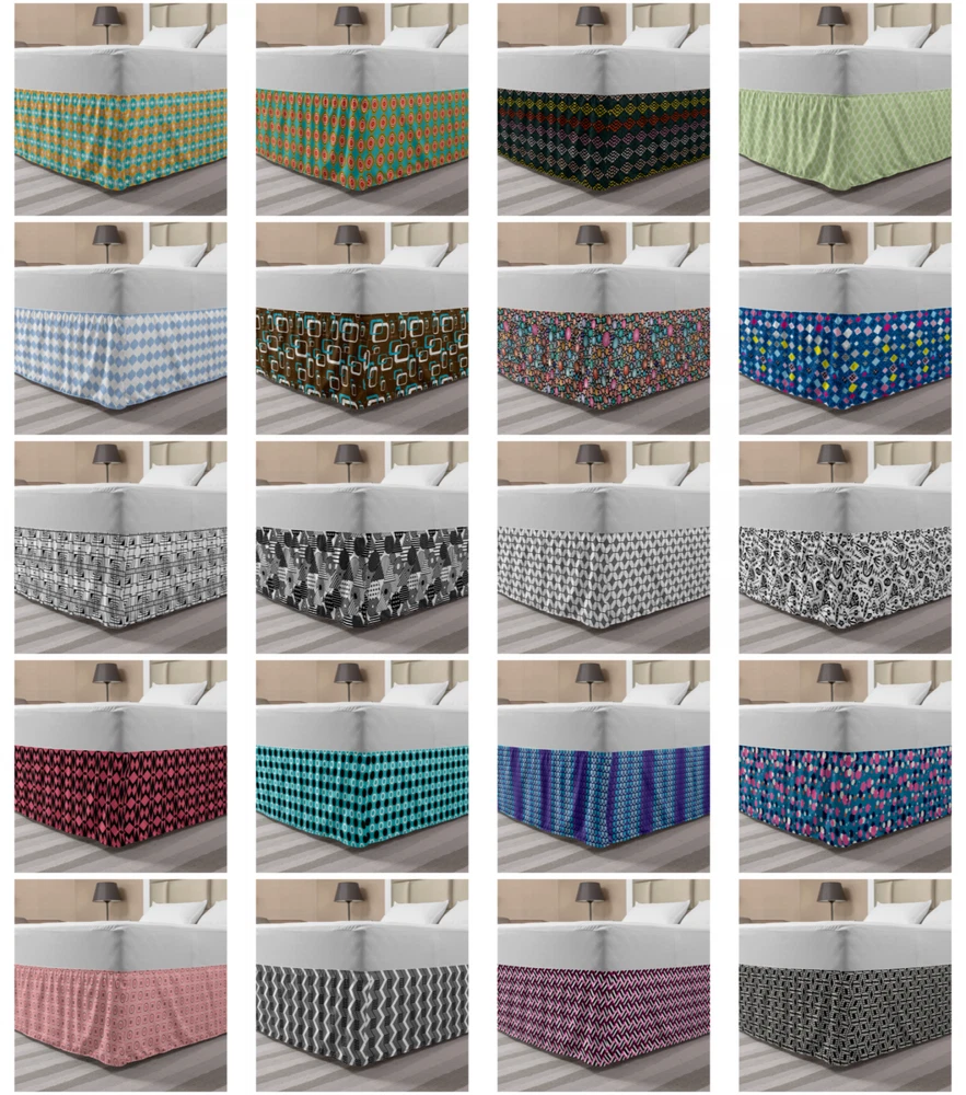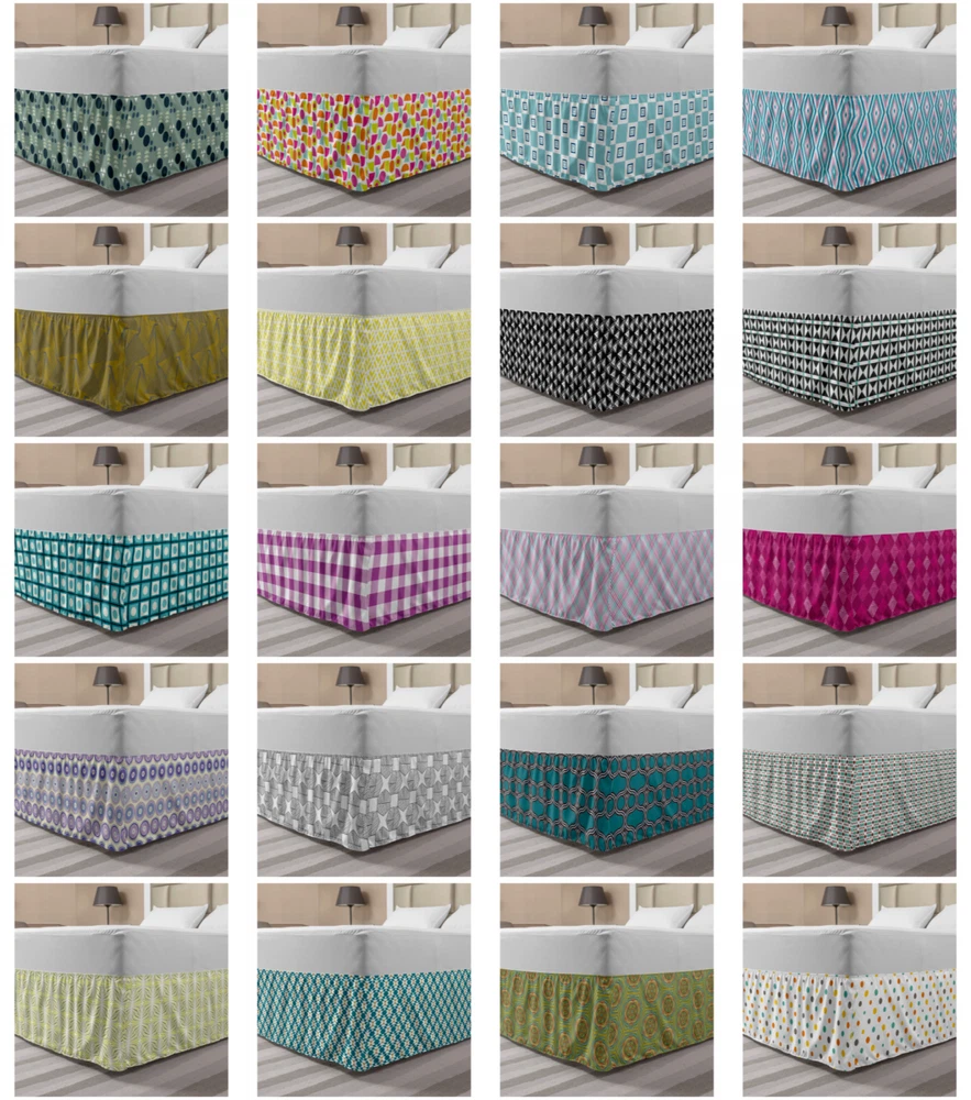 Ambesonne Geometric Items Bedskirt Elastic Wrap Around Skirt Gathered Design Ambesonne Bedskirt Bedroom Decor Wrap Around Elastic Bed Skirt Gathered Design In 4 sizes. 15 inches drop. All around wrap gathered. MADE IN TURKEY. MADE FROM - High quality 100% brushed soft microfiber fabric. Suitable for most types of beds. FEATURES - Install easily with elastic straps wrap under the mattress. Stays in place. Split corners. MACHINE WASHABLE - On cold cycle. Dryer safe and iron easy. No fading colors. For bedroom decor. PRINTED - With state of the art digital printing technology. Long-lasting bold colors & clear image. Change your bedroom's style with a simple touch of bedskirt! Our bedskirts are very easy to use; you can easily put around this elastic bed skirt and fasten up with straps under your mattress. Bring new energy to your master suite with colors and thousands of different patterns. You can easily match your bedding sets with our varied bed skirts. You can play safe and create vintage decor easily with these bed ruffles that belongs to retro-times. But you can ask for novelty and combine this piece with your modern choices. Our bed skirt is smartly designed with modern split corners. And you don't need to worry if it gets dusty or dirty. Just machine wash in the cold cycle and tumble dry on low. Thanks to new printing techniques the colors will not fade easily. Design a neat look for your bed with this gathered bed skirt. It is designed with a slim/low style ruffle to catch a more contemporary line. You can give these bed skirts as a Christmas, birthday, wedding gift, mother's day or house warming gift. It can be a great present for your mother, father, newly married friends, grandmother, aunt, uncle. The digital images we display have the most accurate color possible, however, due to differences in computer monitors, we cannot be responsible for variations in color between the actual product and your screen. Due to manual measurement, please kindly allow 1-2 cm discrepancy.