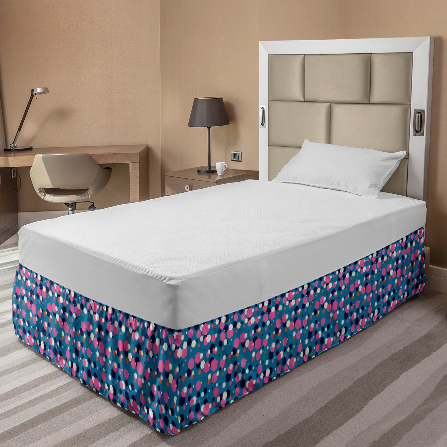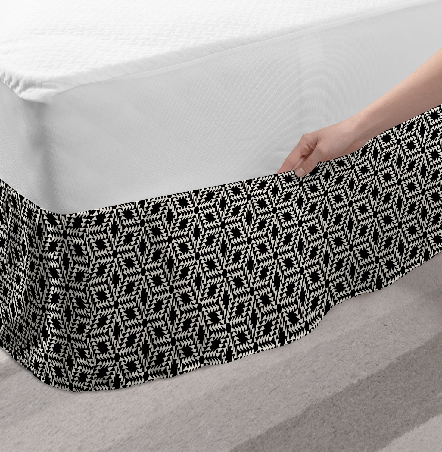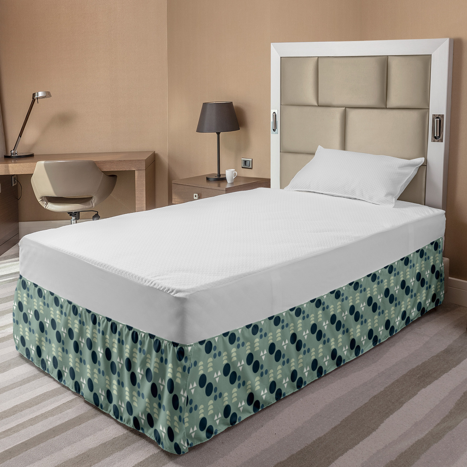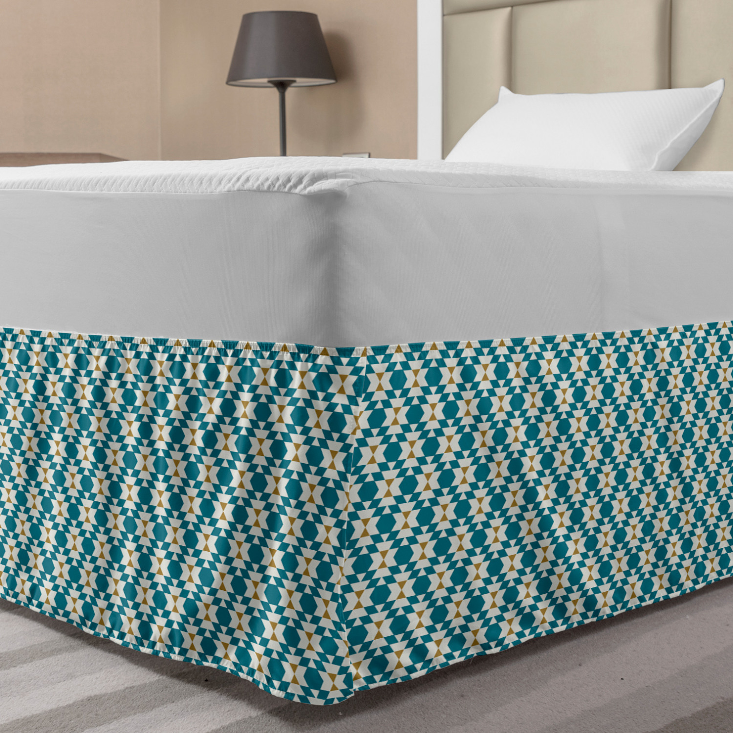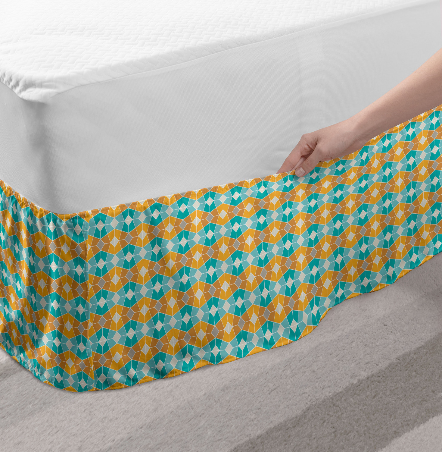 Ambesonne Geometric Items Bedskirt Elastic Wrap Around Skirt Gathered Design Ambesonne Bedskirt Bedroom Decor Wrap Around Elastic Bed Skirt Gathered Design In 4 sizes. 15 inches drop. All around wrap gathered. MADE IN TURKEY. MADE FROM - High quality 100% brushed soft microfiber fabric. Suitable for most types of beds. FEATURES - Install easily with elastic straps wrap under the mattress. Stays in place. Split corners. MACHINE WASHABLE - On cold cycle. Dryer safe and iron easy. No fading colors. For bedroom decor. PRINTED - With state of the art digital printing technology. Long-lasting bold colors & clear image. Change your bedroom's style with a simple touch of bedskirt! Our bedskirts are very easy to use; you can easily put around this elastic bed skirt and fasten up with straps under your mattress. Bring new energy to your master suite with colors and thousands of different patterns. You can easily match your bedding sets with our varied bed skirts. You can play safe and create vintage decor easily with these bed ruffles that belongs to retro-times. But you can ask for novelty and combine this piece with your modern choices. Our bed skirt is smartly designed with modern split corners. And you don't need to worry if it gets dusty or dirty. Just machine wash in the cold cycle and tumble dry on low. Thanks to new printing techniques the colors will not fade easily. Design a neat look for your bed with this gathered bed skirt. It is designed with a slim/low style ruffle to catch a more contemporary line. You can give these bed skirts as a Christmas, birthday, wedding gift, mother's day or house warming gift. It can be a great present for your mother, father, newly married friends, grandmother, aunt, uncle. The digital images we display have the most accurate color possible, however, due to differences in computer monitors, we cannot be responsible for variations in color between the actual product and your screen. Due to manual measurement, please kindly allow 1-2 cm discrepancy.