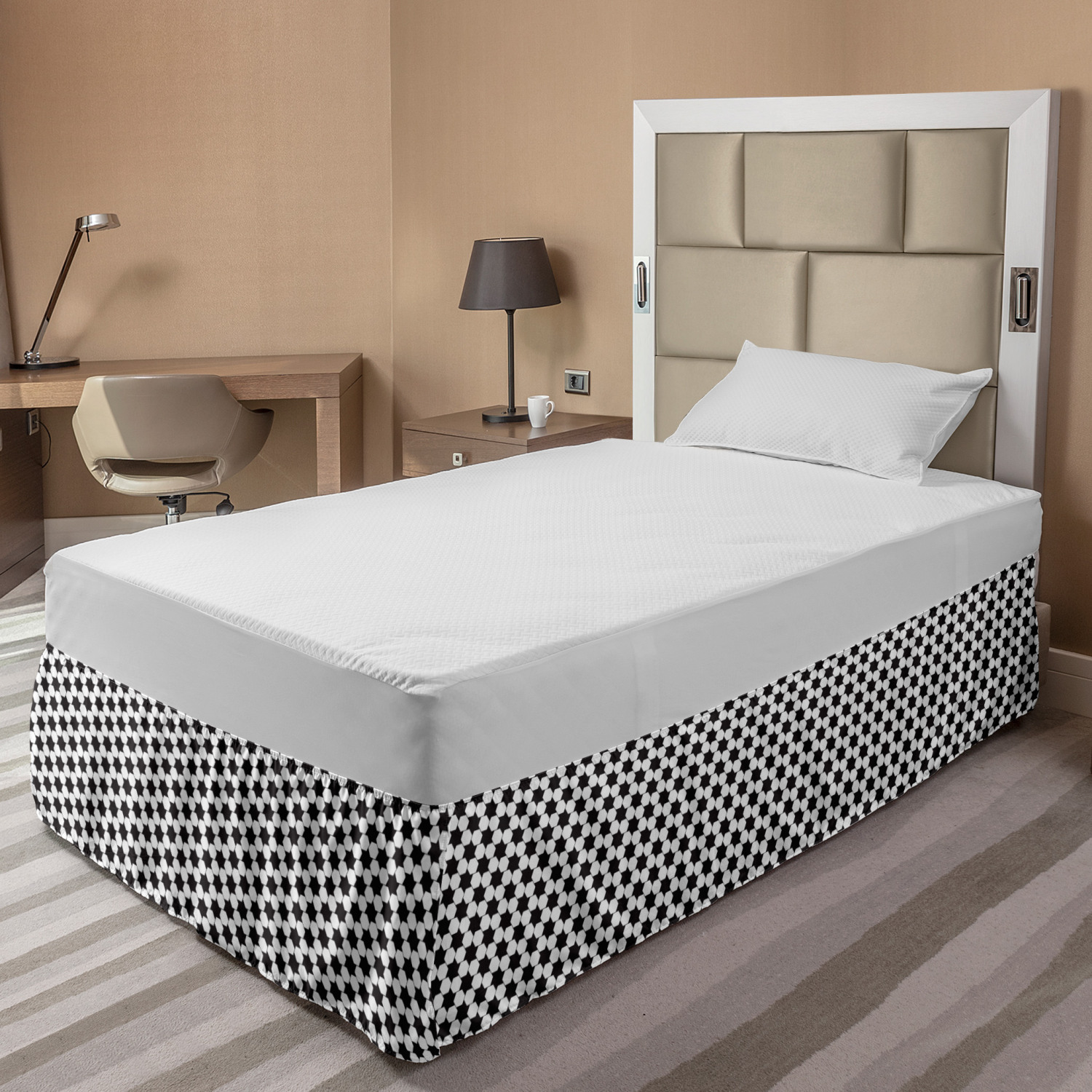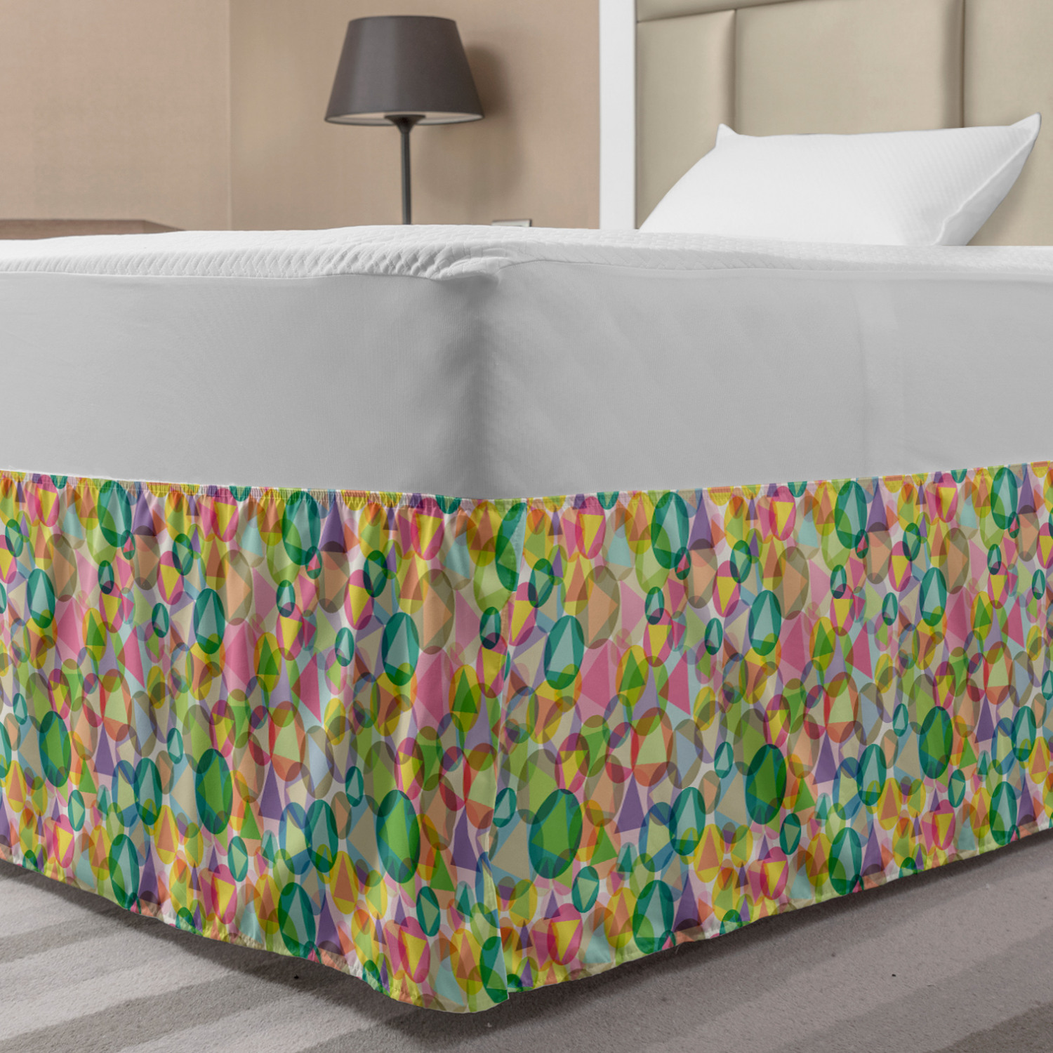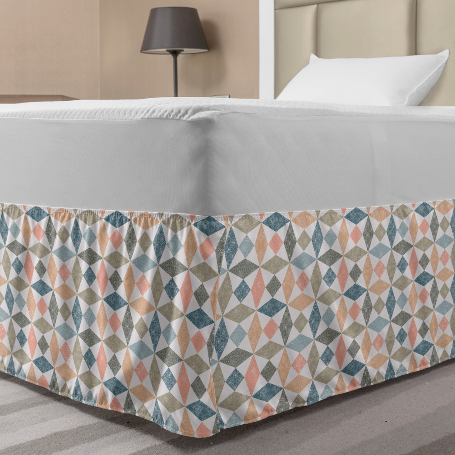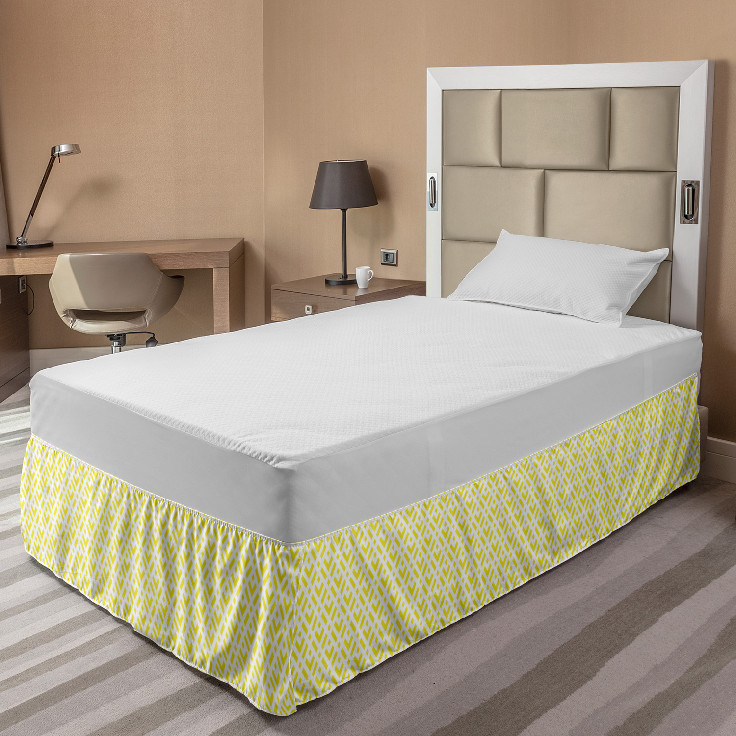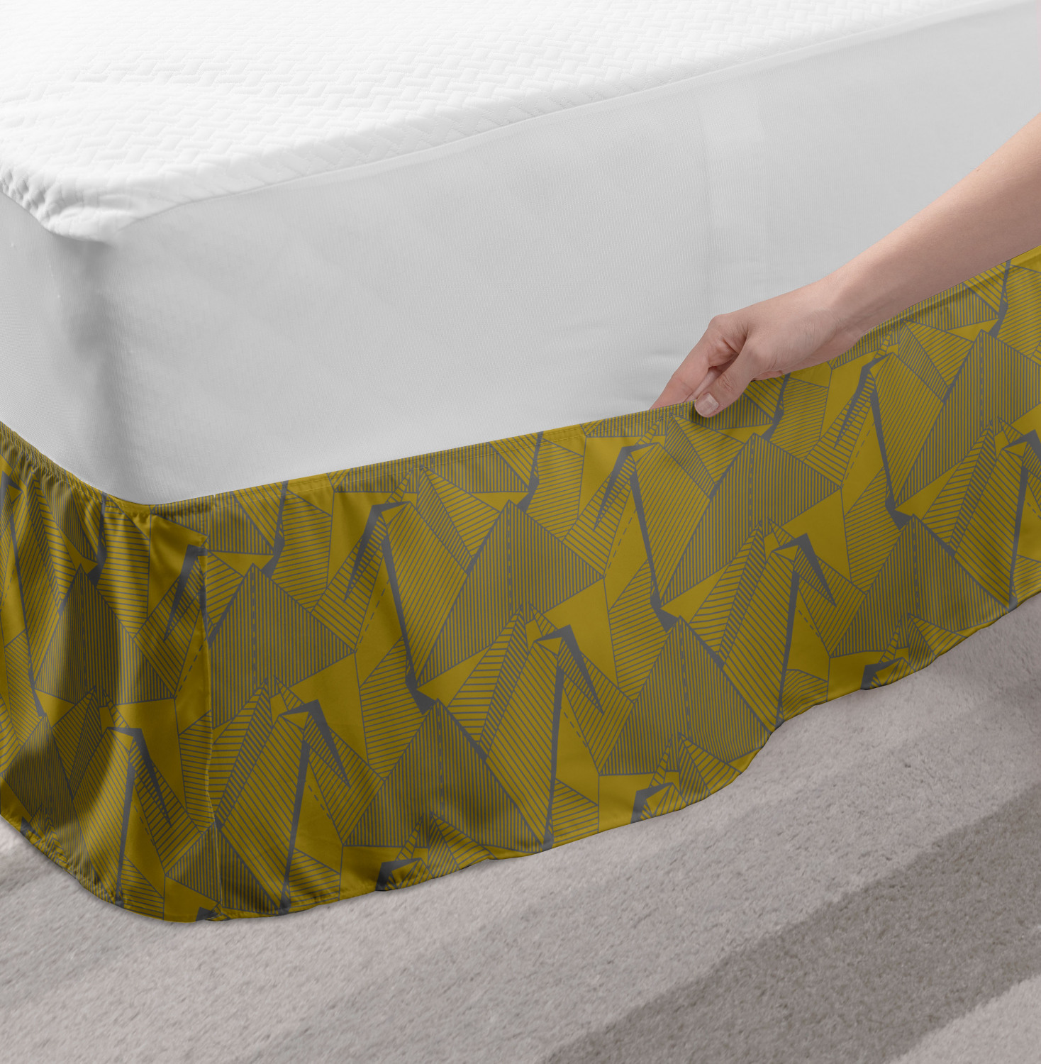 Ambesonne Geometric Items Bedskirt Elastic Wrap Around Skirt Gathered Design Ambesonne Bedskirt Bedroom Decor Wrap Around Elastic Bed Skirt Gathered Design In 4 sizes. 15 inches drop. All around wrap gathered. MADE IN TURKEY. MADE FROM - High quality 100% brushed soft microfiber fabric. Suitable for most types of beds. FEATURES - Install easily with elastic straps wrap under the mattress. Stays in place. Split corners. MACHINE WASHABLE - On cold cycle. Dryer safe and iron easy. No fading colors. For bedroom decor. PRINTED - With state of the art digital printing technology. Long-lasting bold colors & clear image. Change your bedroom's style with a simple touch of bedskirt! Our bedskirts are very easy to use; you can easily put around this elastic bed skirt and fasten up with straps under your mattress. Bring new energy to your master suite with colors and thousands of different patterns. You can easily match your bedding sets with our varied bed skirts. You can play safe and create vintage decor easily with these bed ruffles that belongs to retro-times. But you can ask for novelty and combine this piece with your modern choices. Our bed skirt is smartly designed with modern split corners. And you don't need to worry if it gets dusty or dirty. Just machine wash in the cold cycle and tumble dry on low. Thanks to new printing techniques the colors will not fade easily. Design a neat look for your bed with this gathered bed skirt. It is designed with a slim/low style ruffle to catch a more contemporary line. You can give these bed skirts as a Christmas, birthday, wedding gift, mother's day or house warming gift. It can be a great present for your mother, father, newly married friends, grandmother, aunt, uncle. The digital images we display have the most accurate color possible, however, due to differences in computer monitors, we cannot be responsible for variations in color between the actual product and your screen. Due to manual measurement, please kindly allow 1-2 cm discrepancy.